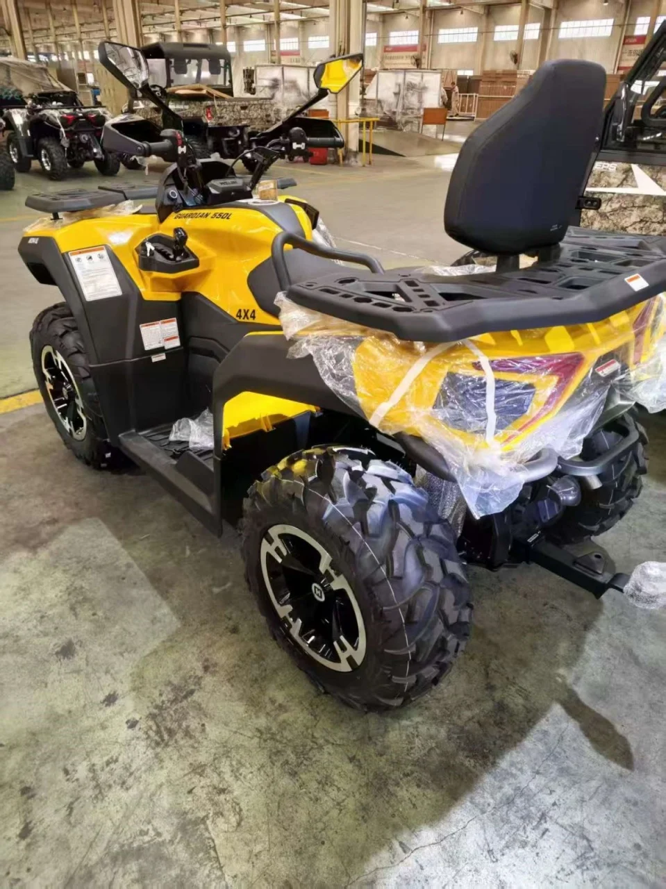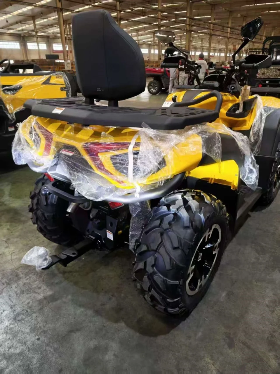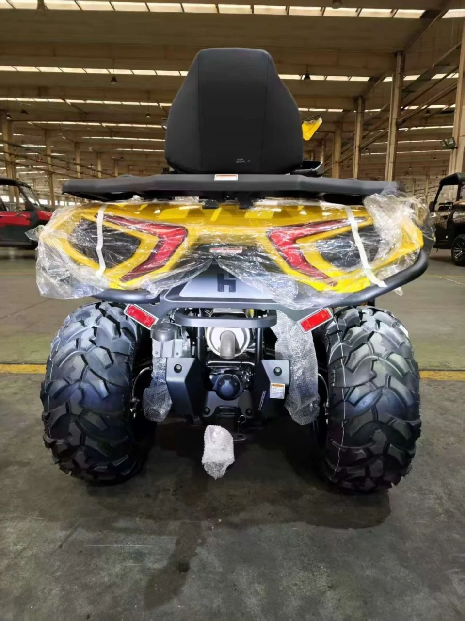 ATV-ul este echipat cu roți din aluminiu și anvelope off-road 25 inch, oferind aderență excelentă și stabilitate. Garda la sol de 275 mm permite traversarea obstacolelor și a terenurilor dificile fără probleme.