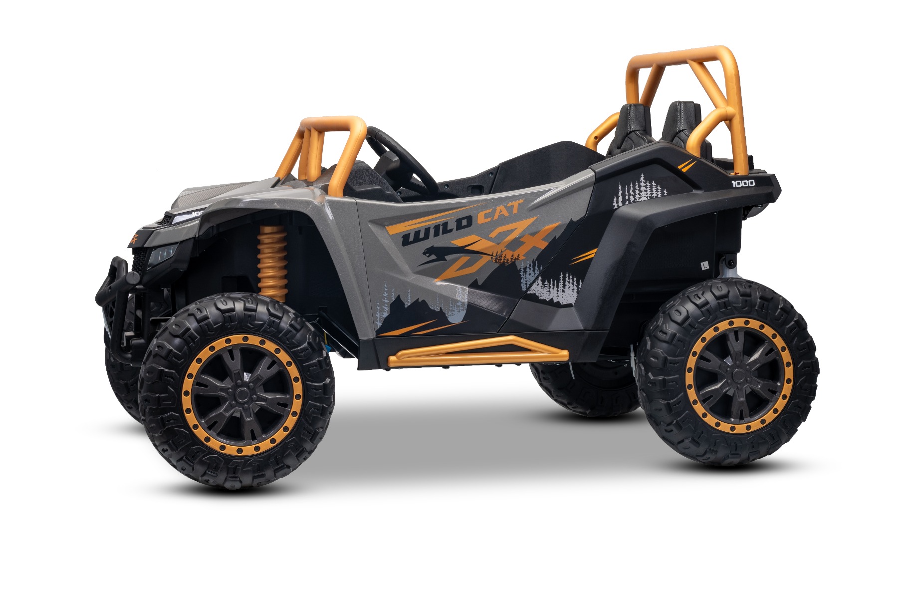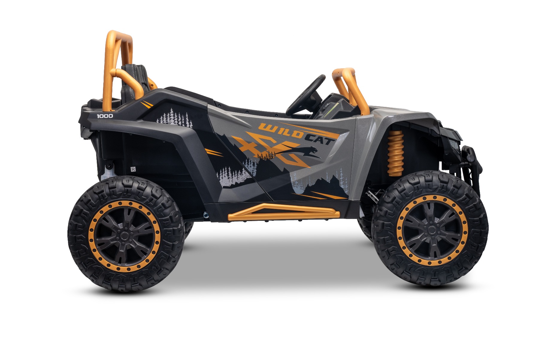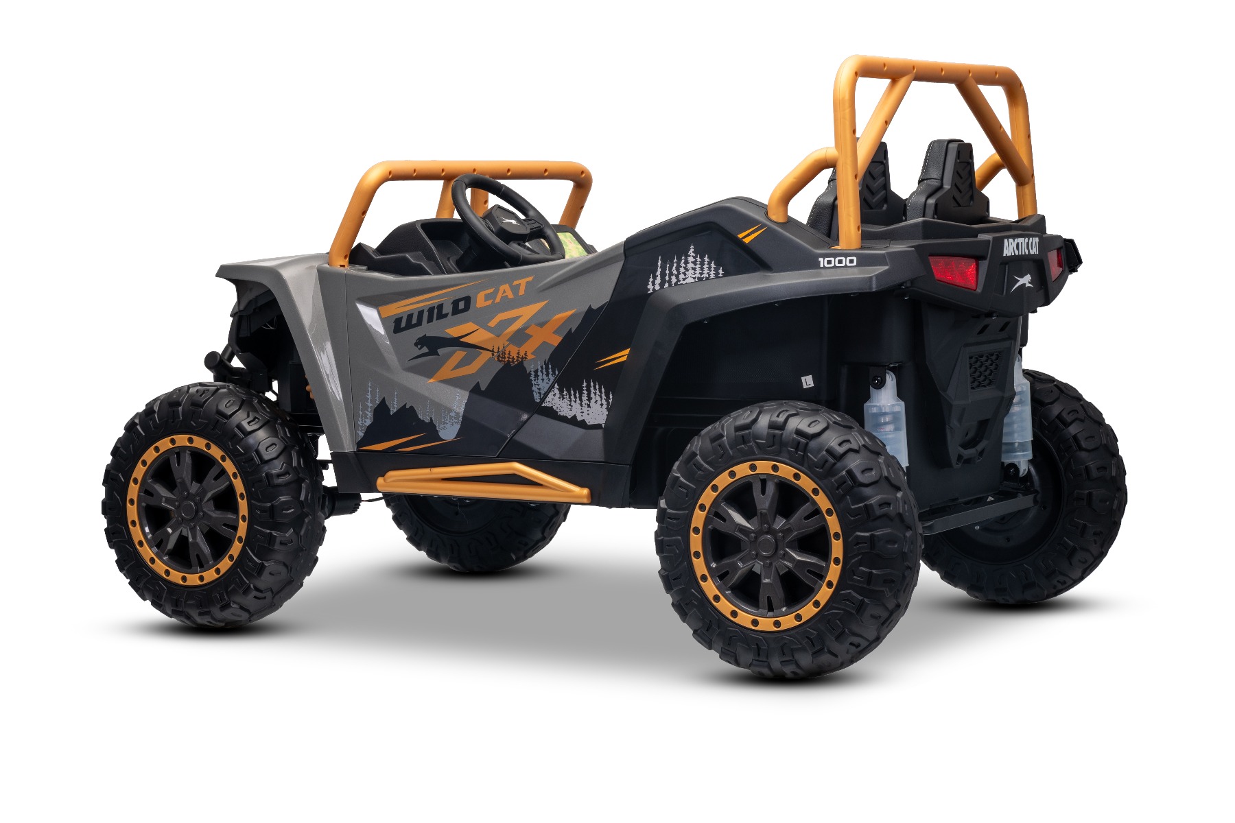 ATV electric Arctic CAT XXL 4×4 24V, gri, cu două locuri, roți EVA moi, motoare puternice, baterie litiu, player MP3 cu Bluetooth, ax spate cu arcuri, scaune din piele artificială, licență originală