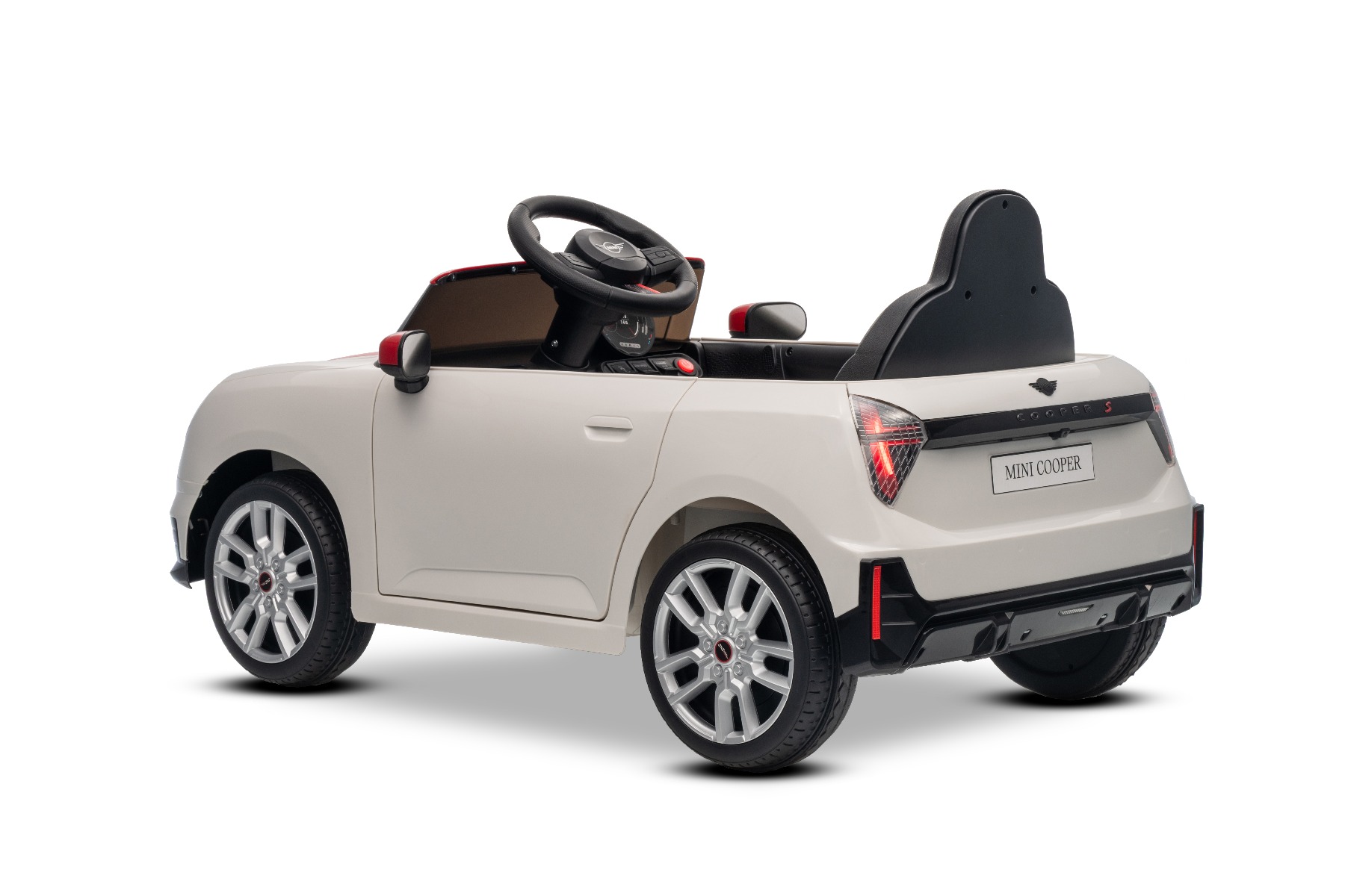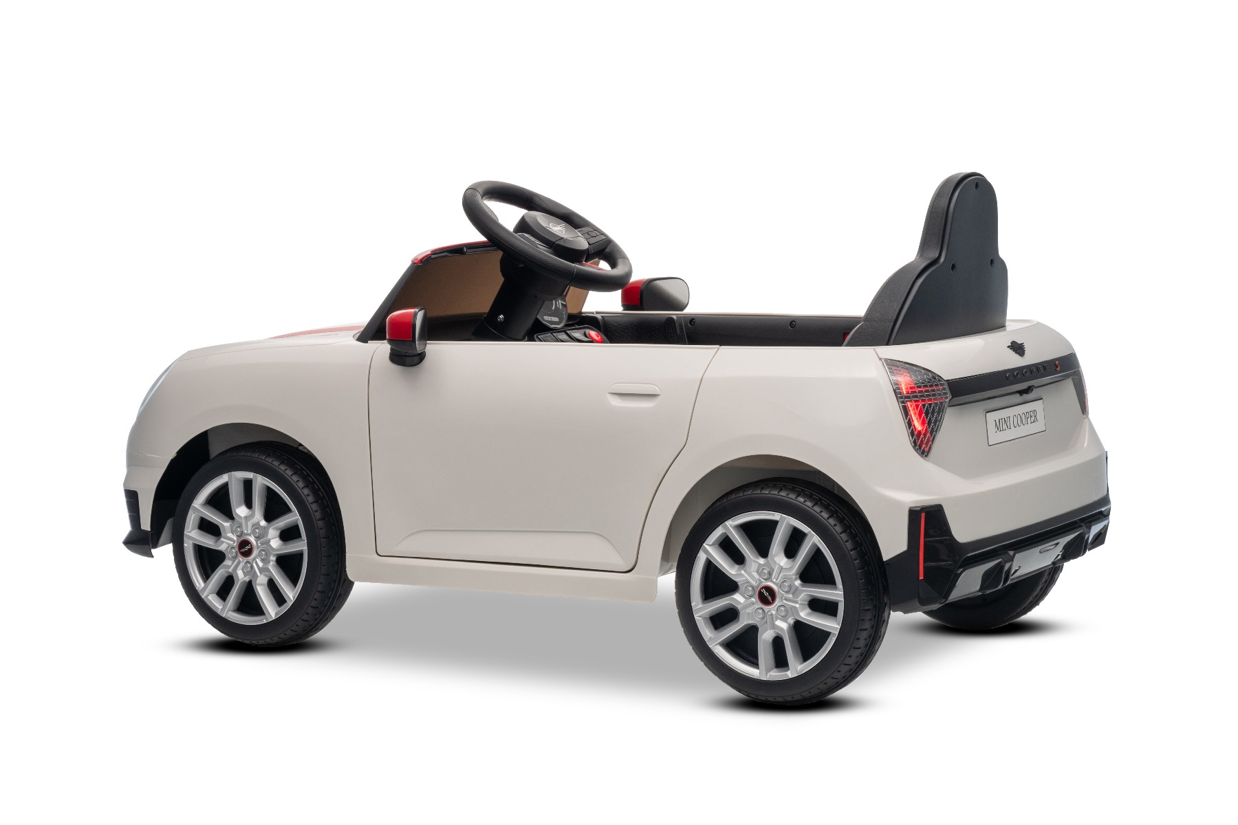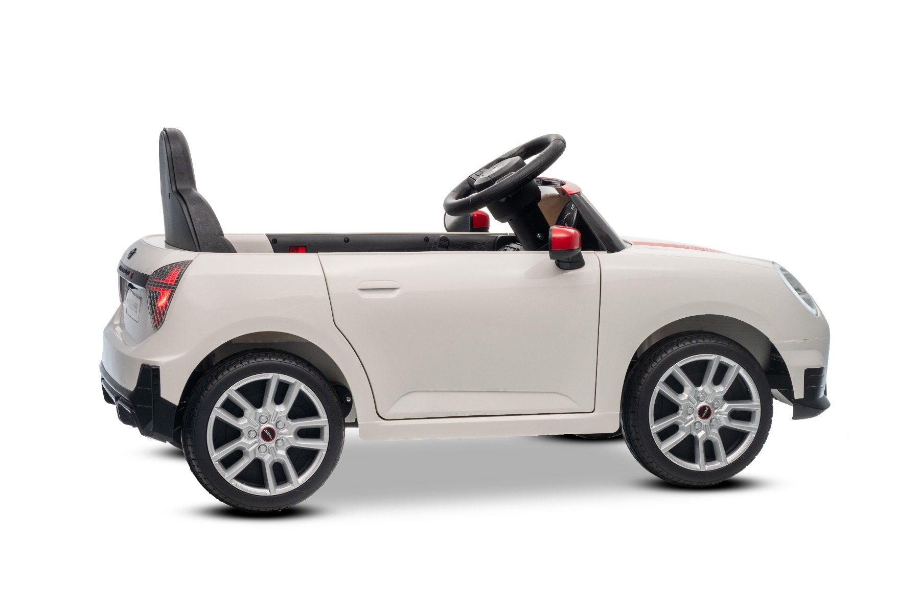 Mașinuța elecrică de jucărie MINI Cooper 12V NOU: Baterie litiu (10.8V3.1AH) Mașinuță electrică elegantă cu design emblematic MINI. Modelul este echipat cu o pereche de uși care se deschid, ce permit o îmbarcare confortabilă. Când comutatorul este pornit, modelul imită sunetul pornirii, iar luminile LED față și spate se aprind. Există efecte sonore precum claxon, sunet de condus, cântece sau melodii. Există o intrare USB și conexiune Bluetooth, iar volumul este controlat direct prin intermediul playerului MP3 încorporat. Volan multifuncțional – pentru un control mai ușor al conținutului media și efectelor sonore, precum claxonul Deschiderea ușilor – cu sistem de blocare, pentru o intrare și ieșire mai ușoară din vehicul Mașinuța are o telecomandă de nouă generație de 2,4 GHz, un comutator de pornire iluminat pornit/oprit și o frână de urgență, care dezactivează imediat toate funcțiile vehiculului atunci când este activată. Mașina are tracțiune pe ambele roți spate. Modelul are inclus un comutator pentru viteză mică/mare cu marșarier și funcția de tractare – poate fi tras ca o valiză. Pornirea controlată electronic asigură o accelerație lină, fără smucituri. 3 viteze de deplasare înainte sunt disponibile prin telecomandă Accelerare lină – Când apăsați pedala de accelerație, mașina începe să se deplaseze, iar pornirea este controlată electronic pentru a fi lină datorită accelerației line integrate. Acest lucru elimină smuciturile neplăcute la pornire și face călătoria mai confortabilă. Baterie litiu (10.8V3.1AH): Durata lungă de viață – Pot rezista la mai multe cicluri de încărcare. Capacitate mare – Sunt ușoare și puternice. Încărcare rapidă – Se încarcă rapid și se descarcă lent. Conținutul pachetului: Mașină electrică de jucărie MINI Cooper cu licență originală Telecomandă de 2,4 GHz cu frână de urgență Încărcător (13,3 V / 0,9 A) Baterie 10,8 V / 3,1 Ah (încorporată) Manual de utilizare Accesorii de montare (dacă este necesar – șuruburi, cheie) Caracteristici Lumini LED MP3 player Port USB Telecomandă Volan multifunctional Uși care se deschid Centură de siguranță Bluetooth Selector viteză Buton pornire Baterie litiu-ion Caracteristici speciale Player MP3 cu Bluetooth Uși care se deschid, cu blocare de siguranță Roți auxiliare pentru tractare Specificații tehnice / Dimensiunile produsului Model cu licență Tip mașină: Cu un loc Tracțiune mașină: 2×2 Motor mașină: 2 x 25 W Număr de viteze: 2 (mare/mic și marșarier) Viteză: 3–5 km/h Capacitate de încărcare: max. până la 30 kg Baterie: Litiu 10.8V/3.1Ah Timp de încărcare: min. 6–8 ore Autonomie: 2-3 ore în funcție de încărcătură și teren Pornire lină Frână de urgență Centură de siguranță: centură în 2 puncte Scaun: plastic standard Uși: cu sistem de deschidere Iluminare: lumini față și spate Echipament multimedia: USB, Bluetooth, control volan Vârstă recomandată: 3 până la 6 ani Dimensiuni: 96 x 55 x 47 cm Dimensiuni pachet: 100 x 51 x 26 cm Greutate vehicul: 9.9 kg