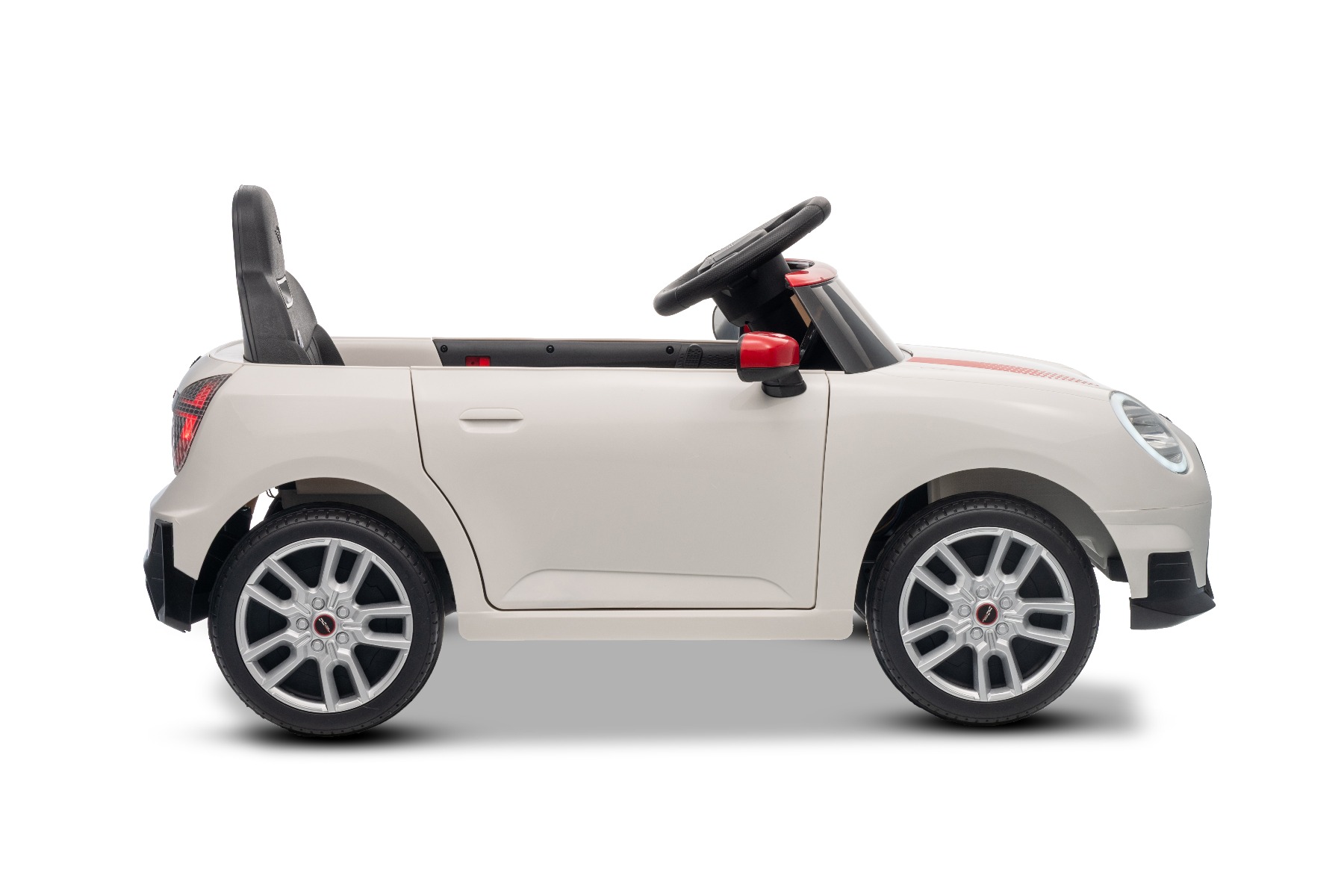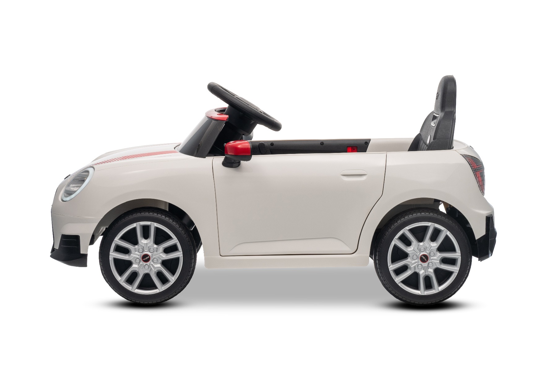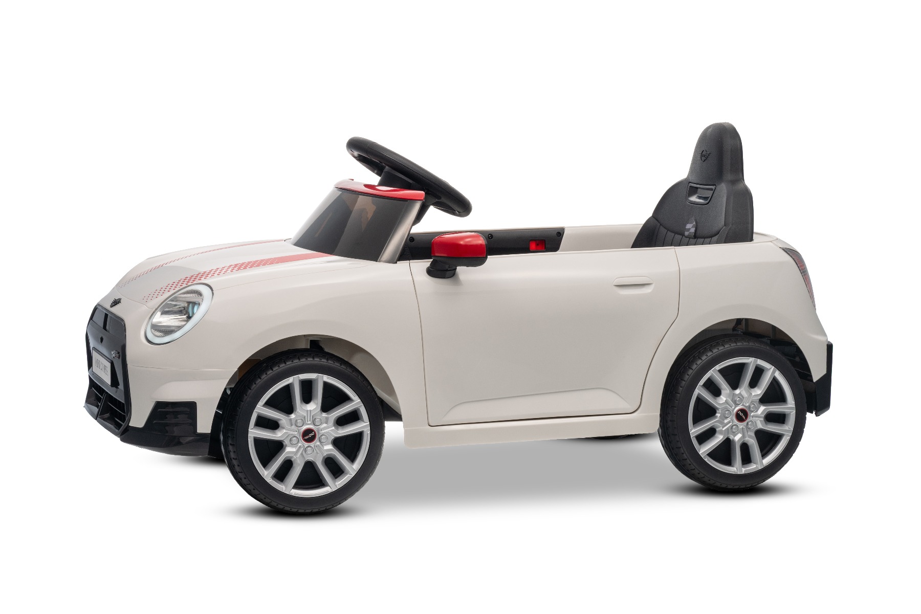 Mașinuța elecrică de jucărie MINI Cooper 12V NOU: Baterie litiu (10.8V3.1AH) Mașinuță electrică elegantă cu design emblematic MINI. Modelul este echipat cu o pereche de uși care se deschid, ce permit o îmbarcare confortabilă. Când comutatorul este pornit, modelul imită sunetul pornirii, iar luminile LED față și spate se aprind. Există efecte sonore precum claxon, sunet de condus, cântece sau melodii. Există o intrare USB și conexiune Bluetooth, iar volumul este controlat direct prin intermediul playerului MP3 încorporat. Volan multifuncțional – pentru un control mai ușor al conținutului media și efectelor sonore, precum claxonul Deschiderea ușilor – cu sistem de blocare, pentru o intrare și ieșire mai ușoară din vehicul Mașinuța are o telecomandă de nouă generație de 2,4 GHz, un comutator de pornire iluminat pornit/oprit și o frână de urgență, care dezactivează imediat toate funcțiile vehiculului atunci când este activată. Mașina are tracțiune pe ambele roți spate. Modelul are inclus un comutator pentru viteză mică/mare cu marșarier și funcția de tractare – poate fi tras ca o valiză. Pornirea controlată electronic asigură o accelerație lină, fără smucituri. 3 viteze de deplasare înainte sunt disponibile prin telecomandă Accelerare lină – Când apăsați pedala de accelerație, mașina începe să se deplaseze, iar pornirea este controlată electronic pentru a fi lină datorită accelerației line integrate. Acest lucru elimină smuciturile neplăcute la pornire și face călătoria mai confortabilă. Baterie litiu (10.8V3.1AH): Durata lungă de viață – Pot rezista la mai multe cicluri de încărcare. Capacitate mare – Sunt ușoare și puternice. Încărcare rapidă – Se încarcă rapid și se descarcă lent. Conținutul pachetului: Mașină electrică de jucărie MINI Cooper cu licență originală Telecomandă de 2,4 GHz cu frână de urgență Încărcător (13,3 V / 0,9 A) Baterie 10,8 V / 3,1 Ah (încorporată) Manual de utilizare Accesorii de montare (dacă este necesar – șuruburi, cheie) Caracteristici Lumini LED MP3 player Port USB Telecomandă Volan multifunctional Uși care se deschid Centură de siguranță Bluetooth Selector viteză Buton pornire Baterie litiu-ion Caracteristici speciale Player MP3 cu Bluetooth Uși care se deschid, cu blocare de siguranță Roți auxiliare pentru tractare Specificații tehnice / Dimensiunile produsului Model cu licență Tip mașină: Cu un loc Tracțiune mașină: 2×2 Motor mașină: 2 x 25 W Număr de viteze: 2 (mare/mic și marșarier) Viteză: 3–5 km/h Capacitate de încărcare: max. până la 30 kg Baterie: Litiu 10.8V/3.1Ah Timp de încărcare: min. 6–8 ore Autonomie: 2-3 ore în funcție de încărcătură și teren Pornire lină Frână de urgență Centură de siguranță: centură în 2 puncte Scaun: plastic standard Uși: cu sistem de deschidere Iluminare: lumini față și spate Echipament multimedia: USB, Bluetooth, control volan Vârstă recomandată: 3 până la 6 ani Dimensiuni: 96 x 55 x 47 cm Dimensiuni pachet: 100 x 51 x 26 cm Greutate vehicul: 9.9 kg