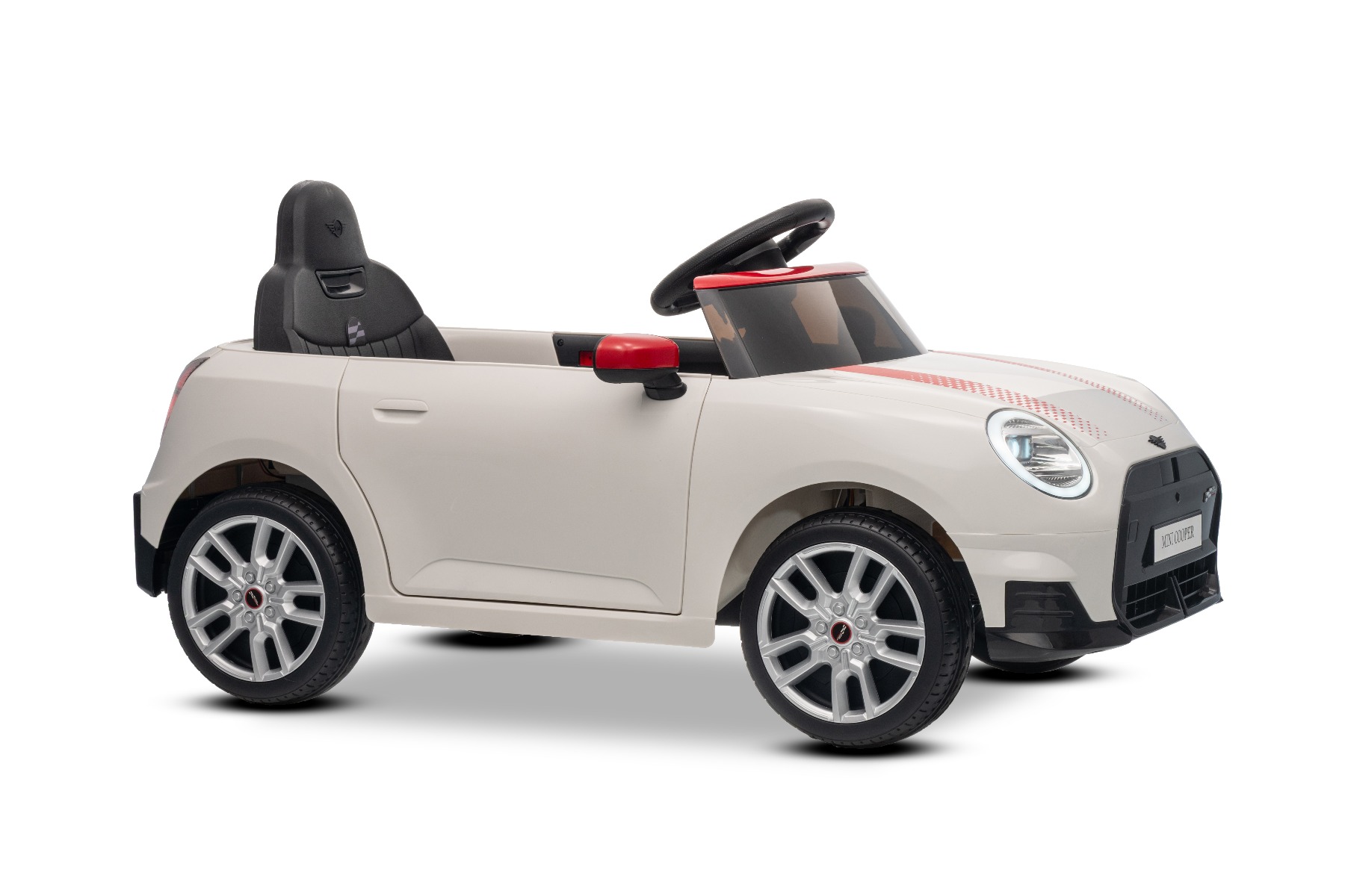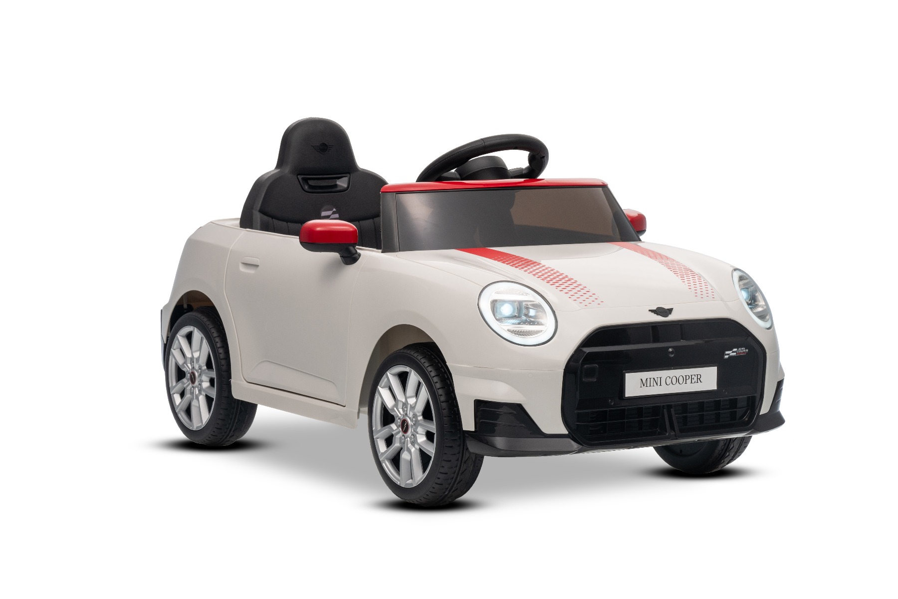 Mașină electrică copii BMW Mini Cooper 12V, alb, intrare USB cu conexiune Bluetooth la player MP3, telecomandă 2.4 GHz, motor 2 x 25W, baterie litiu, lumini LED, licență ORIGINALĂ