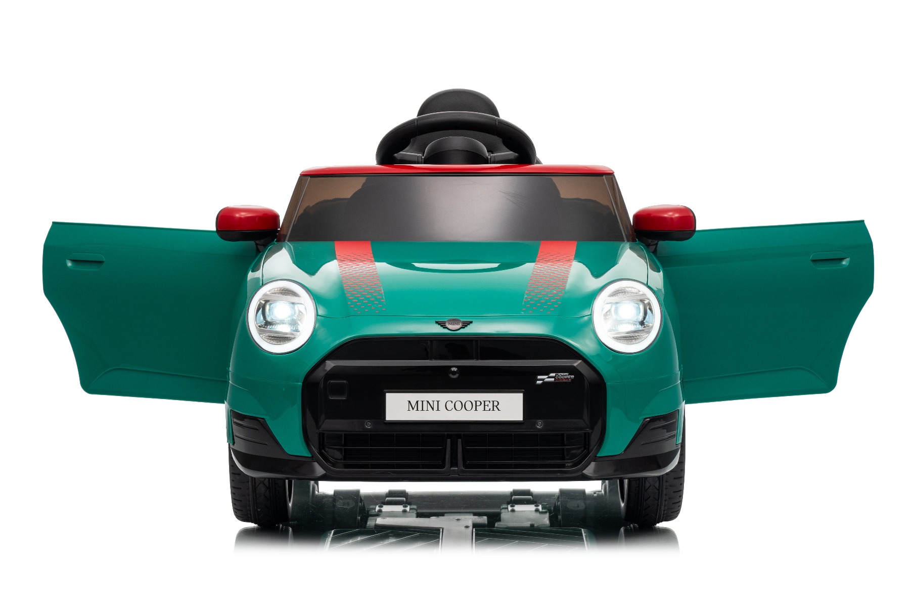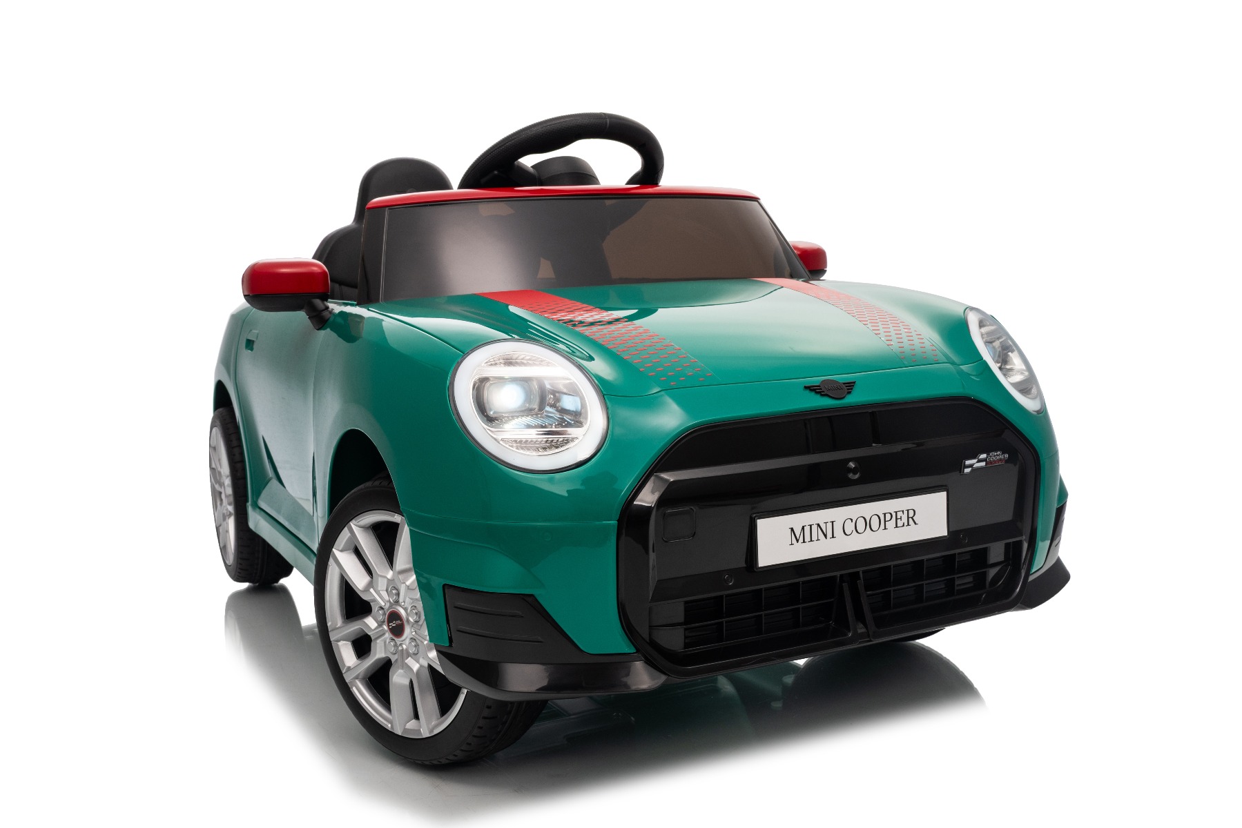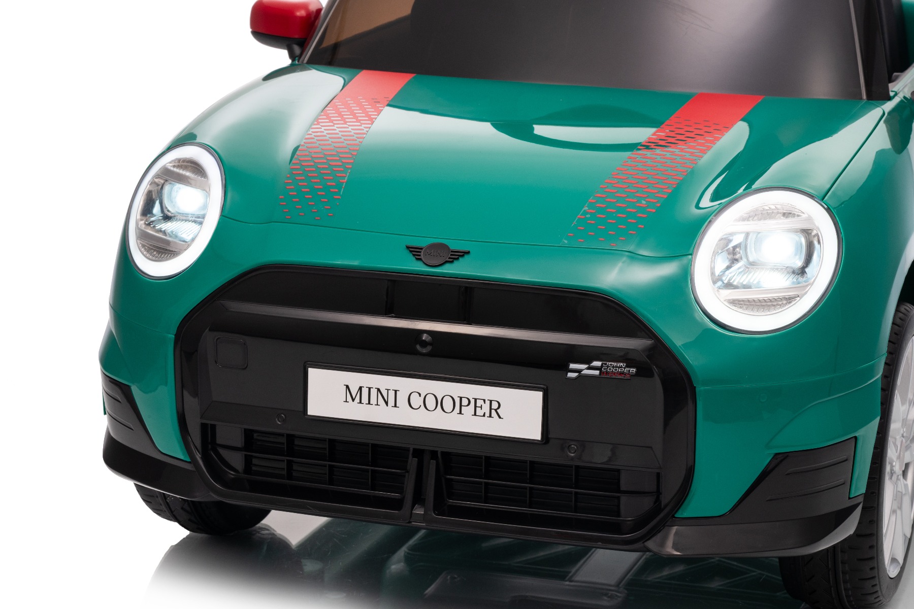 Mașină electrică copii BMW Mini Cooper 12V, verde, intrare USB cu conexiune Bluetooth la player MP3, telecomandă 2.4 GHz, motor 2 x 25W, baterie litiu, lumini LED, licență ORIGINALĂ
