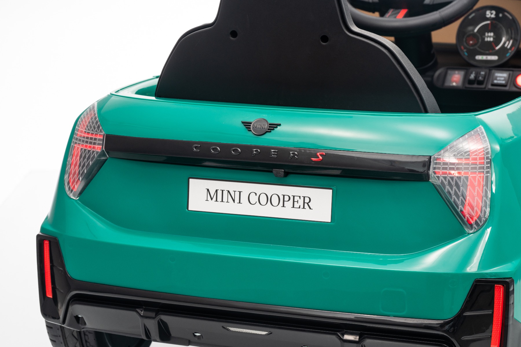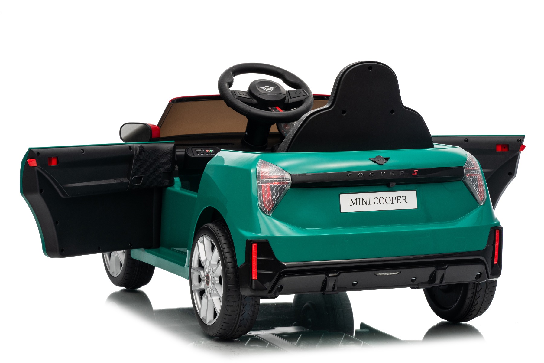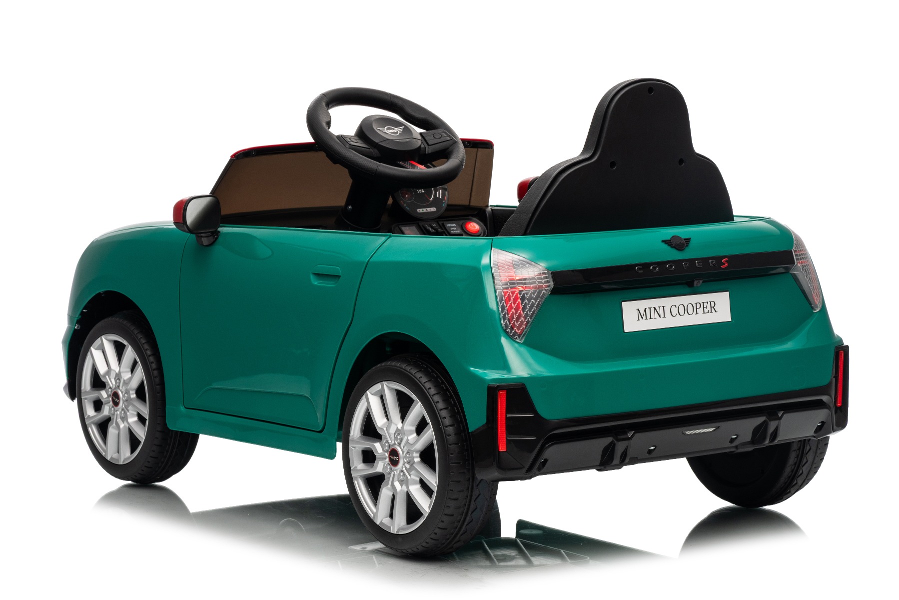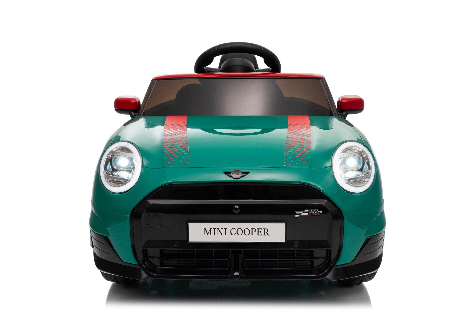 Mașină electrică copii BMW Mini Cooper 12V, verde, intrare USB cu conexiune Bluetooth la player MP3, telecomandă 2.4 GHz, motor 2 x 25W, baterie litiu, lumini LED, licență ORIGINALĂ