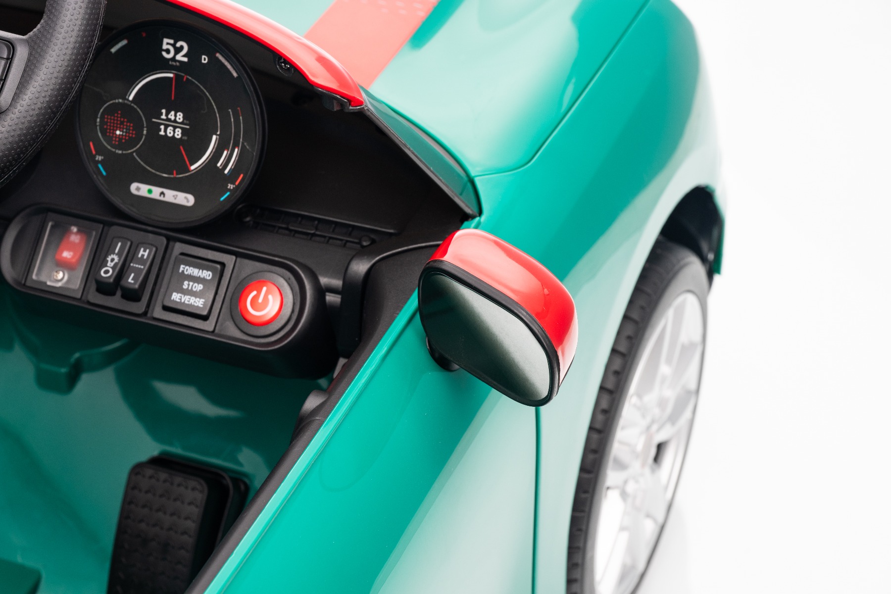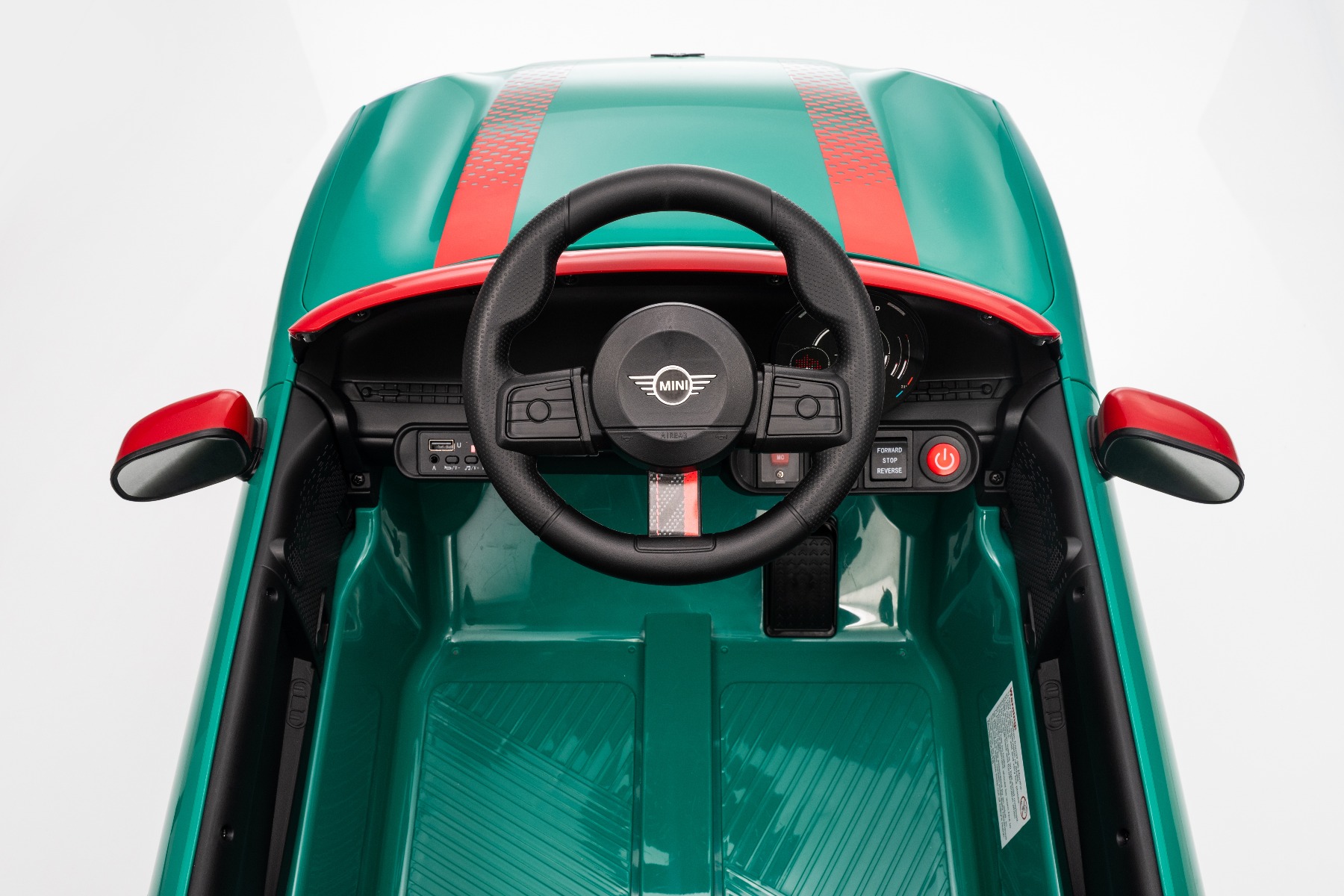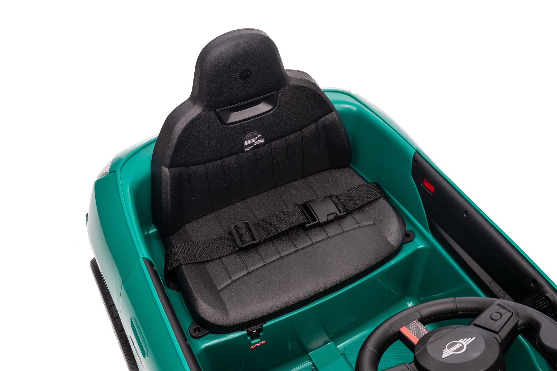 Mașinuța elecrică de jucărie MINI Cooper 12V NOU: Baterie litiu (10.8V3.1AH) Mașinuță electrică elegantă cu design emblematic MINI. Modelul este echipat cu o pereche de uși care se deschid, ce permit o îmbarcare confortabilă. Când comutatorul este pornit, modelul imită sunetul pornirii, iar luminile LED față și spate se aprind. Există efecte sonore precum claxon, sunet de condus, cântece sau melodii. Există o intrare USB și conexiune Bluetooth, iar volumul este controlat direct prin intermediul playerului MP3 încorporat. Volan multifuncțional – pentru un control mai ușor al conținutului media și efectelor sonore, precum claxonul Deschiderea ușilor – cu sistem de blocare, pentru o intrare și ieșire mai ușoară din vehicul Mașinuța are o telecomandă de nouă generație de 2,4 GHz, un comutator de pornire iluminat pornit/oprit și o frână de urgență, care dezactivează imediat toate funcțiile vehiculului atunci când este activată. Mașina are tracțiune pe ambele roți spate. Modelul are inclus un comutator pentru viteză mică/mare cu marșarier și funcția de tractare – poate fi tras ca o valiză. Pornirea controlată electronic asigură o accelerație lină, fără smucituri. 3 viteze de deplasare înainte sunt disponibile prin telecomandă Accelerare lină – Când apăsați pedala de accelerație, mașina începe să se deplaseze, iar pornirea este controlată electronic pentru a fi lină datorită accelerației line integrate. Acest lucru elimină smuciturile neplăcute la pornire și face călătoria mai confortabilă. Baterie litiu (10.8V3.1AH): Durata lungă de viață – Pot rezista la mai multe cicluri de încărcare. Capacitate mare – Sunt ușoare și puternice. Încărcare rapidă – Se încarcă rapid și se descarcă lent. Conținutul pachetului: Mașină electrică de jucărie MINI Cooper cu licență originală Telecomandă de 2,4 GHz cu frână de urgență Încărcător (13,3 V / 0,9 A) Baterie 10,8 V / 3,1 Ah (încorporată) Manual de utilizare Accesorii de montare (dacă este necesar – șuruburi, cheie) Caracteristici Lumini LED MP3 player Port USB Telecomandă Volan multifunctional Uși care se deschid Centură de siguranță Bluetooth Selector viteză Buton pornire Baterie litiu-ion Caracteristici speciale Player MP3 cu Bluetooth Roți auxiliare pentru tractare Uși care se deschid, cu blocare de siguranță Specificații tehnice / Dimensiunile produsului Model cu licență Tip mașină: Cu un loc Tracțiune mașină: 2×2 Motor mașină: 2 x 25 W Număr de viteze: 2 (mare/mic și marșarier) Viteză: 3–5 km/h Capacitate de încărcare: max. până la 30 kg Baterie: Litiu 10.8V/3.1Ah Timp de încărcare: min. 6–8 ore Autonomie: 2-3 ore în funcție de încărcătură și teren Pornire lină Frână de urgență Centură de siguranță: centură în 2 puncte Scaun: plastic standard Uși: cu sistem de deschidere Iluminare: lumini față și spate Echipament multimedia: USB, Bluetooth, control volan Vârstă recomandată: 3 până la 6 ani Dimensiuni: 96 x 55 x 47 cm Dimensiuni pachet: 100 x 51 x 26 cm Greutate vehicul: 9.9 kg
