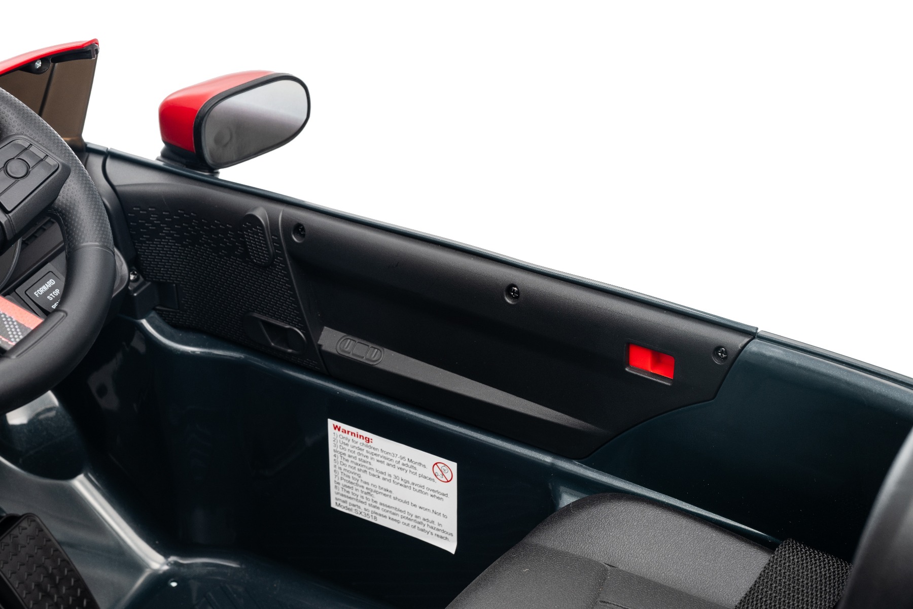 • Baterie litiu • Lumini LED față și spate • Telecomandă 2,4 GHz • Uși care se deschid • Lumini LED
