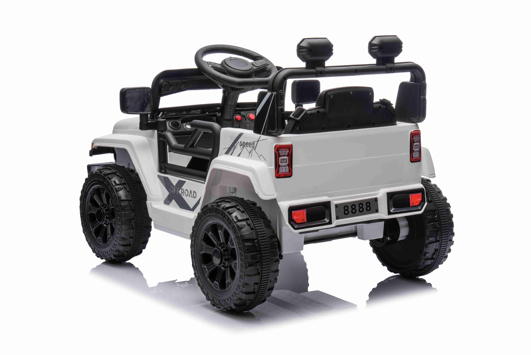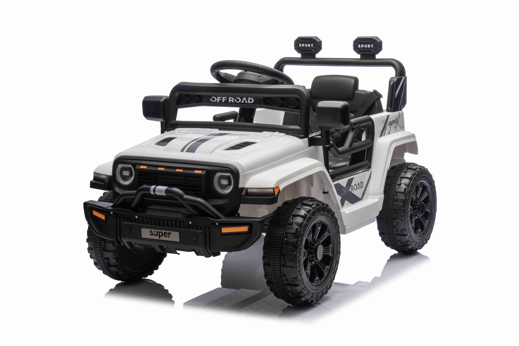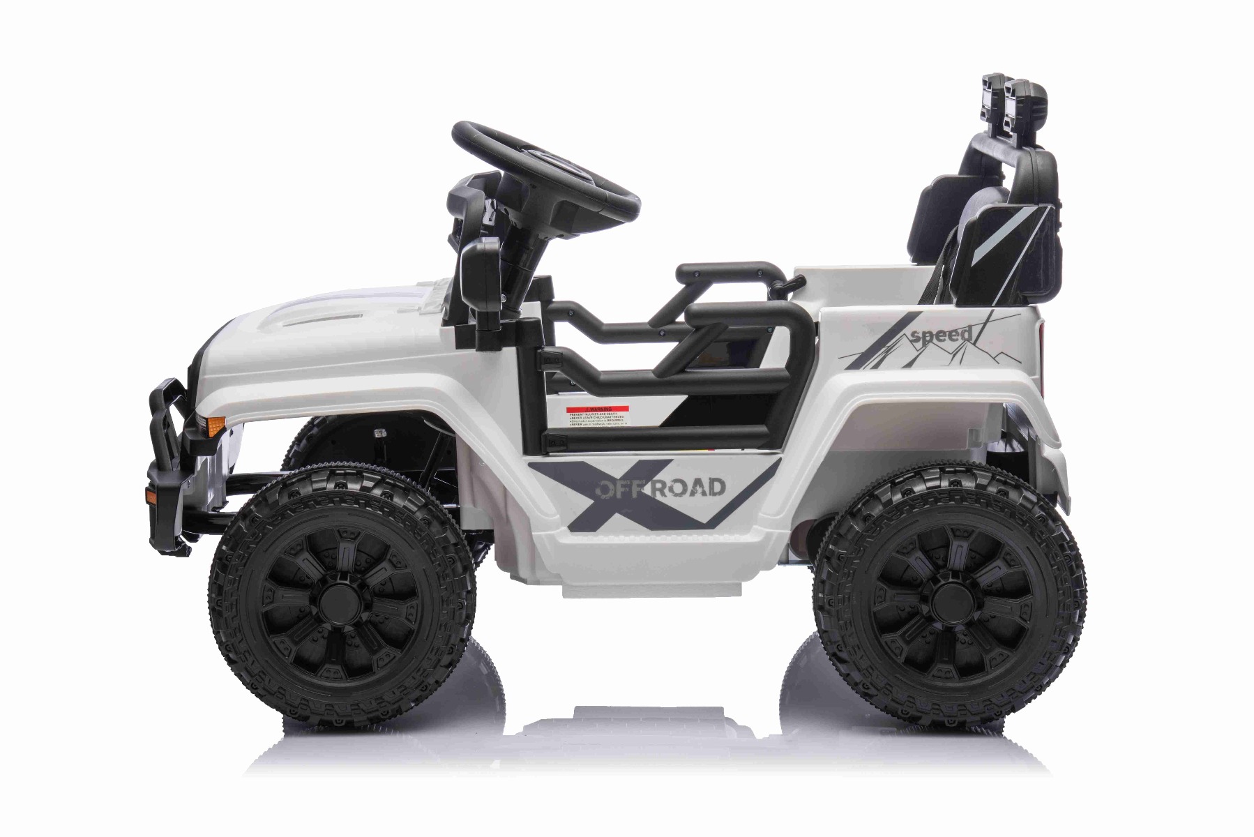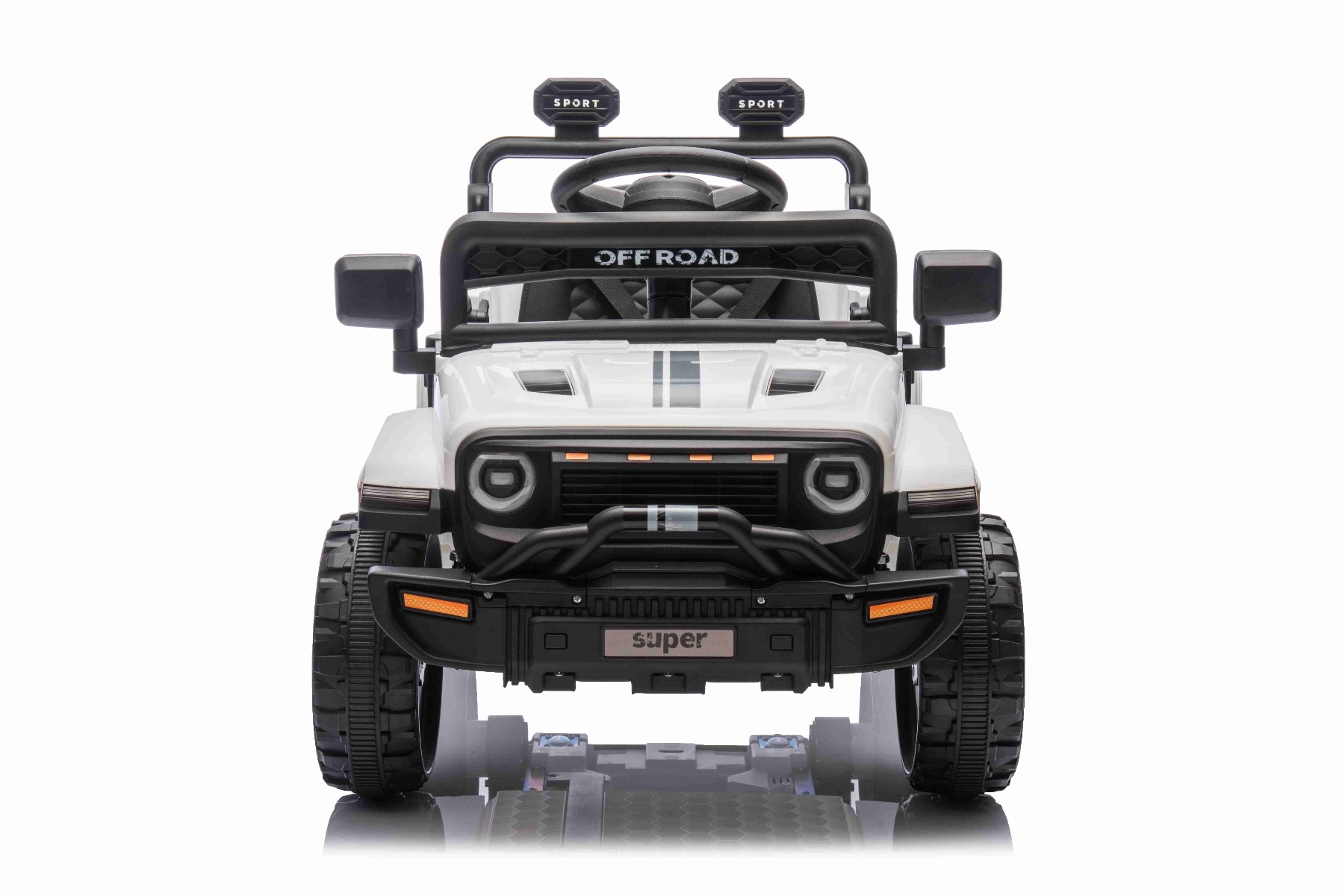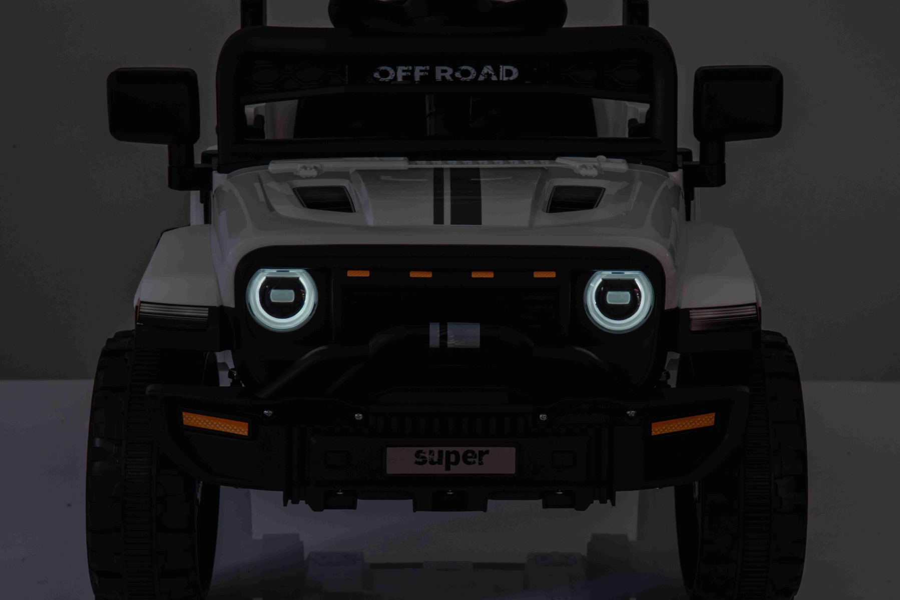 Mașina electrica copii OFFROAD NEW cu tracțiune spate, alb, baterie litiu, șasiu înalt, scaun larg, suspensie, telecomandă 2,4 GHz, lumini LED