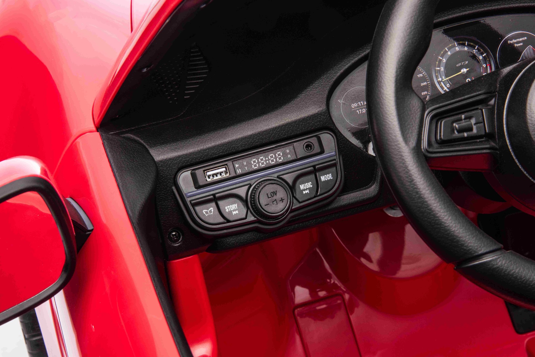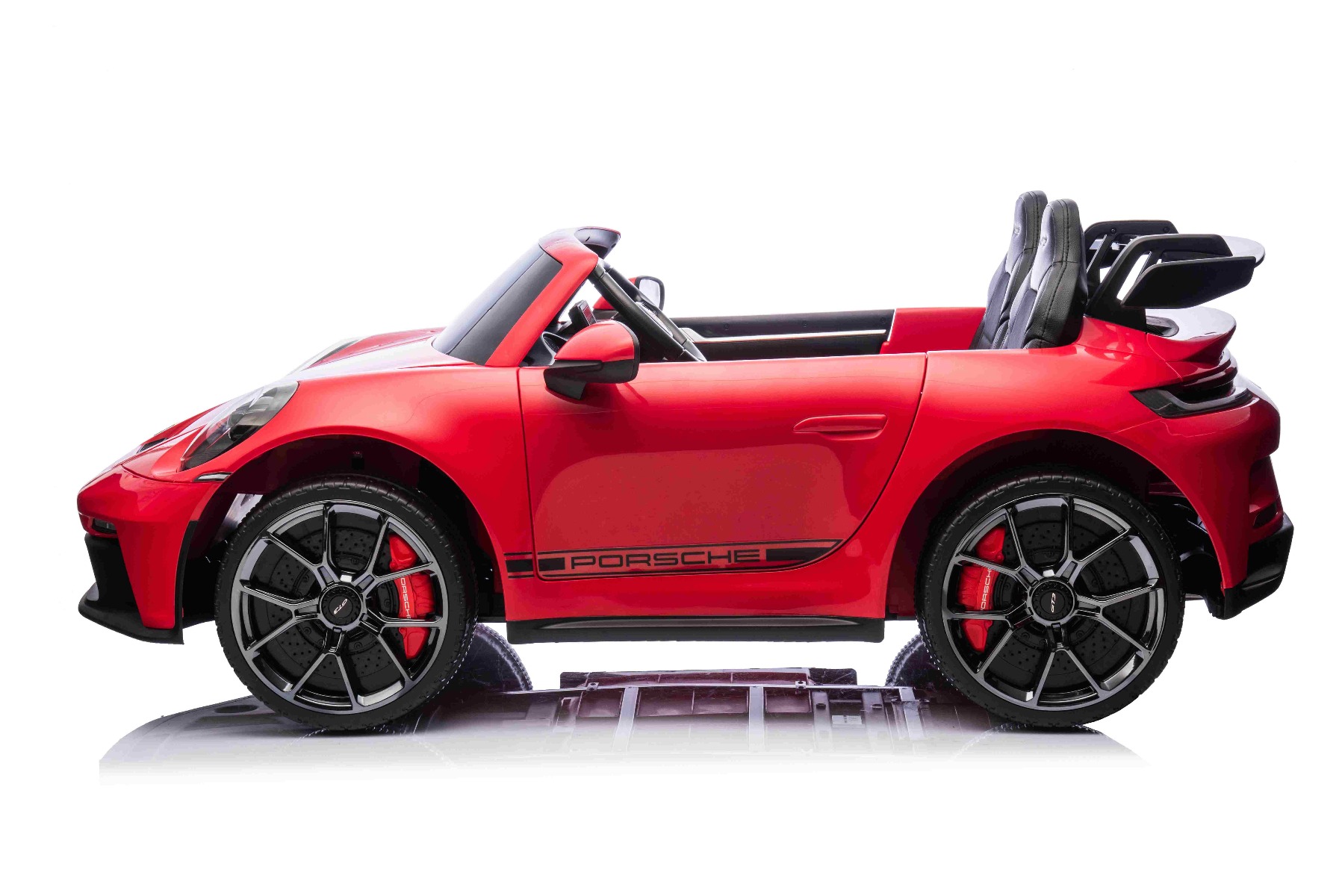 Mașină electrică copii Porsche 911 GT3 24V cu tracțiune 4×4, roșu, scaun cu două locuri, telecomandă 2.4 GHz, intrare USB/AUX, motoare 200W, suspensie, baterie litiu, lumini LED față și spate, licență ORIGINALĂ