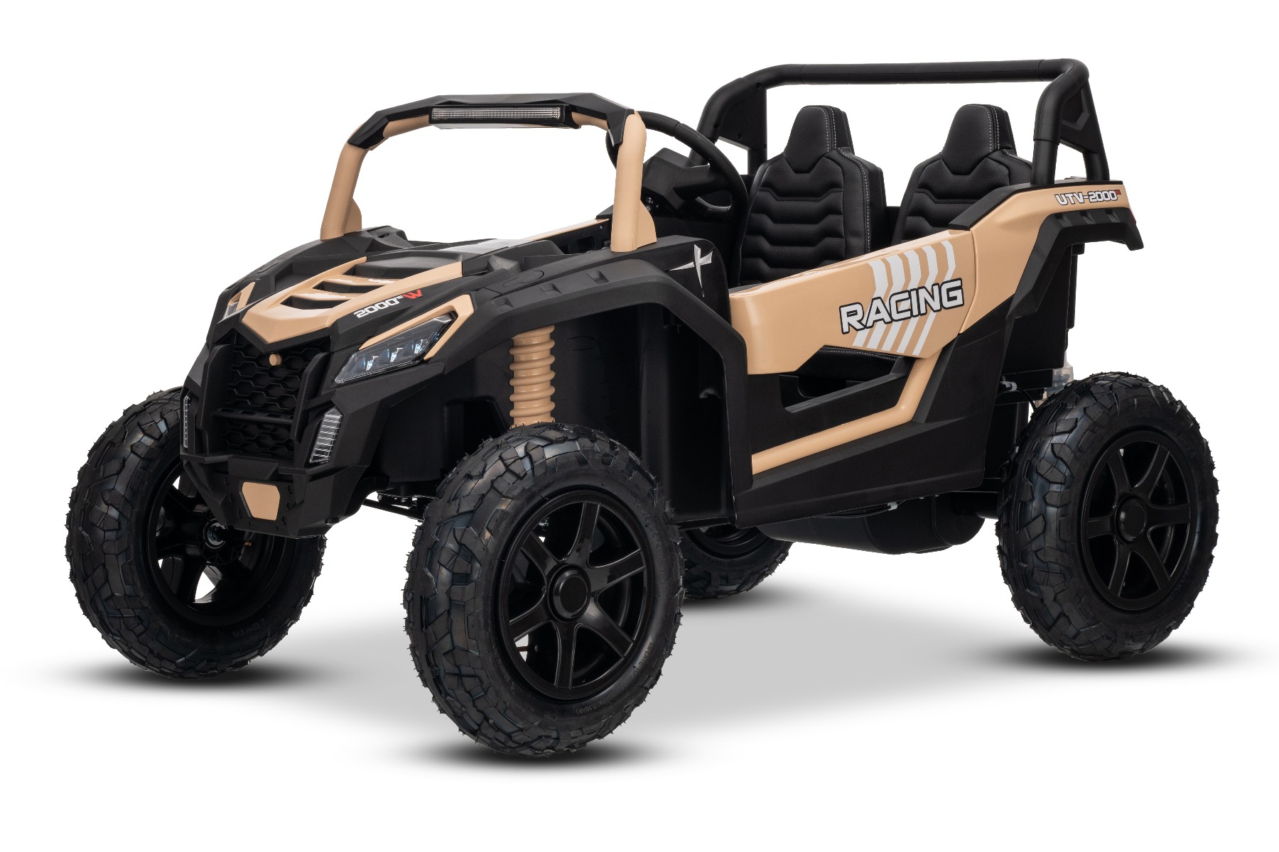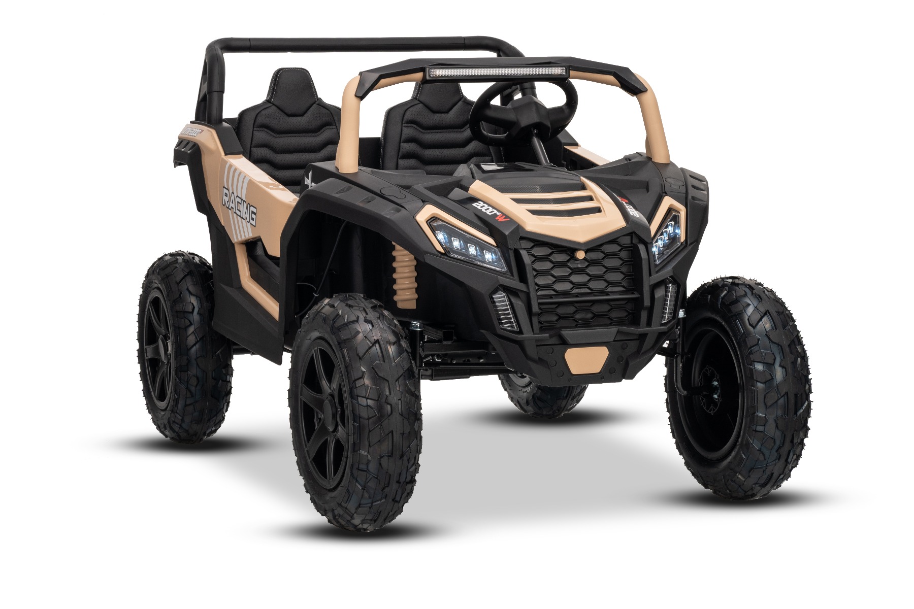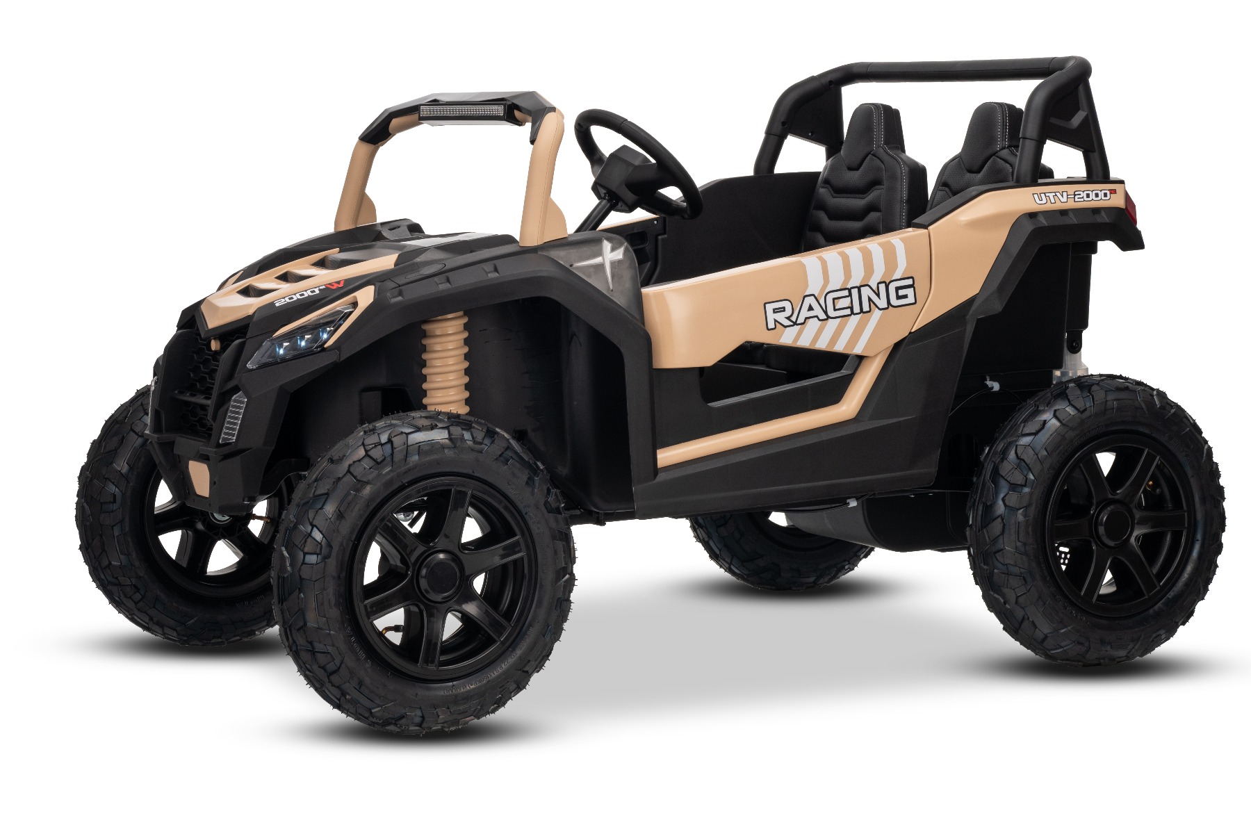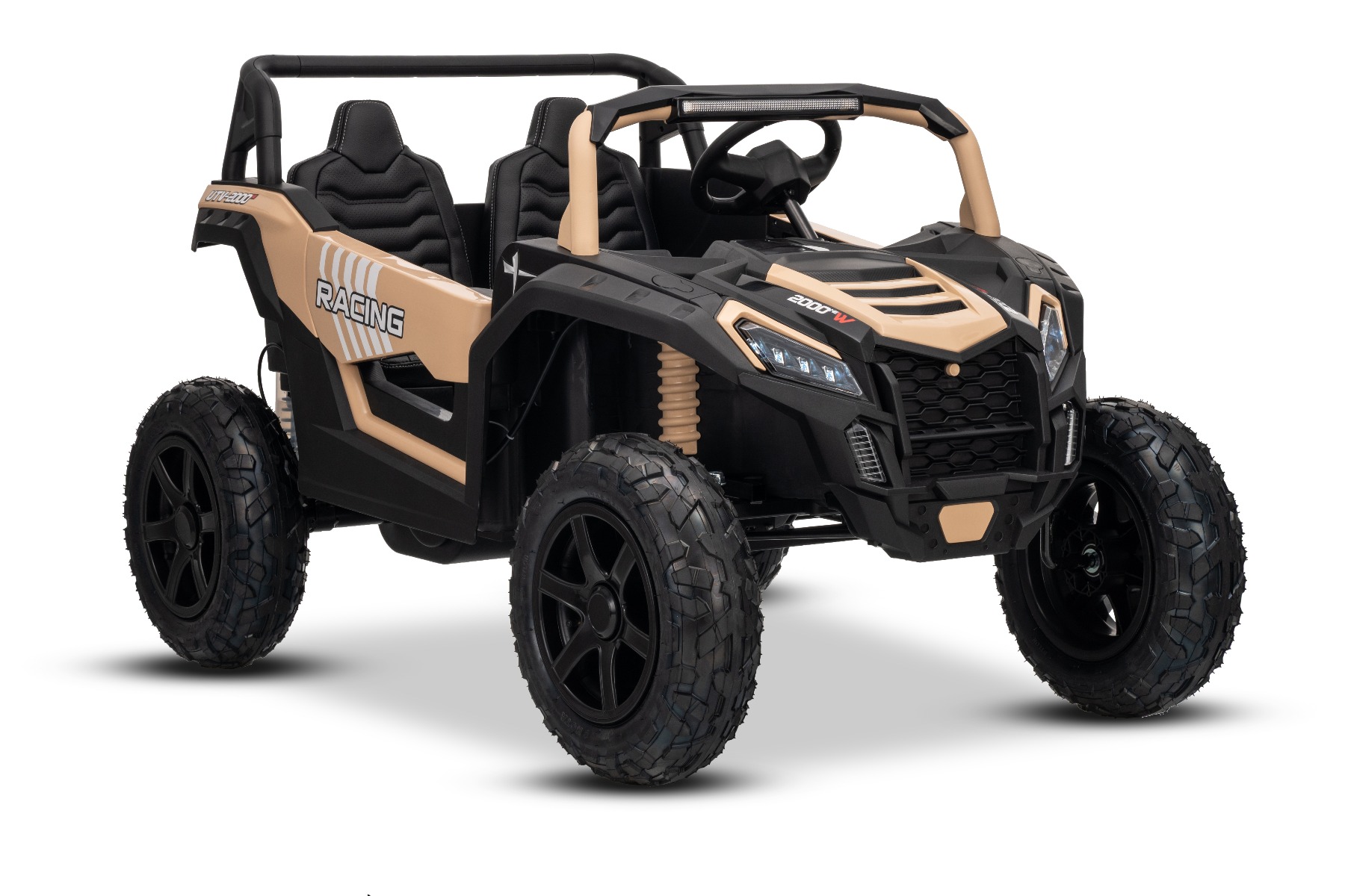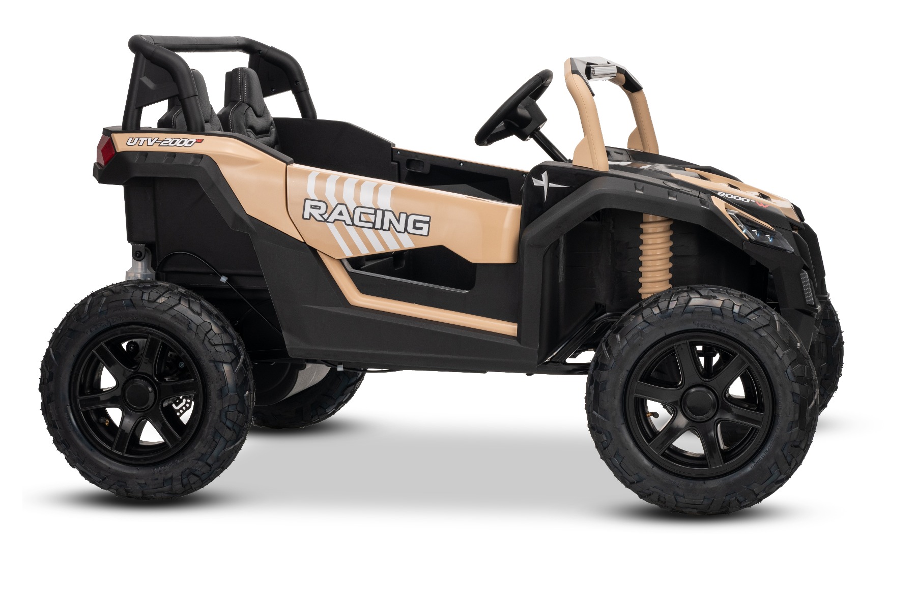 Mașina electrica copii UTV XXL 24V, kaki, cu două locuri, motor cu diferențial, roți gonflabile din cauciuc, punți spate cu suspensii, frână pe disc, scaun căptușit, volan reglabil, bluetooth, player MP3 cu intrare USB/SD