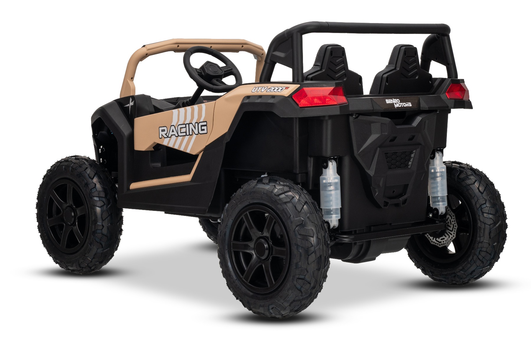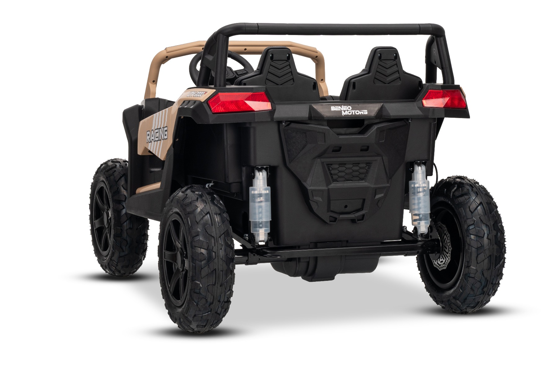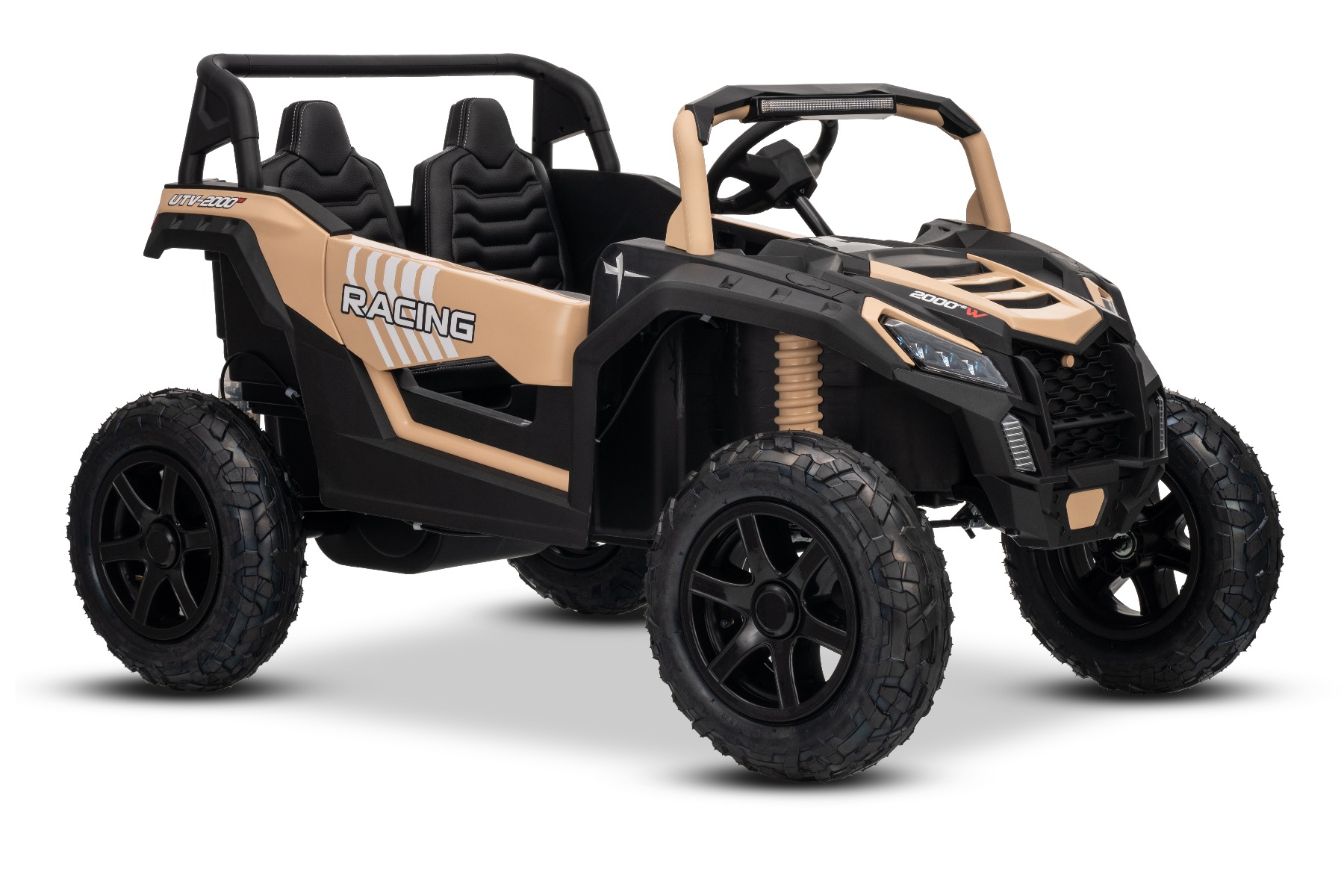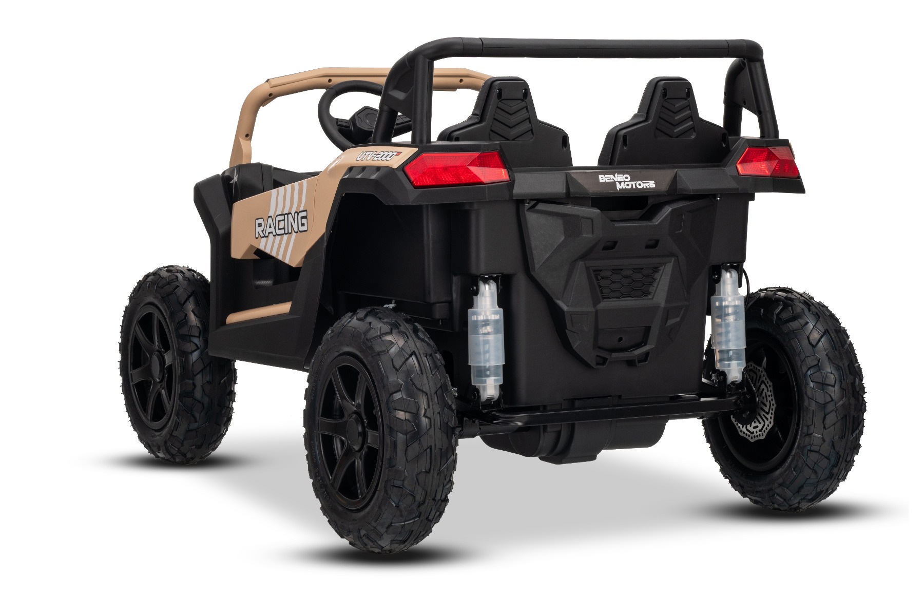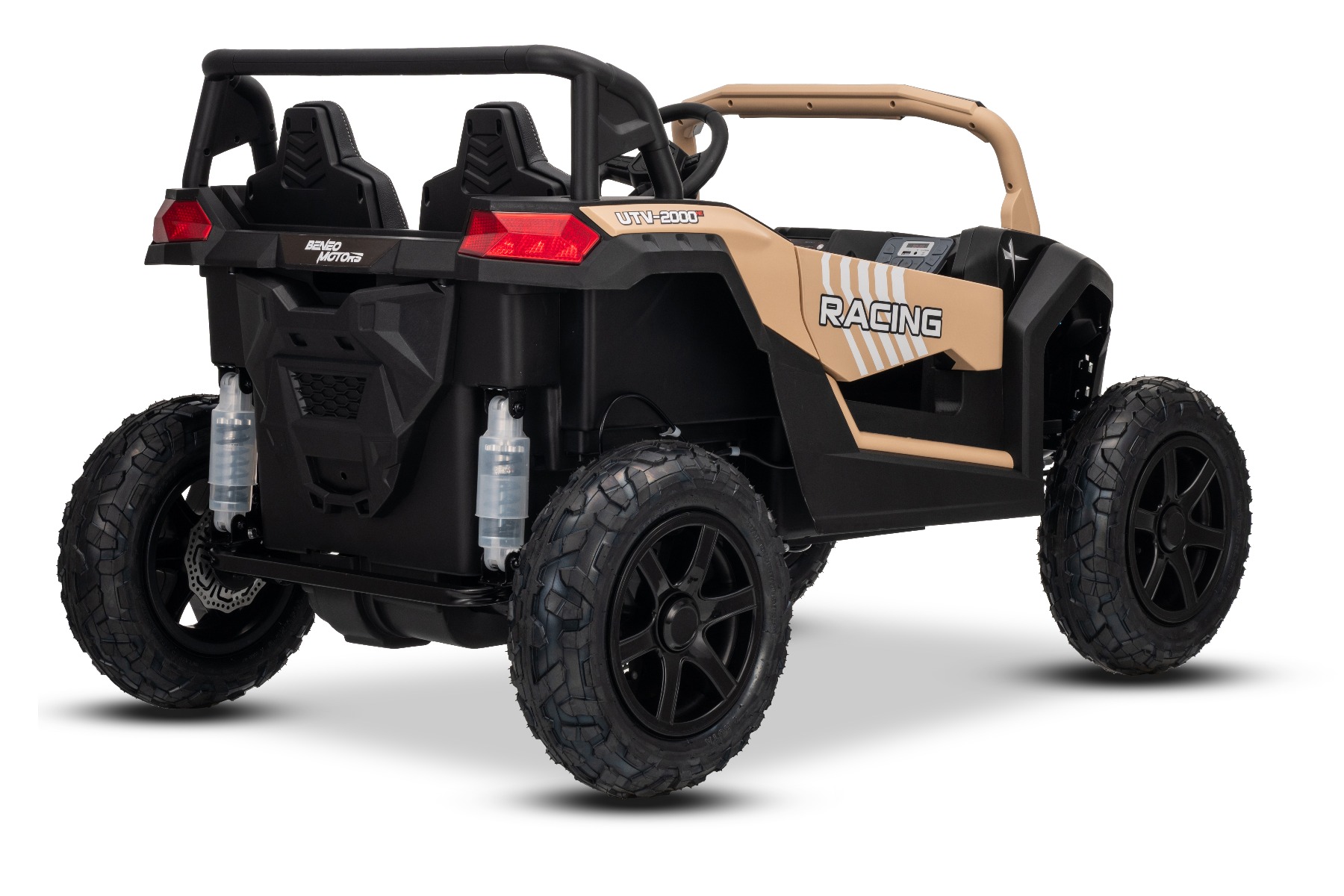 Mașina electrica copii UTV XXL 24V, kaki, cu două locuri, motor cu diferențial, roți gonflabile din cauciuc, punți spate cu suspensii, frână pe disc, scaun căptușit, volan reglabil, bluetooth, player MP3 cu intrare USB/SD