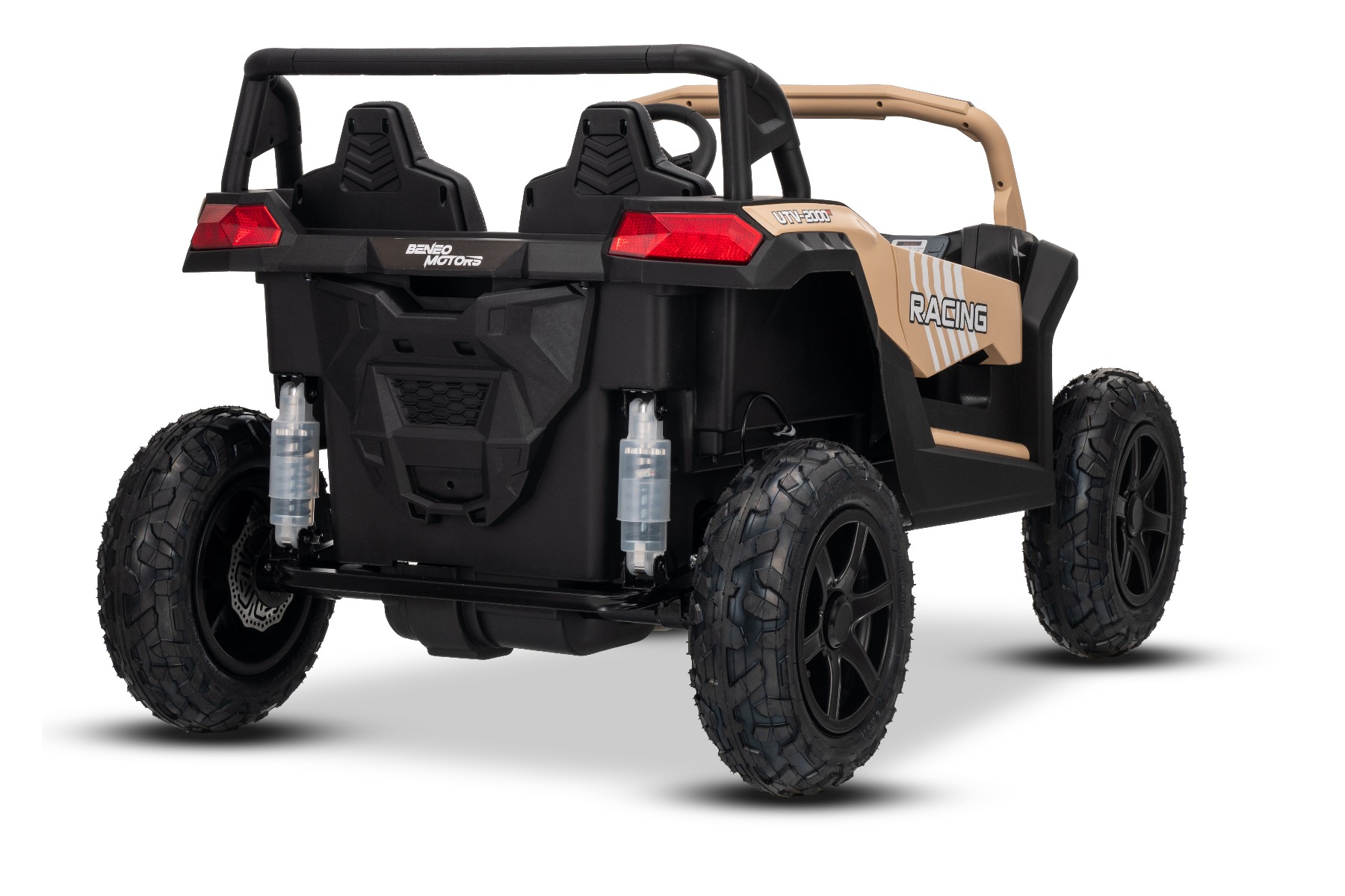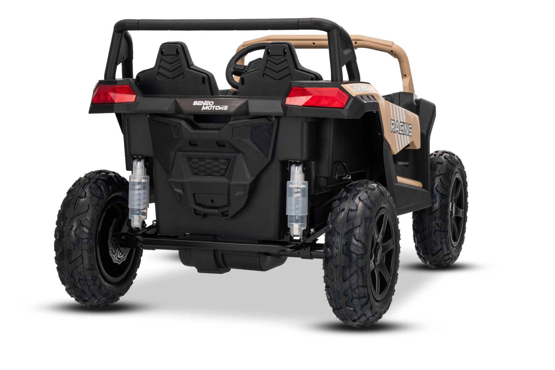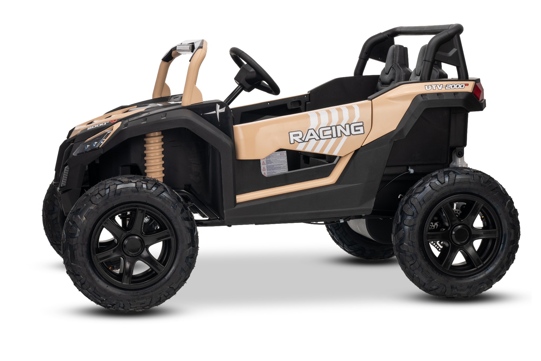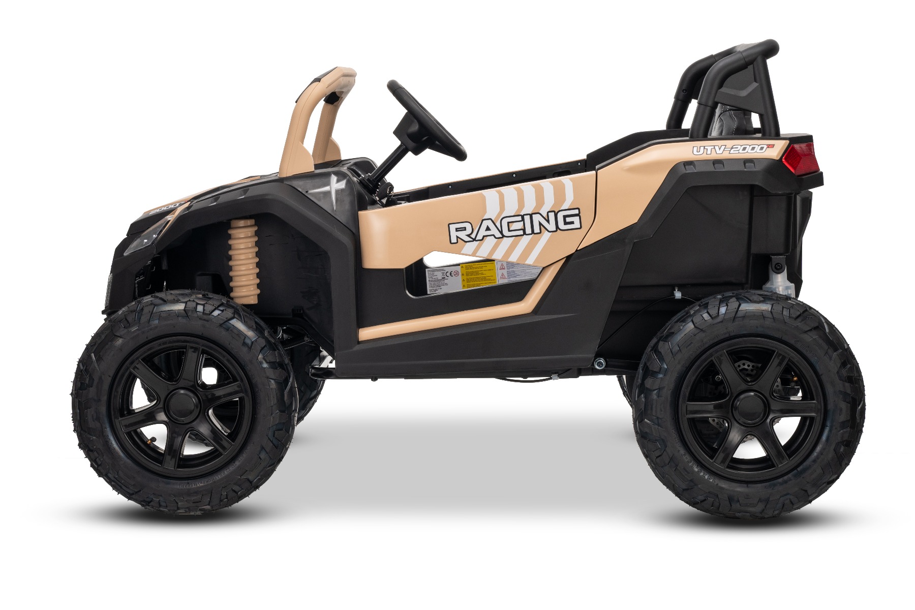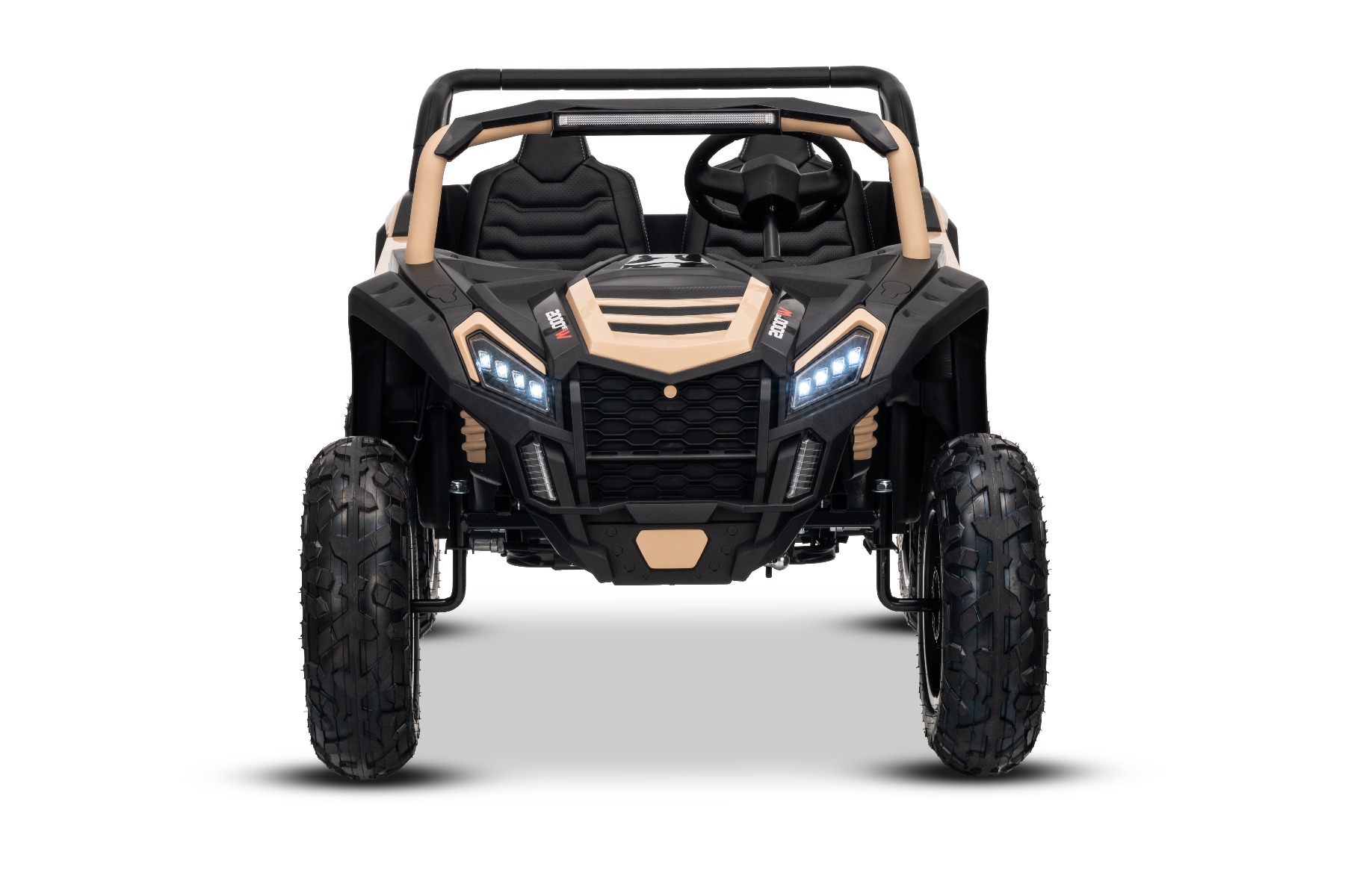 Mașina electrica copii UTV XXL 24V, kaki, cu două locuri, motor cu diferențial, roți gonflabile din cauciuc, punți spate cu suspensii, frână pe disc, scaun căptușit, volan reglabil, bluetooth, player MP3 cu intrare USB/SD