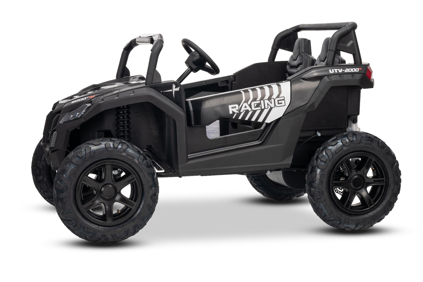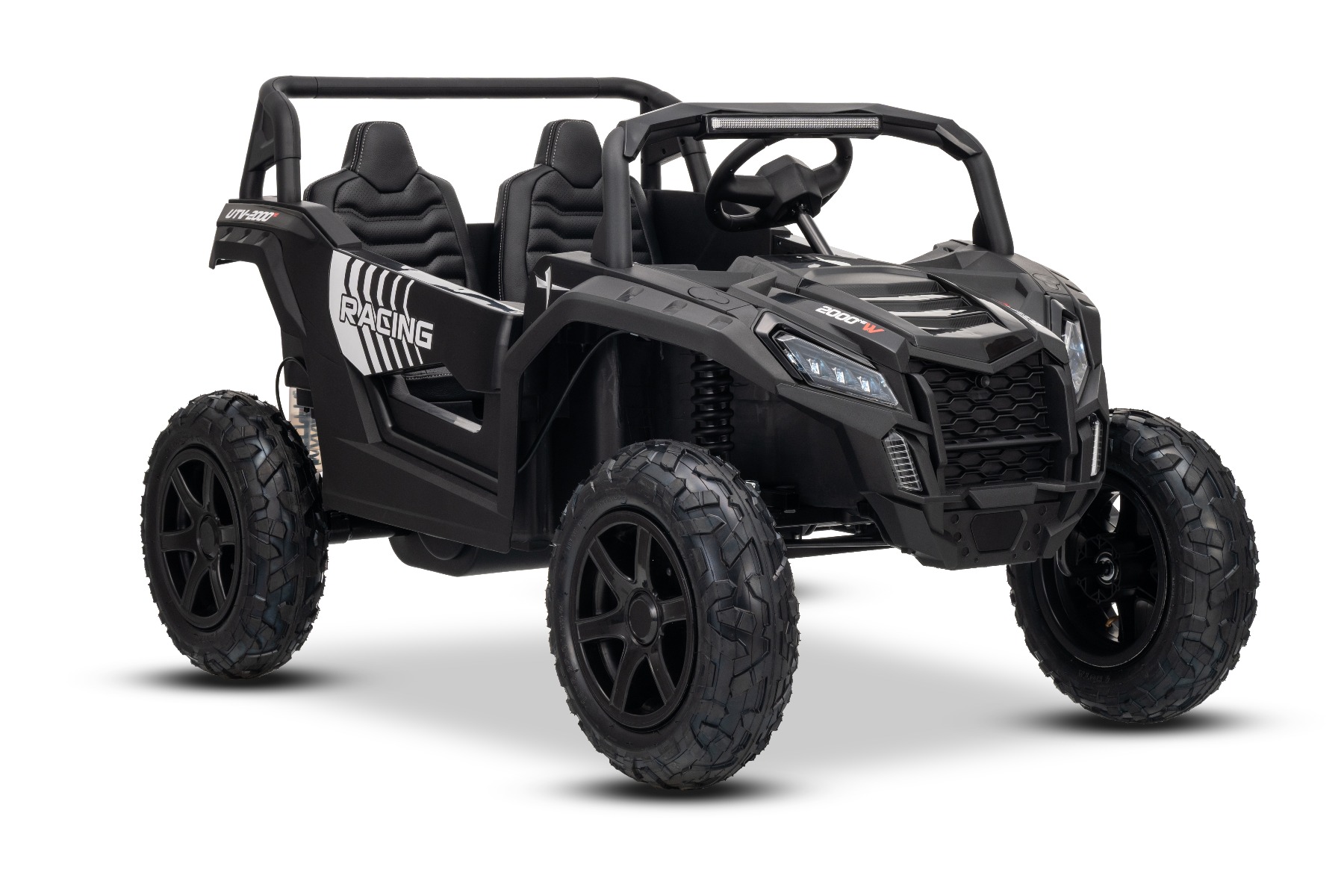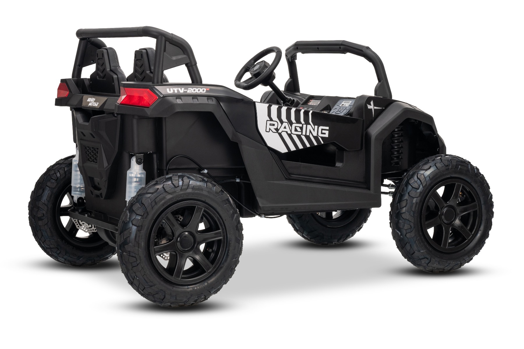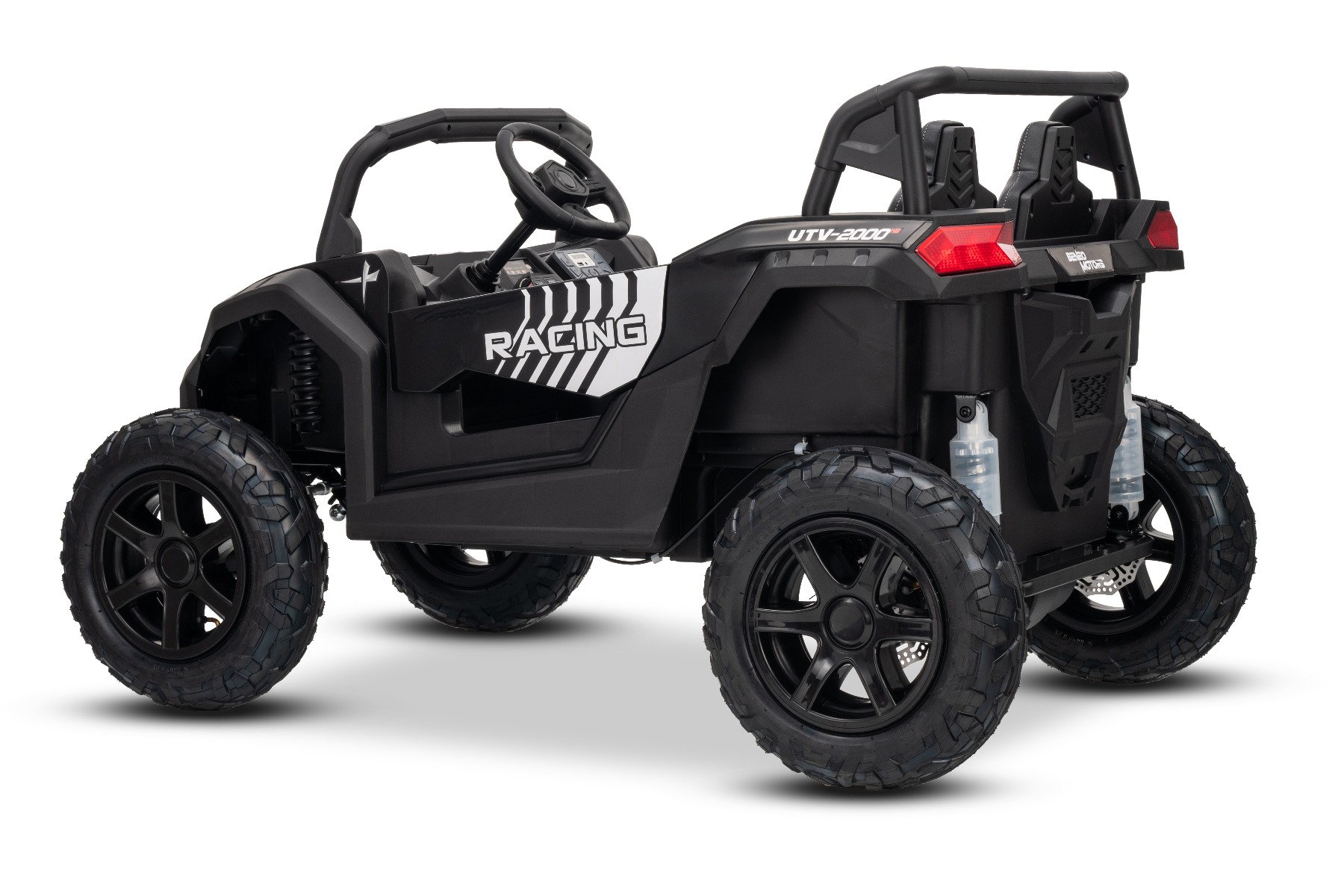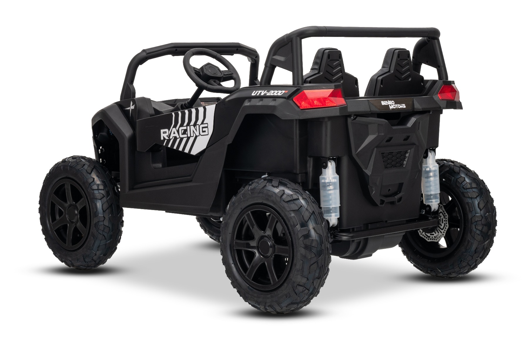 Mașina electrica copii UTV XXL 24V, negru, cu două locuri, motor cu diferențial, roți gonflabile din cauciuc, punți spate cu suspensii, frână pe disc, scaun căptușit, volan reglabil, bluetooth, player MP3 cu intrare USB/SD