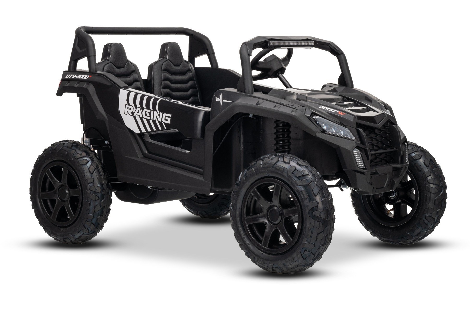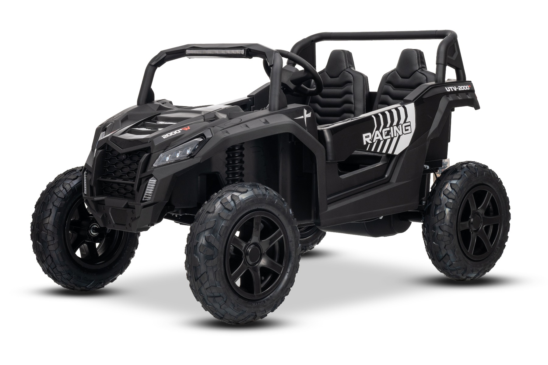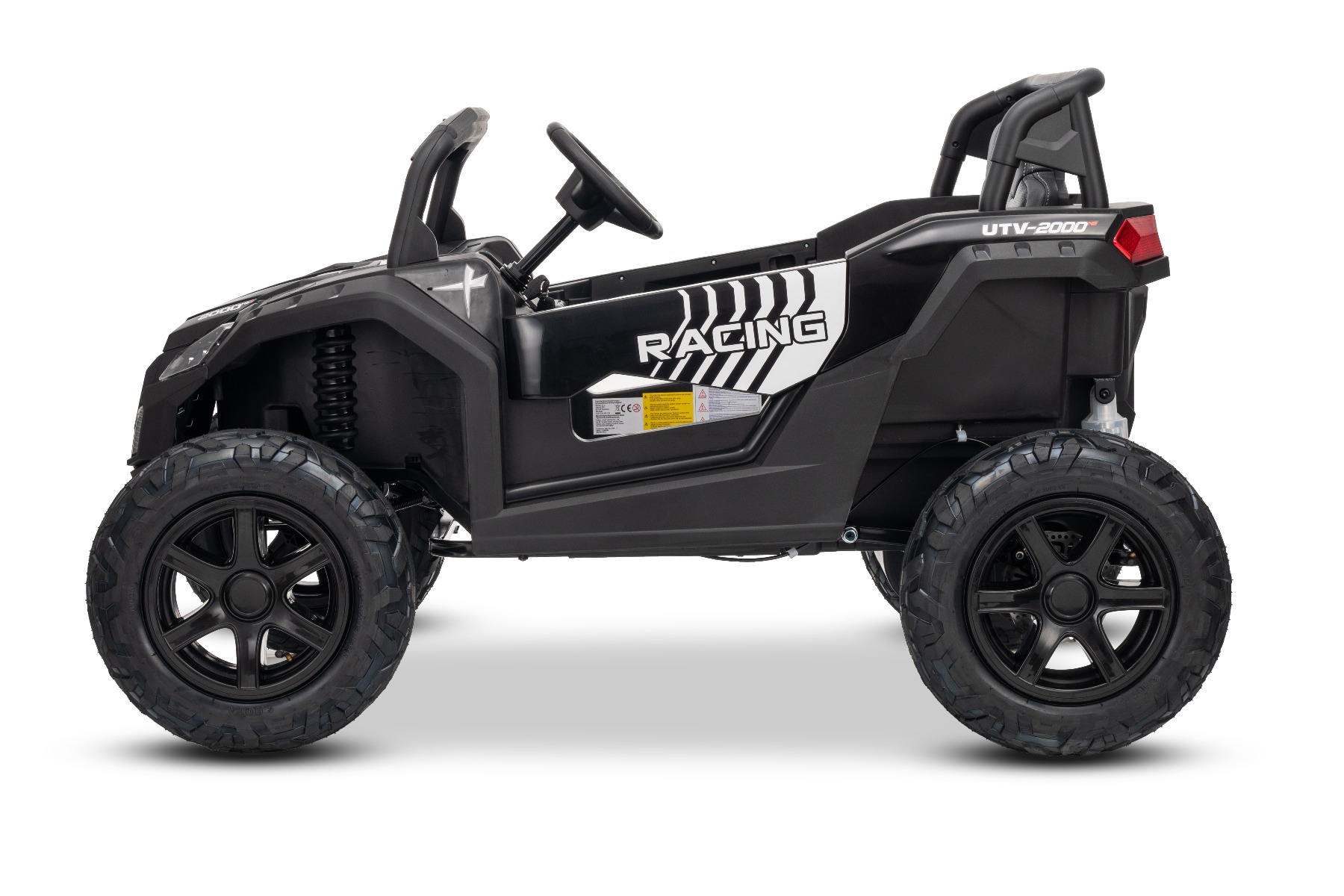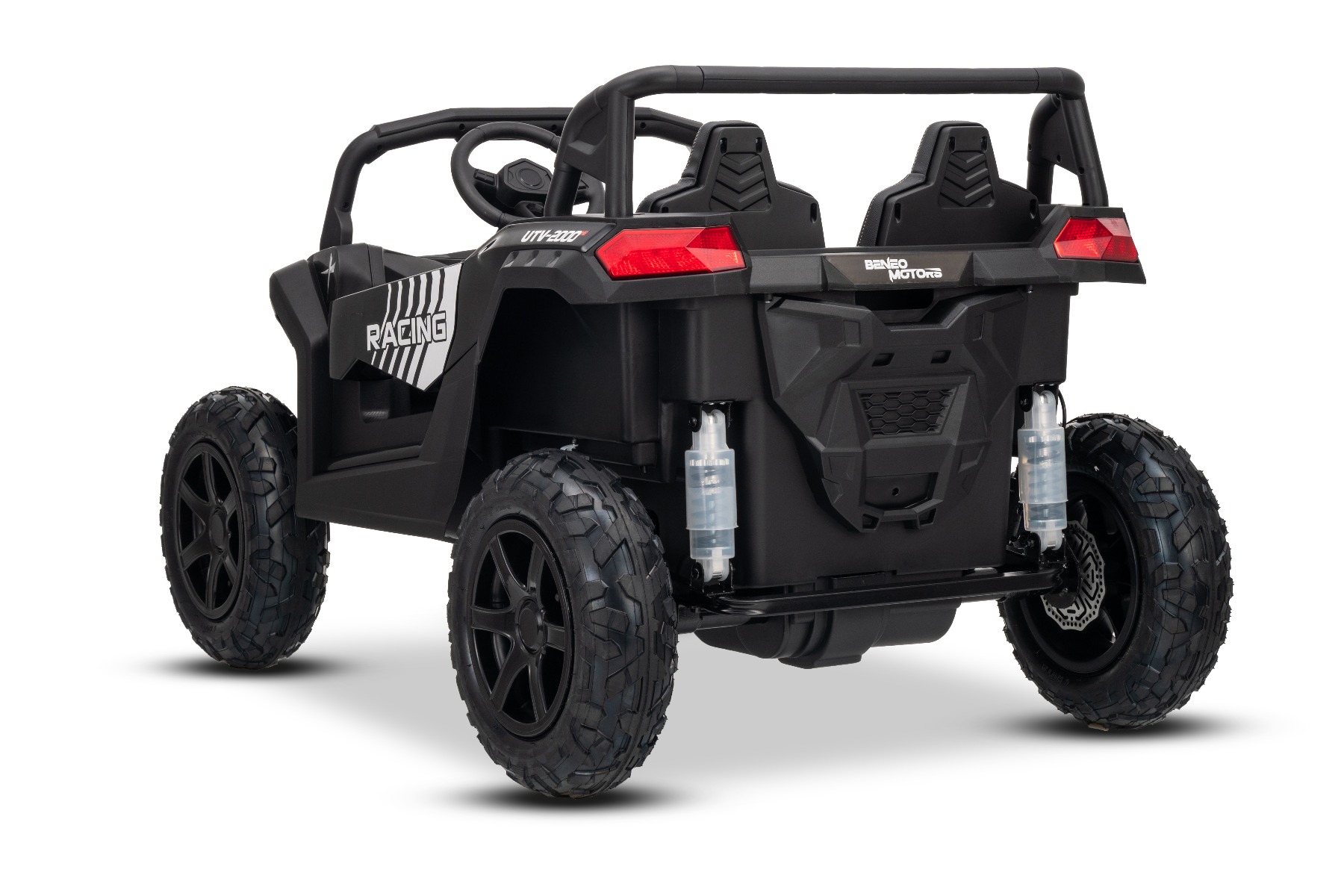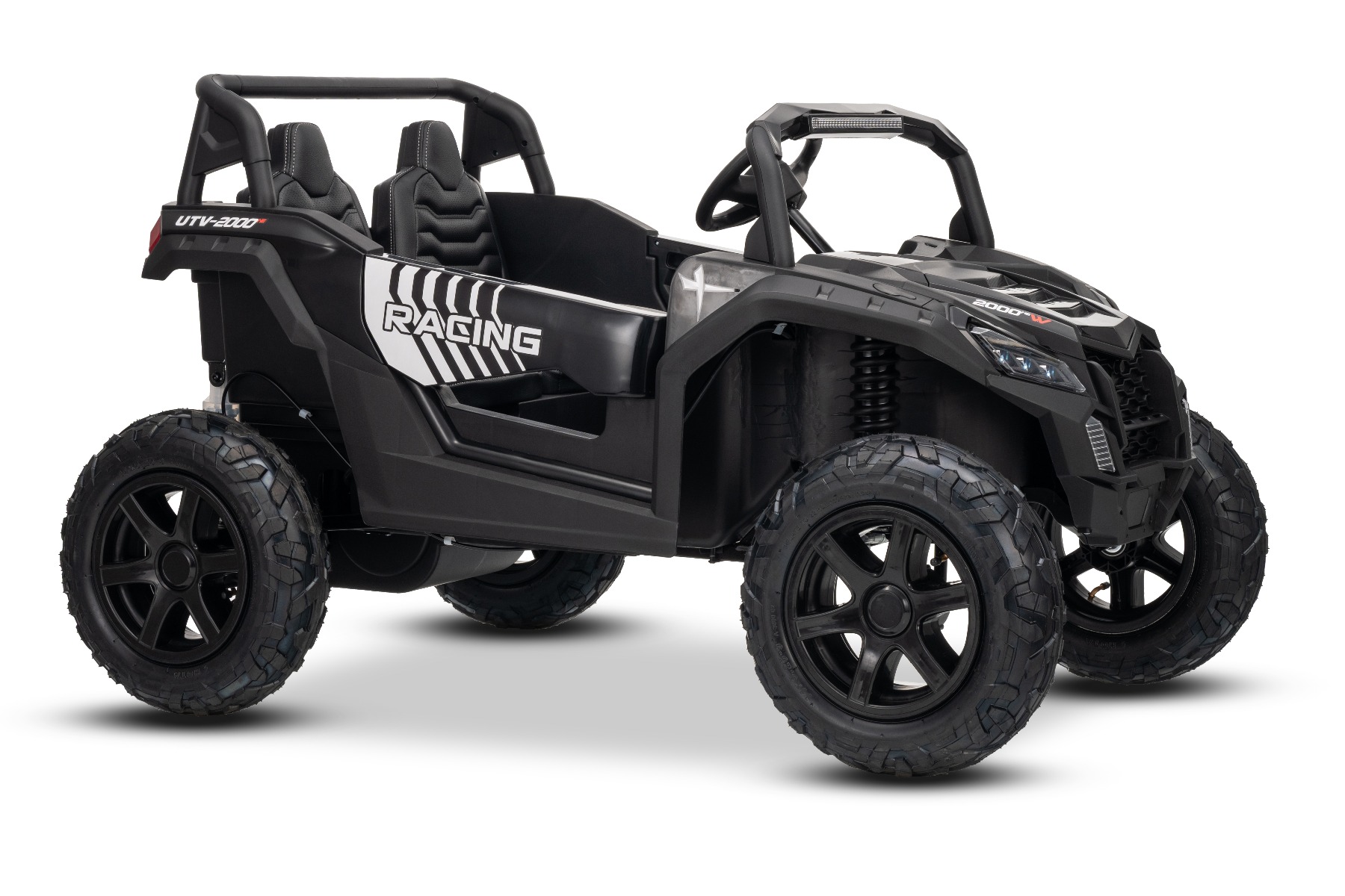 Mașina electrica copii UTV XXL 24V, negru, cu două locuri, motor cu diferențial, roți gonflabile din cauciuc, punți spate cu suspensii, frână pe disc, scaun căptușit, volan reglabil, bluetooth, player MP3 cu intrare USB/SD