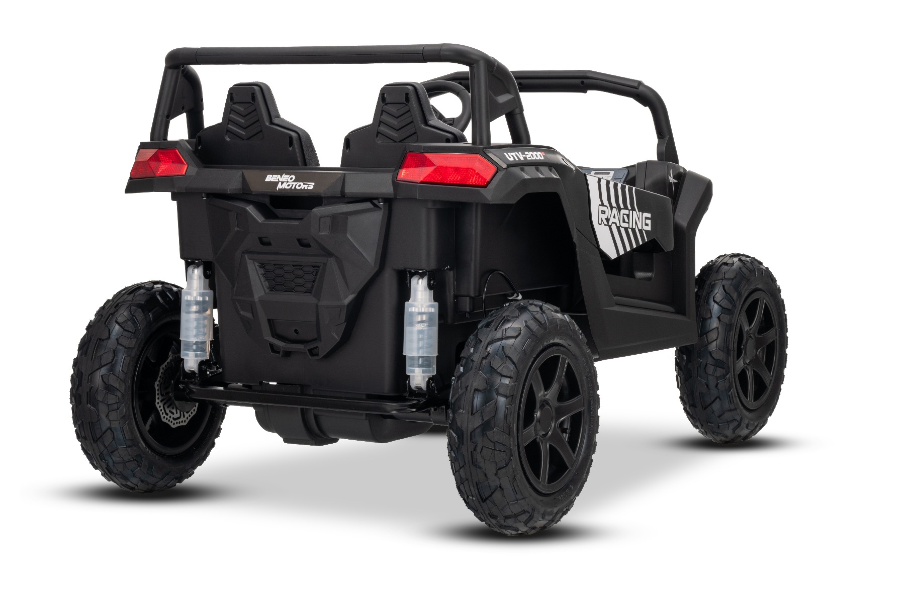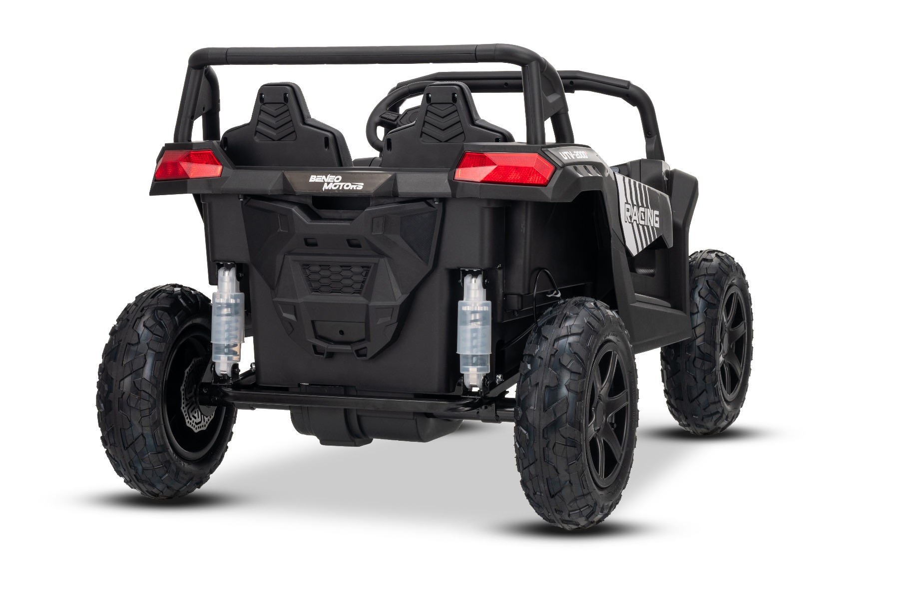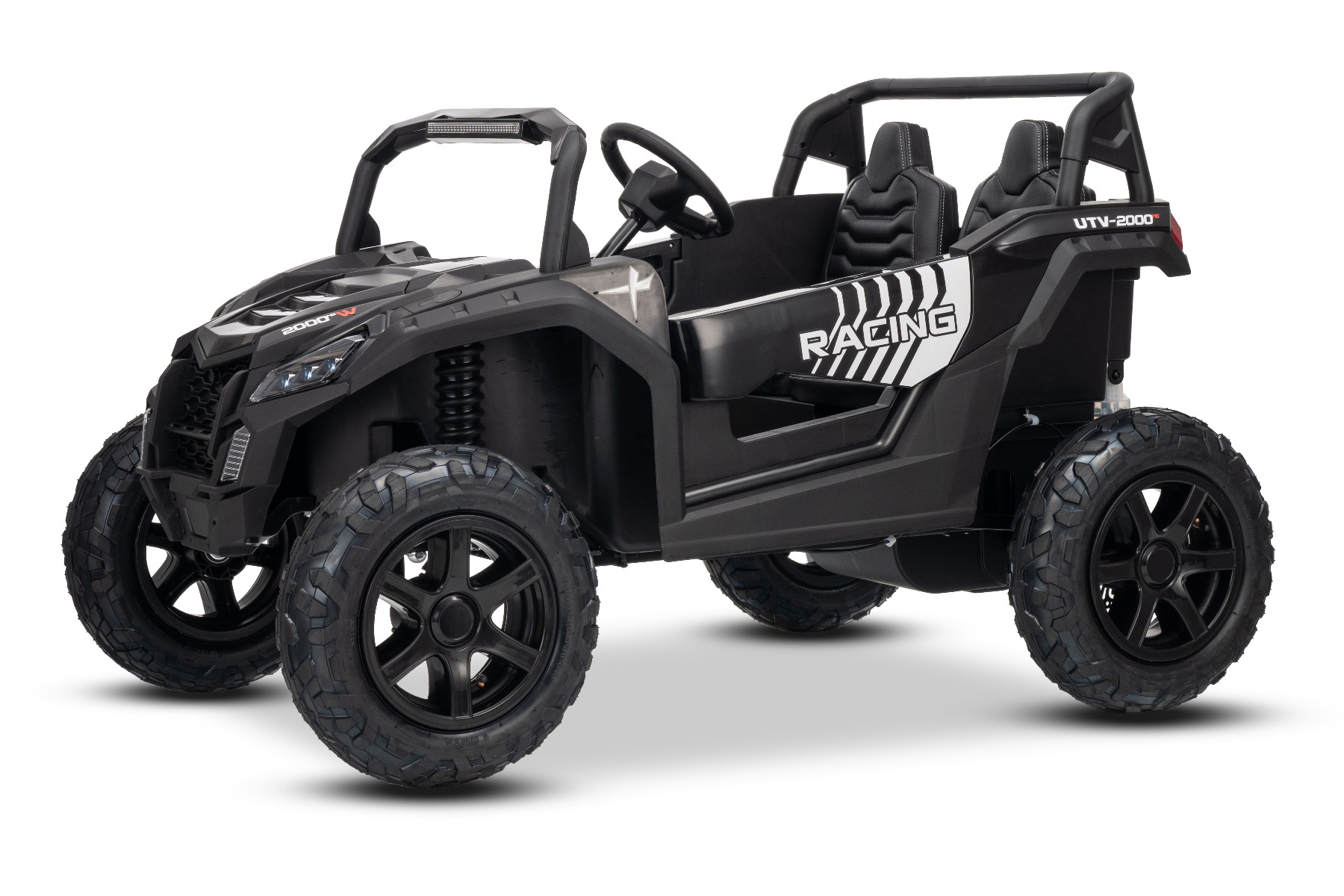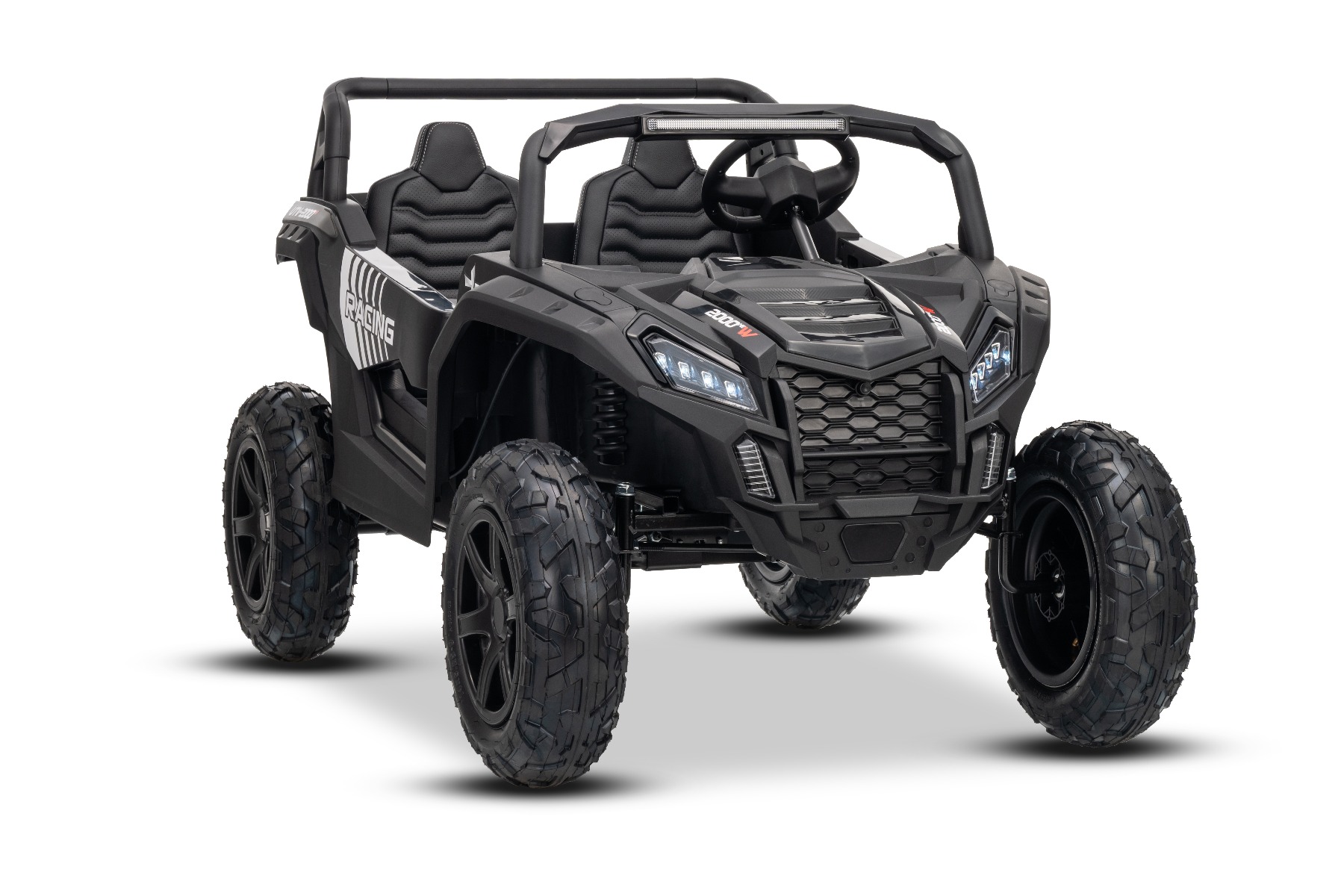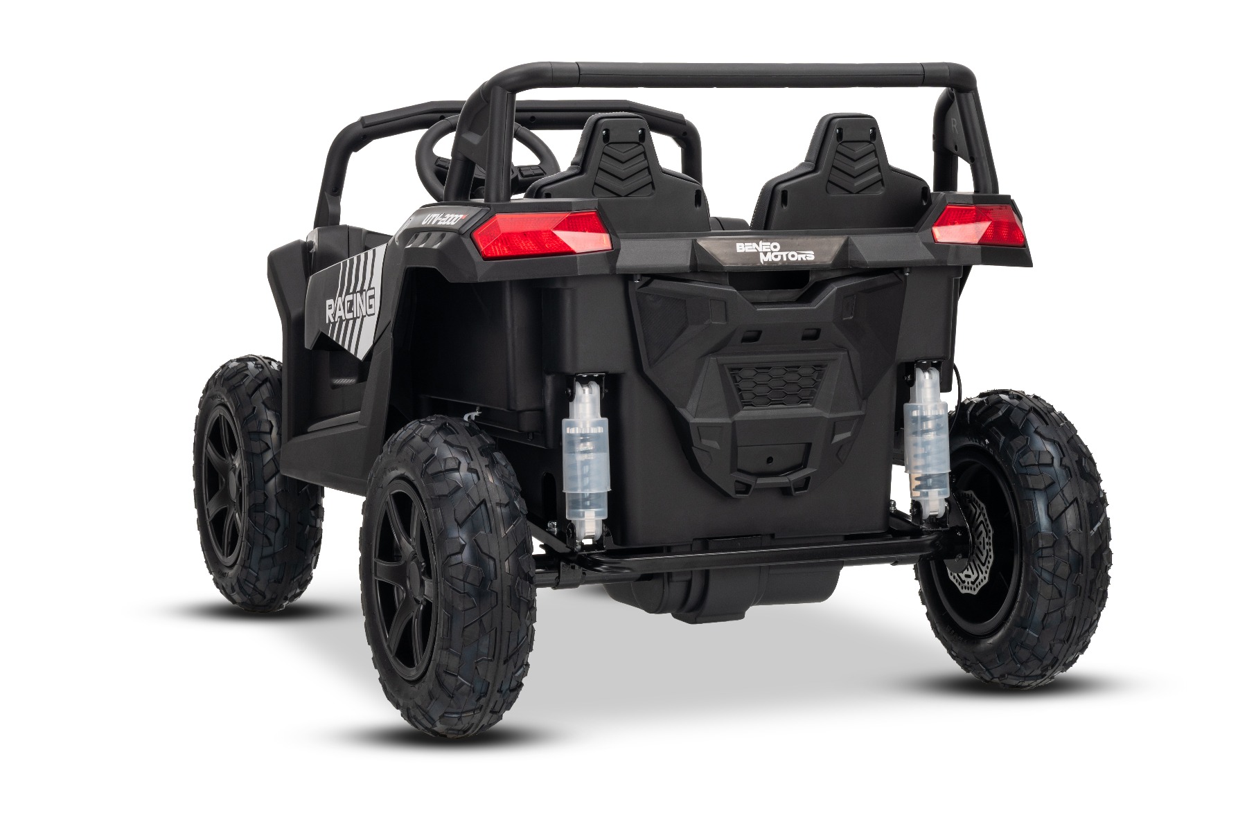 Mașina electrica copii UTV XXL 24V, negru, cu două locuri, motor cu diferențial, roți gonflabile din cauciuc, punți spate cu suspensii, frână pe disc, scaun căptușit, volan reglabil, bluetooth, player MP3 cu intrare USB/SD
