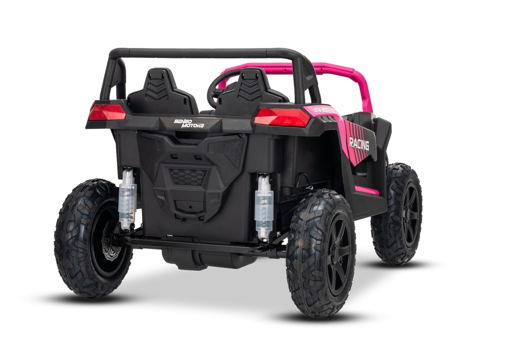 Mașina electrica copii UTV XXL 24V, roz, cu două locuri, motor cu diferențial, roți gonflabile din cauciuc, punți spate cu suspensii, frână pe disc, scaun căptușit, volan reglabil, bluetooth, player MP3 cu intrare USB/SD