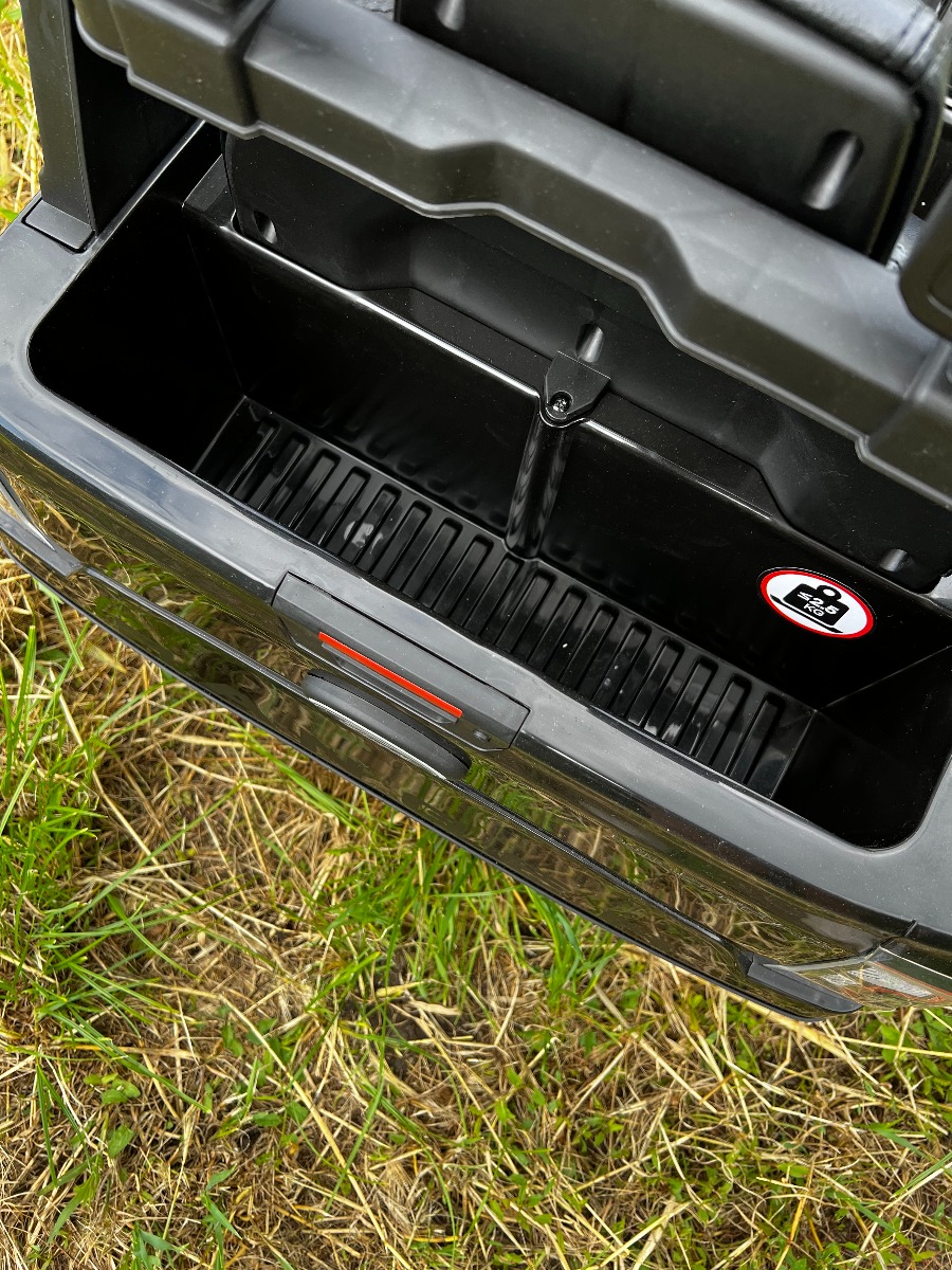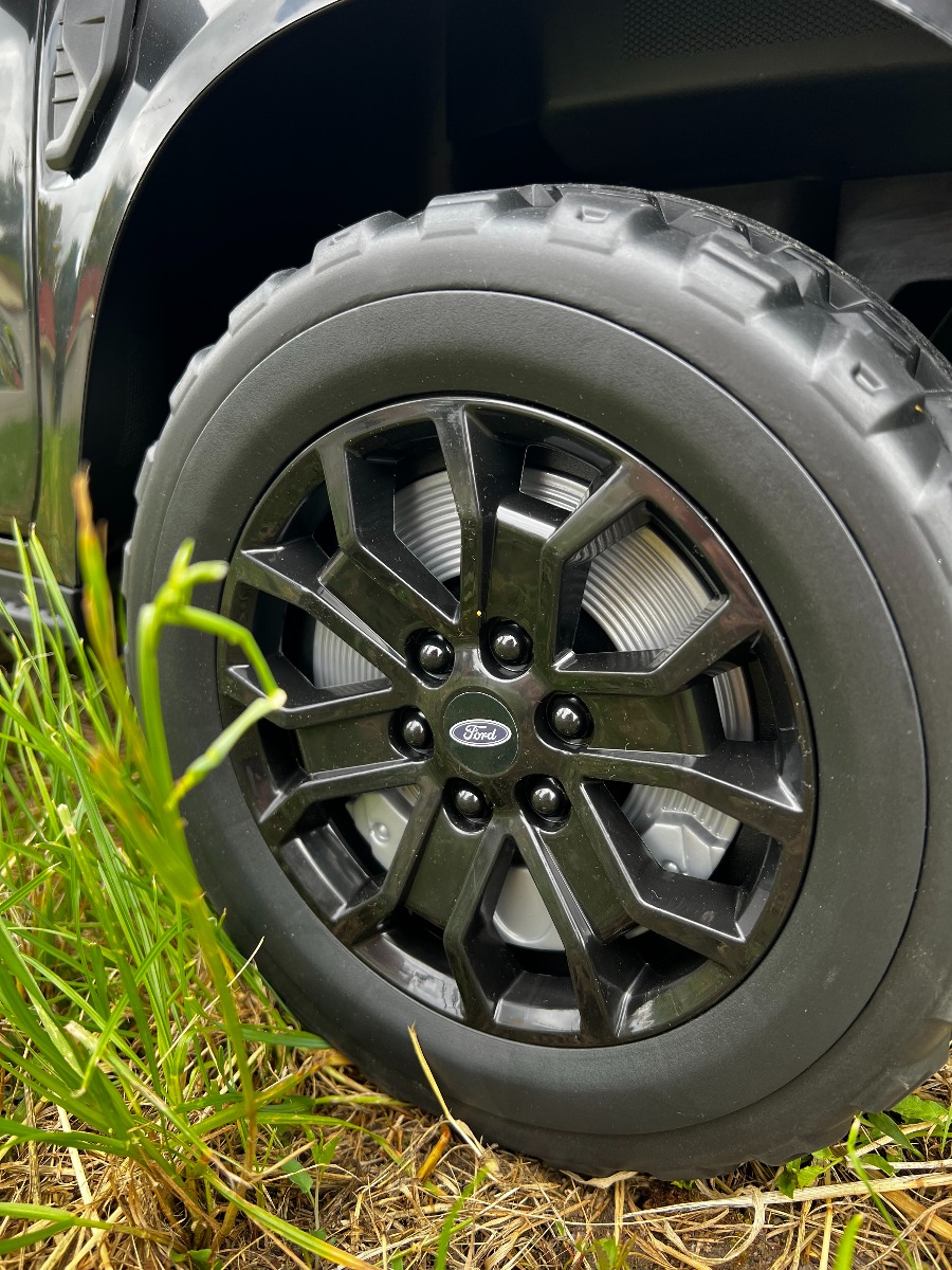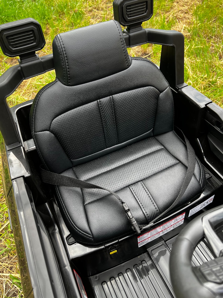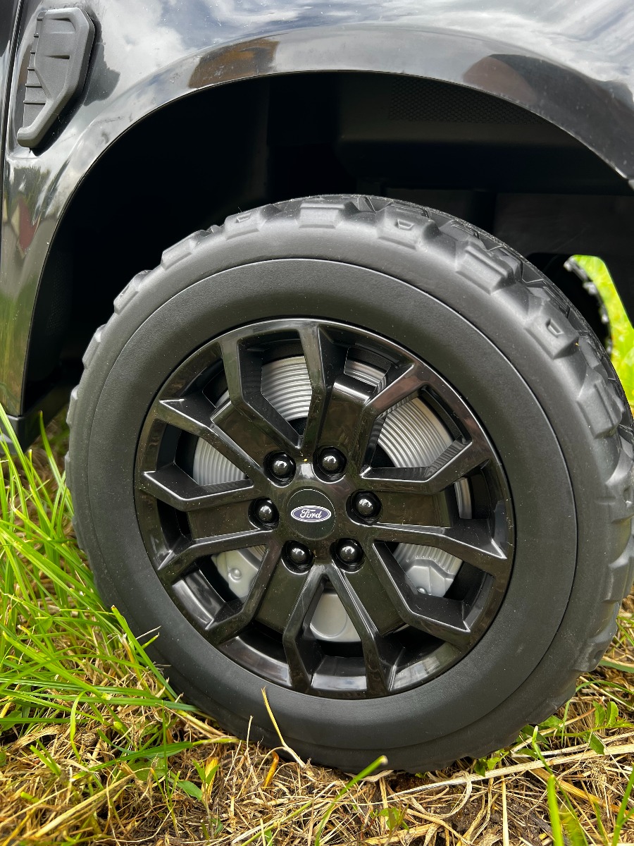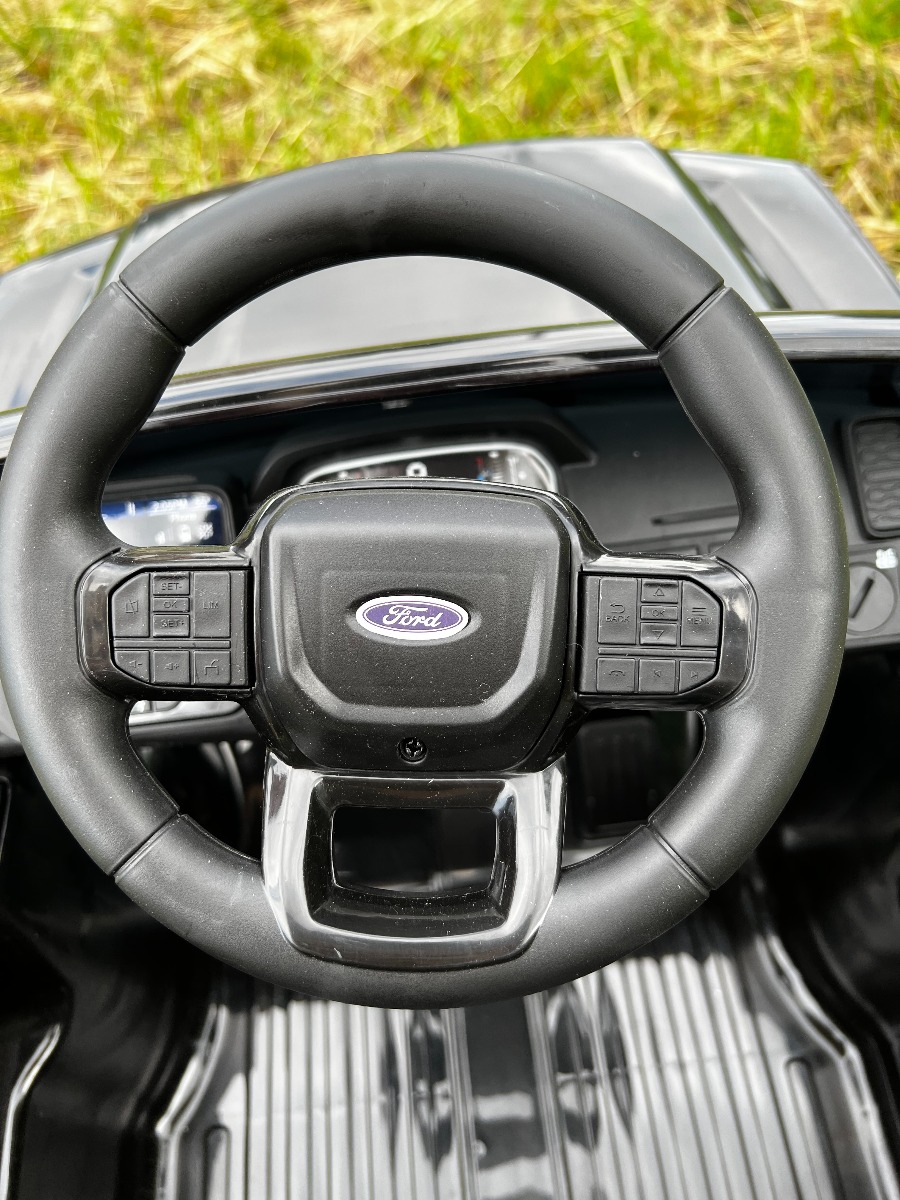 Mașină electrică de jucărie FORD Ranger 12V, negru, Scaun piele, Telecomandă 2,4 GHz, Intrare Bluetooth/USB, Suspensii, Baterie 12V, Roți din plastic, MOTOR 2 X 30W, Licență ORIGINALĂ