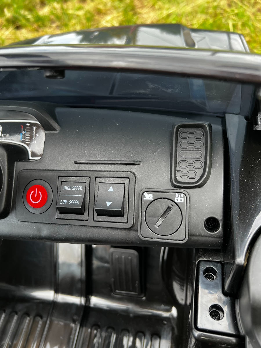 Mașină electrică de jucărie cu licență FORD Ranger cu conexiune Bluetooth O mașină perfectă cu un singur loc, cu un aspect luxos marca Ford. După pornire, modelul imită sunetul de pornire și luminile LED se aprind. Efecte sonore precum: claxon, pornire motor, sunet de condus, melodii, muzică, intrare USB, conexiune Bluetooth nu lipsesc din echipament. Volumul tuturor efectelor sonore este controlat de playerul MP3 integrat. Mașina are tracțiune spate, care este asigurată de două motoare de 35W, întrerupător de pornire iluminat, frână de parcare electrică, imitație vitezometru, două viteze înainte – (conducere lentă și rapidă), 1 viteză înapoi. Cu ajutorul telecomenzii, care funcționează la o frecvență de 2,4 GHz, este posibil să reglați viteza vehiculului, să schimbați direcția de mers sau să folosiți butonul de siguranță Stop, care oprește imediat vehiculul și îi dezactivează toate funcțiile. Mașina de jucărie poate fi controlată atât din telecomandă, cât și cu pedala de accelerație. Vehiculul este echipat cu o funcție de frână automată, care este activată atunci când piciorul este eliberat de pedala de accelerație. Accelerație lină – După ce apăsați pedala de accelerație, mașina de jucărie pornește, în timp ce pornirea este controlată electronic, astfel încât să fie lină datorită accelerației netede integrate. Datorită acestui lucru, atunci când apăsați pe pedală, nu există nicio smucitură neplăcută la pornire. Pachetul conține: Baterie incorporată de 12V, Adaptor cu indicator, Telecomandă. Caracteristici Scaun din piele Lumini LED MP3 player Port USB Telecomandă Volan multifunctional Suspensii Uși care se deschid Centură de siguranță Bluetooth Selector viteză Buton pornire Caracteristici speciale Lumini LED Buton de pornire Player MP3 cu Bluetooth Specificații tehnice / Dimensiunile produsului Model licențiat Tip de mașină: cu 1 loc Tracțiune: 2×2 Motor de mașină de jucărie: 2x motor 12 V / 30 W Număr de viteze: 3 (2 înainte și 1 înapoi) Viteză: 3-5 km/h Capacitate de încărcare: max. pana la 30 kg Baterie: 12V / 4.5Ah Timp de încărcare: min. 6-8 ore Pornire lină Frânare de urgență Centură de siguranță: centură în 2 puncte Suspensii spate Roți din plastic Scaun din piele Ușă care se deschid, cu încuietoare de siguranță Iluminare: lumini frontale Echipament multimedia: USB, control pe volan, conexiune Bluetooth Vârstă recomandată: 3 – 7 ani DIMENSIUNI: 105 x 64 x 60 cm Dimensiuni pachet: 108 x 57 x 35,5 cm Autonomie: 1 până la 2 ore.