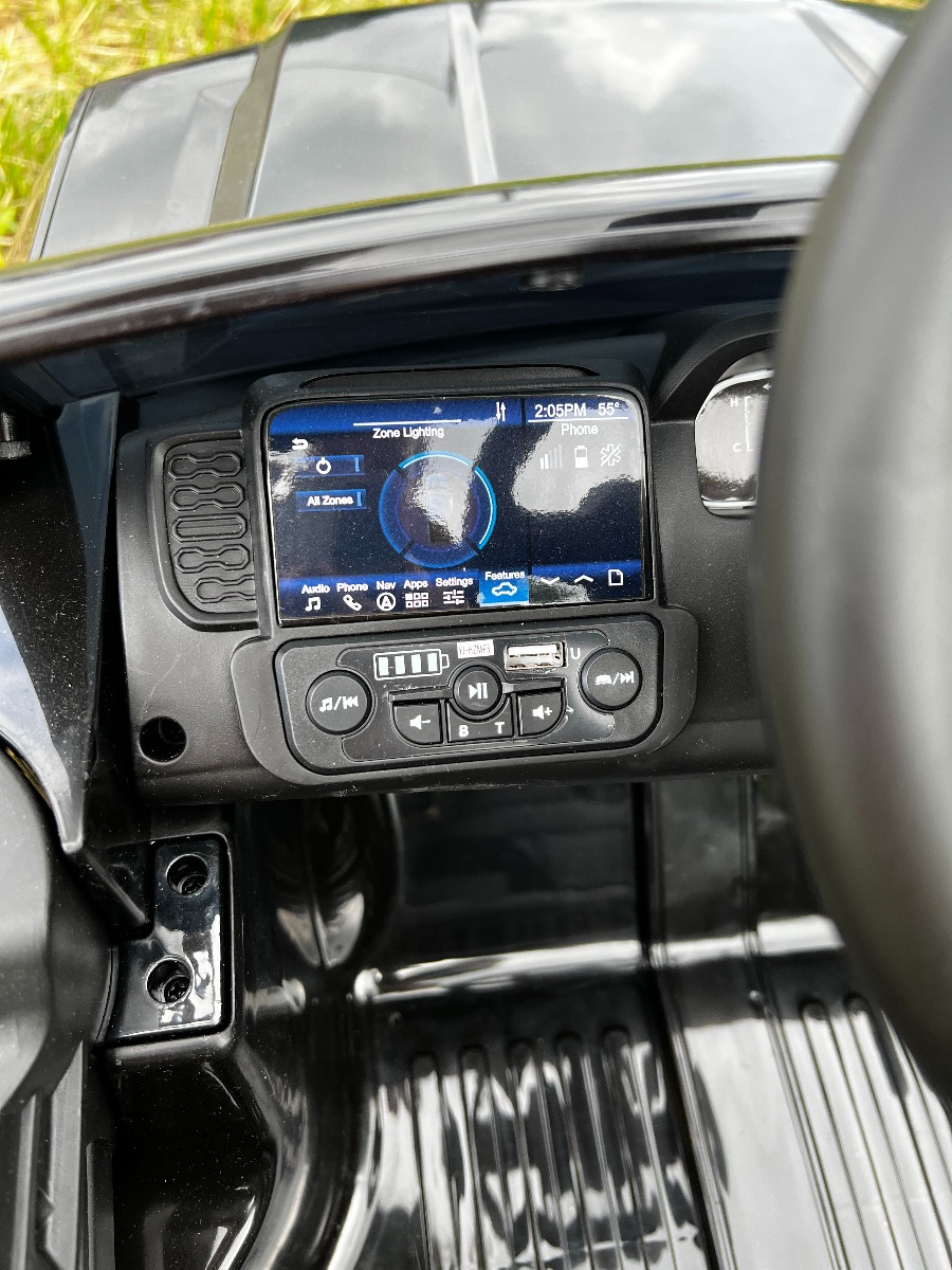 • Scaun din piele • Telecomandă de 2,4 GHz cu asociere la o anumită mașină de jucărie • Uși care se deschid • Suspensii spate • Pornire lină