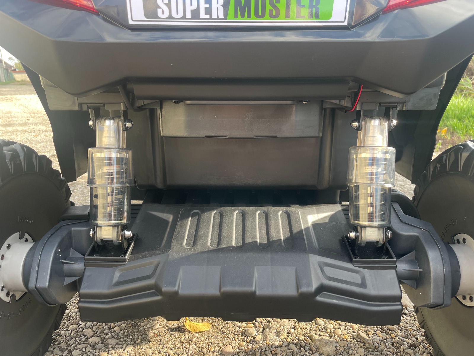 Mașină de jucărie electrică UTV imensă cu baterie litiu de 22V! 2 x Spații de depozitare, capacitate de încărcare testată de 100 kg 2 x Motoare de 200 W cu frâne electrice NOU: Baterie litiu 22.2V 4.5 AH Una dintre cele mai mari mașini din oferta noastră – UTV cu o baterie litiu de 22V și o frână electrică plasată pe motoarele extra-puternice de 200W. Mașina UTV are un aspect puternic, ușile se deschid, are 2 spații de depozitare, materiale de calitate și manopera excelentă. Are două scaune din piele, ceea ce o face potrivită pentru doi copii. • Roți din polimer EVA moi – asigură o deplasare liniștită și sunt rezistente la fisuri. • Axe suspendate cu protecție mecanică telescopică. Mașina este, de asemenea, echipată cu lumini față – spate și o punte iluminată în spate. 2 butoane elegante pentru claxon, muzică și melodii moderne, conexiune pentru MP3, USB, AUX și control al volumului și sunetului. Pentru siguranța copiilor, pe scaun există o centură de siguranță reglabilă. Ușă se deschide, efecte sonore, indicator de stare a bateriei, motoare de 2 x 200 W, cu tracțiune spate, 3 viteze înainte și 1 mers înapoi, datorită acestui echipament este potrivit[ și pentru conducerea off-road. Accelerație lină – Când pedala de accelerație este apăsată, mașina pornește, pornirea este controlată electronic, astfel încât să fie lină datorită accelerației line integrată. Nu există o pornire bruscă, neplăcută atunci când pedala este apăsată. Baterie litiu (22.2V4.5AH): Durata lungă de viață – Rezistă la mai multe cicluri de încărcare. Capacitate mare – Sunt ușoare și puternice. Încărcare rapidă – Se încarcă rapid și se descarcă lent. Posibilitate de a conduce chiar și pentru copiii mai mici – datorită setării unei viteze mai mici și a unui start lin !!! Frână electrică – pentru o oprire sigură și rapidă după eliberarea pedalei de accelerație Pachetul conține un adaptor cu indicator, nu supraîncarcă bateria + bateria reîncărcabilă. Caracteristici 2 locuri Roți EVA Scaun din piele Lumini LED MP3 player Port USB Telecomandă Volan multifunctional Suspensii Uși care se deschid Centură de siguranță Selector viteză Buton pornire Baterie litiu-ion Caracteristici speciale Suspensii Uși care se deschid Specificații tehnice / Dimensiunile produsului Dimensiuni auto: 136 x 87 x 85 cm Dimensiuni pachet: 144 x 77 x 53 cm Potrivit pentru doi copii Pornirea lină a motorului – fără întreruperi la apăsarea clapetei de accelerație Frână electrică amplasată pe motoare – când pedala de accelerație este eliberată, aceasta se activează și mașina se oprește mai repede decât alte modele Roți moi din polimer EVA Axe cu suspensii Telecomandă de 2,4 GHz cu asocierea la o anumită mașină – nu mai există interferențe de semnal de la alte mașini FRÂNĂ DE URGENȚĂ CU TELECOMANDĂ – dezactivează toate funcțiile de conducere ale mașinii. Apăsarea din nou a frânei de urgență activează funcțiile de deplasare. Această inovație oferă un control parental maxim asupra vehiculului și o utilizare sigură. Opțiunea de setare a vitezei de la distanță, din telecomandă – telecomanda inovatoare permite părinților să seteze viteza de conducere în timp ce copiii conduc. Setați indicatorul de viteză din telecomandă Scaune tapițate Centuri de siguranță Deschiderea ușilor Lumini cu leduri MP3 player cu UBS/AUX pentru redarea muzicii în mașină Greutate: 41 kg Capacitate de încărcare: 70 kg, Testat până la 100 kg (Parametrii indicați în manual se referă la echipamentul de bază) Viteză: 3 – 7 km / h. Motor: 2 x 200W Motor 24V Baterie: Litiu (22.2V4.5AH) Încărcare: 4 până la 5 ore Timp de conducere: 2.5 până la 3,5 ore, în funcție de greutate și teren Categoria de vârstă: 3 – 8 ani