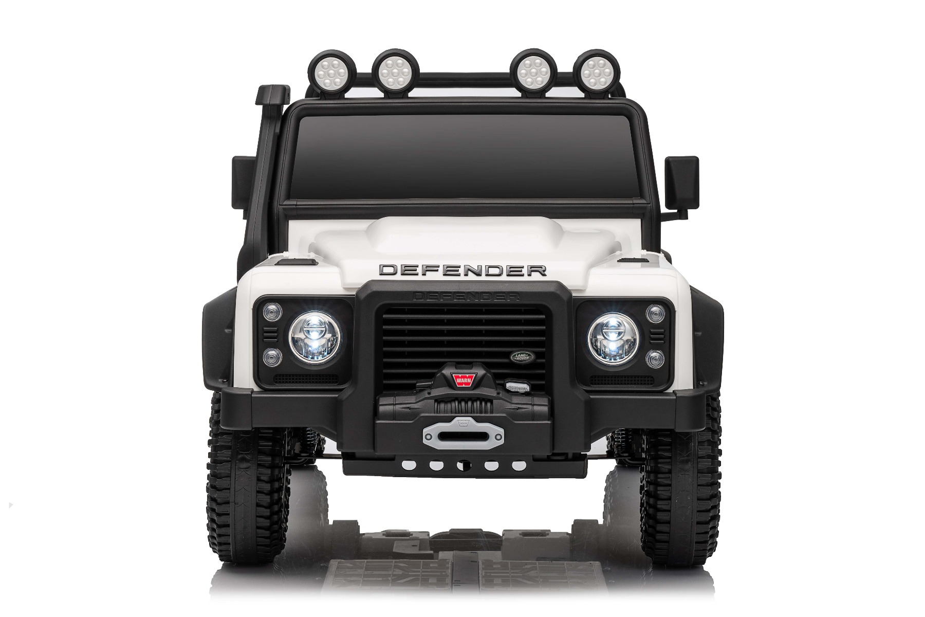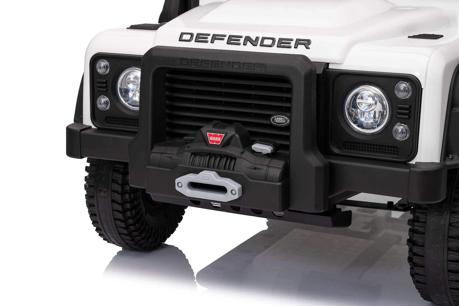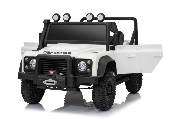 Maşinuţa electrica copii Land Rover Defender 110 SVX 12V, alb, tracțiune 4X4, lumini LED, suspensii față și spate, telecomandă 2.4 GHz, intrare USB/Aux, Bluetooth, baterie litiu, motor 4 X 25W, licență ORIGINALĂ