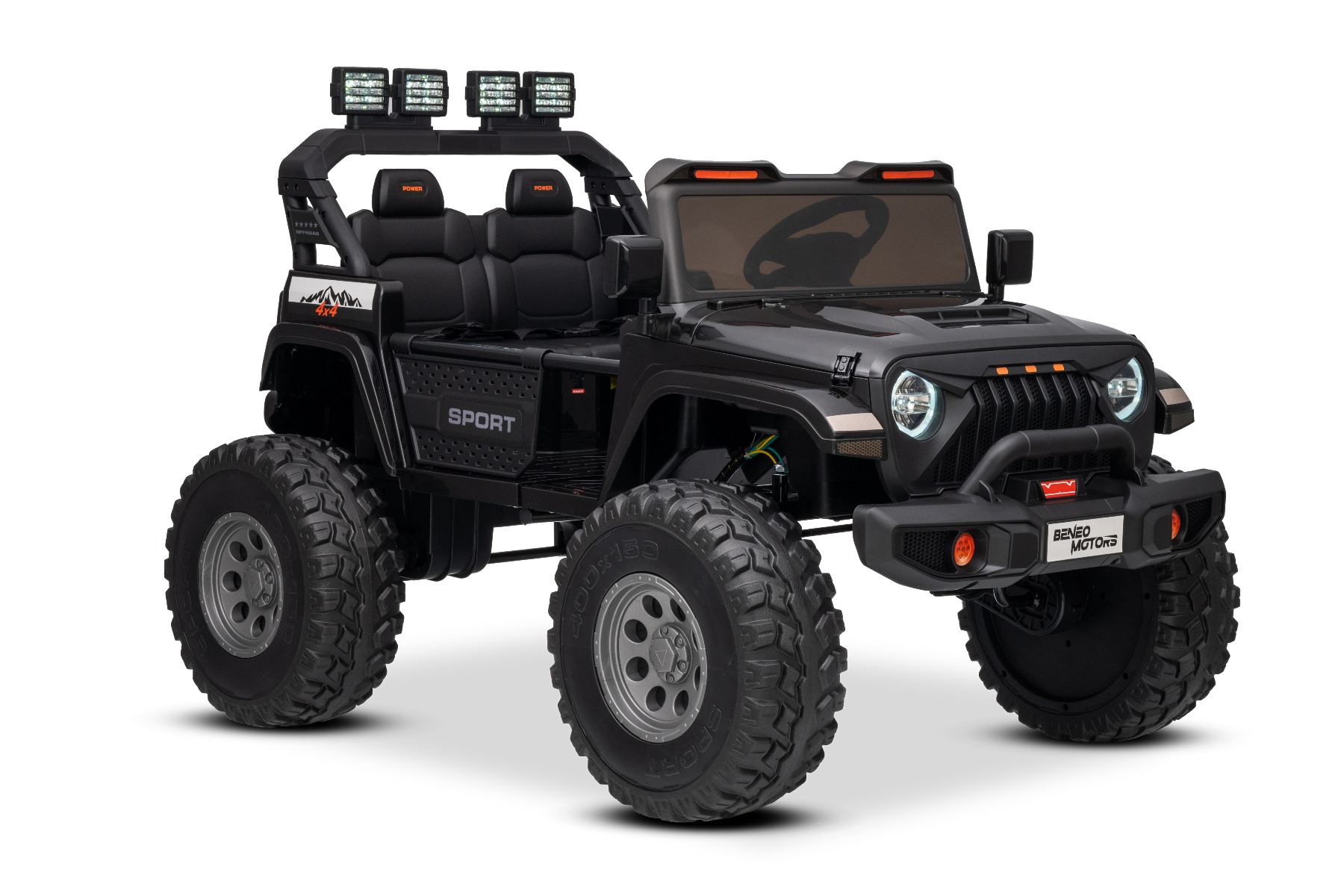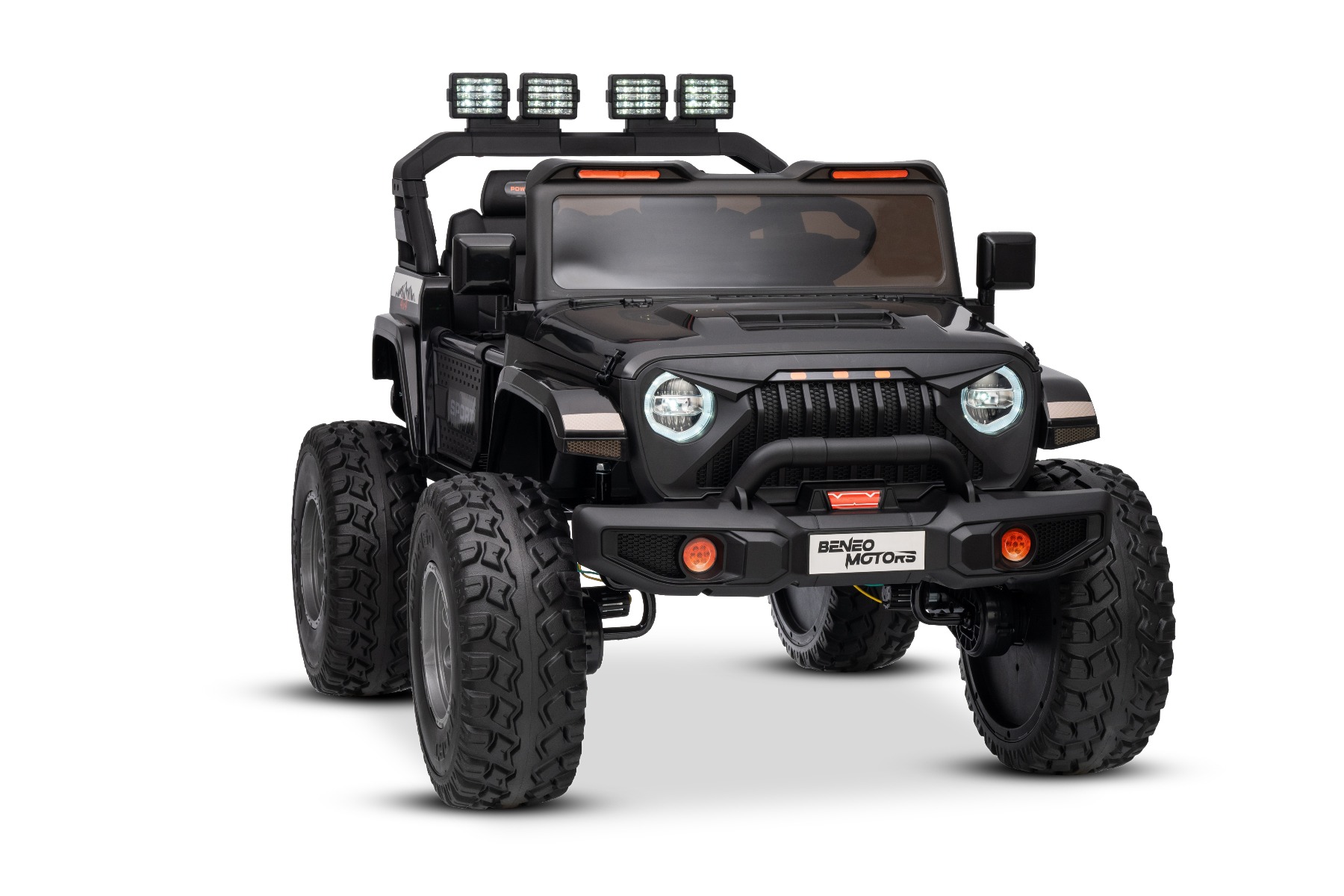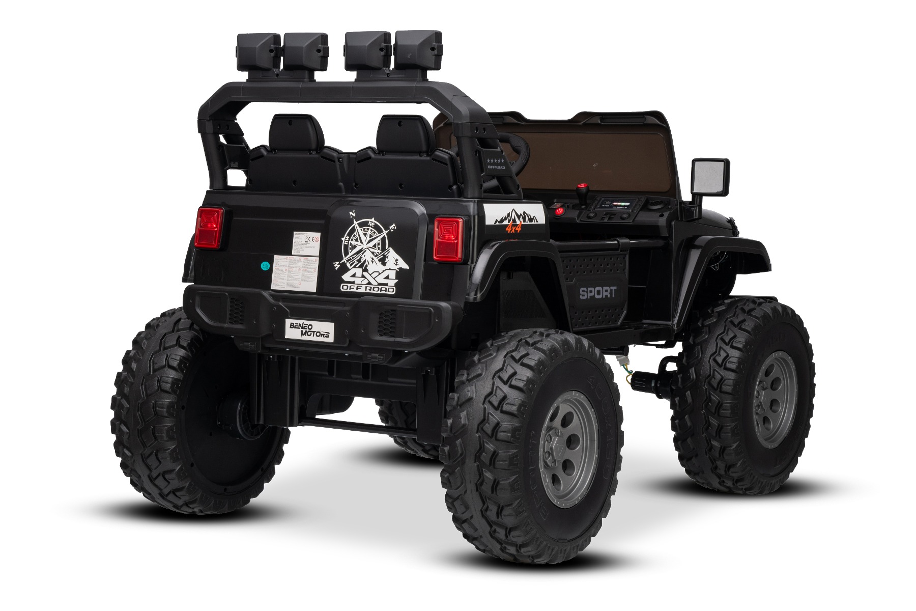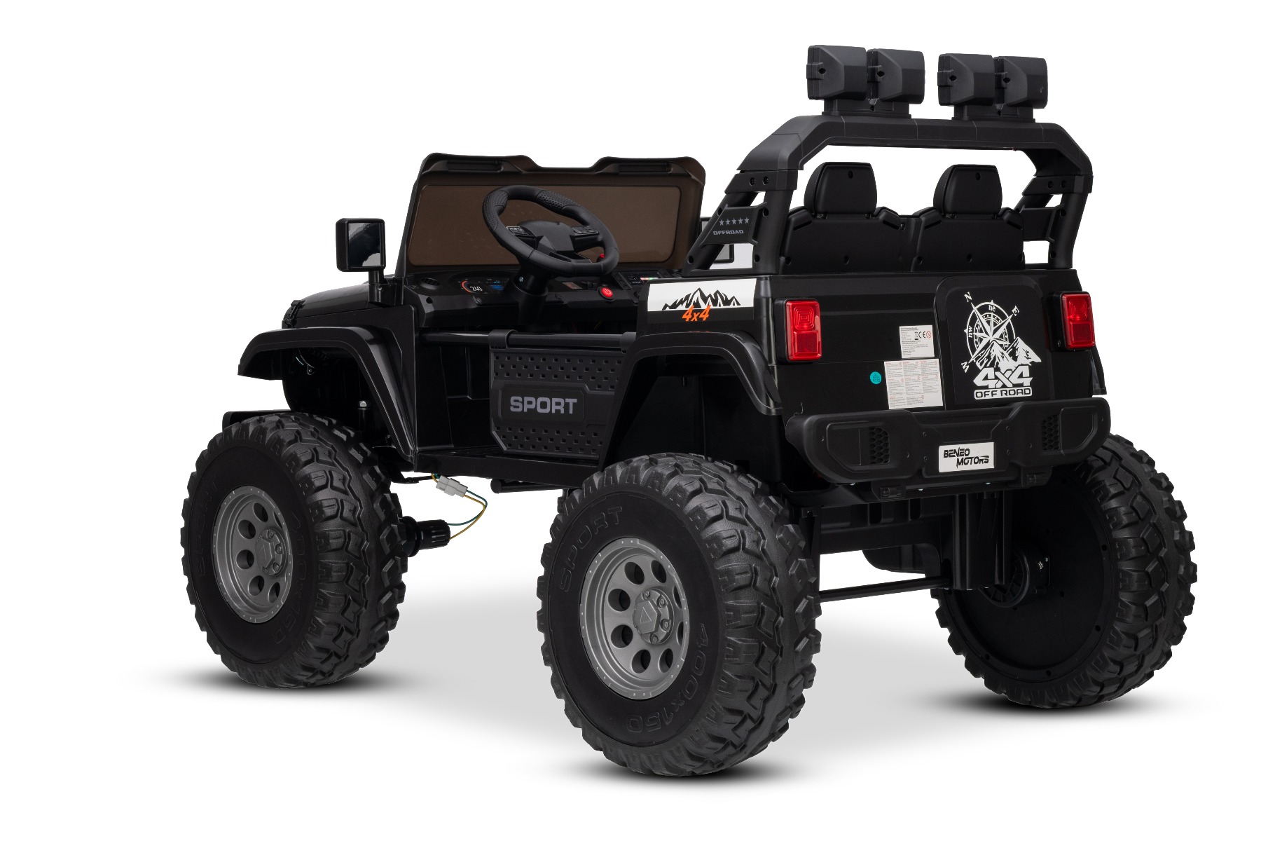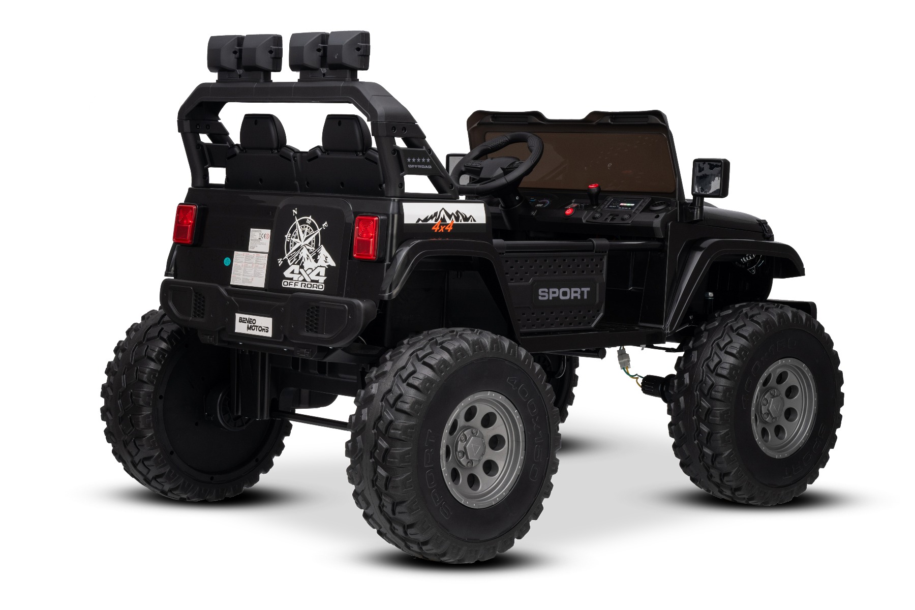 Maşinuţa electrica copii OFFRIDE 4×4² cu două locuri, 24V, negru, player MP3 cu intrare USB/AUX, transmisie 4×4, baterie litiu, roți EVA cu suspensie, telecomandă, lumini LED
