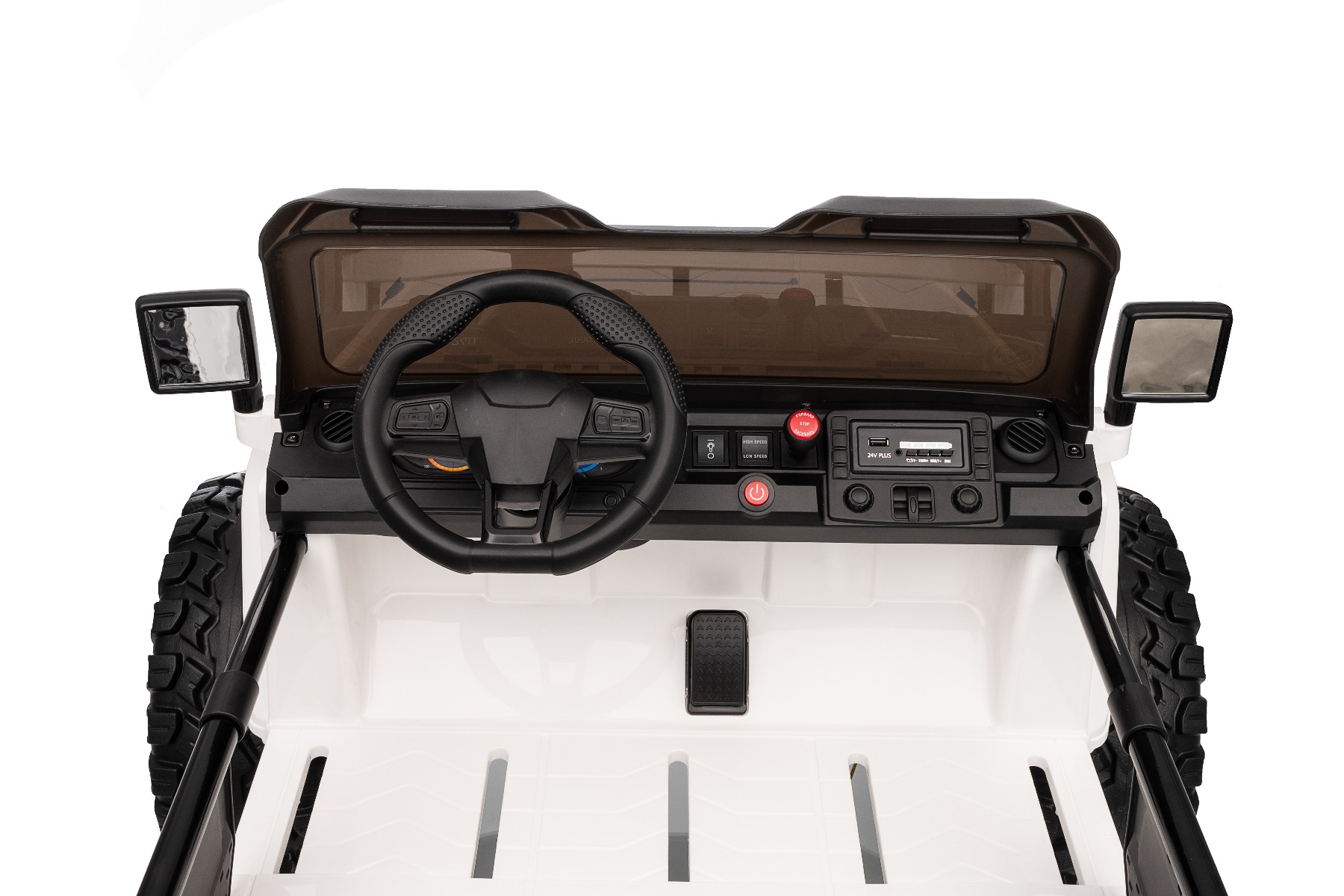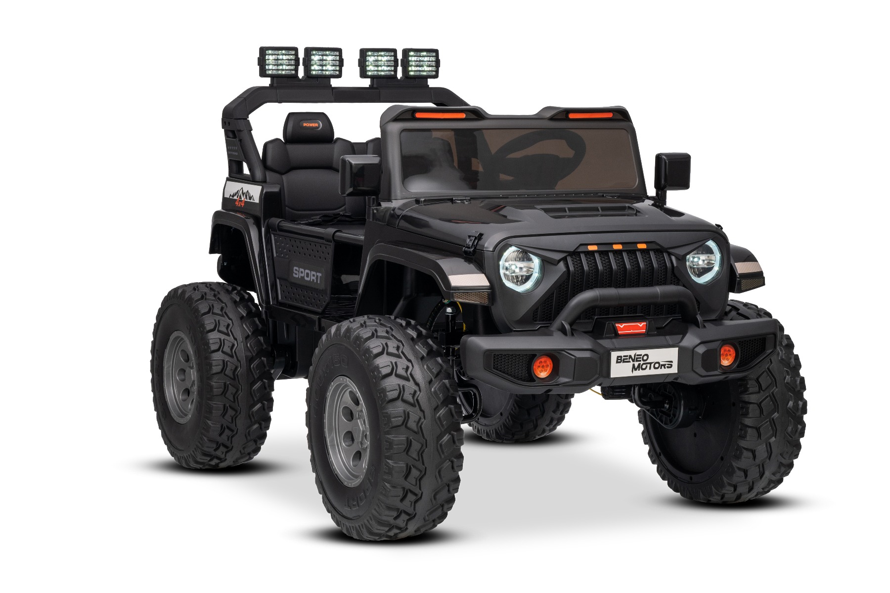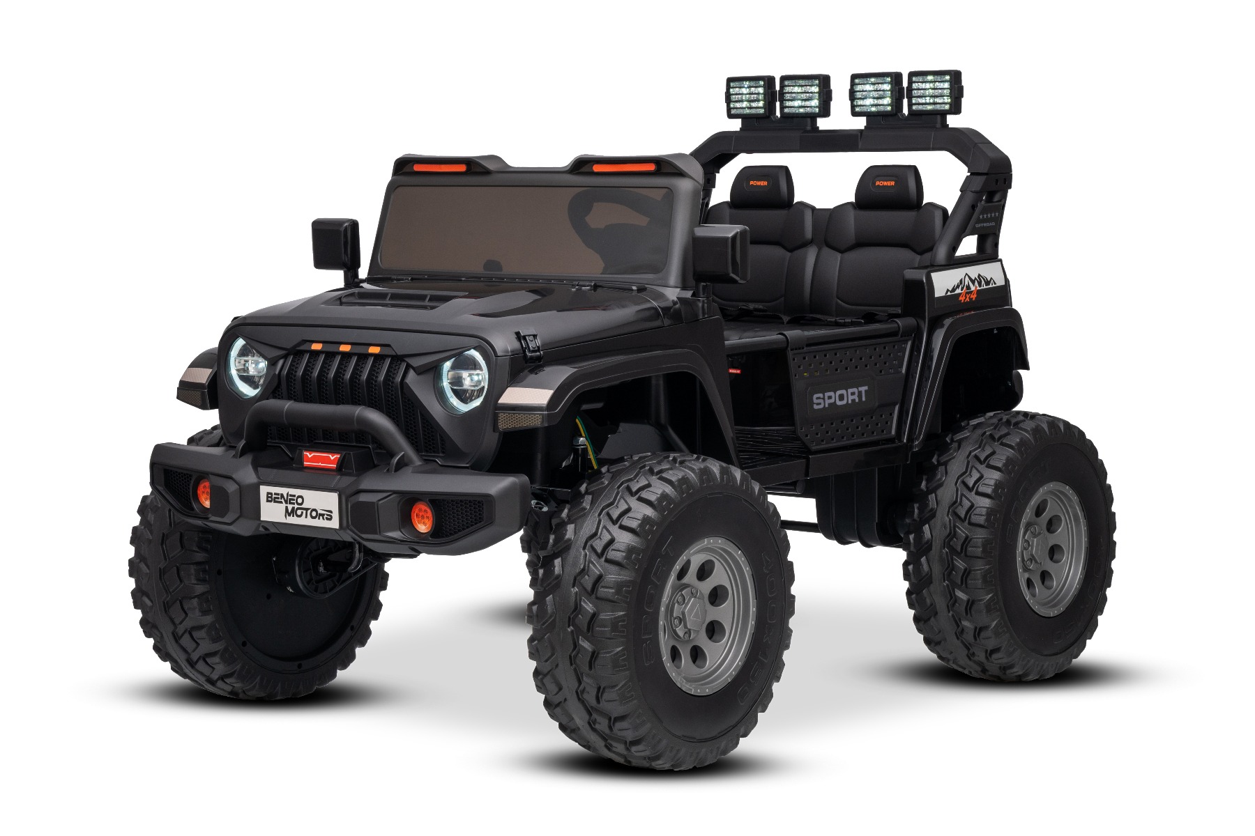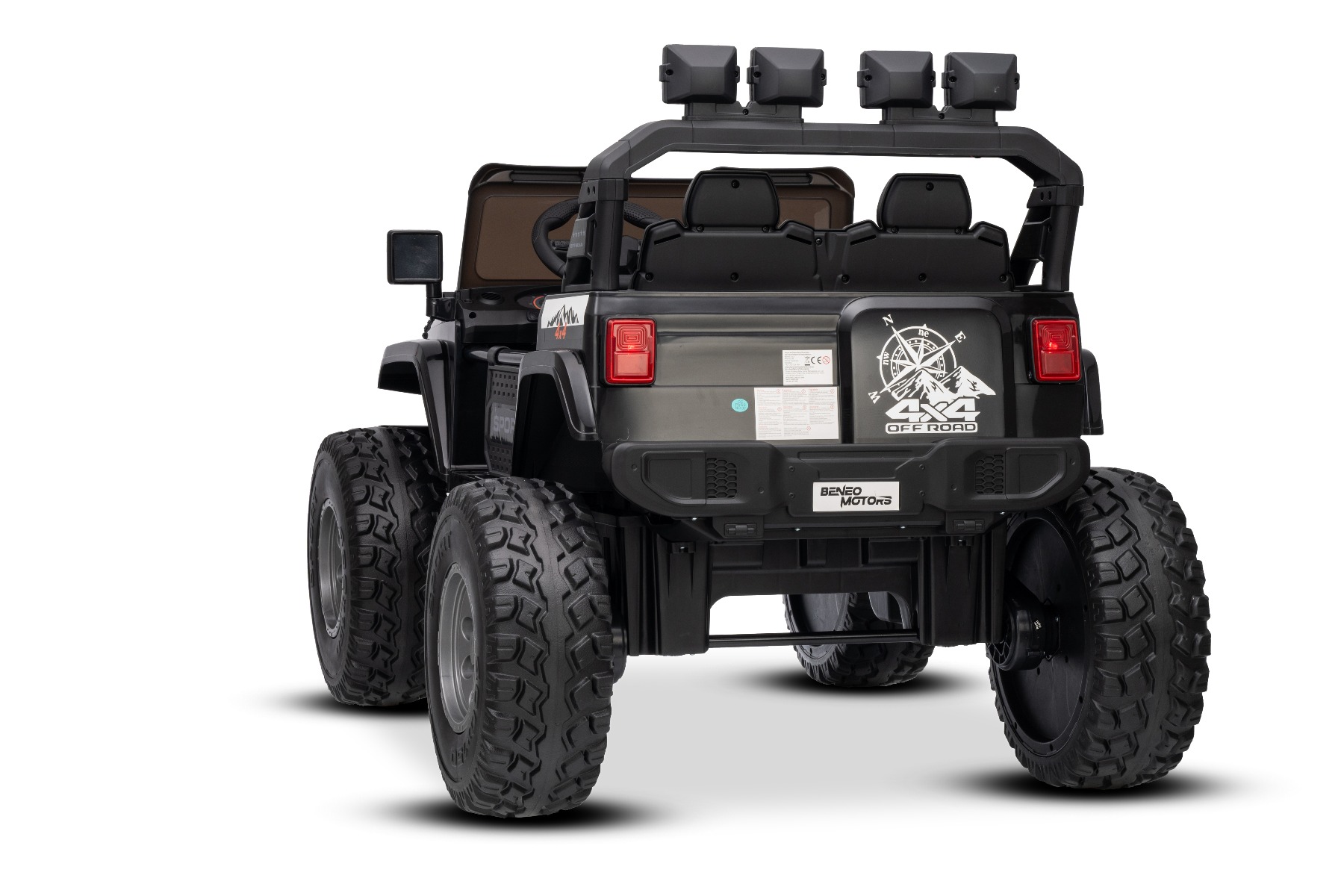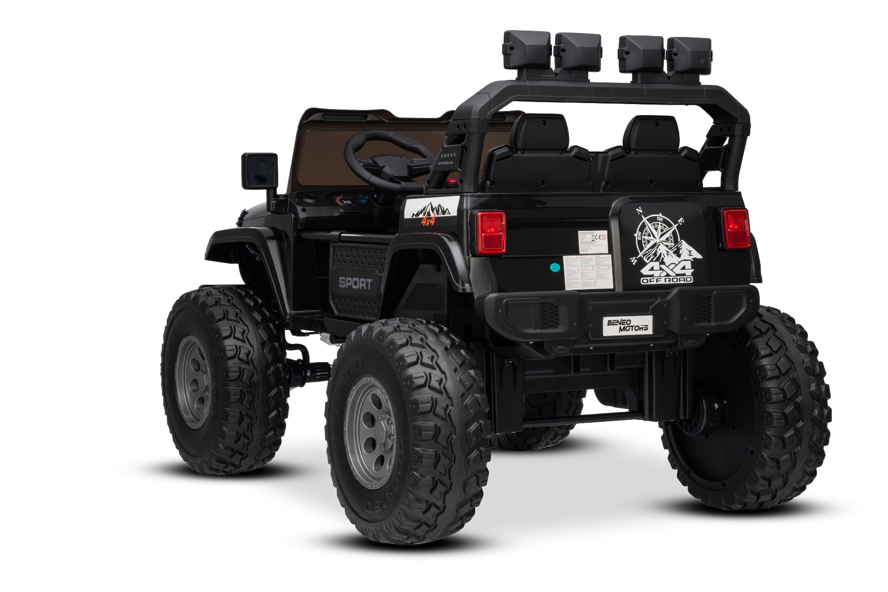 Maşinuţa electrica copii OFFRIDE 4×4² cu două locuri, 24V, negru, player MP3 cu intrare USB/AUX, transmisie 4×4, baterie litiu, roți EVA cu suspensie, telecomandă, lumini LED