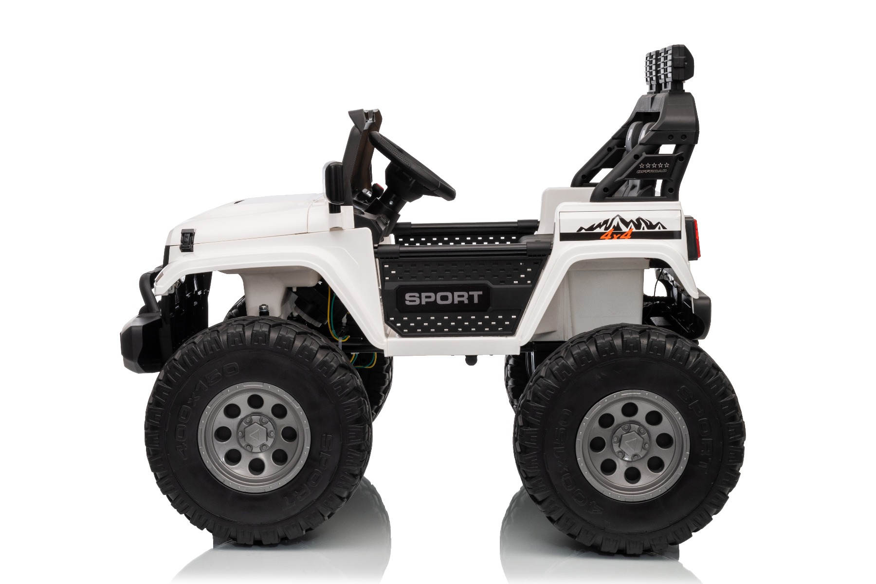 • Lumini LED • Construcție solidă pentru o siguranță sporită • Roți EVA cu diametrul de 40 cm • Centură de siguranță • Design sportiv