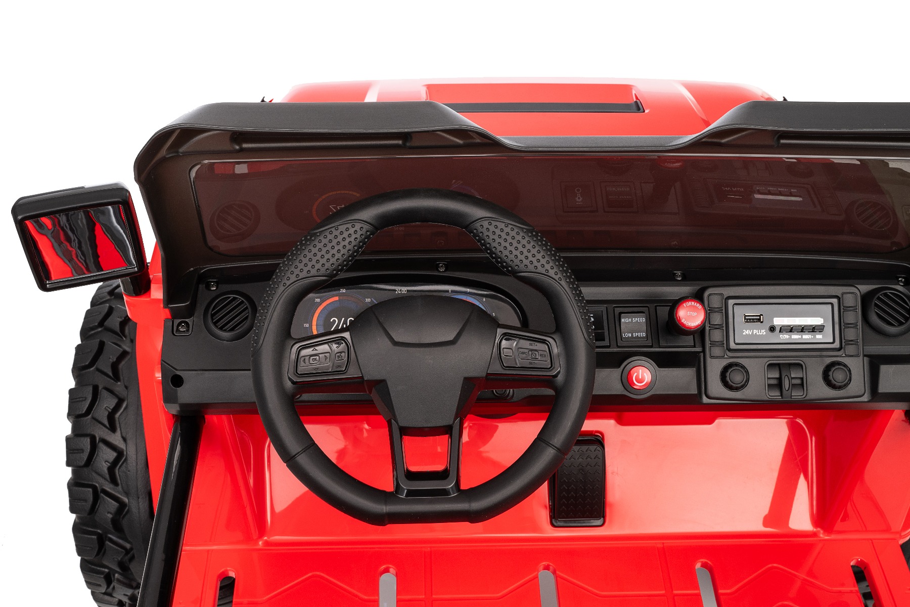 Maşinuţa electrica copii OFFRIDE 4×4² cu două locuri, 24V, roșu, player MP3 cu intrare USB/AUX, transmisie 4×4, baterie litiu, roți EVA cu suspensie, telecomandă, lumini LED