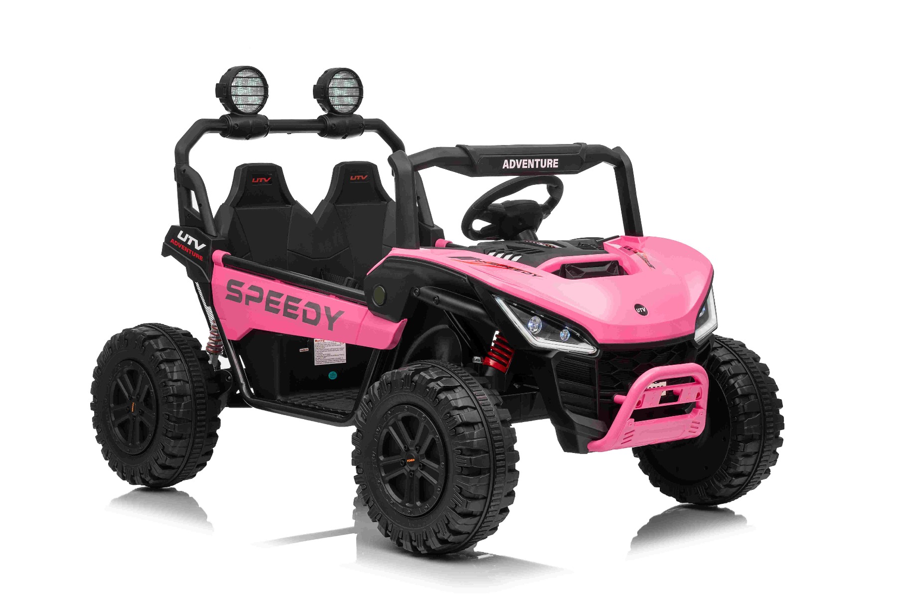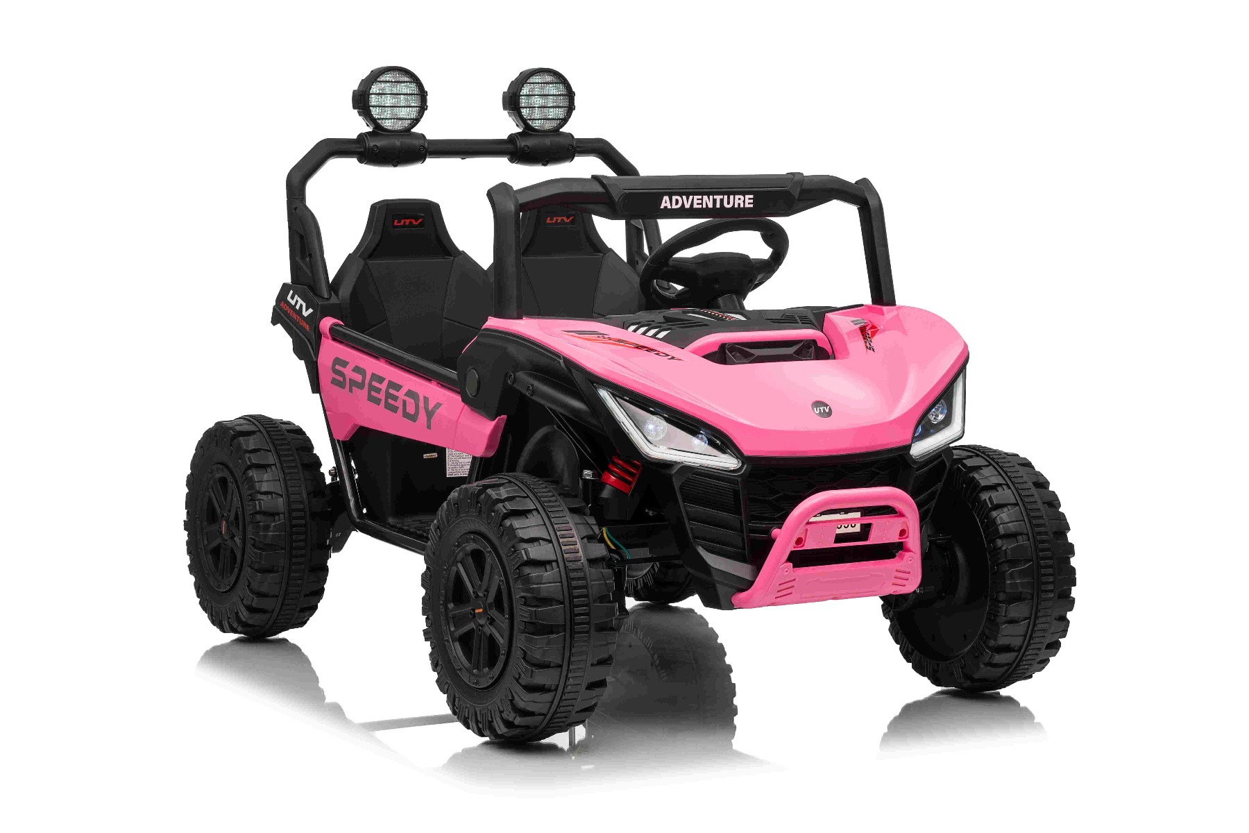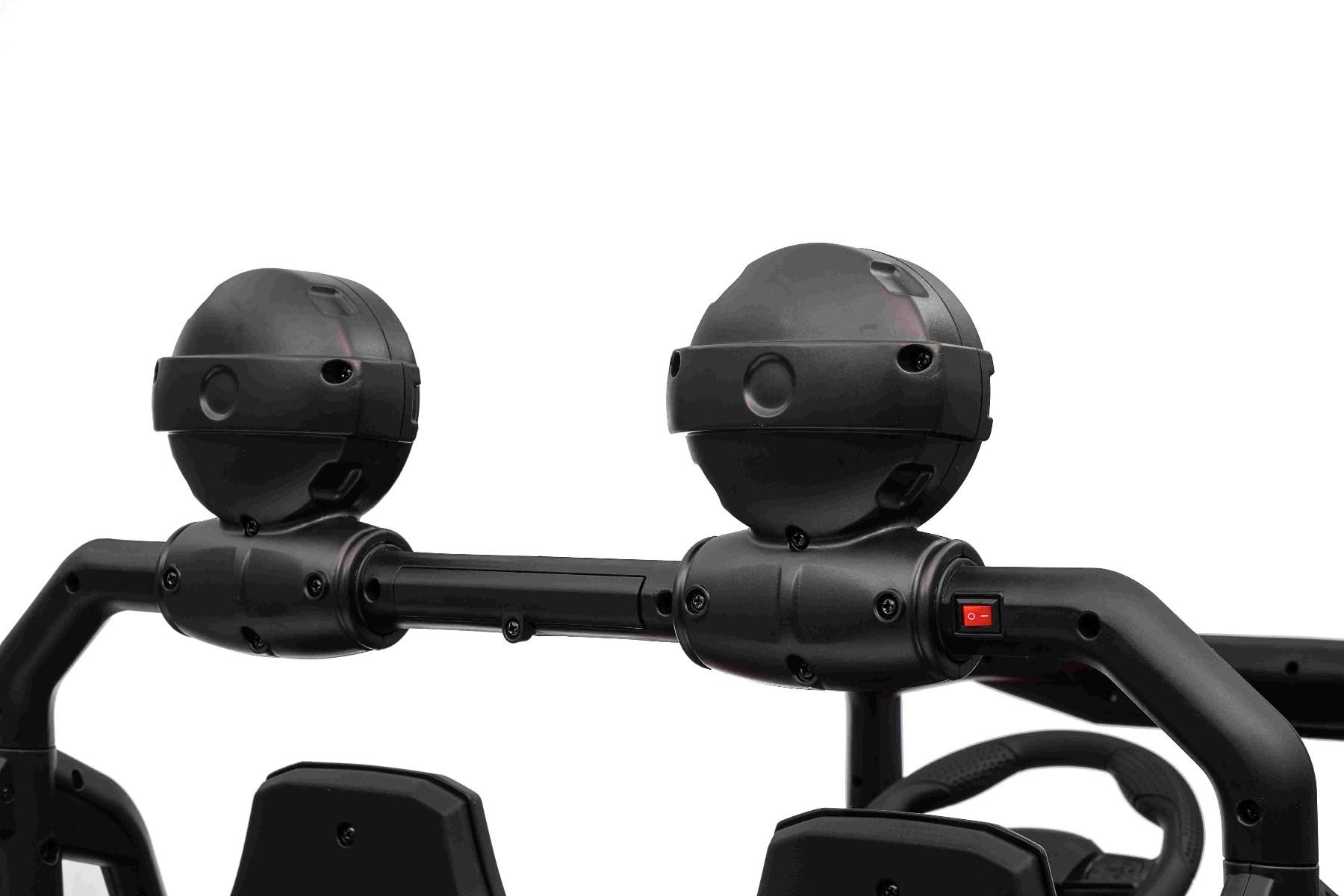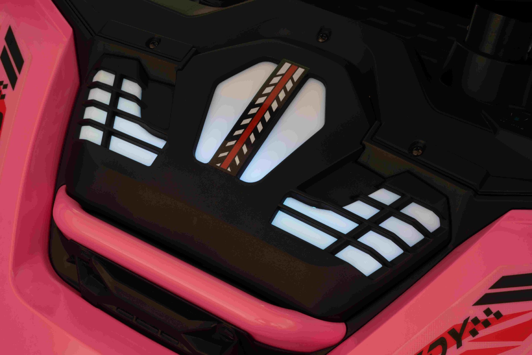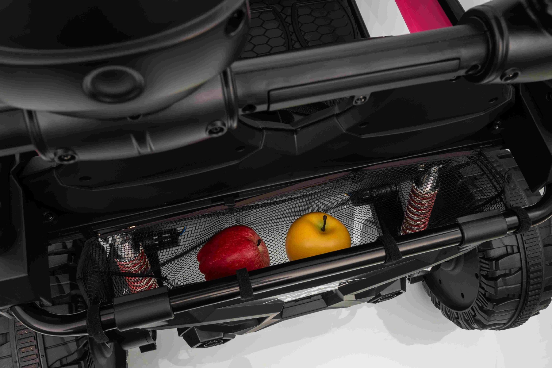 • Construcție solidă din metal • Design sportiv off-road • Lumini LED pe capotă • Compartiment de depozitare spate • Suspensii