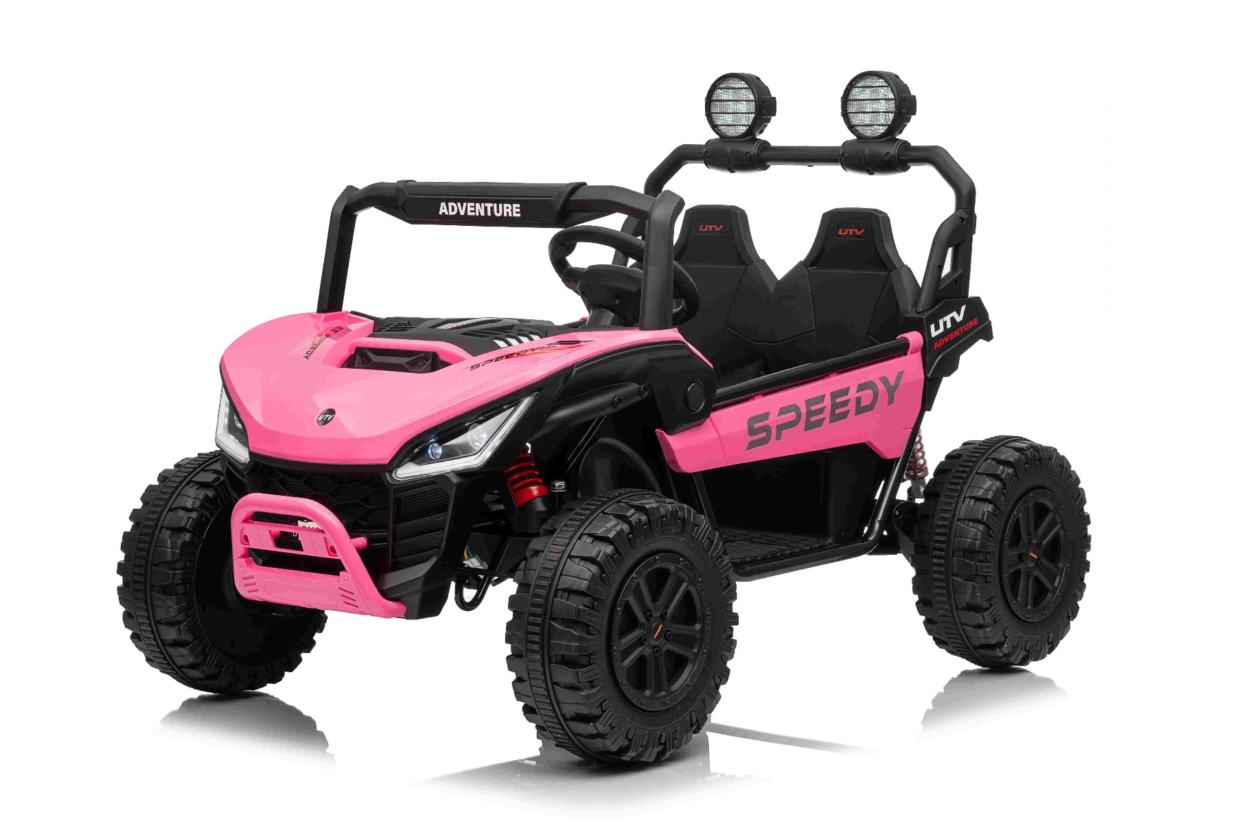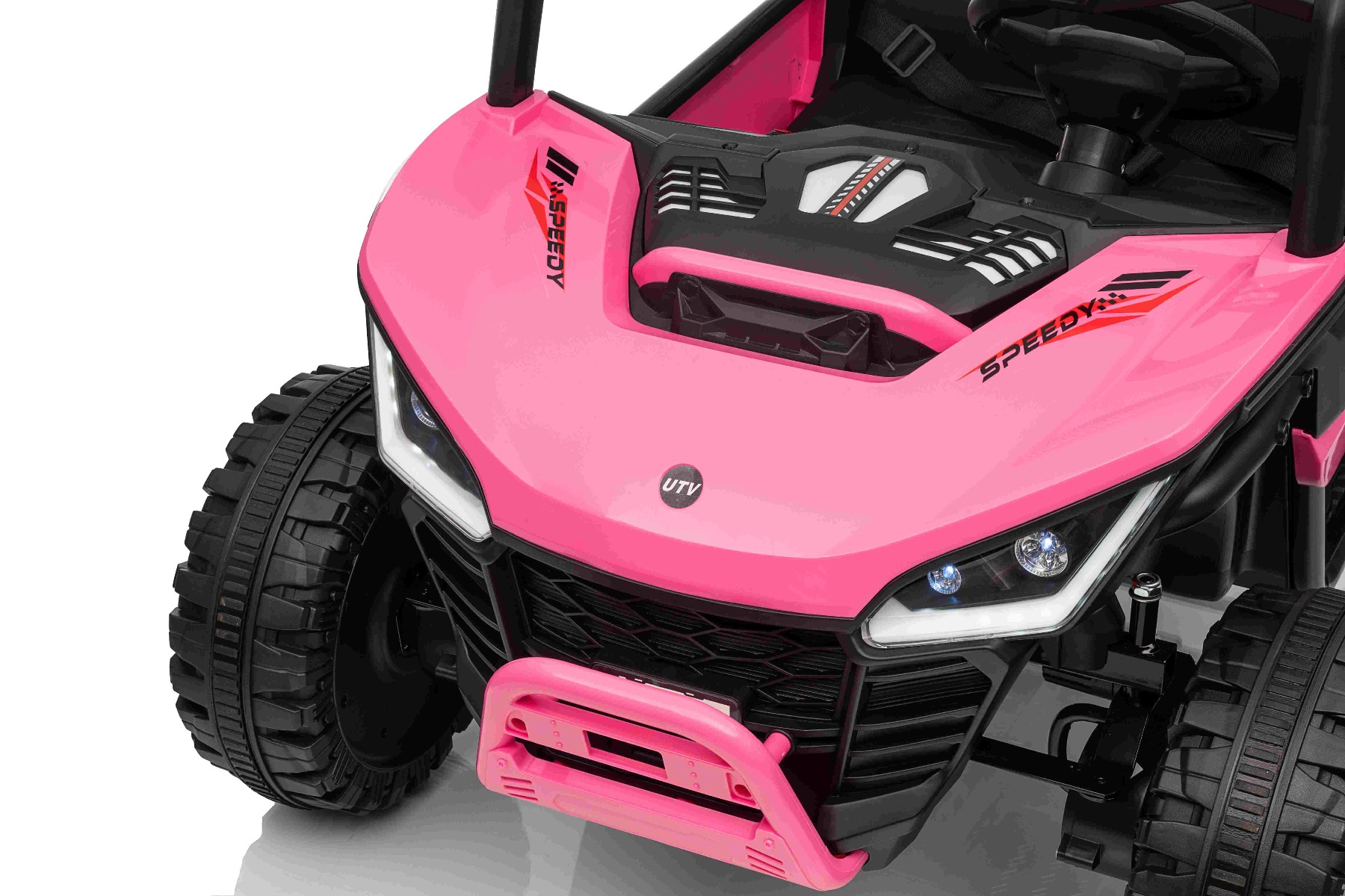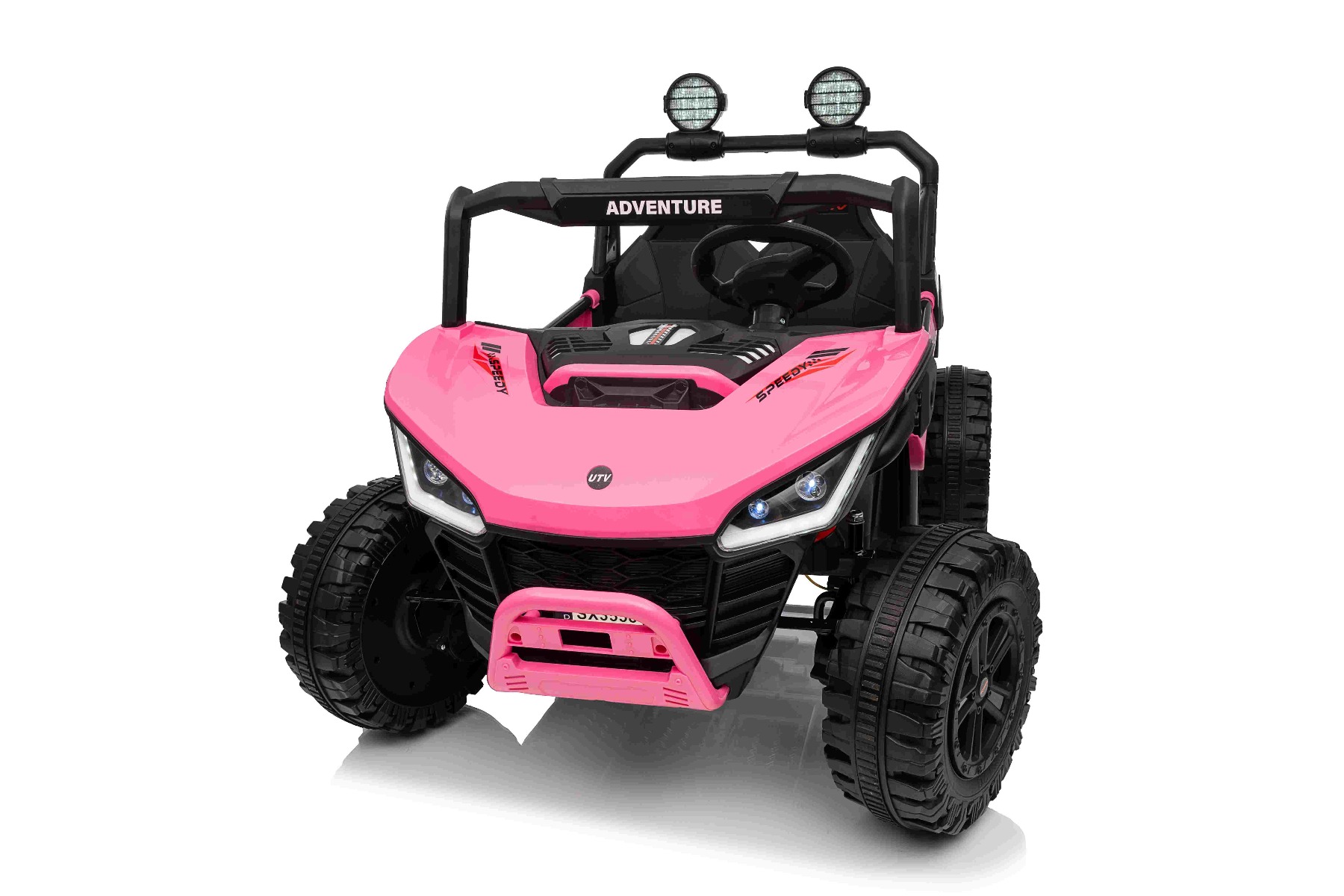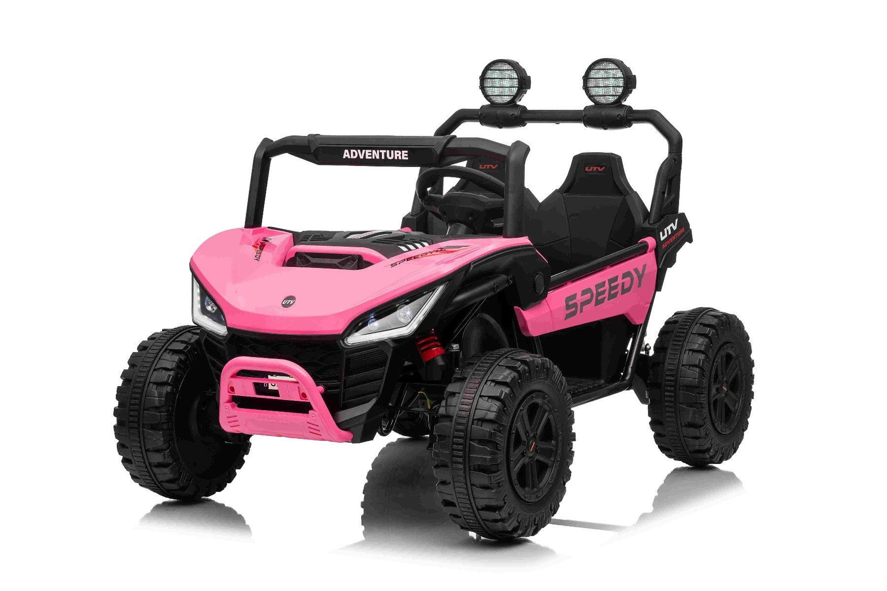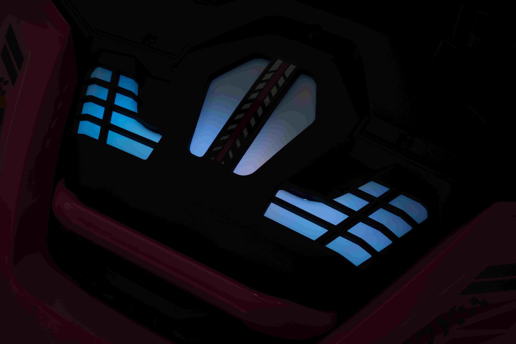 • Construcție solidă din metal • Design sportiv off-road • Lumini LED pe capotă • Compartiment de depozitare spate • Suspensii