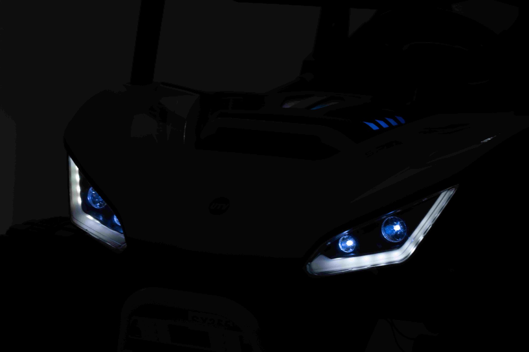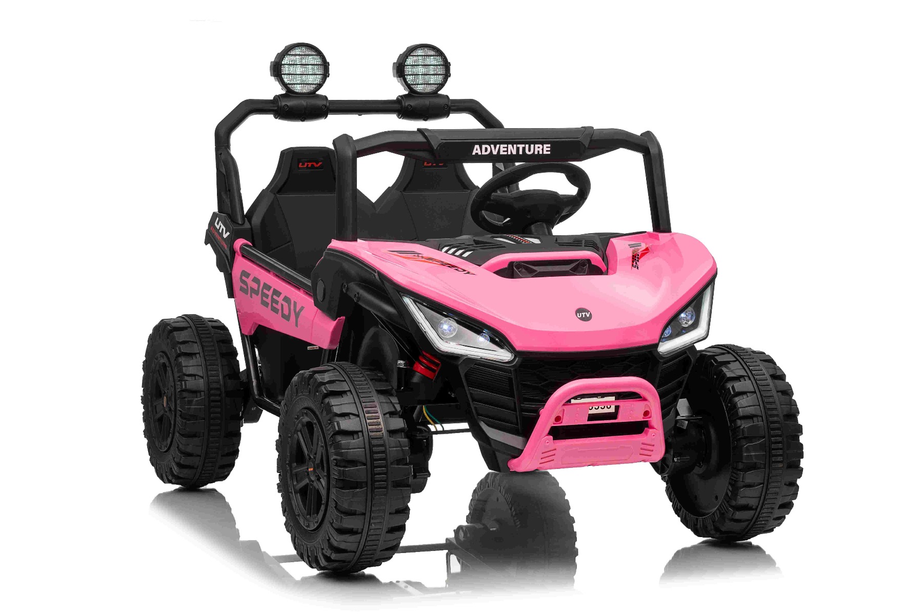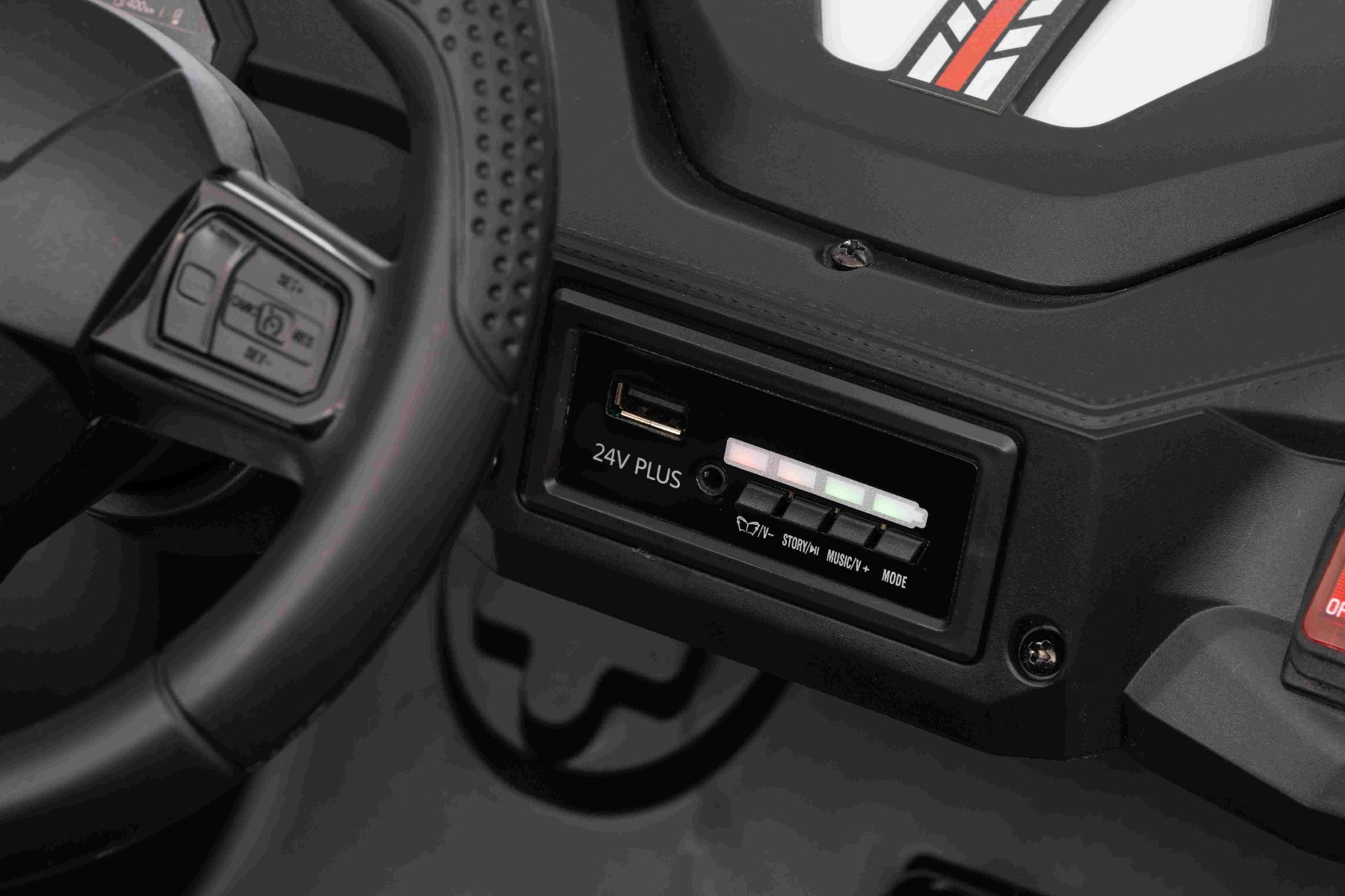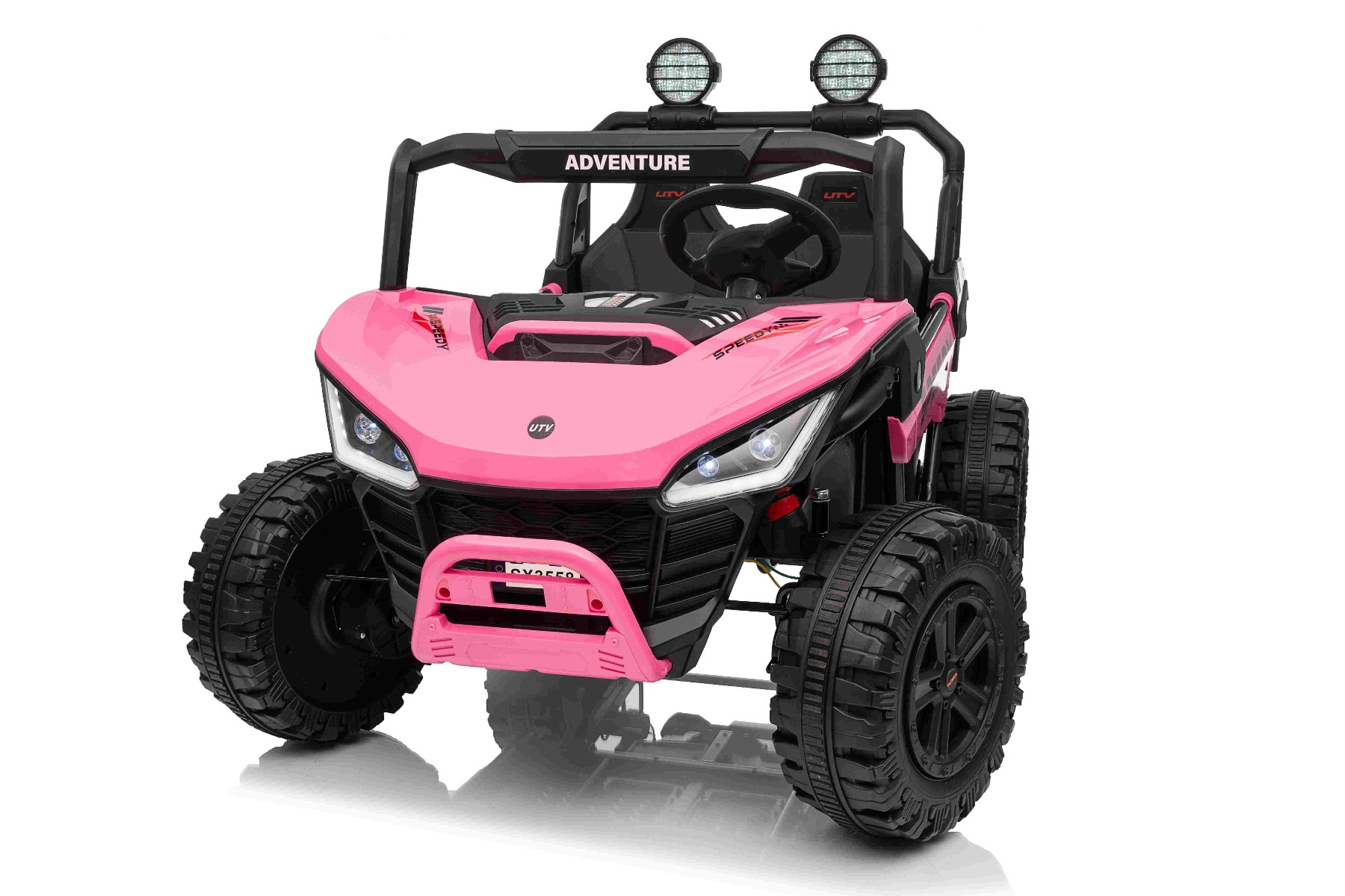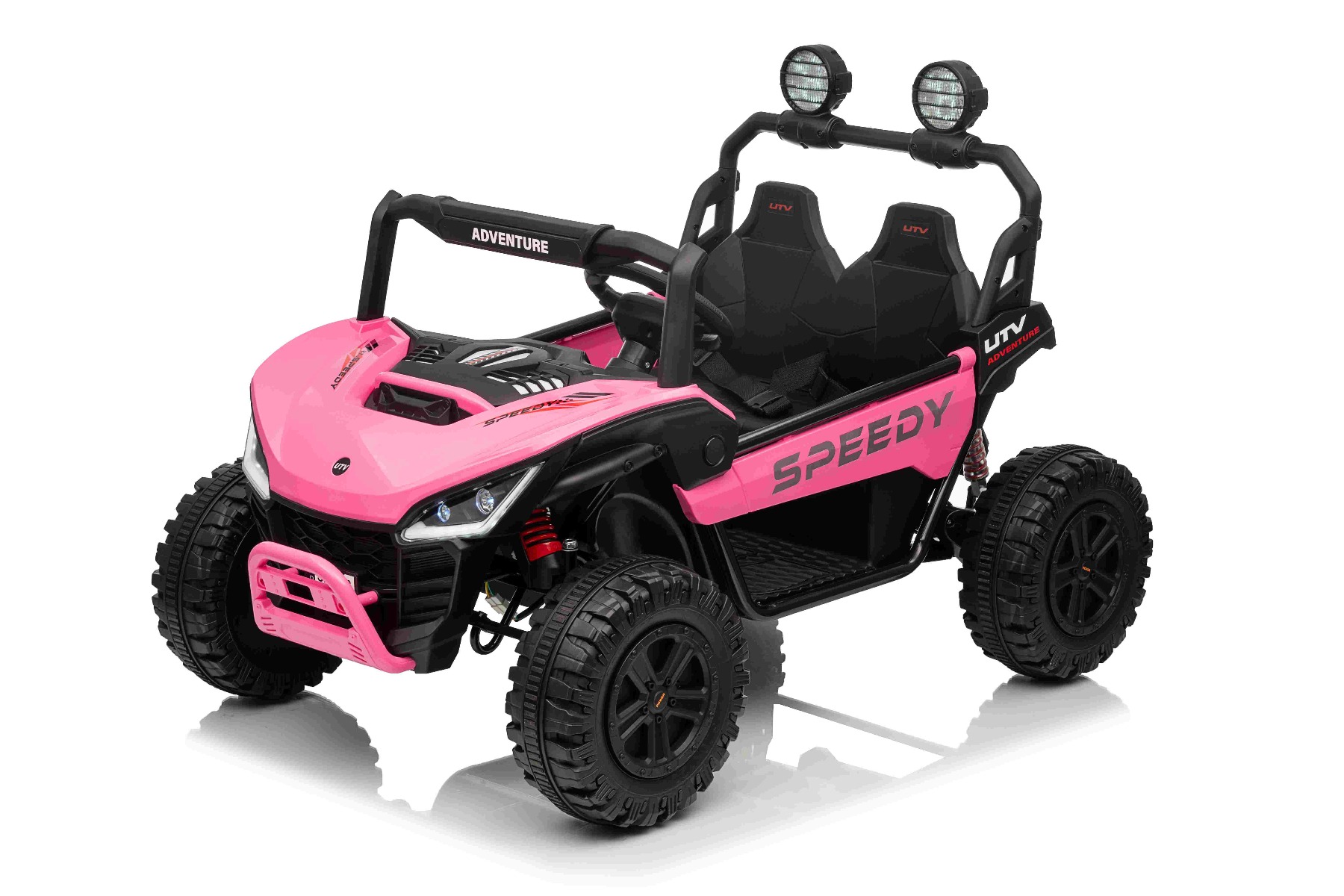 • Construcție solidă din metal • Design sportiv off-road • Lumini LED pe capotă • Compartiment de depozitare spate • Suspensii