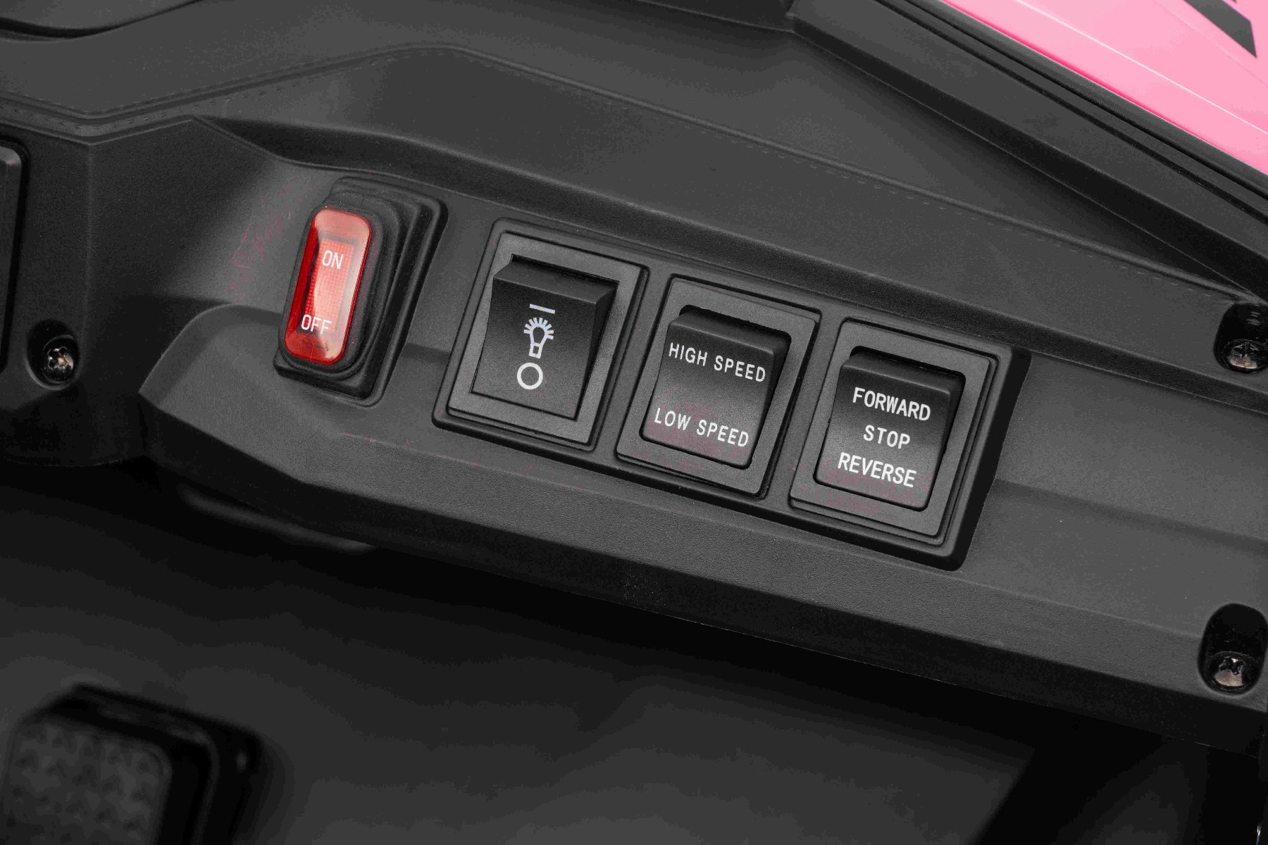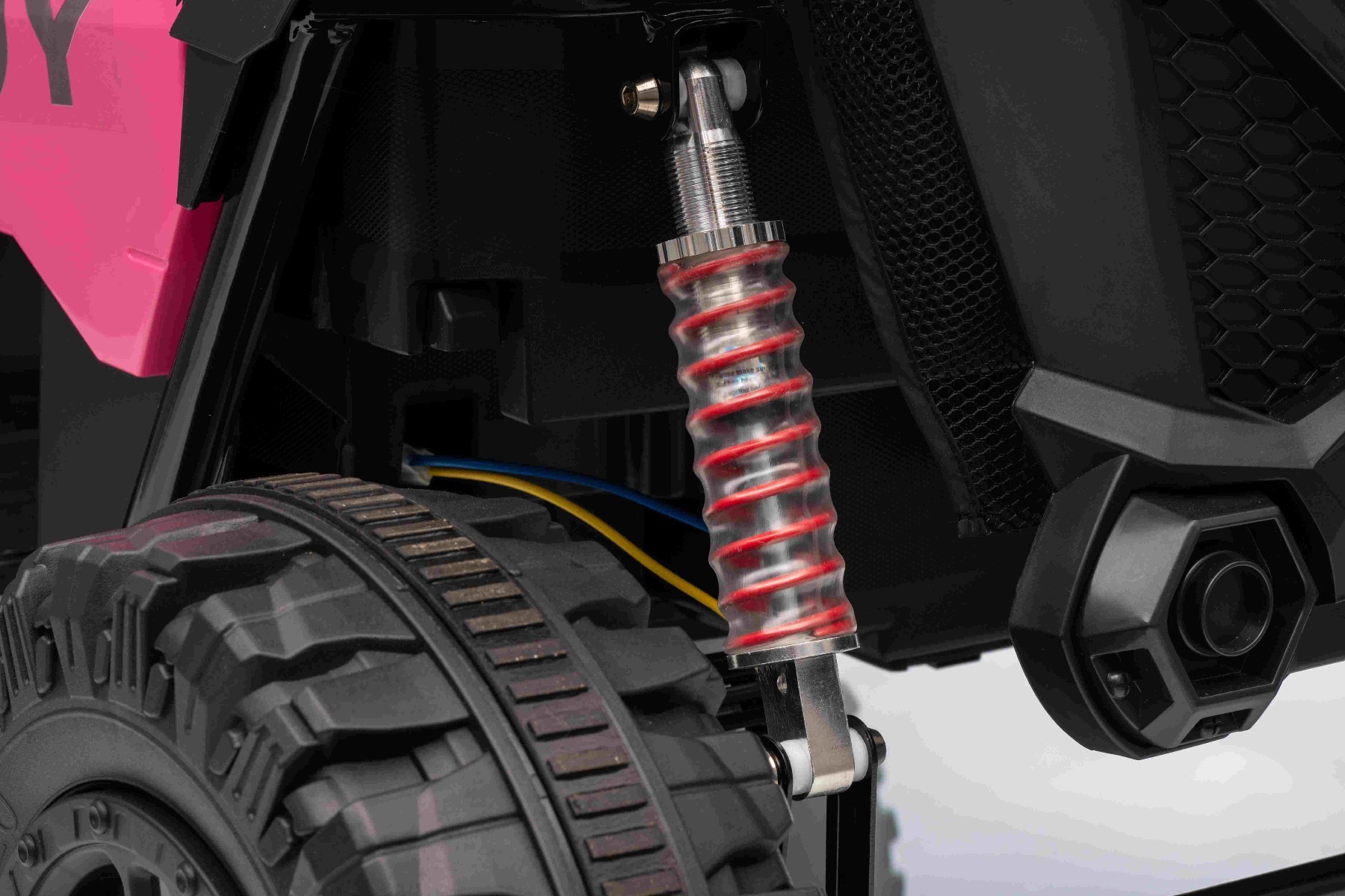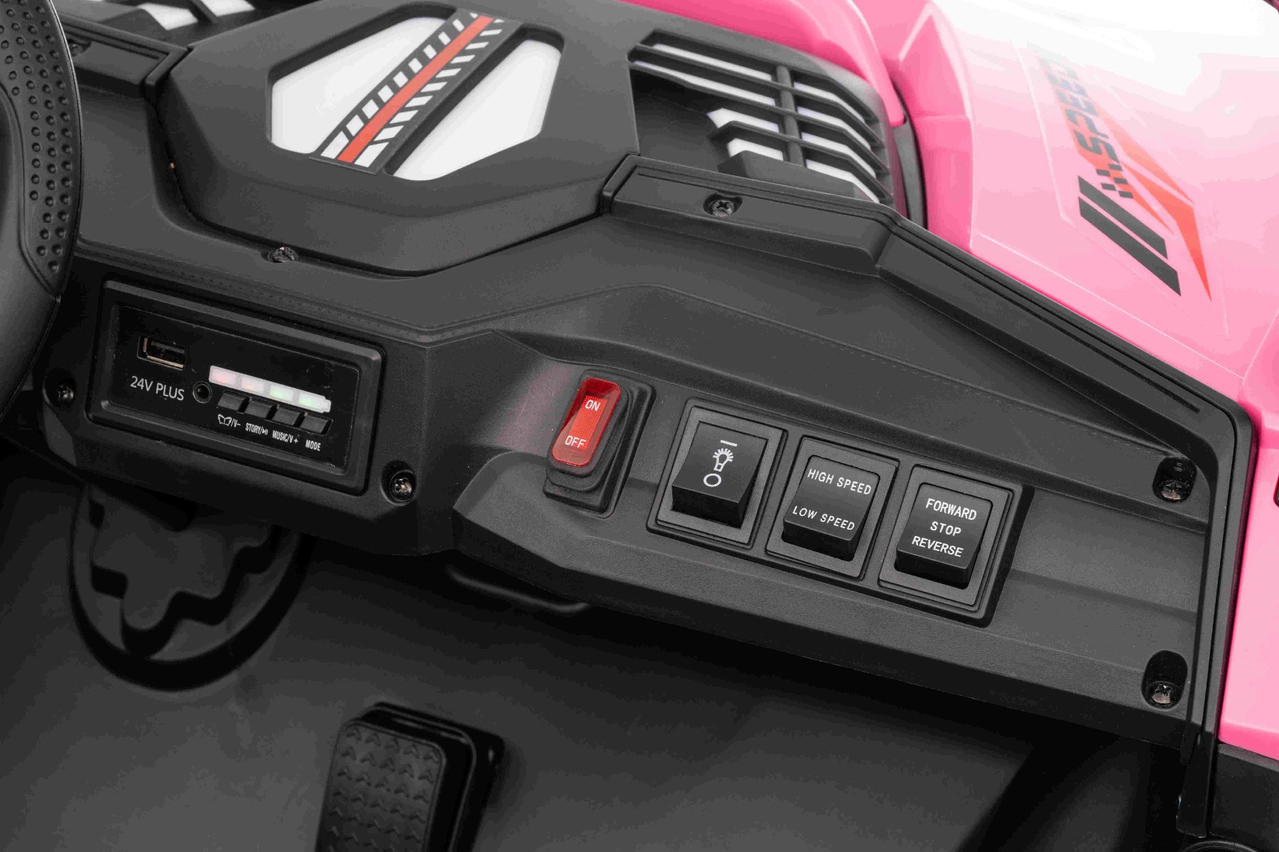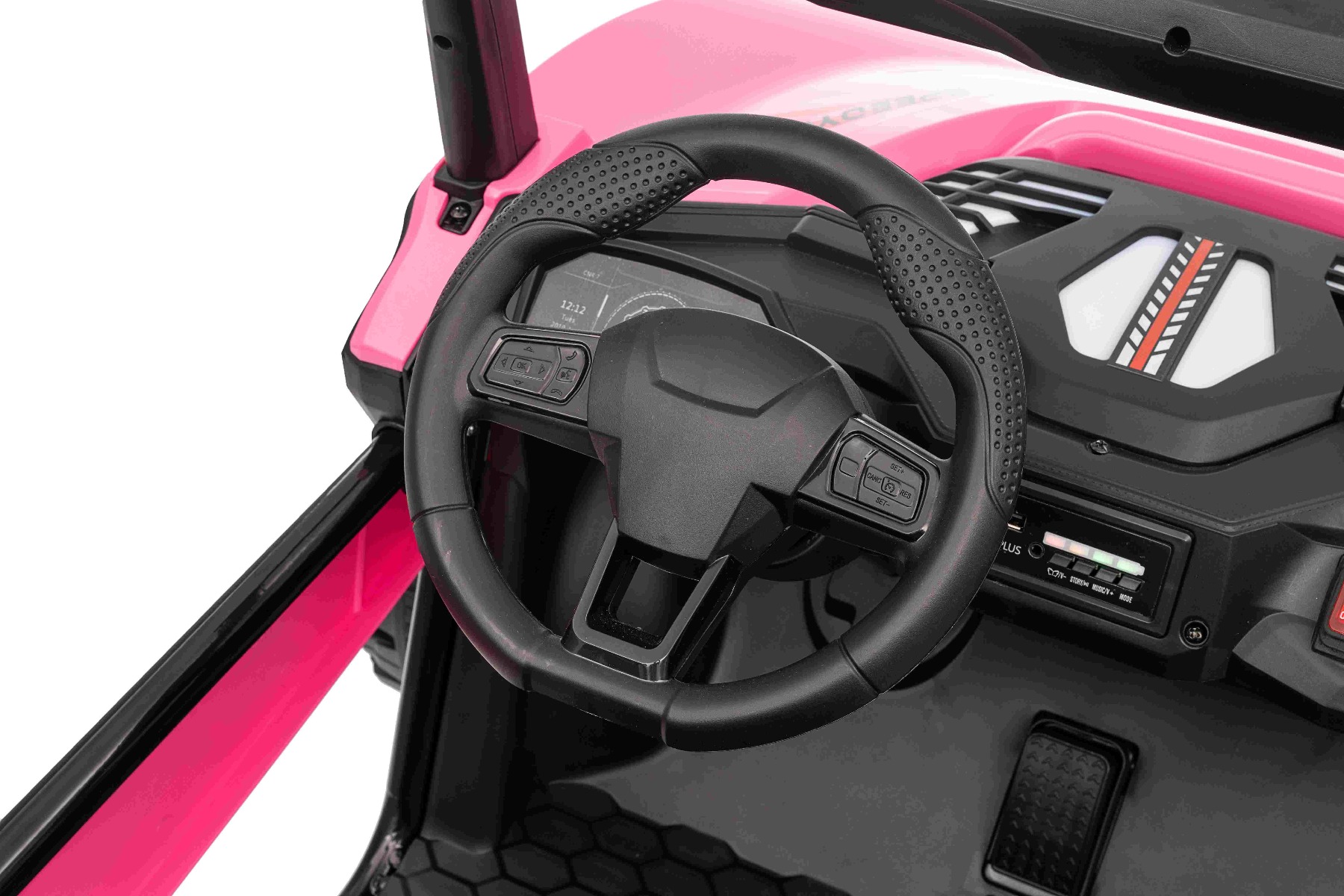 Maşinuţa electrica copii T-REX Ride 4×4 cu două locuri 24V, roz, player MP3 cu intrare USB/AUX, acționare 4×4, baterie litiu, suspensie, telecomandă, lumini LED