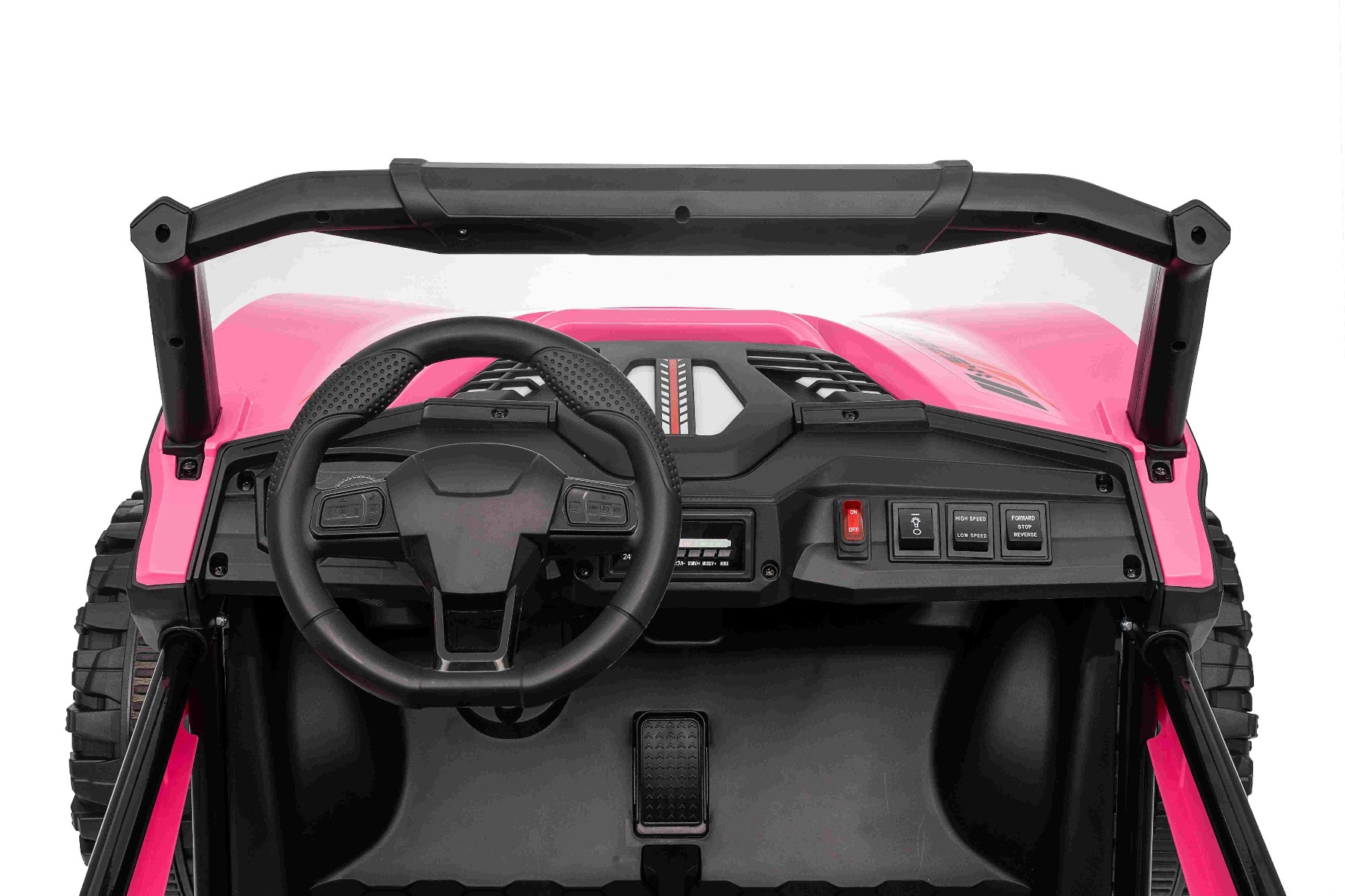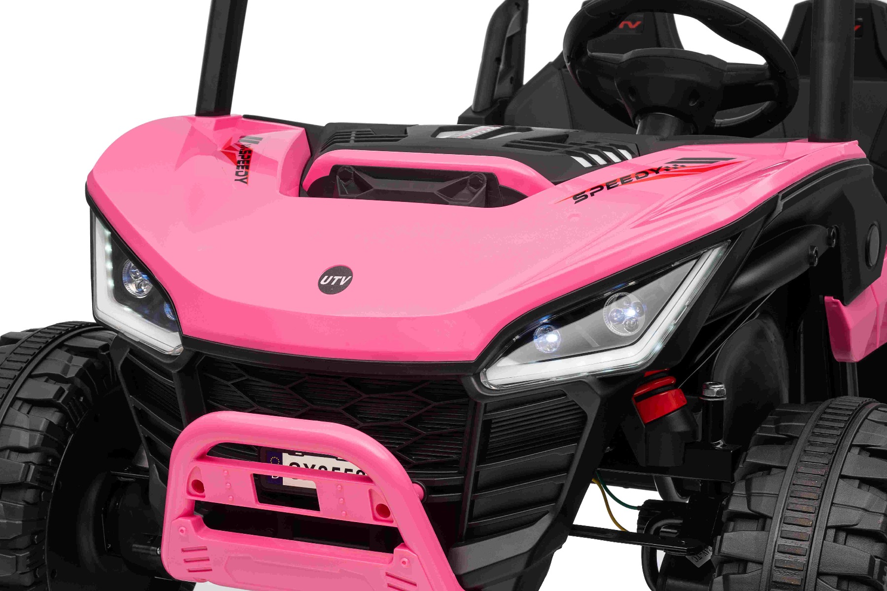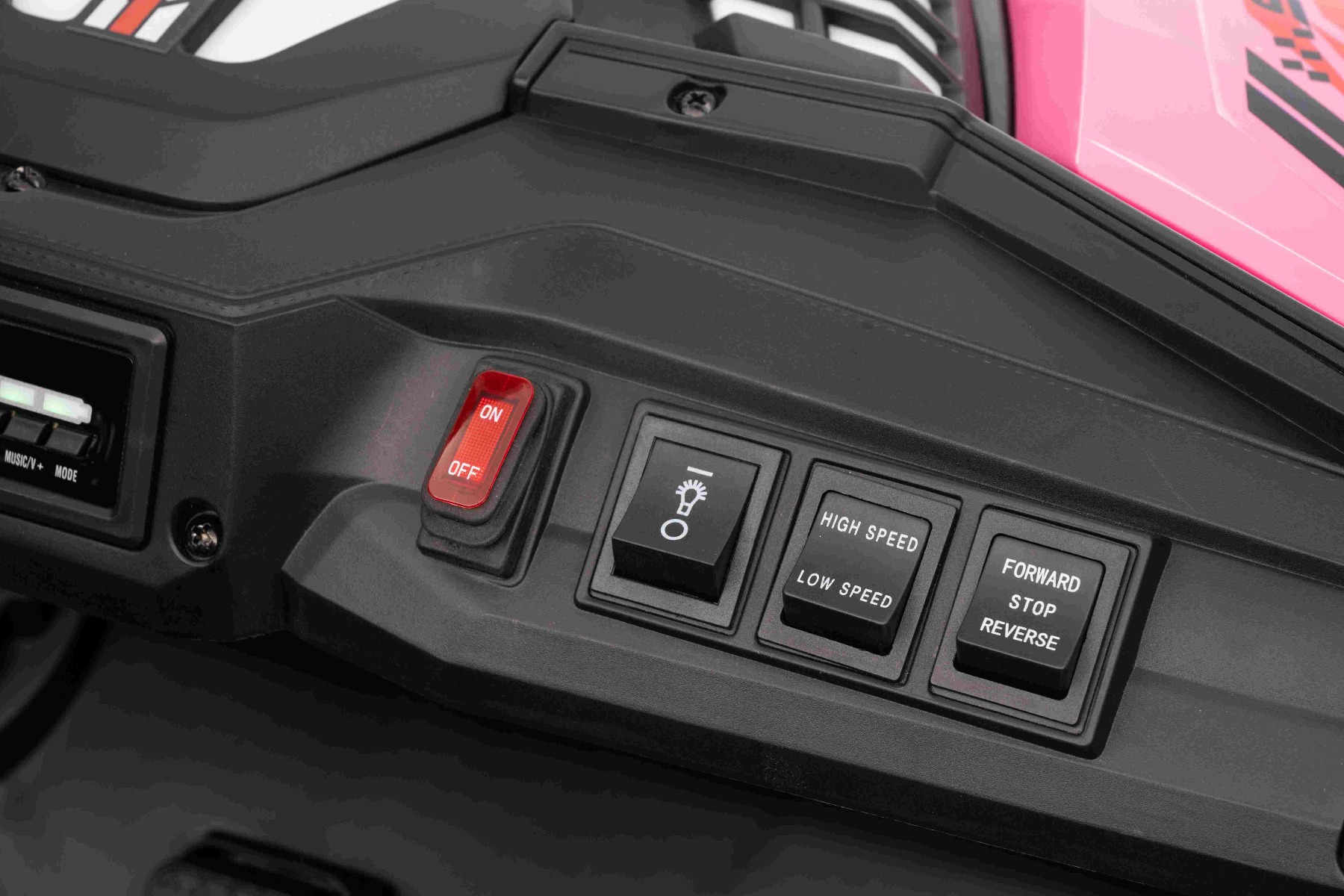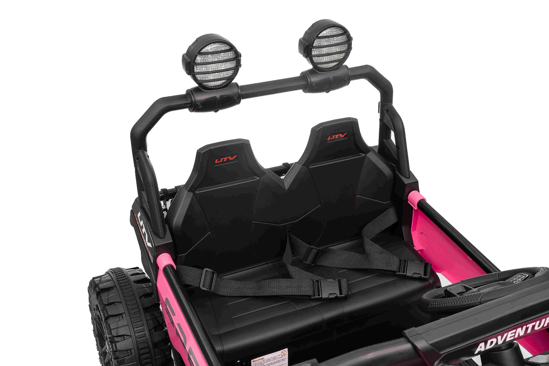 Maşinuţa electrica copii T-REX Ride 4×4 cu două locuri 24V, roz, player MP3 cu intrare USB/AUX, acționare 4×4, baterie litiu, suspensie, telecomandă, lumini LED