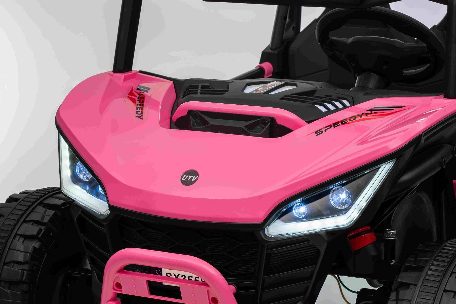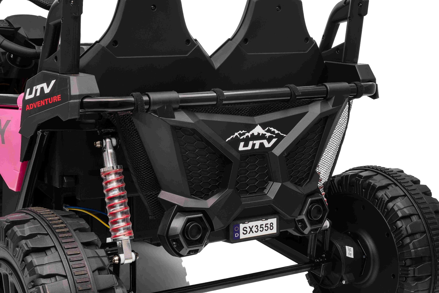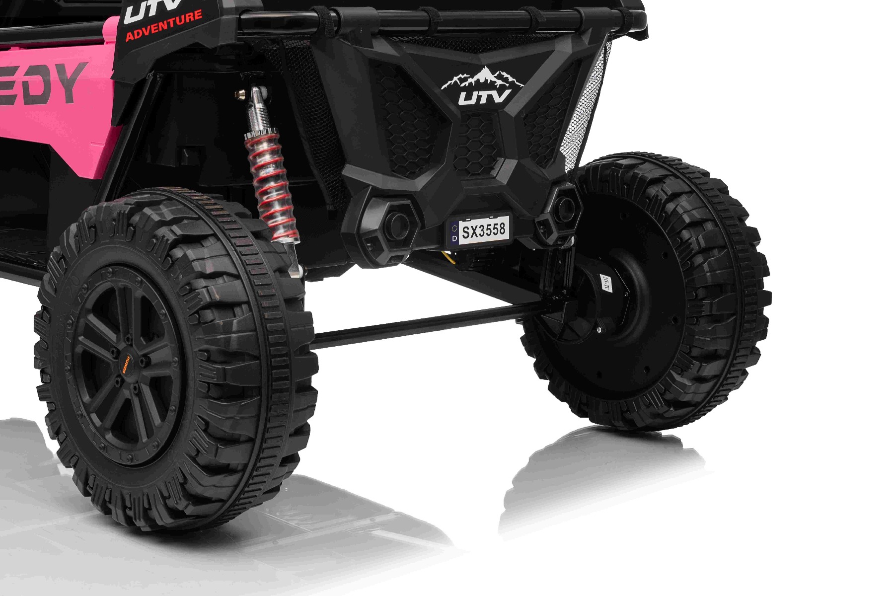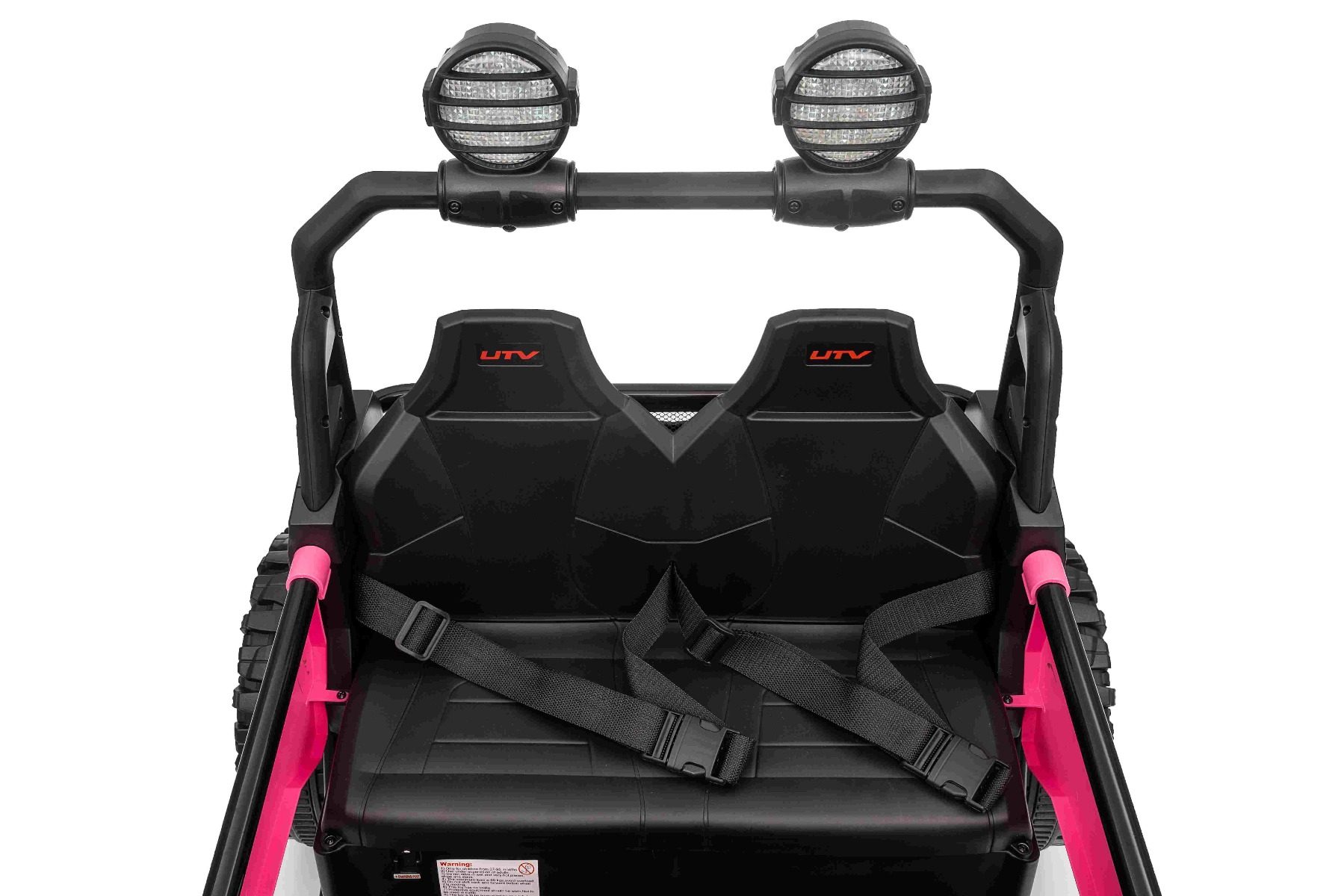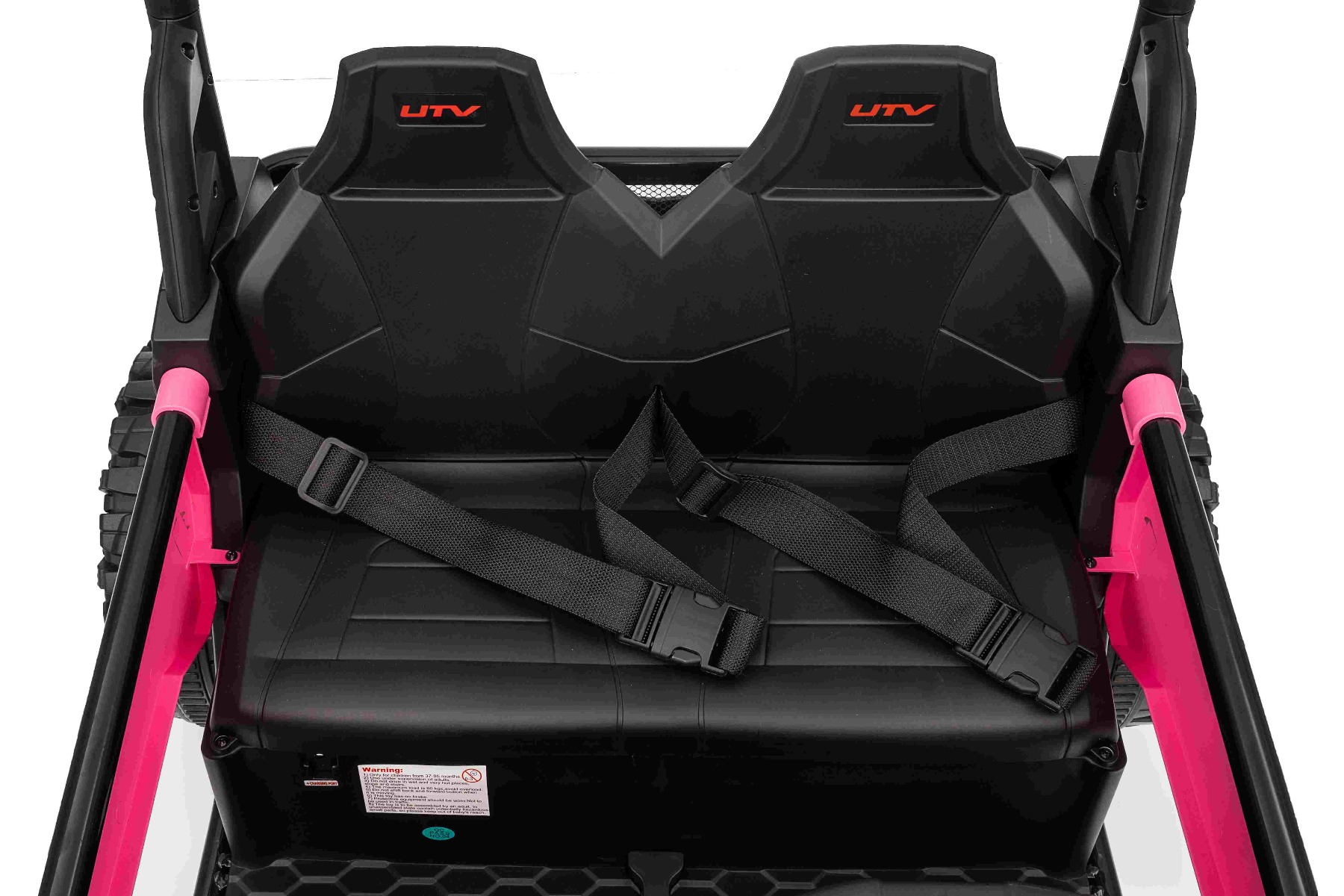 Maşinuţa electrica copii T-REX Ride 4×4 cu două locuri 24V, roz, player MP3 cu intrare USB/AUX, acționare 4×4, baterie litiu, suspensie, telecomandă, lumini LED