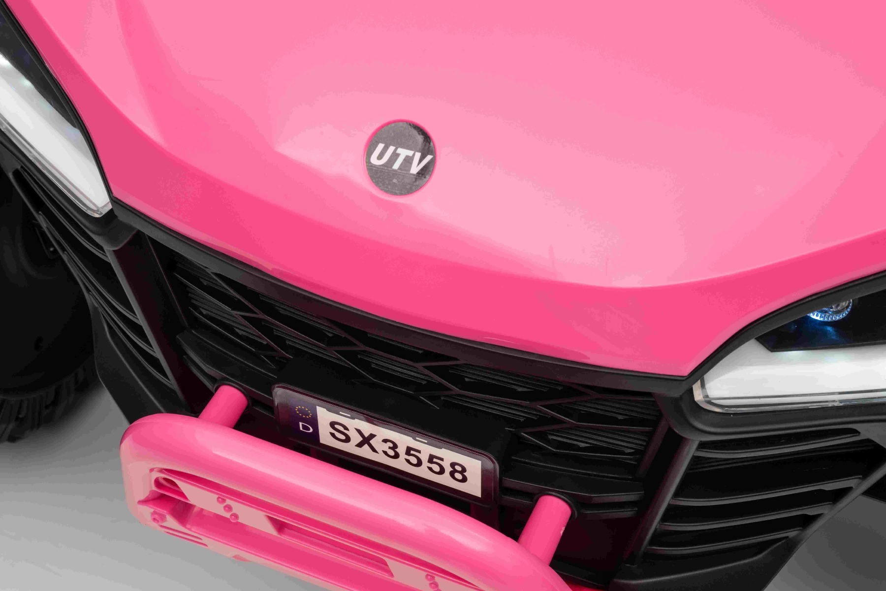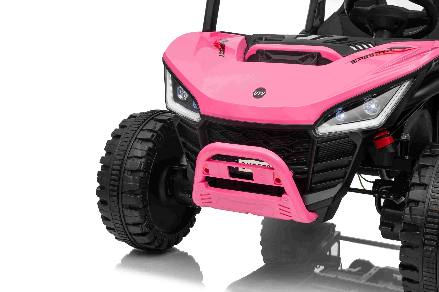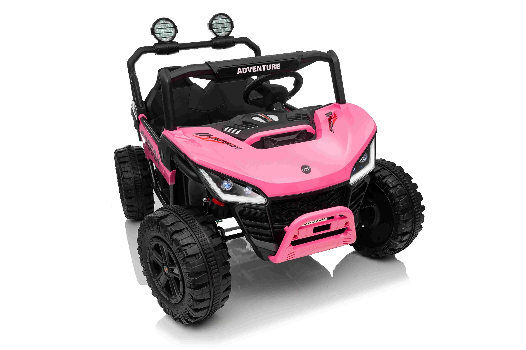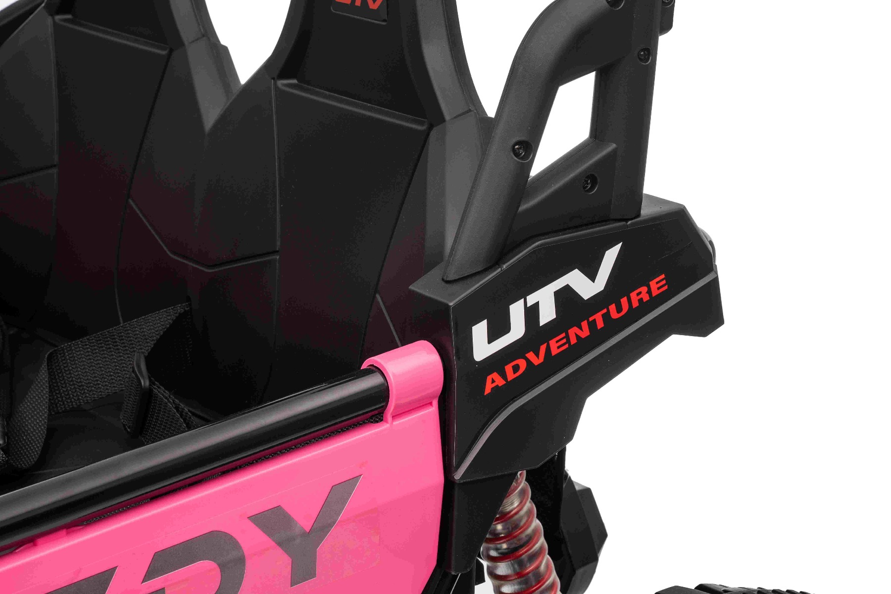 Maşinuţa electrica copii T-REX Ride 4×4 cu două locuri 24V, roz, player MP3 cu intrare USB/AUX, acționare 4×4, baterie litiu, suspensie, telecomandă, lumini LED