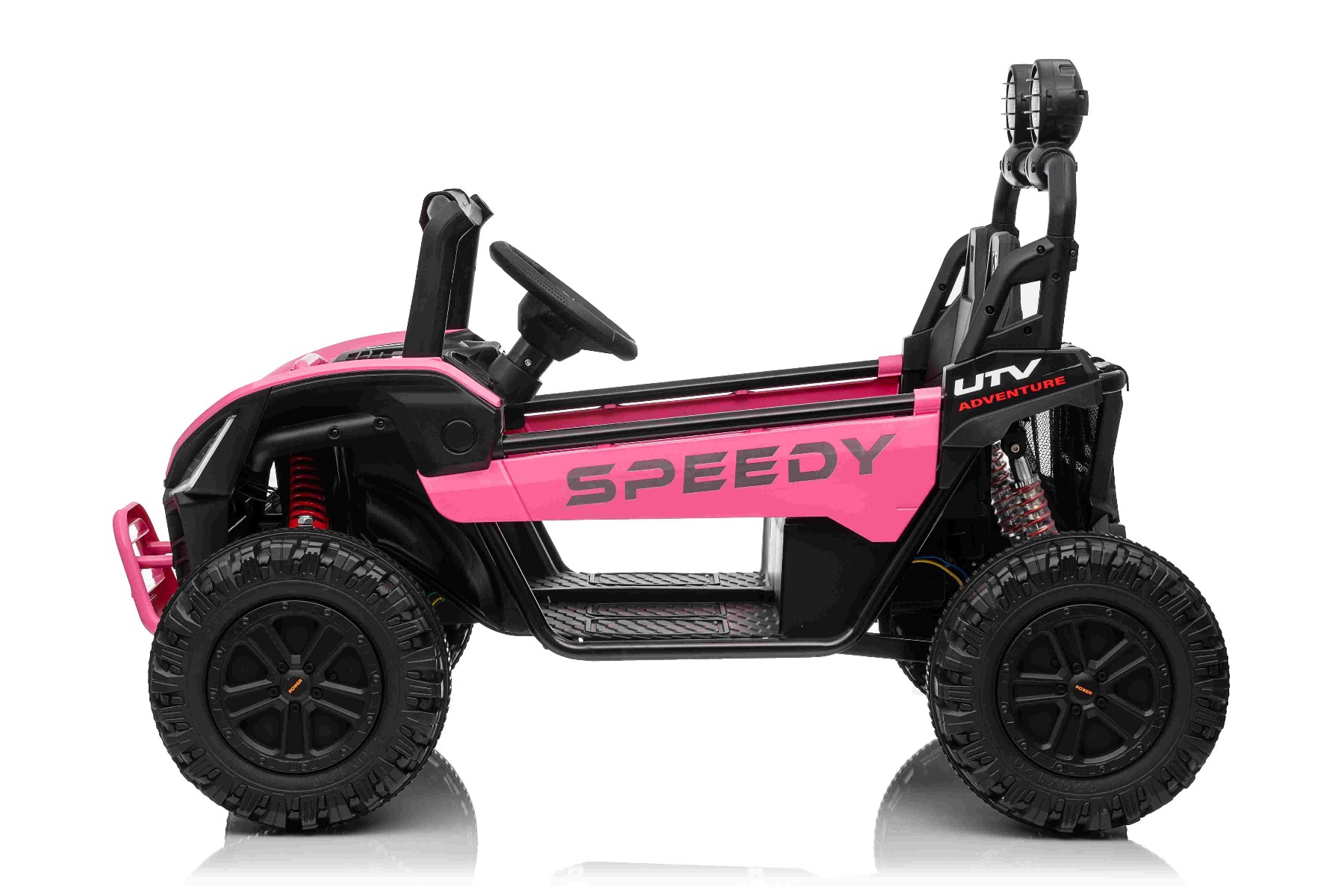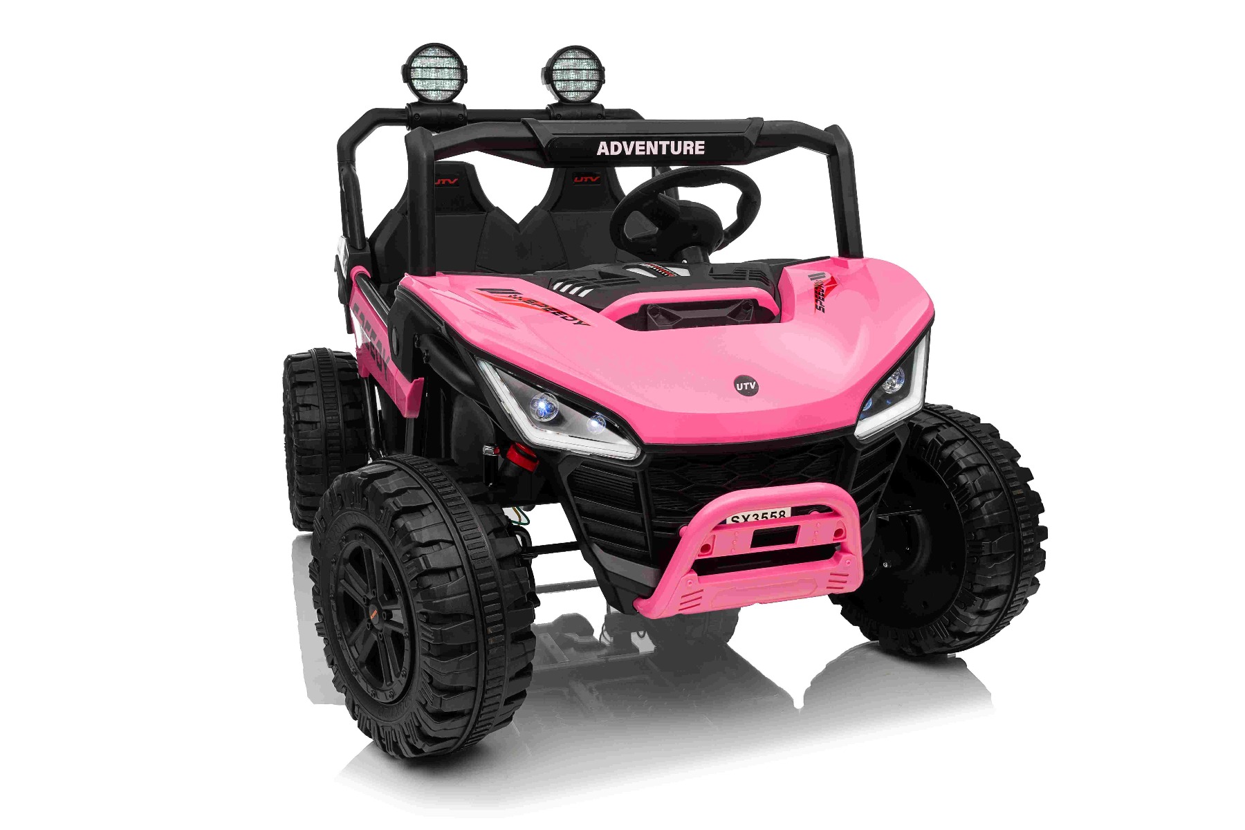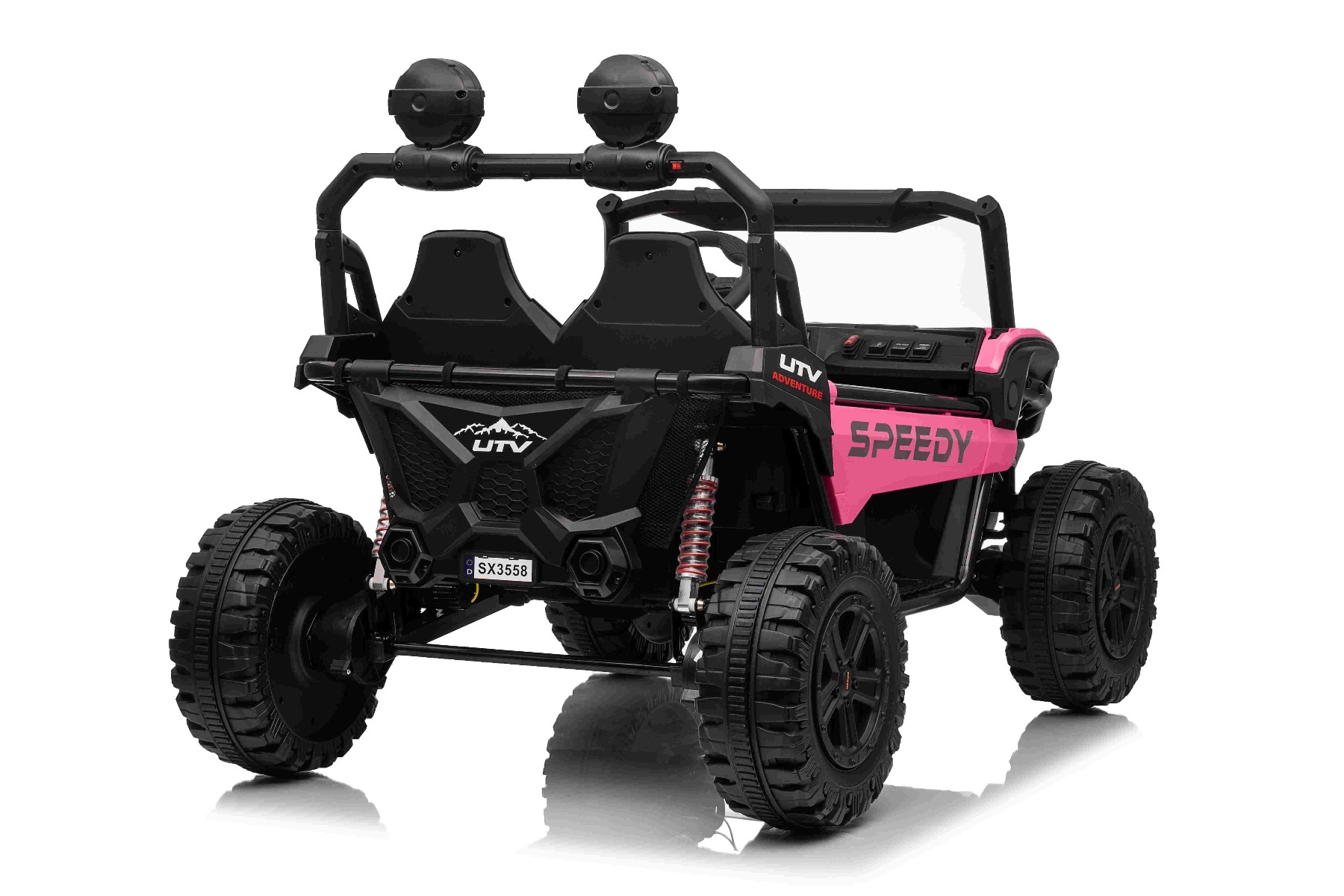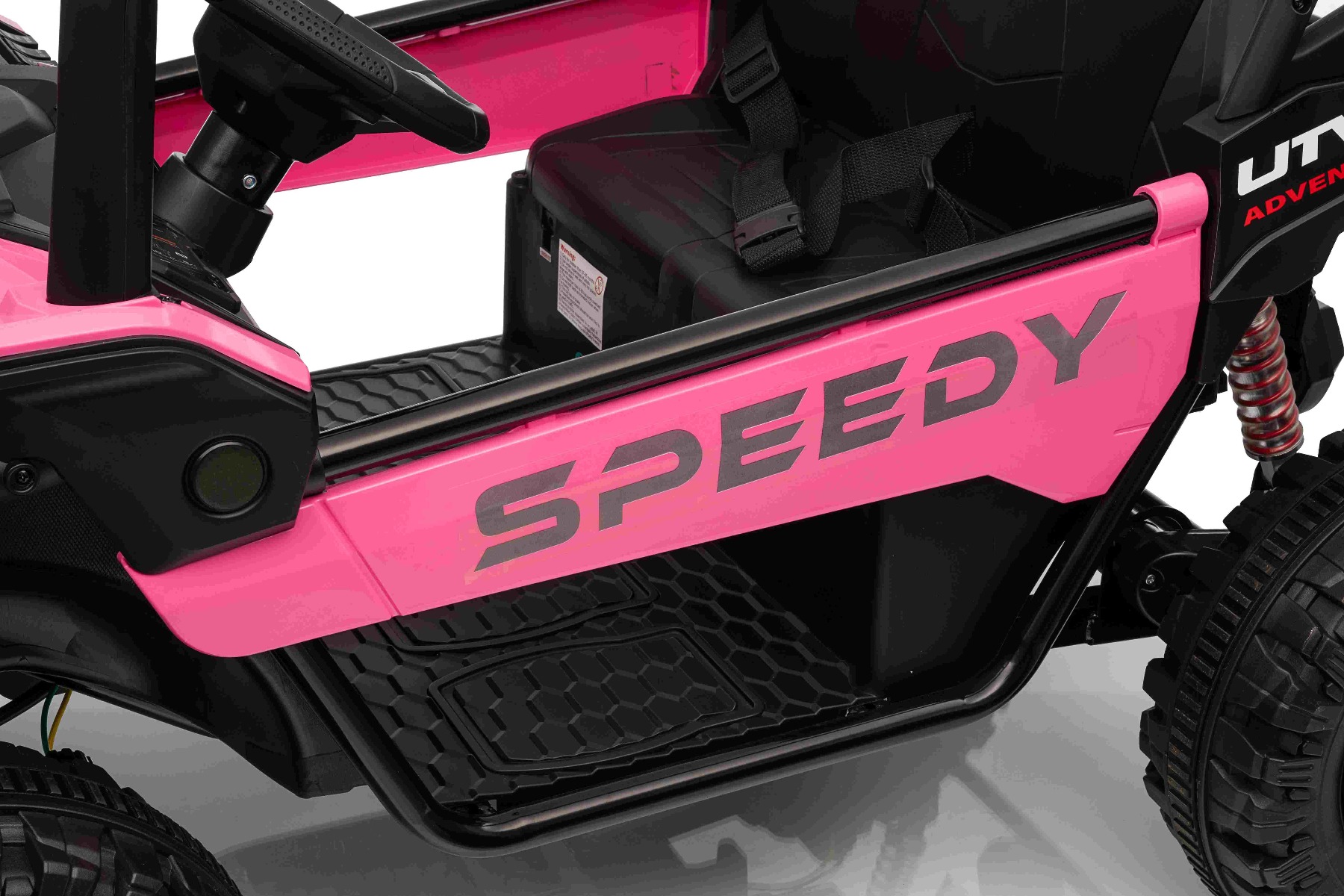 Maşinuţa electrica copii T-REX Ride 4×4 cu două locuri 24V, roz, player MP3 cu intrare USB/AUX, acționare 4×4, baterie litiu, suspensie, telecomandă, lumini LED