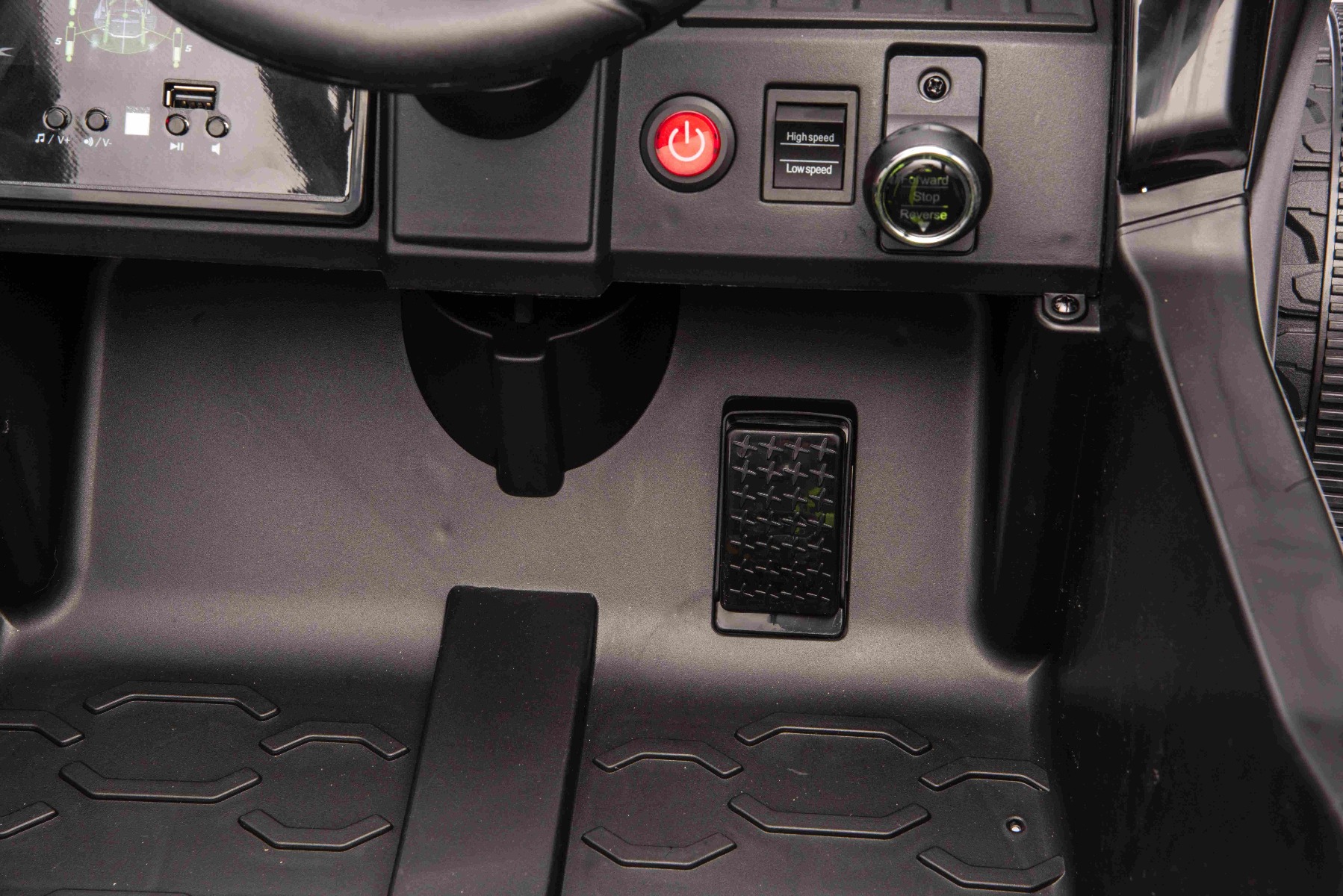 • Suspensie spate pentru o călătorie confortabilă • Scaun unic cu centură de siguranță în 3 puncte • Lumini LED față • Baterie: Litiu 12V 4Ah • 2 motoare de 25 W