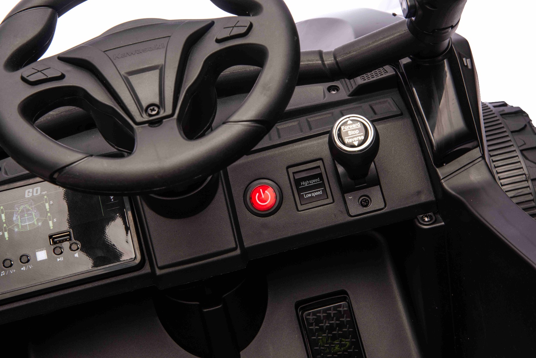 Mașină electrică de jucărie cu licență Kawasaki TERYX KRX 1000 12V! NOU: Baterie ușoară litiu (12V4AH) Capacitate de încărcare de până la 30 Kg. Mașinuța electrică de jucărie Kawasaki KRX1000, model cu licență, are aspectul realist al unui vehicul off-road cu patru roți, un cadru sportiv cu roll-cage, lumini LED frontale distinctive și o manoperă de calitate. Modelul are un singur loc, ideal pentru un copil, cu o capacitate de încărcare de până la 30 kg. Datorită bateriei litiu ușoare de 12V4Ah, a celor două motoare de 2 × 25 W, pornirii line și suspensiei spate de înaltă calitate, este potrivită pentru condusul pe suprafețe pavate și puțin mai solicitante. Telecomandă de 2,4 GHz cu setare de reglare a vitezei și frână de urgență Suspensie spate Loc individual cu centură de siguranță 2 motoare de 25 W Control și securitate Părinții au control deplin datorită telecomenzii de 2,4 GHz cu control lin al vitezei și funcție de oprire de siguranță. Copilul poate conduce prin intermediul comenzilor manuale sau puteți prelua direcția de la distanță în orice moment. Centura de siguranță în 3 puncte menține copilul stabil în timpul conducerii. Mașina este echipată cu lumini LED frontale puternice și există butoane pe volan pentru un claxon eficient și muzică. Echipamentul include, de asemenea, un player MP3 modern cu porturi USB/AUX, control al volumului și un indicator practic al stării bateriei. Pornirea cu un singur buton asigură o pornire ușoară cu un singur buton. Sistemul de acționare oferă o viteză de deplasare de 3–6 km/h, ceea ce este potrivit și pentru șoferii mai puțin experimentați. Accelerare lină – După apăsarea pedalei de accelerație, mașina pornește electronic fără smucituri. Pornirea este confortabilă și sigură. Un plus excelent este comutarea între telecomandă și comenzi manuale. Părintele poate prelua controlul în orice moment, inclusiv la oprirea de urgență. Potrivit și pentru copiii mai mici – datorită vitezei reduse și pornirii line!!! Pachetul include: adaptor cu indicator de încărcare baterie litiu telecomandă mașină de jucărie accesorii și instrucțiuni de asamblare Caracteristici Lumini LED MP3 player Port USB Telecomandă Volan multifunctional Suspensii Uși care se deschid Centură de siguranță Selector viteză Buton pornire Baterie litiu-ion Caracteristici speciale Lumini LED Volan multifuncțional Maneta de direcție, selector de viteză Specificații tehnice / Dimensiunile produsului Dimensiuni: 100 x 64 x 56 cm Dimensiuni pachet: 91 x 51 x 28 cm Motor cu pornire lină – fără smucituri la accelerare Suspensie spate Lumini LED față Scaun individual cu centură de siguranță în 3 puncte 2 motoare de 25 W – potrivite pentru suprafețe pavate și teren ușor Telecomandă de 2,4 GHz cu funcție STOP Pornire cu un singur buton USB/AUX (în funcție de echipare – efecte muzicale) Baterie: Litiu 12V 4Ah Viteză: 3–6 km/h Capacitate de încărcare: până la 30 kg Rezistență: 2-3 ore, în funcție de încărcătură și teren Indicator capacitate baterie Rame de protecție care se deschid – pentru o îmbarcare mai ușoară Categorie de vârstă: 3 până la 6 ani