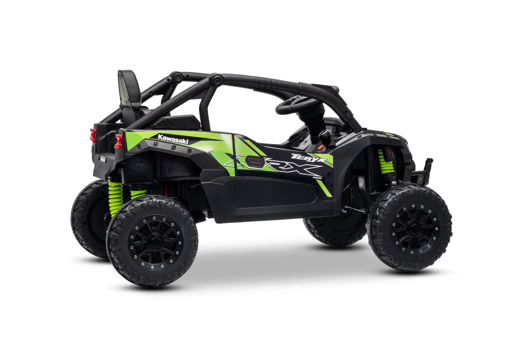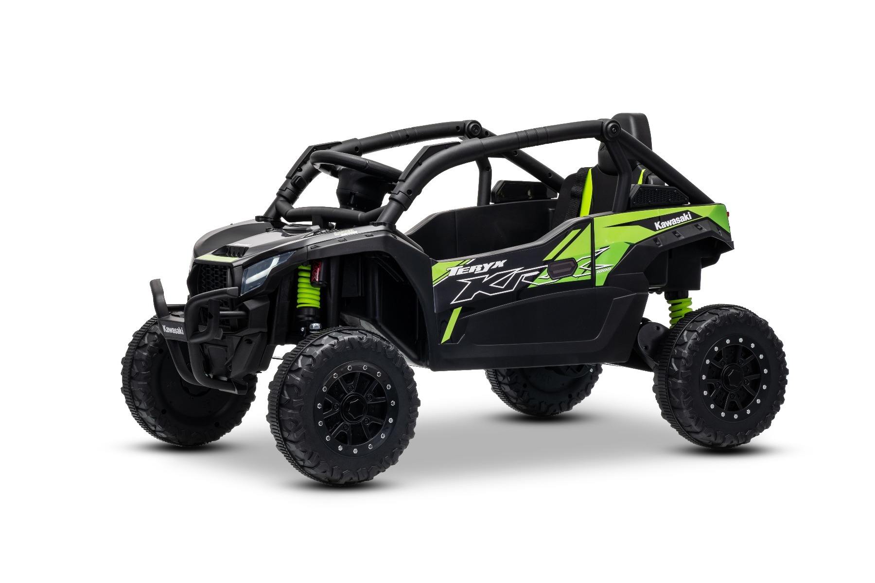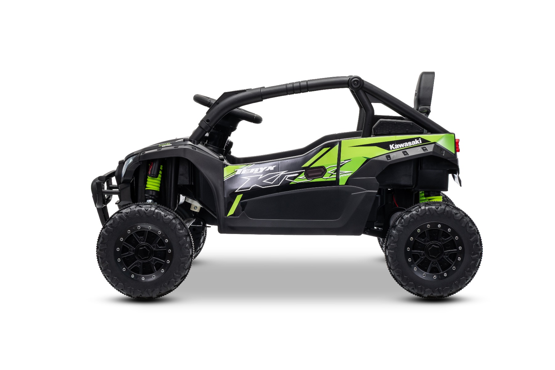 Mașinuță electrică de jucărie Kawasaki TERYX KRX 1000 12V, negru, un scaun, suspensie punte spate, telecomandă 2.4 Ghz, baterie litiu, 2 motoare x 25W, rame de protecție care se deschid, player MP3 cu intrare USB/AUX, model cu licență
