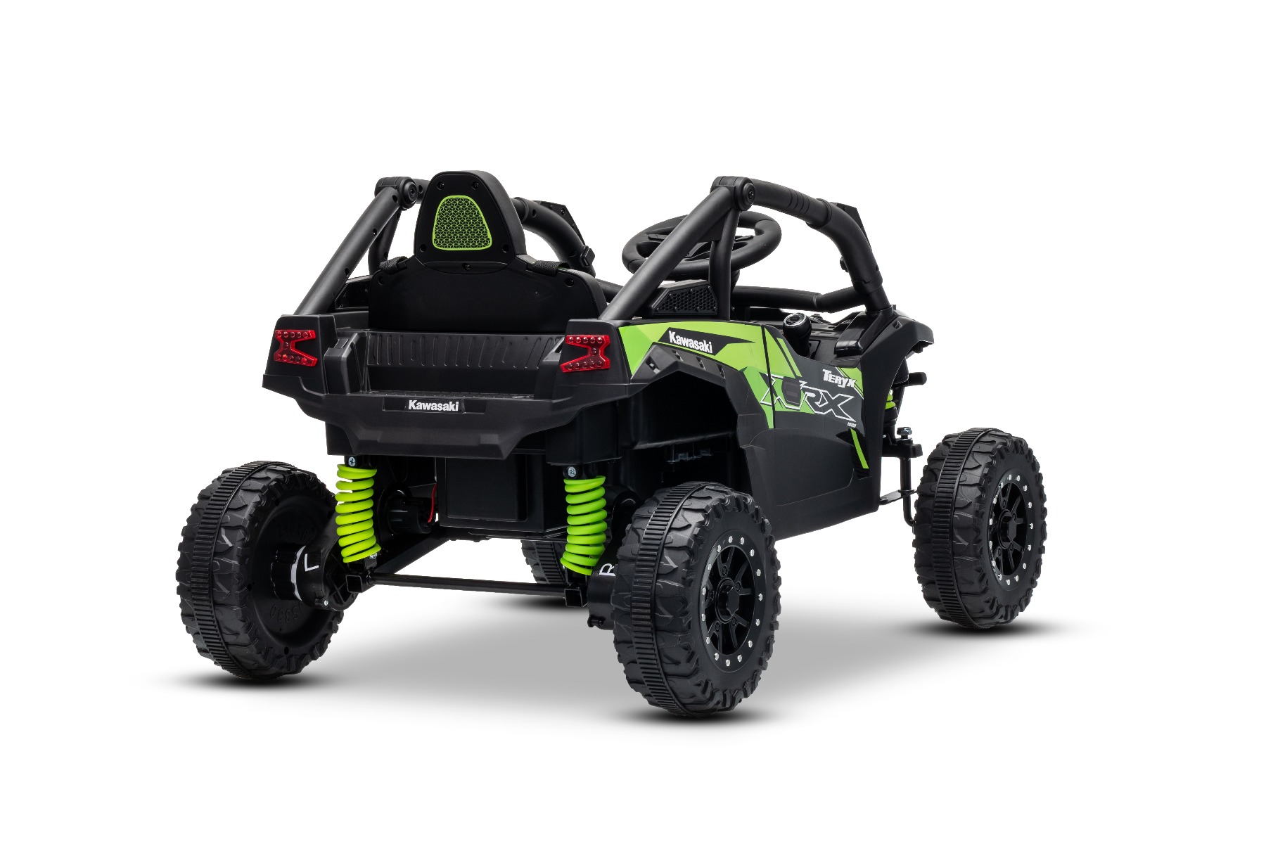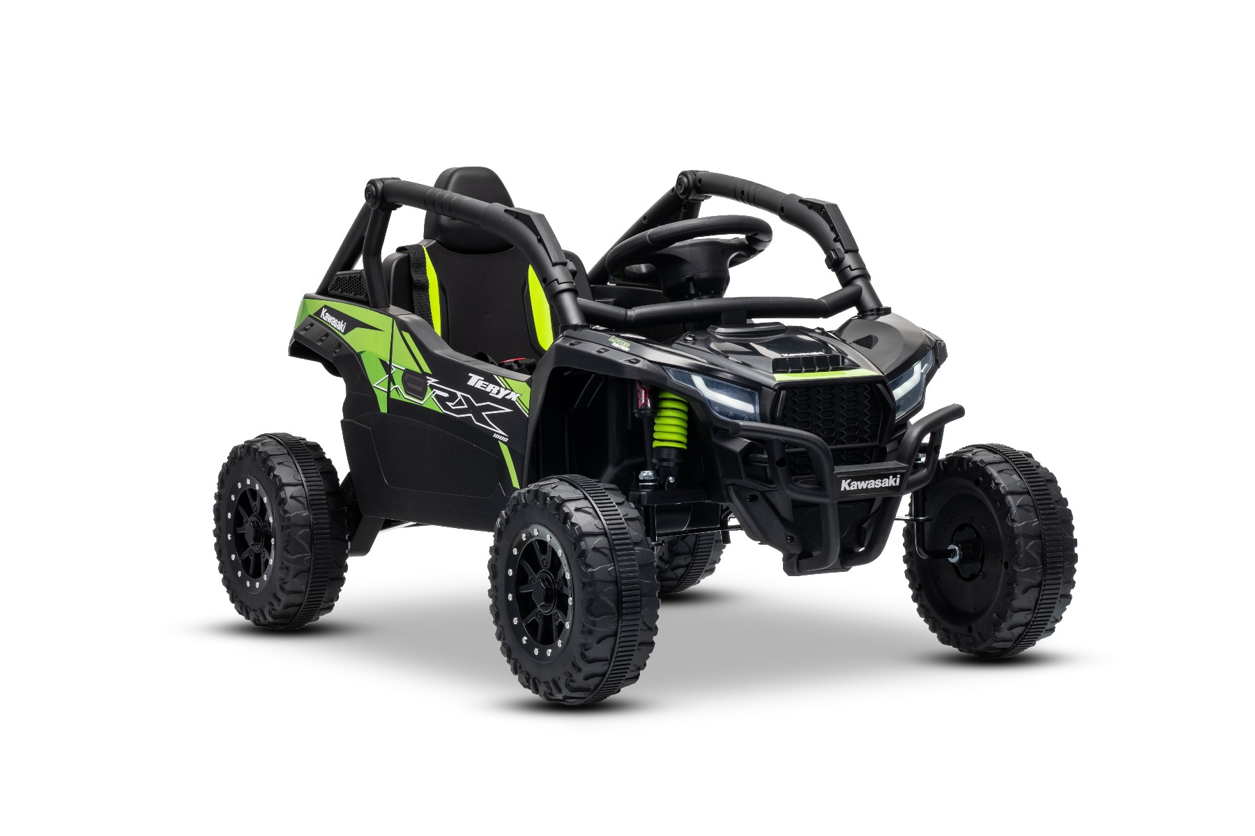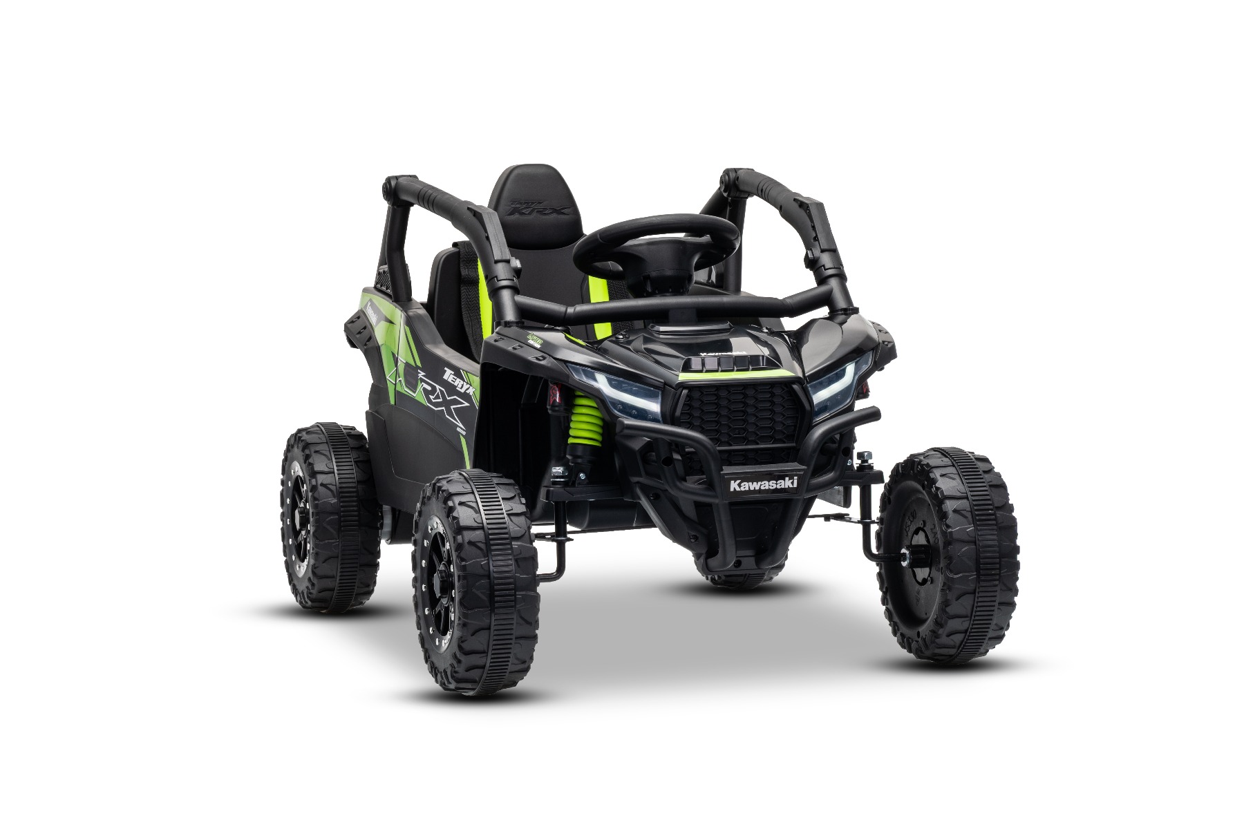 Mașinuță electrică de jucărie Kawasaki TERYX KRX 1000 12V, negru, un scaun, suspensie punte spate, telecomandă 2.4 Ghz, baterie litiu, 2 motoare x 25W, rame de protecție care se deschid, player MP3 cu intrare USB/AUX, model cu licență