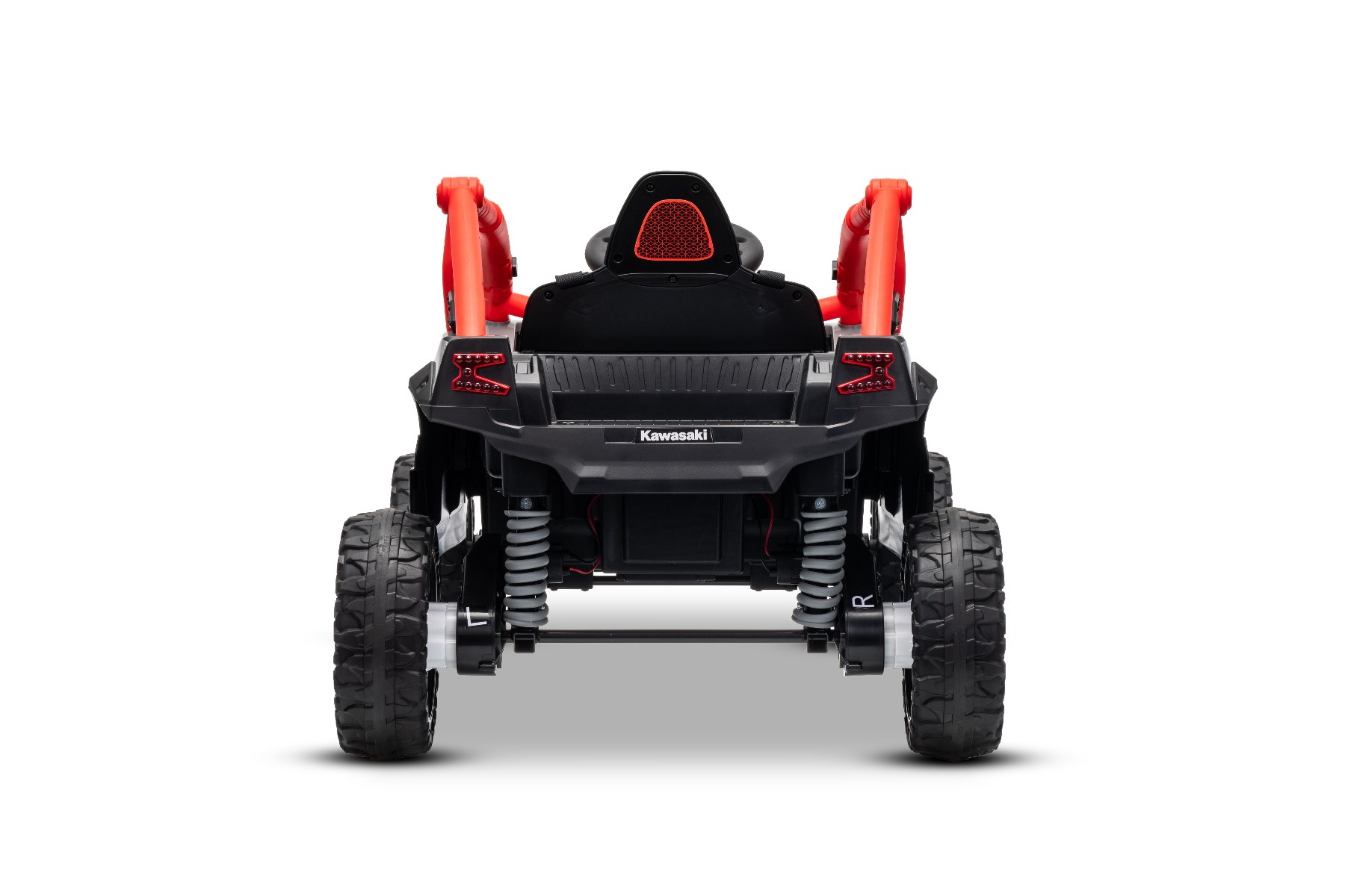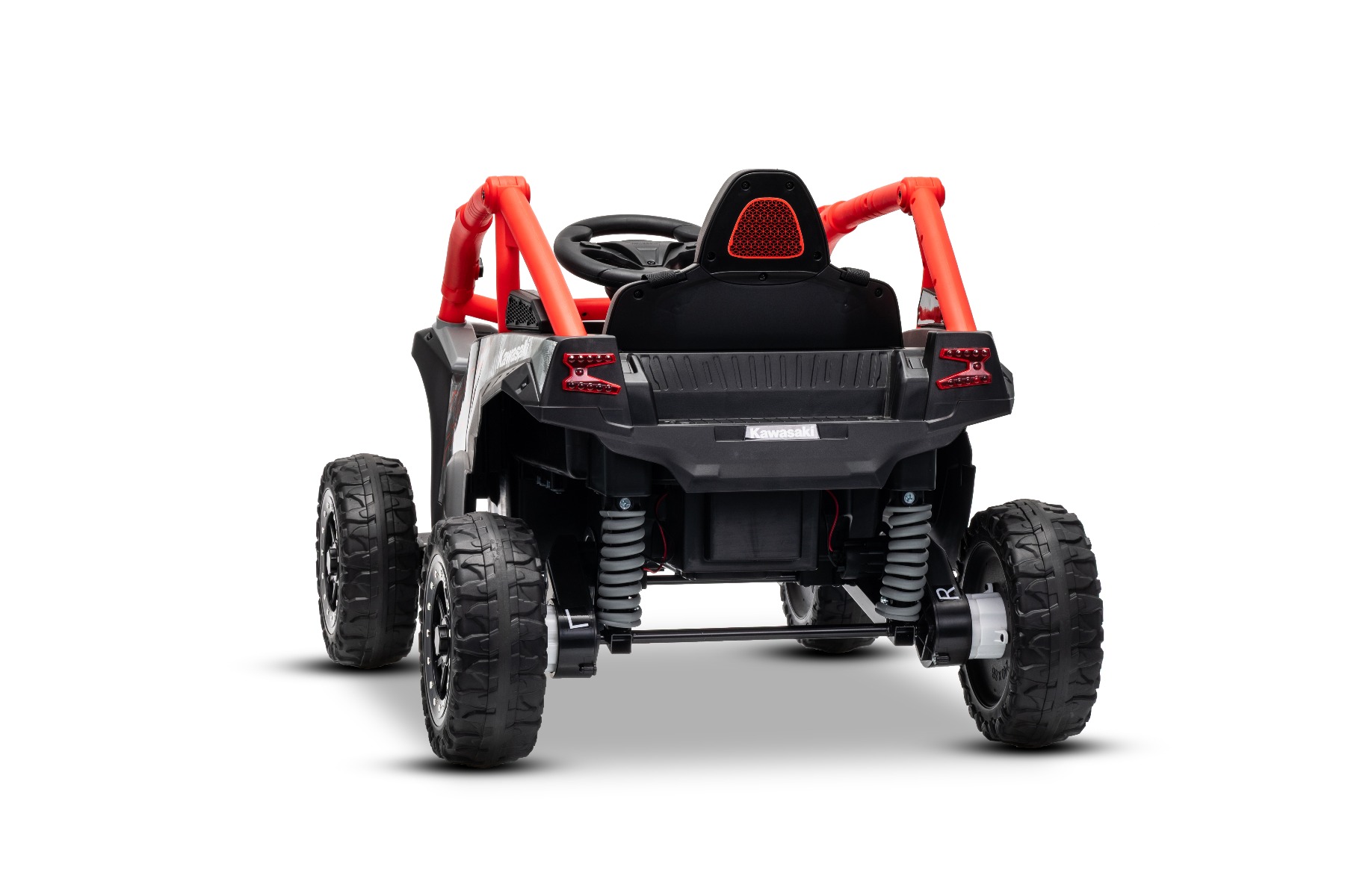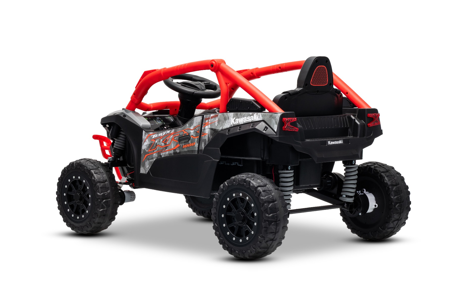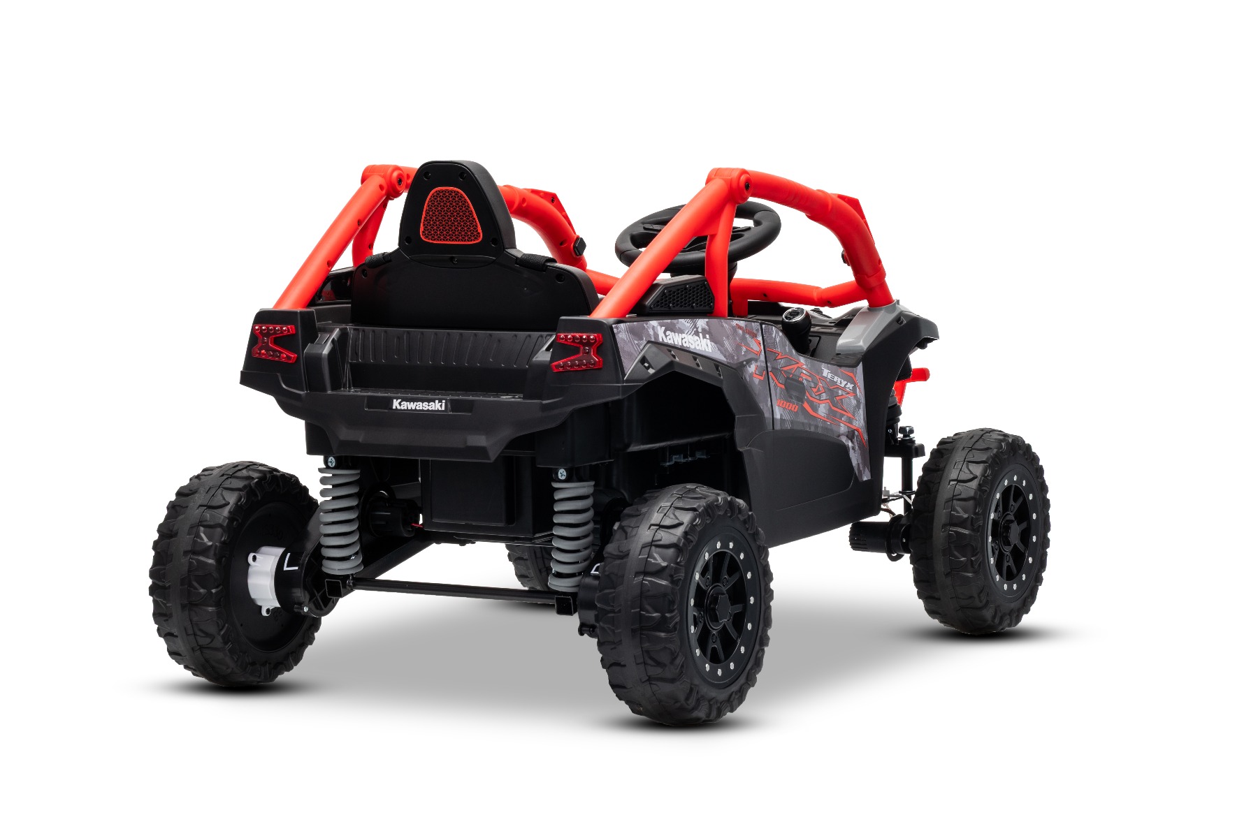 Mașinuță electrică de jucărie Kawasaki TERYX KRX 1000 12V, roșu, un scaun, suspensie punte spate, telecomandă 2.4 Ghz, baterie litiu, 2 motoare x 25W, rame de protecție care se deschid, player MP3 cu intrare USB/AUX, model cu licență