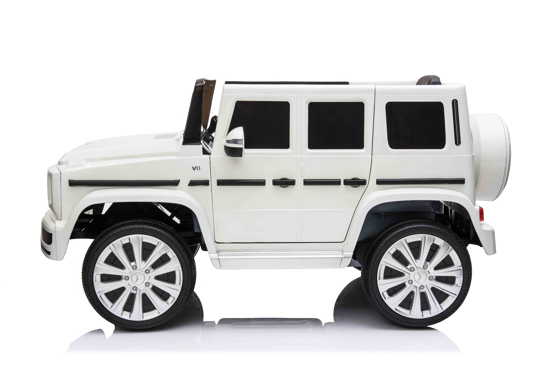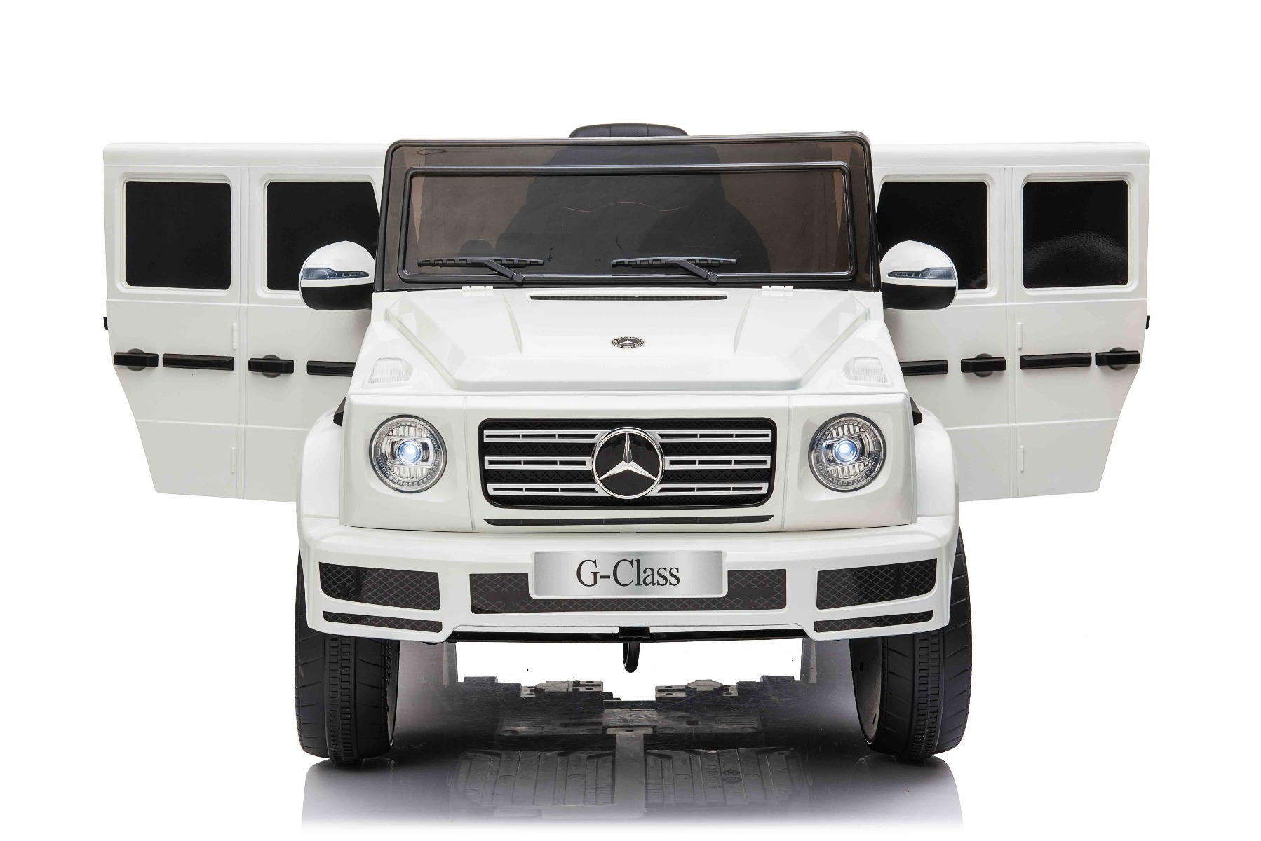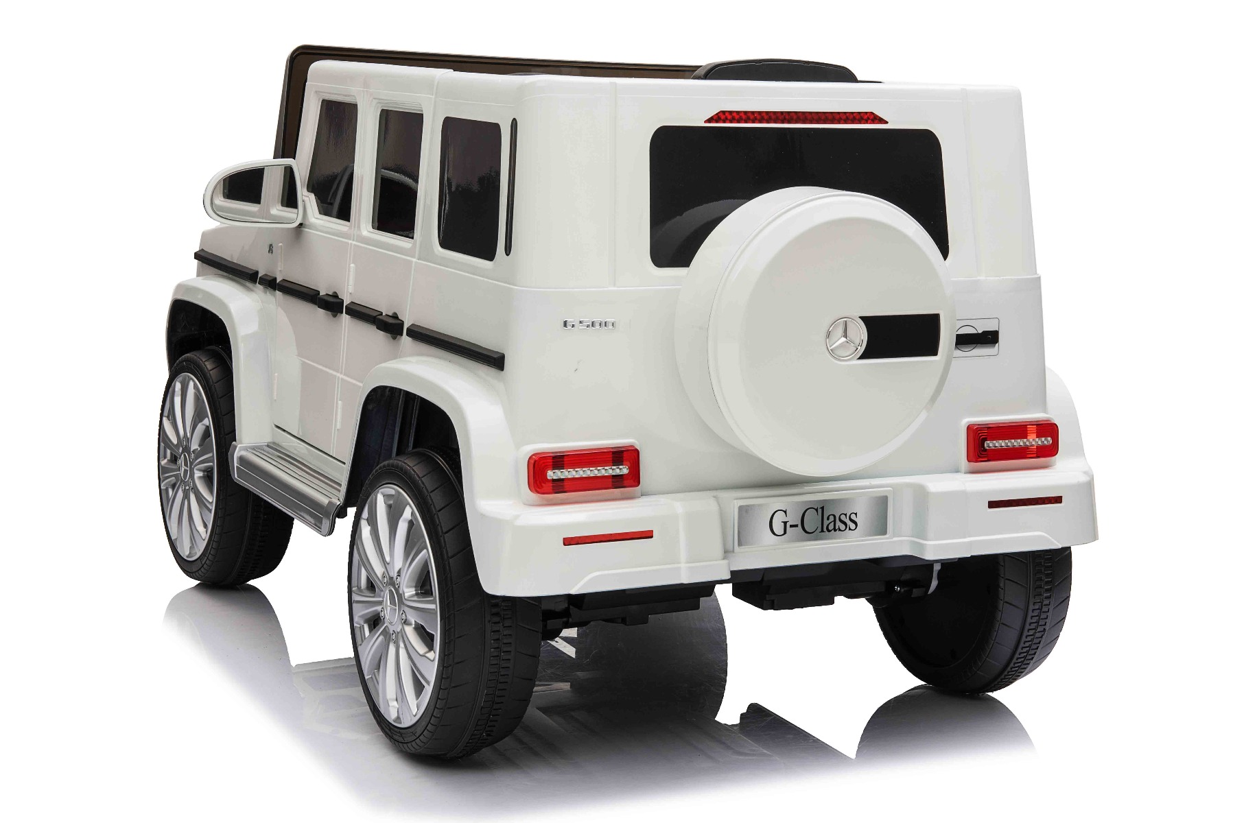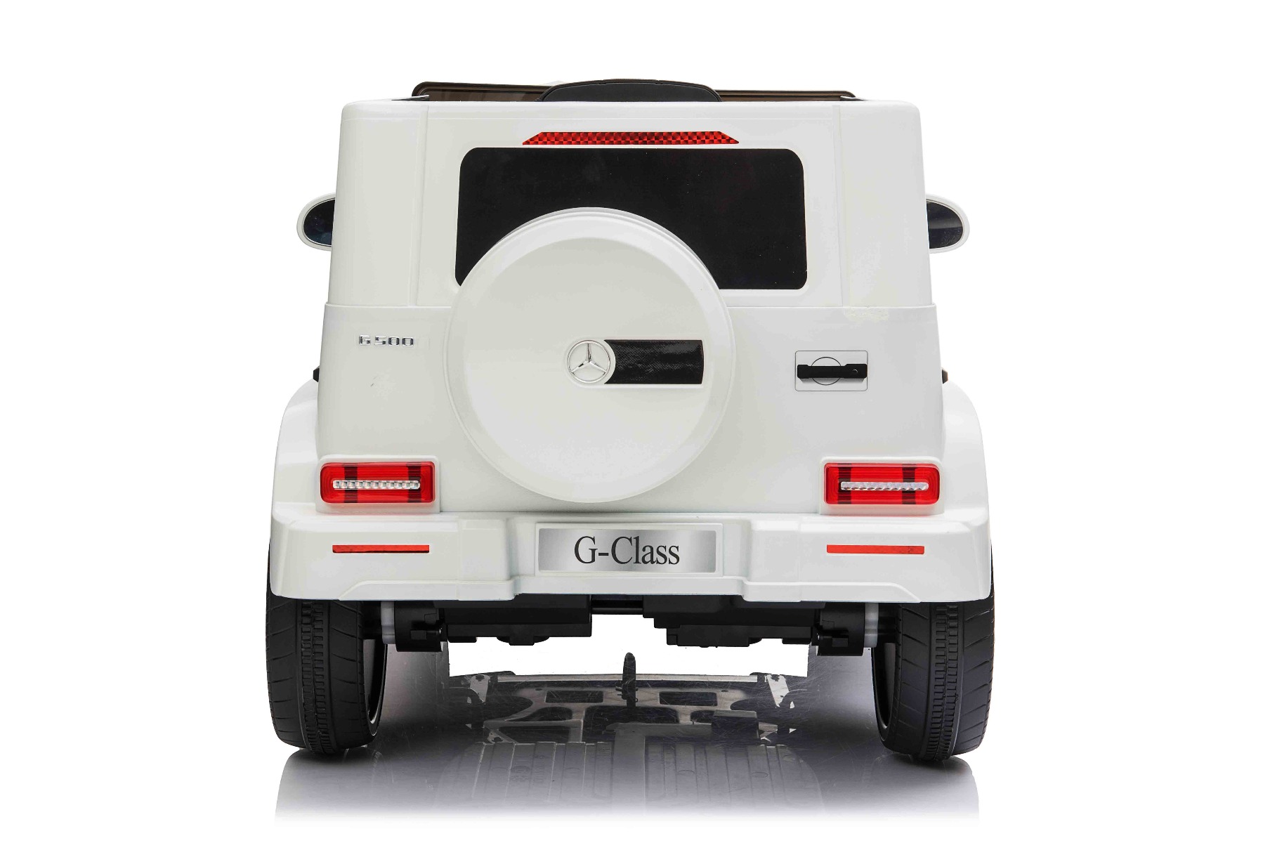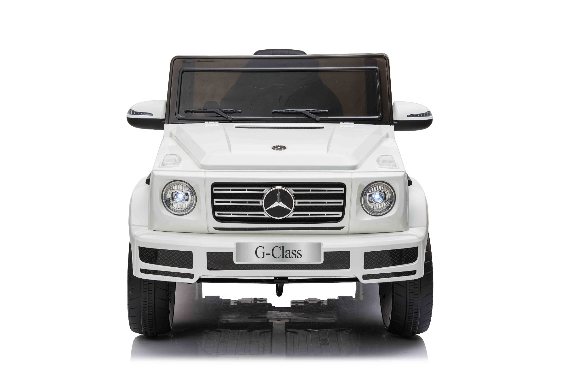 Mașinuță electrică de jucărie Mercedes G500 12V, alb, telecomandă 2.4 GHz, intrare USB/SD, suspensie, baterie litiu, lumini LED, licență ORIGINALĂ