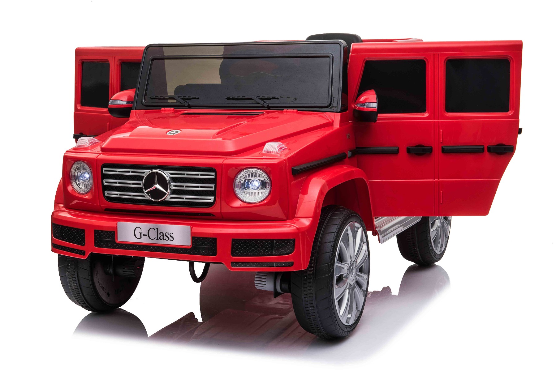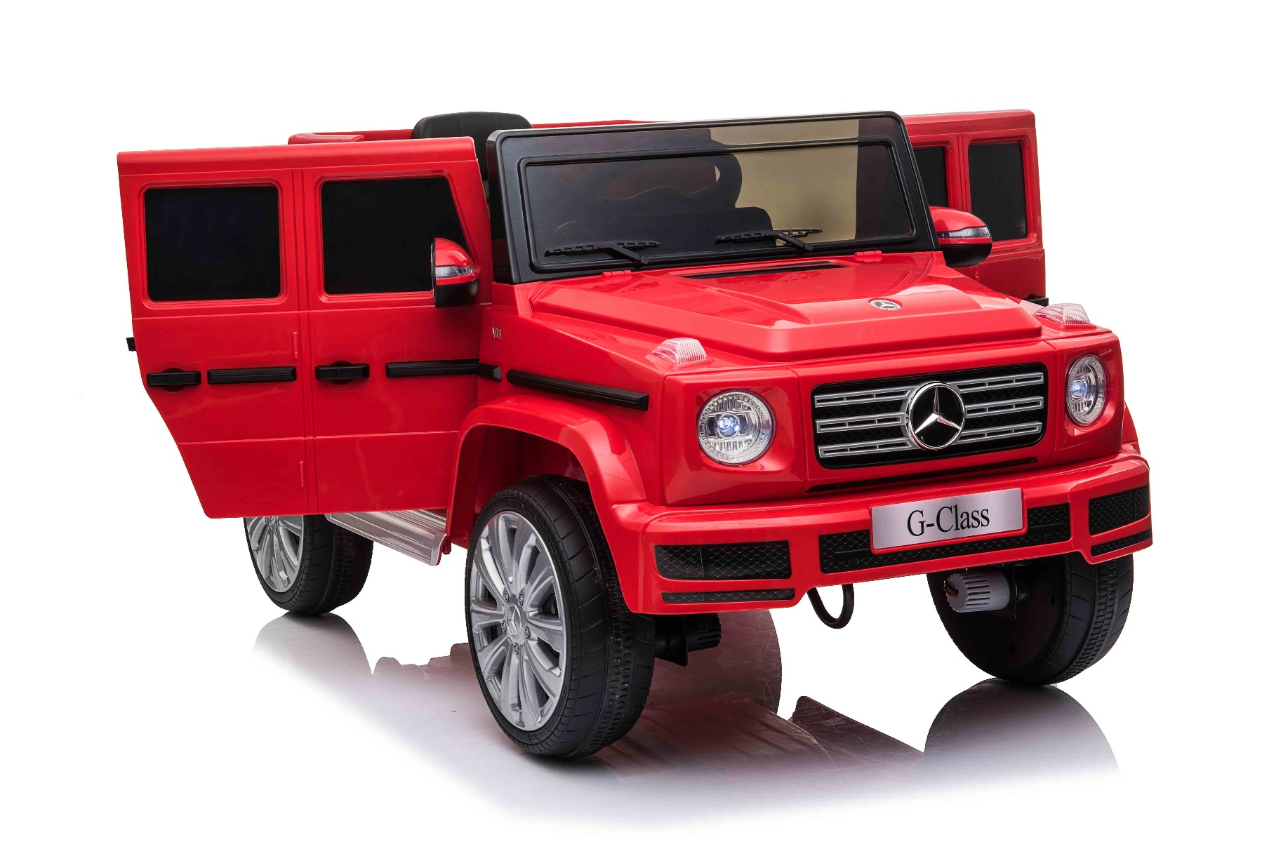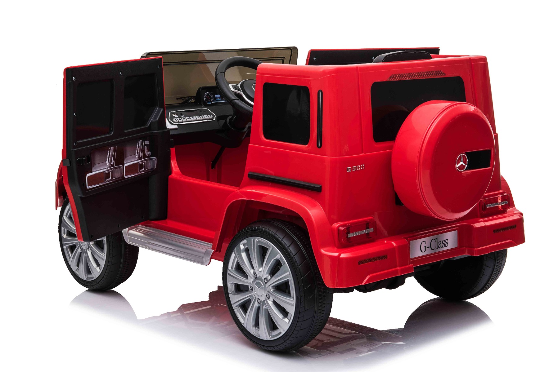 Mașină electrică de jucărie cu licență Mercedes G500 12V cu baterie litiu (12V/4Ah) Mașinuță electrică perfectă, cu aspect luxos. Când este pornită, modelul imită sunetul de pornire al unei mașini reale, iar luminile LED frontale se aprind. Sunt incluse efecte sonore precum: claxon, pornirea motorului, sunet de condus, cântece, melodii, echipament multimedia cum sunt cardul SD și intrarea USB. Volumul tuturor efectelor sonore este controlat de playerul MP3. Mașinuța are o telecomandă de nouă generație de 2,4 GHz, comutator de pornire iluminat. Frâna de urgență de pe telecomandă asigură controlul complet al mașinii și dezactivează toate funcțiile prin apăsarea unui buton. Mașinuța are tracțiune pe ambele roți spate. Frână de mână electrică. Imitație vitezometru. Volan multifuncțional cu butoane claxon și schimbare melodii. Două viteze înainte – lent și rapid, 1 viteză înapoi. Posibilitatea de a regla viteza de deplasare și de pe telecomandă. Funcție de accelerare lină – Când pedala de accelerație este apăsată, mașina pornește, iar pornirea este controlată electronic pentru a fi lină datorită accelerației line integrate. Datorită acestui fapt, nu există smucituri neplăcute la pornire atunci când pedala este apăsată. Axul spate este echipat cu suspensie pentru o călătorie confortabilă. Baterie litiu (12V4AH): Durata lungă de viață – Rezistă la mai multe cicluri de încărcare. Capacitate mare – Sunt ușoare și puternice. Încărcare rapidă – Se încarcă rapid și se descarcă lent. Pentru o siguranță sporită a copiilor, există o centură de siguranță reglabilă pe scaun, iar deschiderea largă a ușii facilitează intrarea și ieșirea din mașină. Caracteristici Lumini LED MP3 player Port USB Card SD Telecomandă Volan multifunctional Suspensii Uși care se deschid Centură de siguranță Selector viteză Buton pornire Baterie litiu-ion Caracteristici speciale Lumini LED Uși care se deschid Specificații tehnice / Dimensiunile produsului Model cu licență Tip mașină: Cu 1 loc Tracțiune: 2×2 Motor: 2 x motoare 12 V / 25 W Număr de viteze: 3 (2 înainte și 1 înapoi) Viteză deplasare: 3-5 km/h Capacitate de încărcare: max. până la 30 kg Baterie: Litiu 12V / 4Ah Timp de încărcare: 4-5 ore Autonomie: 2,5 – 3,5h Pornire lină Frână de urgență Centură de siguranță: Centură cu 2 puncte Suspensie roți spate Roți din plastic Scaun: Plastic Ușă: deschisă cu blocare de siguranță Iluminare: lumini față, lumini spate Echipament multimedia: MP3, USB, card SD, control volan Vârstă recomandată: 3 până la 6 ani Dimensiuni pachet: 103 x 57 x 46 cm Dimensiuni produs: 107 x 64 x 54 cm