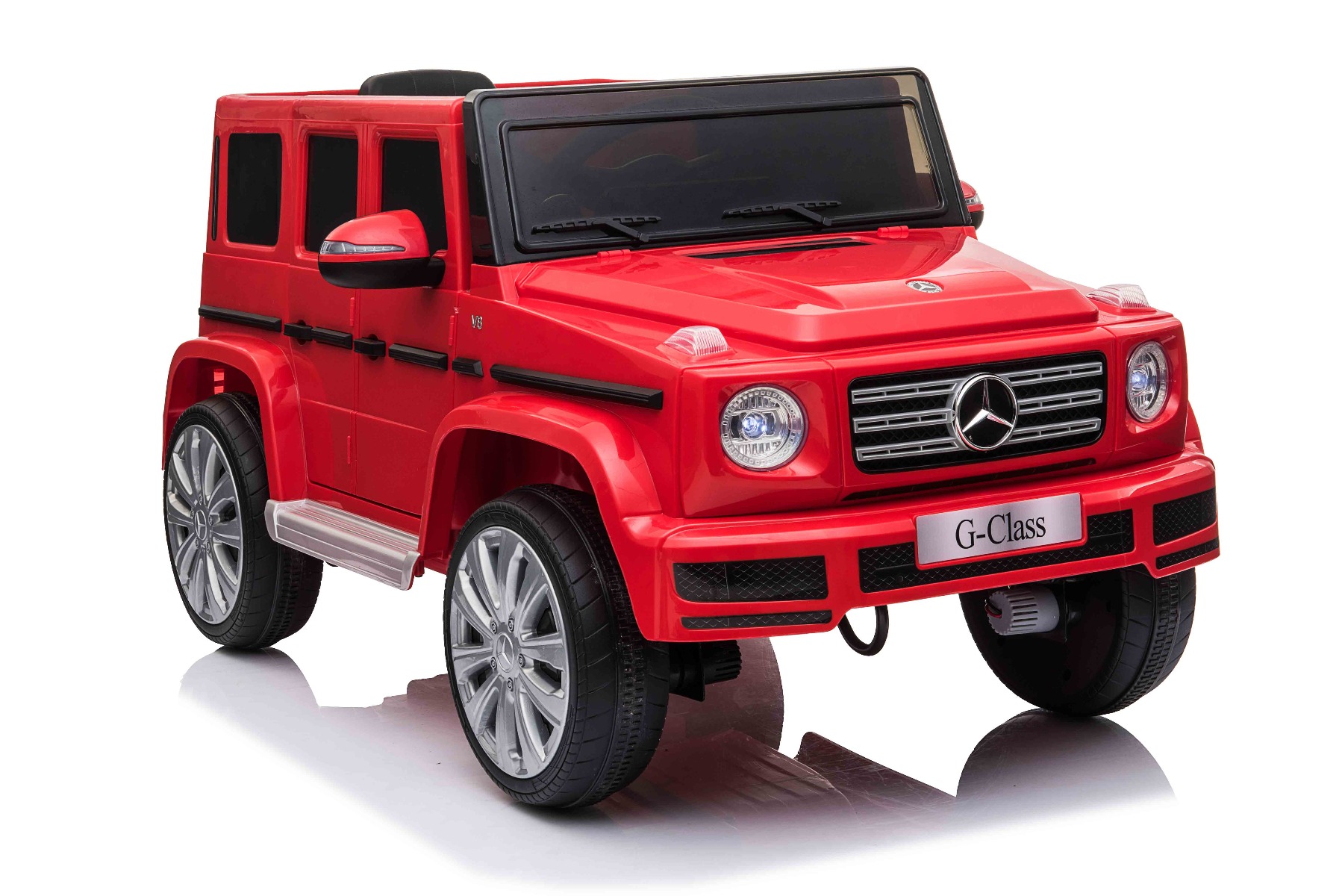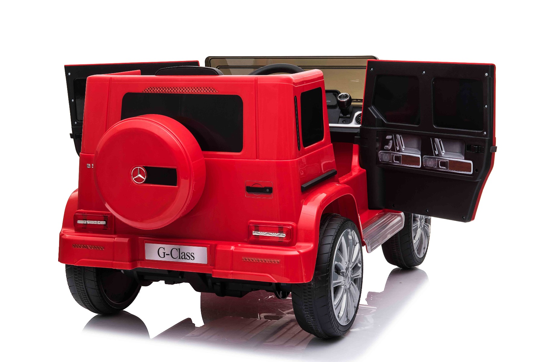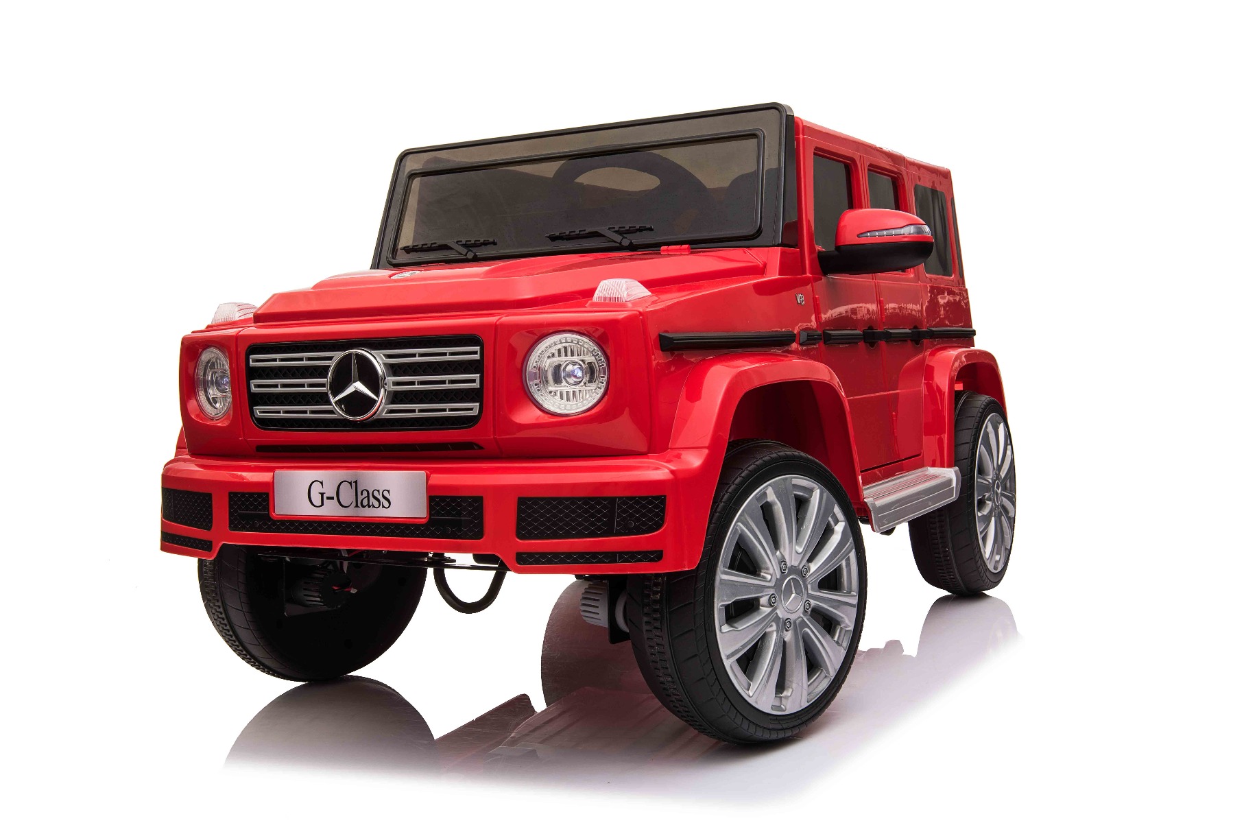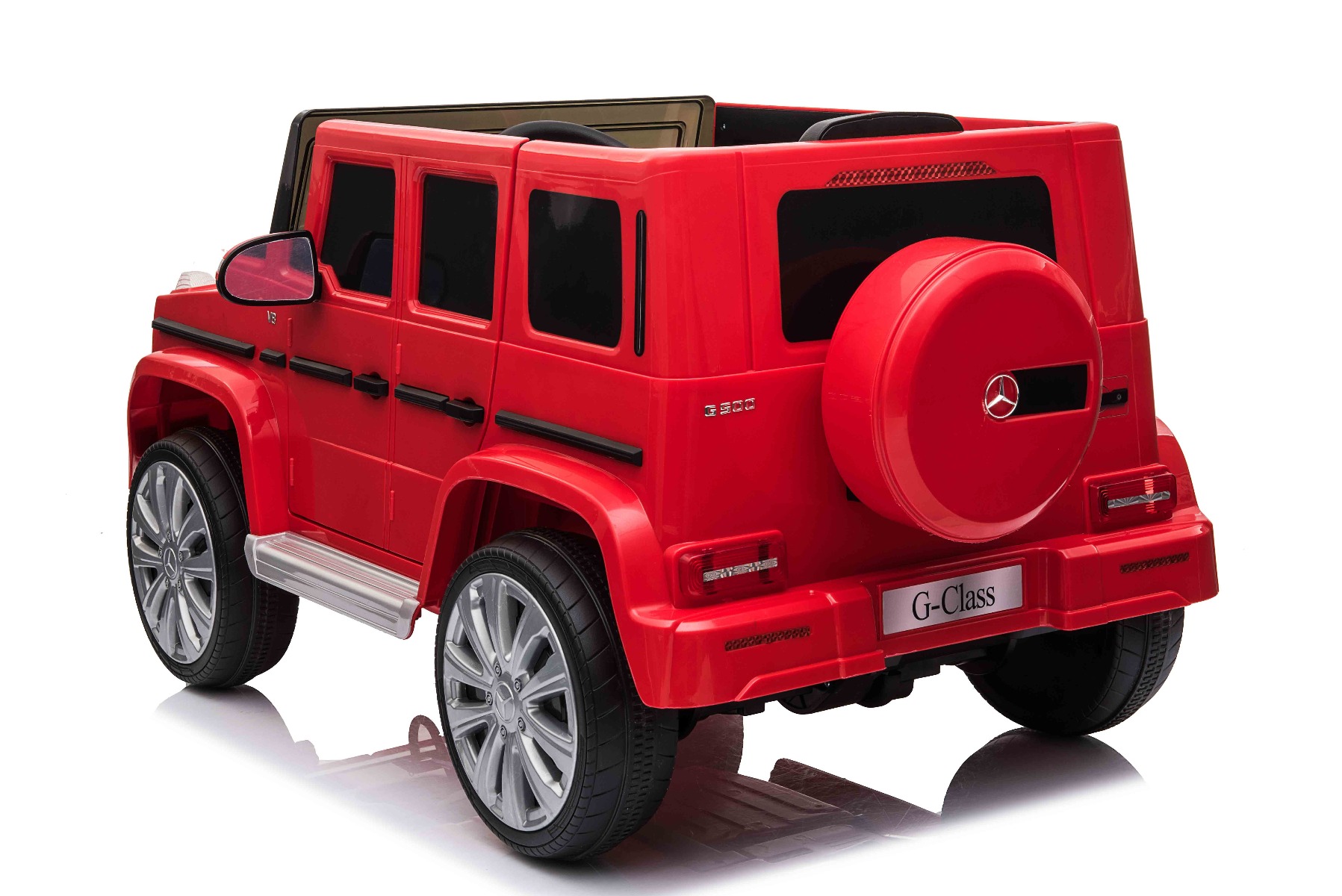 Mașină electrică de jucărie cu licență Mercedes G500 12V cu baterie litiu (12V/4Ah) Mașinuță electrică perfectă, cu aspect luxos. Când este pornită, modelul imită sunetul de pornire al unei mașini reale, iar luminile LED frontale se aprind. Sunt incluse efecte sonore precum: claxon, pornirea motorului, sunet de condus, cântece, melodii, echipament multimedia cum sunt cardul SD și intrarea USB. Volumul tuturor efectelor sonore este controlat de playerul MP3. Mașinuța are o telecomandă de nouă generație de 2,4 GHz, comutator de pornire iluminat. Frâna de urgență de pe telecomandă asigură controlul complet al mașinii și dezactivează toate funcțiile prin apăsarea unui buton. Mașinuța are tracțiune pe ambele roți spate. Frână de mână electrică. Imitație vitezometru. Volan multifuncțional cu butoane claxon și schimbare melodii. Două viteze înainte – lent și rapid, 1 viteză înapoi. Posibilitatea de a regla viteza de deplasare și de pe telecomandă. Funcție de accelerare lină – Când pedala de accelerație este apăsată, mașina pornește, iar pornirea este controlată electronic pentru a fi lină datorită accelerației line integrate. Datorită acestui fapt, nu există smucituri neplăcute la pornire atunci când pedala este apăsată. Axul spate este echipat cu suspensie pentru o călătorie confortabilă. Baterie litiu (12V4AH): Durata lungă de viață – Rezistă la mai multe cicluri de încărcare. Capacitate mare – Sunt ușoare și puternice. Încărcare rapidă – Se încarcă rapid și se descarcă lent. Pentru o siguranță sporită a copiilor, există o centură de siguranță reglabilă pe scaun, iar deschiderea largă a ușii facilitează intrarea și ieșirea din mașină. Caracteristici Lumini LED MP3 player Port USB Card SD Telecomandă Volan multifunctional Suspensii Uși care se deschid Centură de siguranță Selector viteză Buton pornire Baterie litiu-ion Caracteristici speciale Lumini LED Uși care se deschid Specificații tehnice / Dimensiunile produsului Model cu licență Tip mașină: Cu 1 loc Tracțiune: 2×2 Motor: 2 x motoare 12 V / 25 W Număr de viteze: 3 (2 înainte și 1 înapoi) Viteză deplasare: 3-5 km/h Capacitate de încărcare: max. până la 30 kg Baterie: Litiu 12V / 4Ah Timp de încărcare: 4-5 ore Autonomie: 2,5 – 3,5h Pornire lină Frână de urgență Centură de siguranță: Centură cu 2 puncte Suspensie roți spate Roți din plastic Scaun: Plastic Ușă: deschisă cu blocare de siguranță Iluminare: lumini față, lumini spate Echipament multimedia: MP3, USB, card SD, control volan Vârstă recomandată: 3 până la 6 ani Dimensiuni pachet: 103 x 57 x 46 cm Dimensiuni produs: 107 x 64 x 54 cm