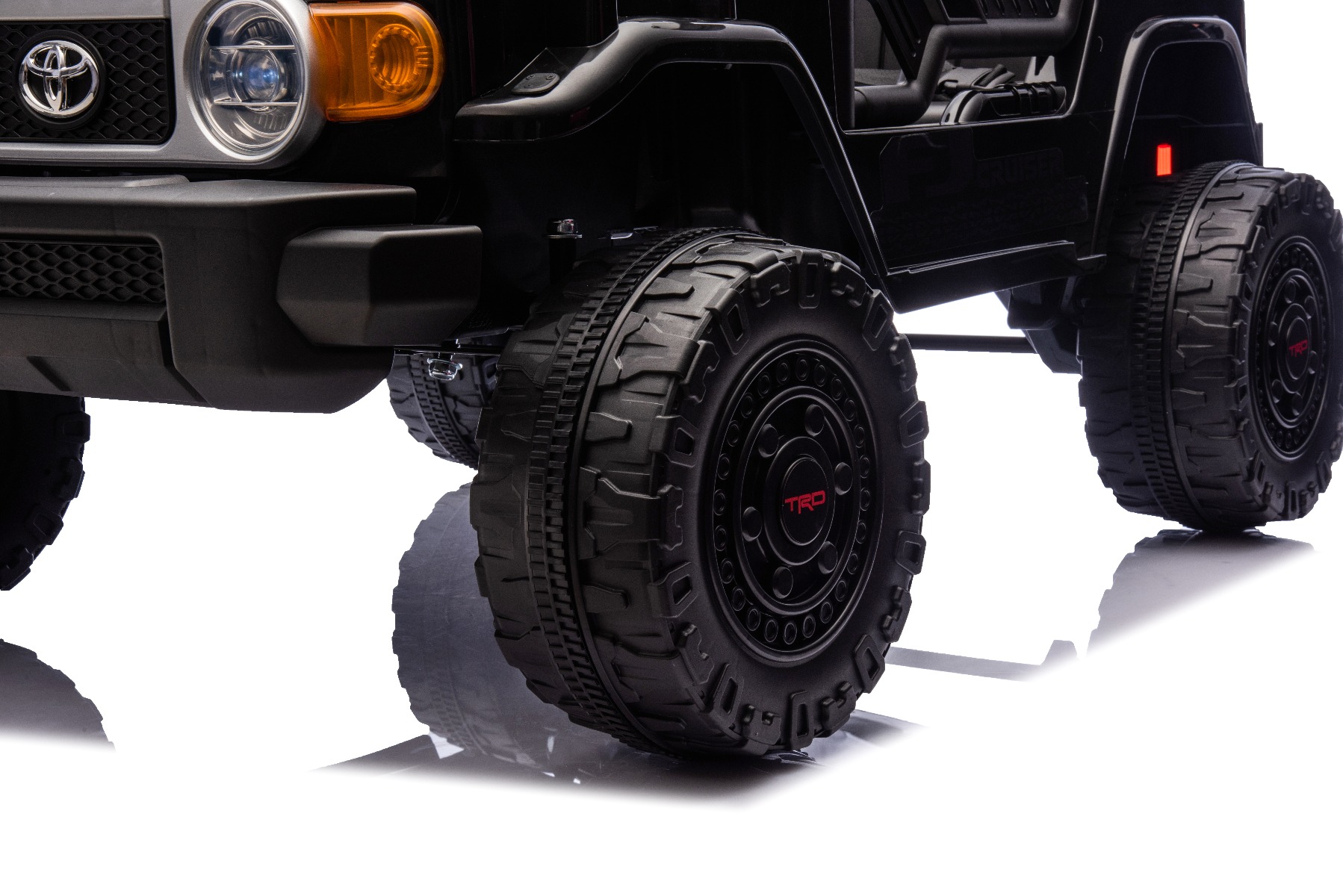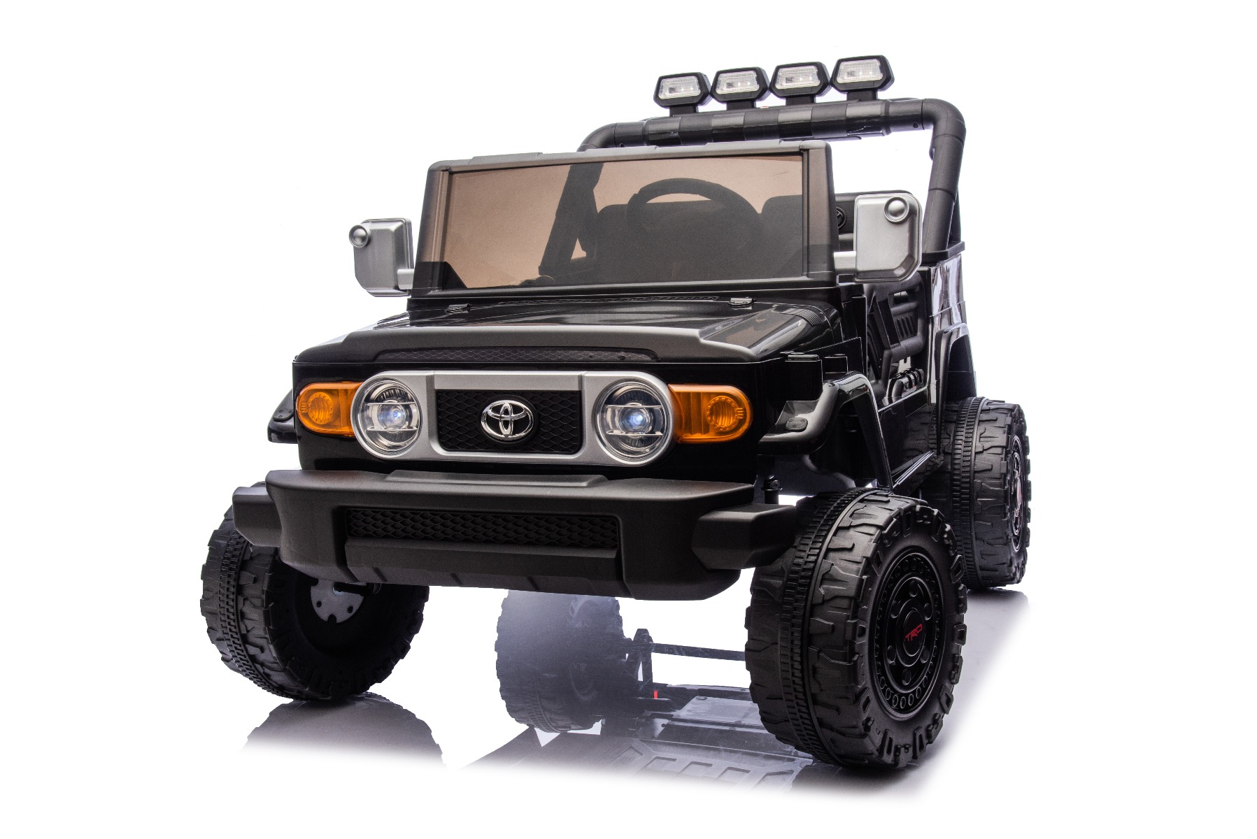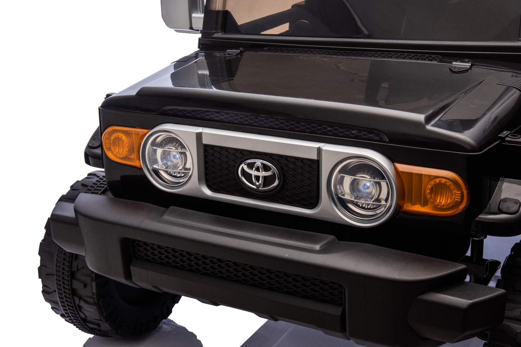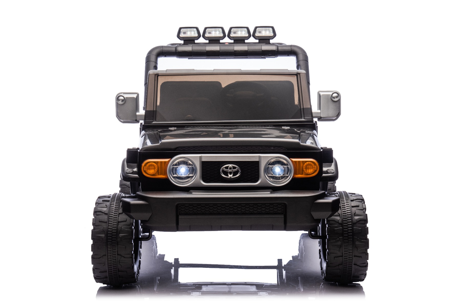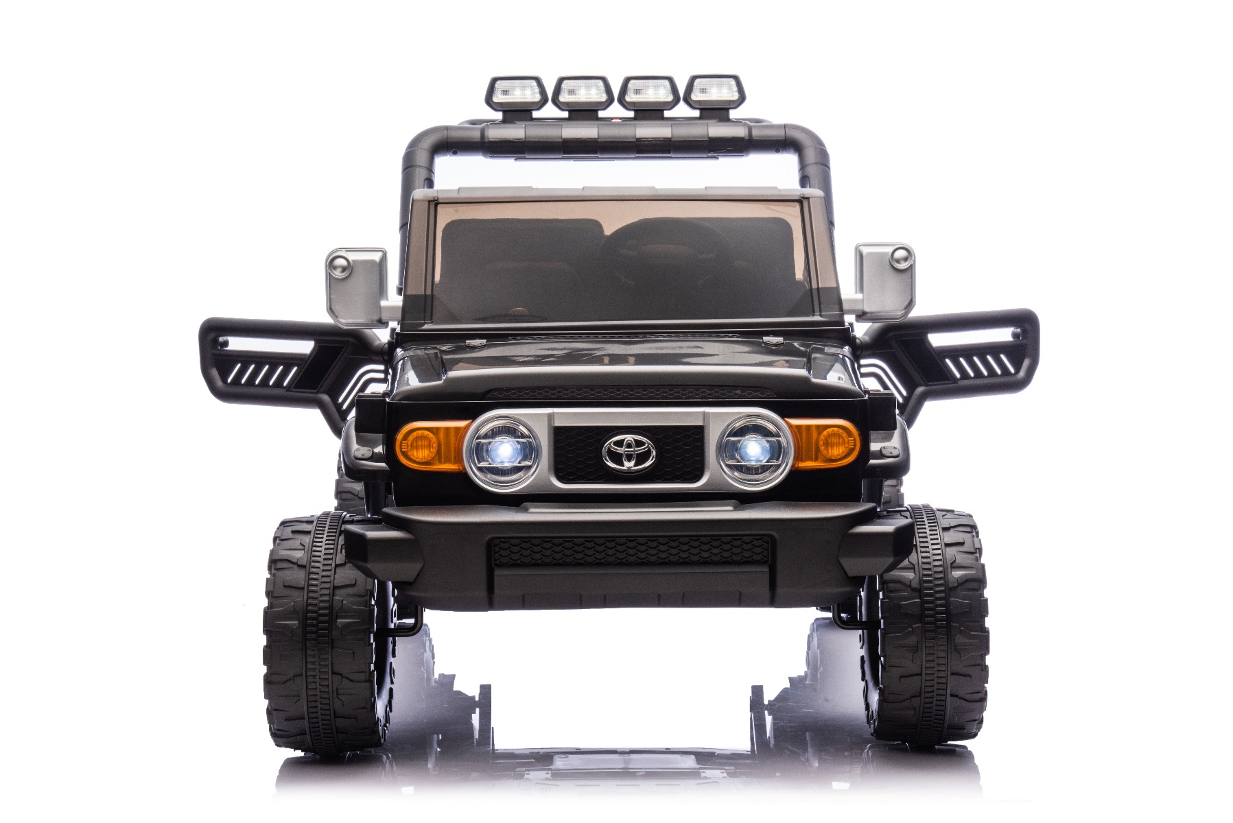Mașinuță electrică de jucărie Toyota FJ Cruiser XXL cu tracțiune 4×4, autorizată (cu două locuri), negru, baterie litiu portabilă, șasiu înalt, două locuri, punte spate cu suspensie, telecomandă 2,4 GHz, player MP3 cu Bluetooth, lumini LED
