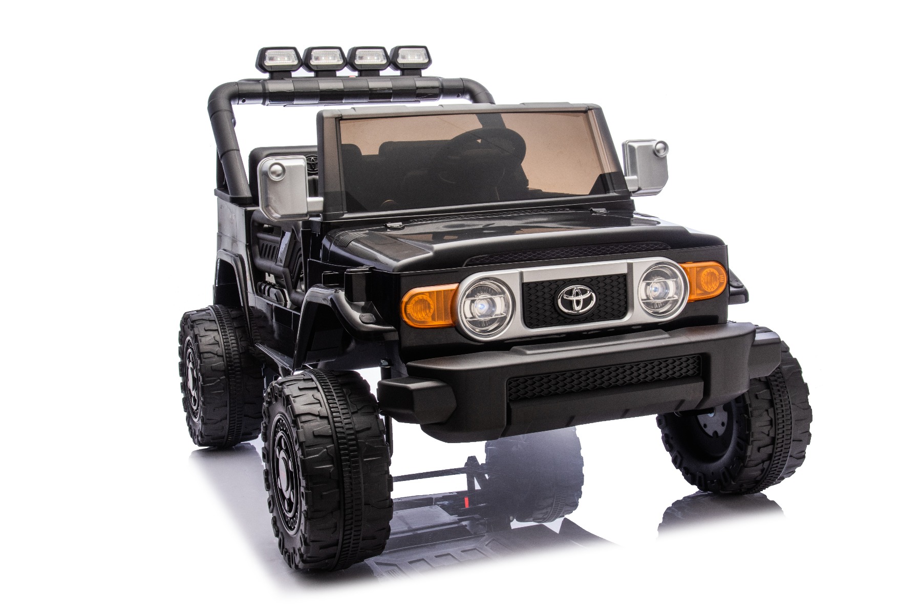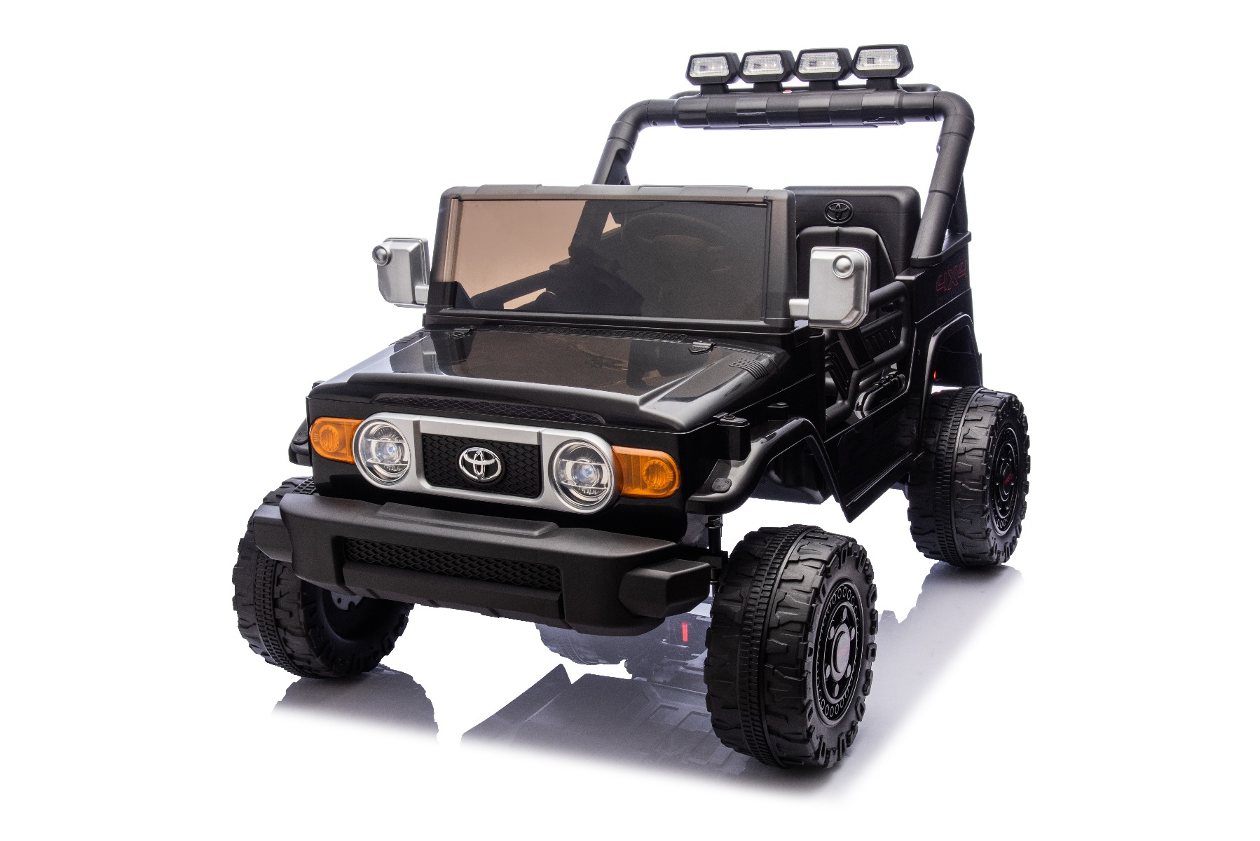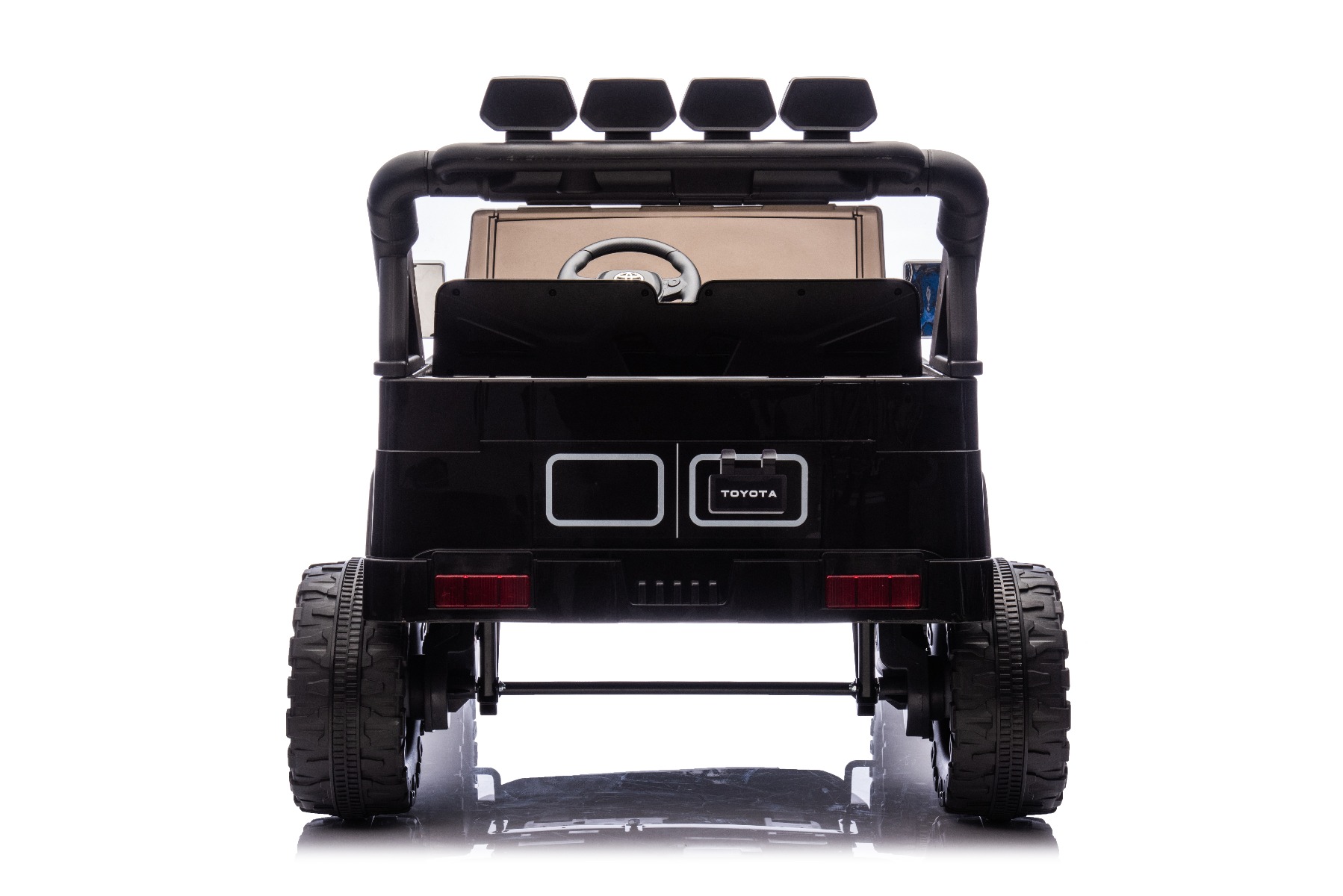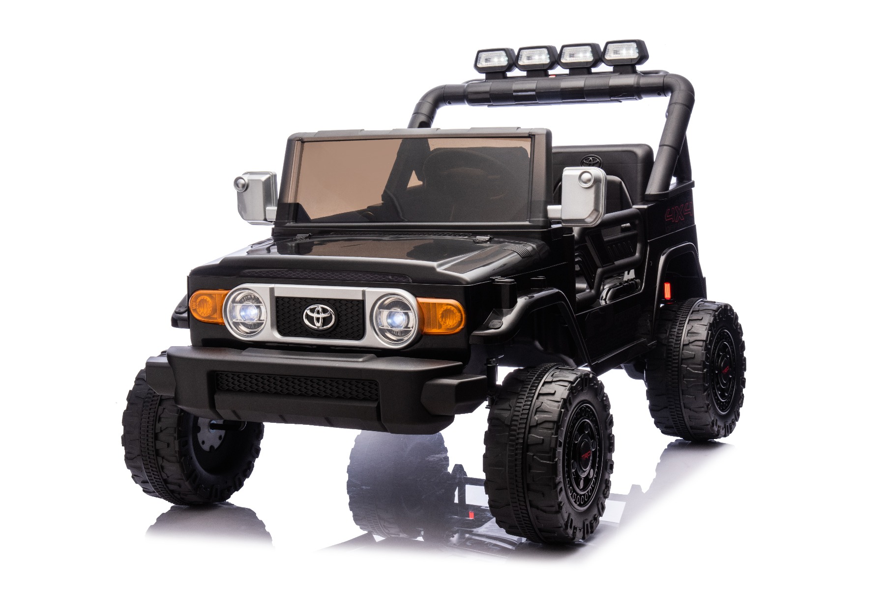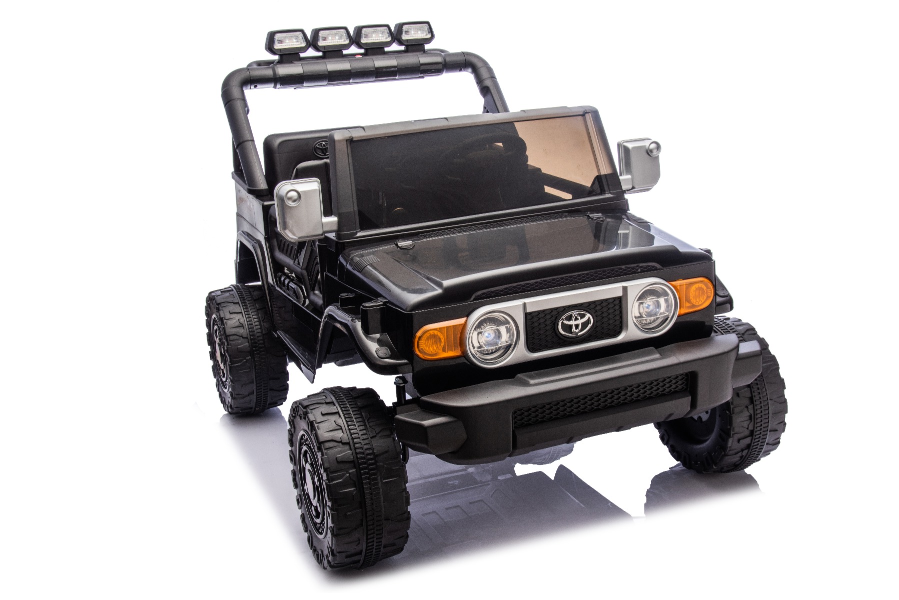 Mașinuță electrică de jucărie Toyota FJ Cruiser XXL cu tracțiune 4×4, autorizată (cu două locuri), negru, baterie litiu portabilă, șasiu înalt, două locuri, punte spate cu suspensie, telecomandă 2,4 GHz, player MP3 cu Bluetooth, lumini LED