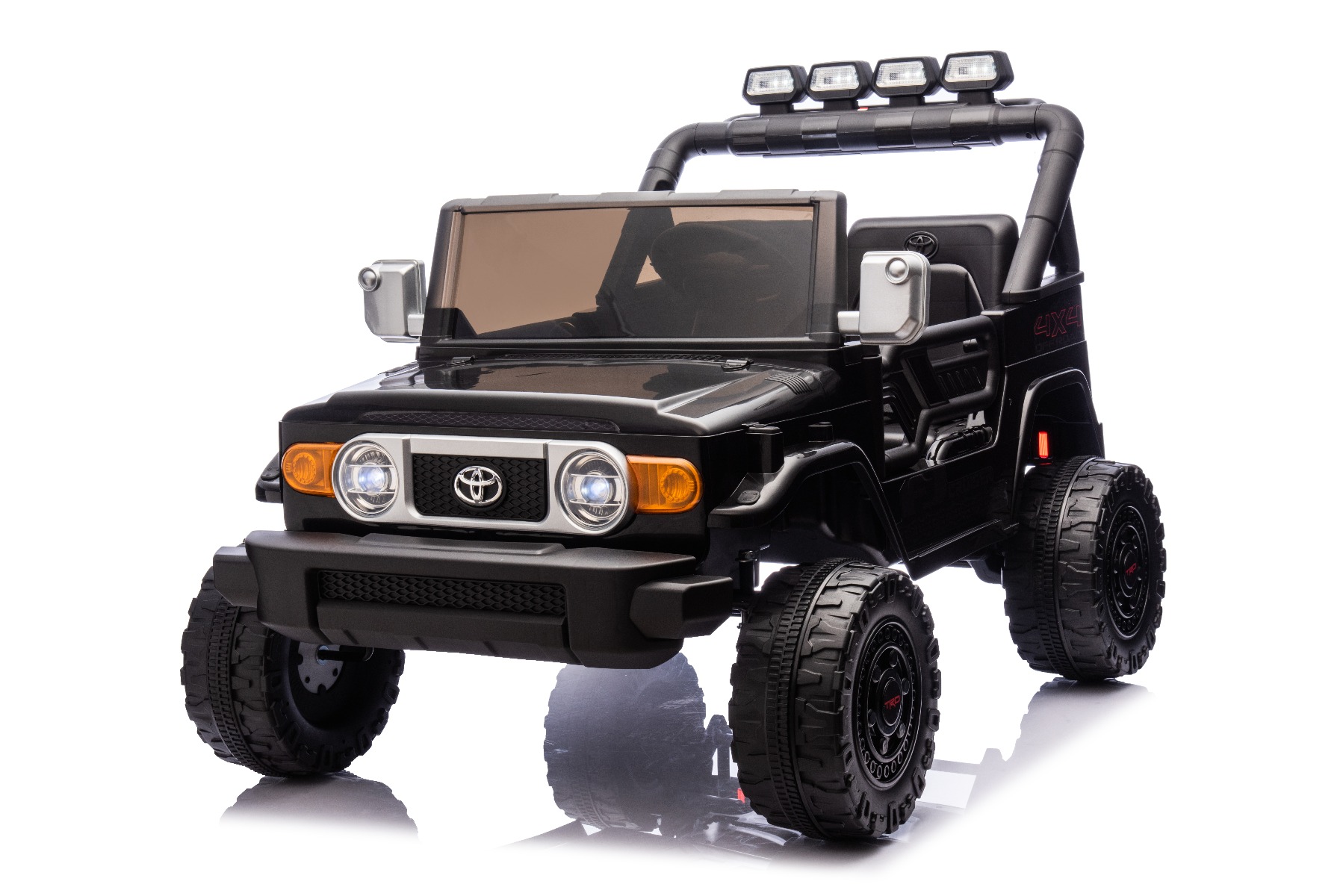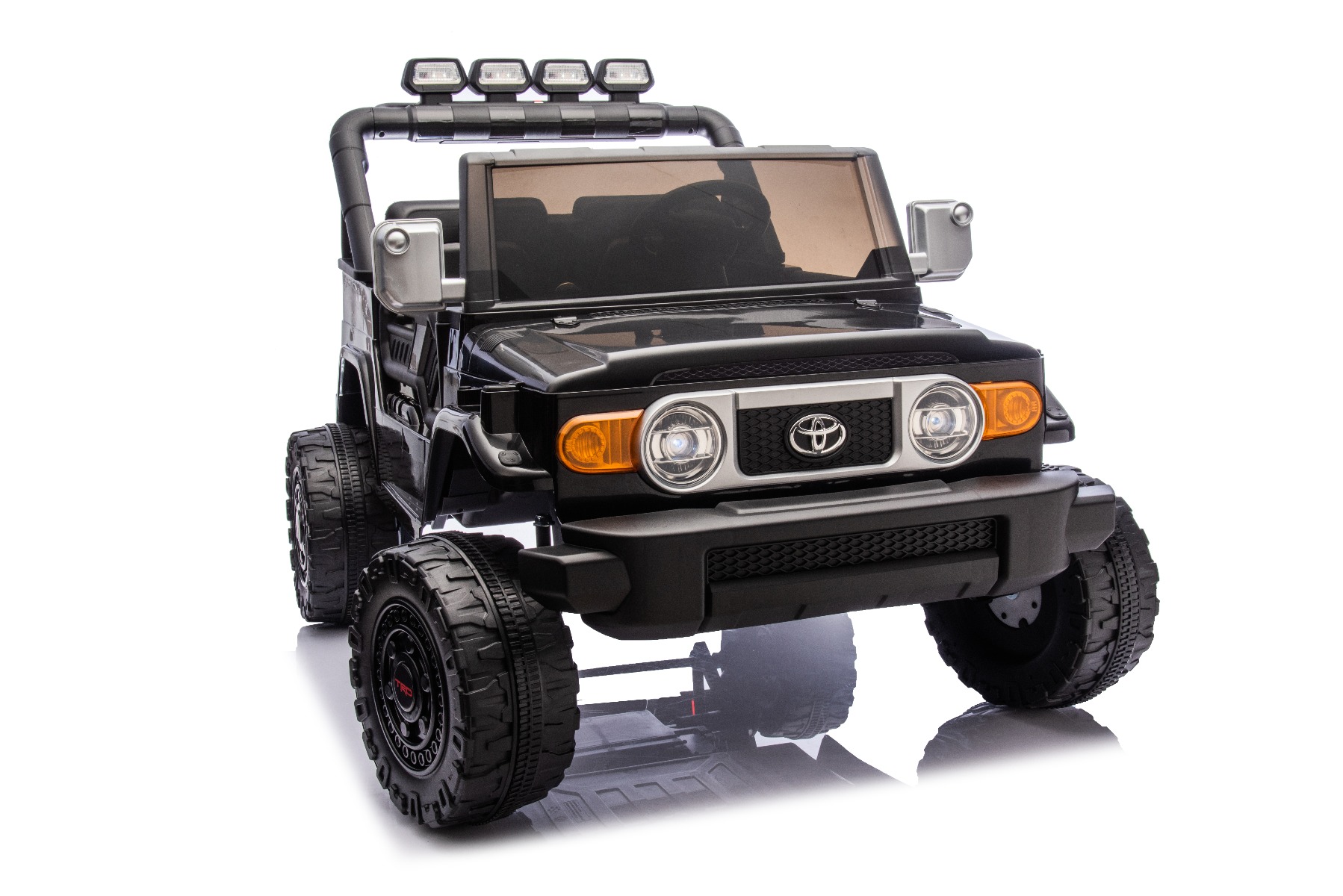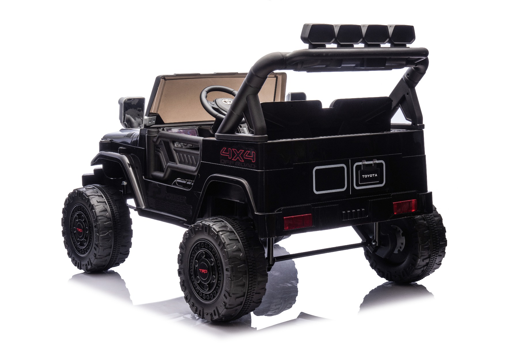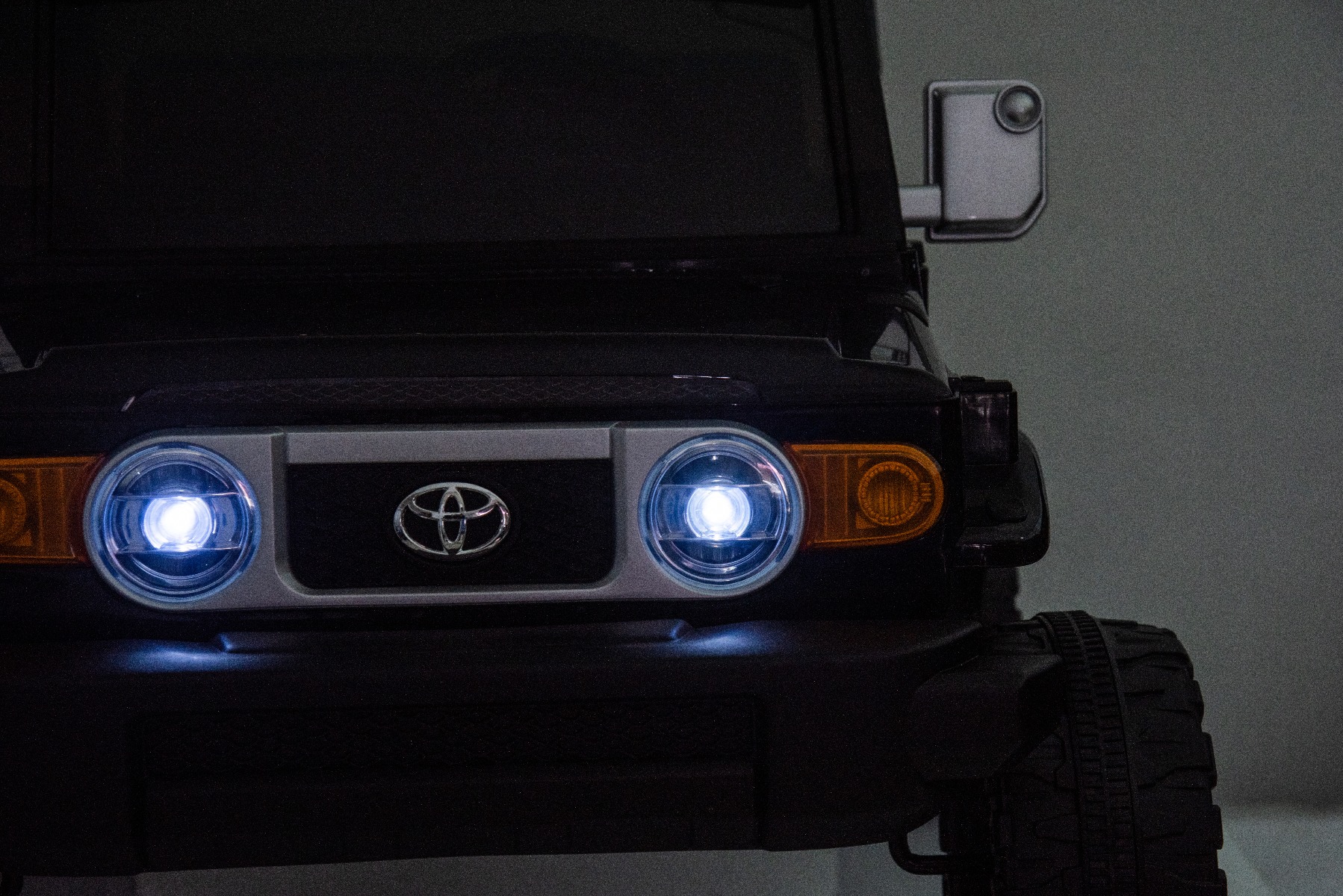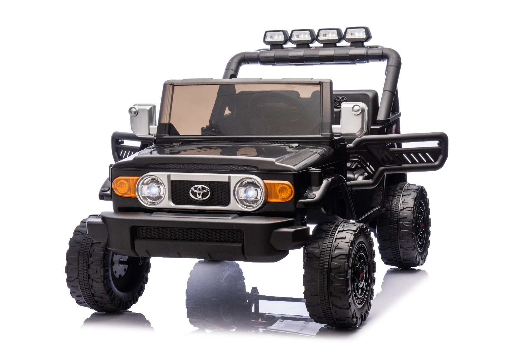 Mașinuță electrică de jucărie Toyota FJ Cruiser XXL cu tracțiune 4×4, autorizată (cu două locuri), negru, baterie litiu portabilă, șasiu înalt, două locuri, punte spate cu suspensie, telecomandă 2,4 GHz, player MP3 cu Bluetooth, lumini LED