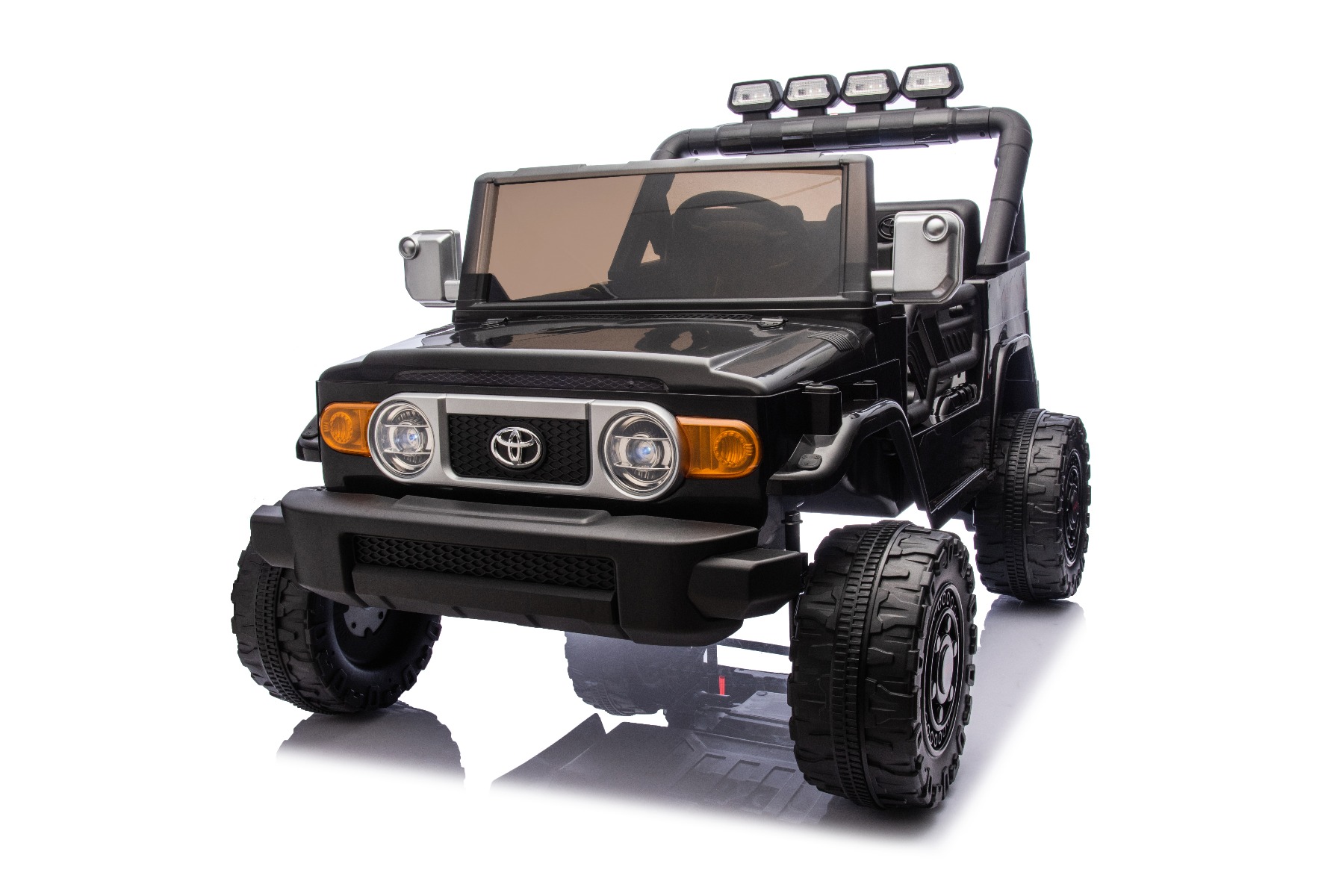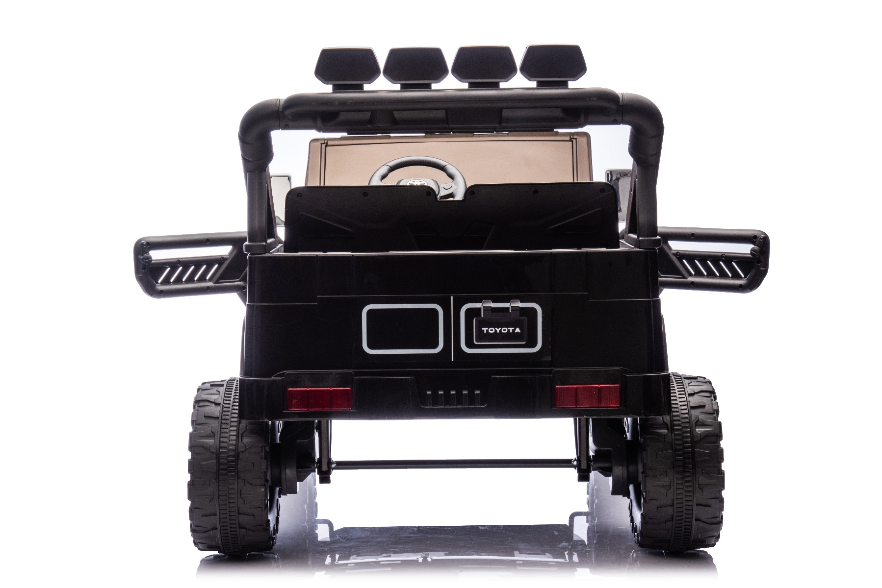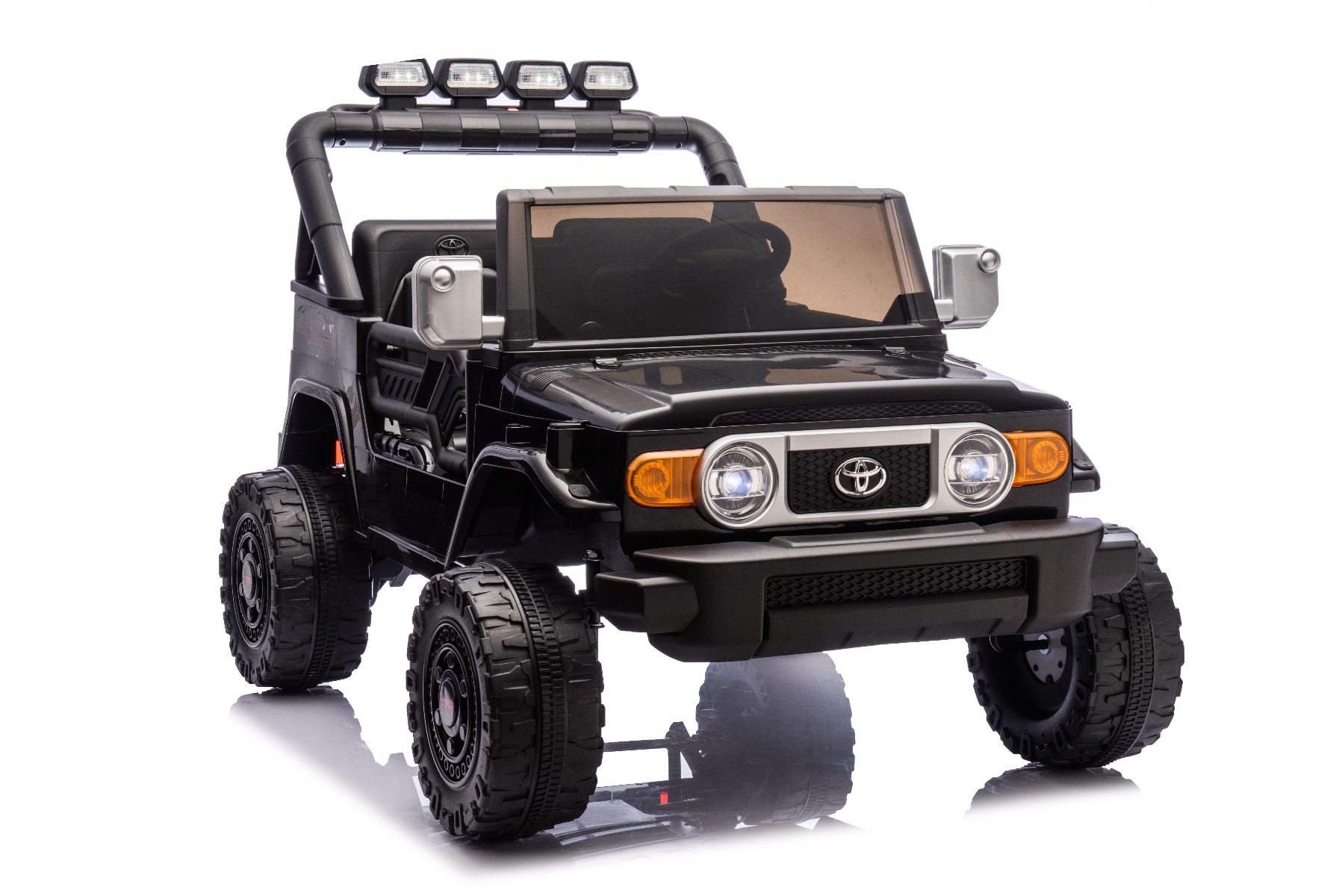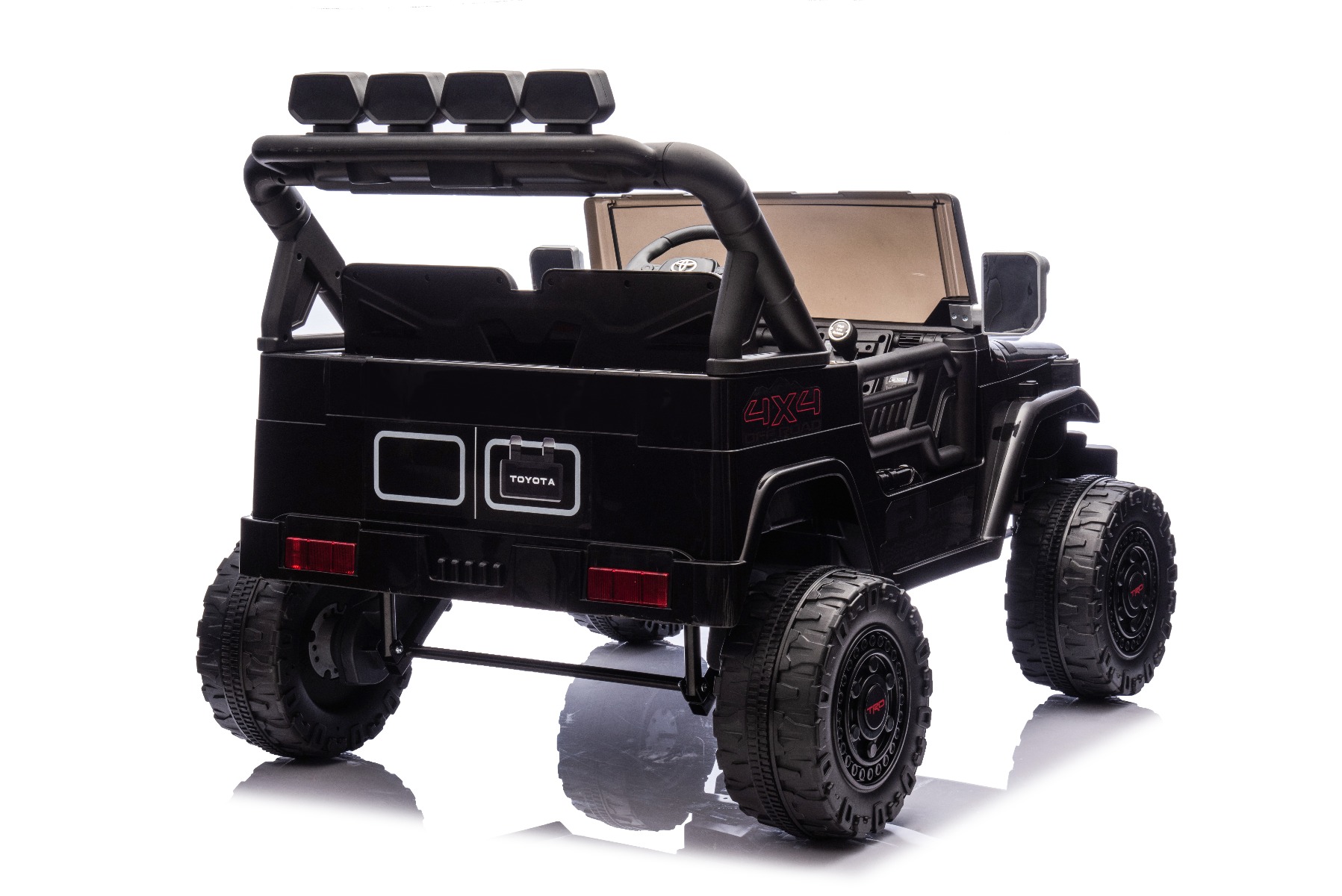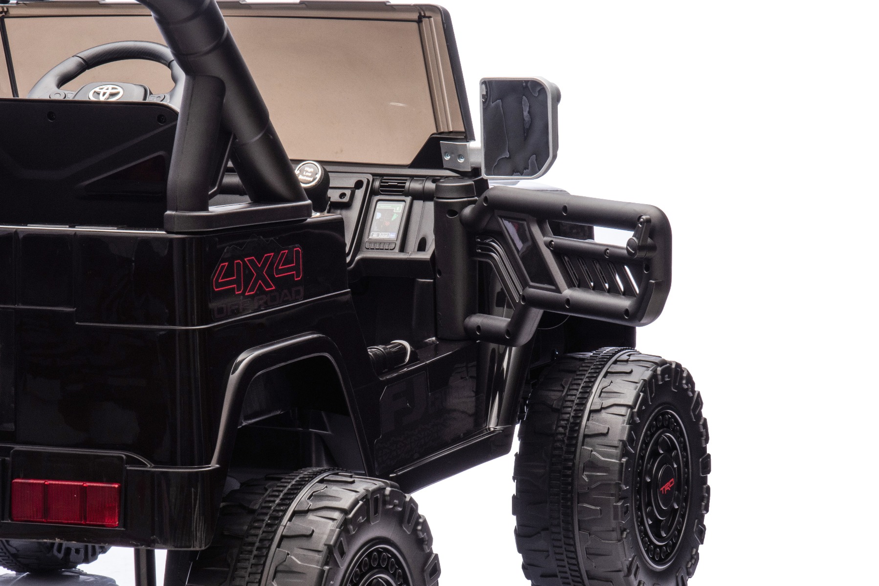 Mașinuță electrică de jucărie Toyota FJ Cruiser XXL cu tracțiune 4×4, autorizată (cu două locuri), negru, baterie litiu portabilă, șasiu înalt, două locuri, punte spate cu suspensie, telecomandă 2,4 GHz, player MP3 cu Bluetooth, lumini LED