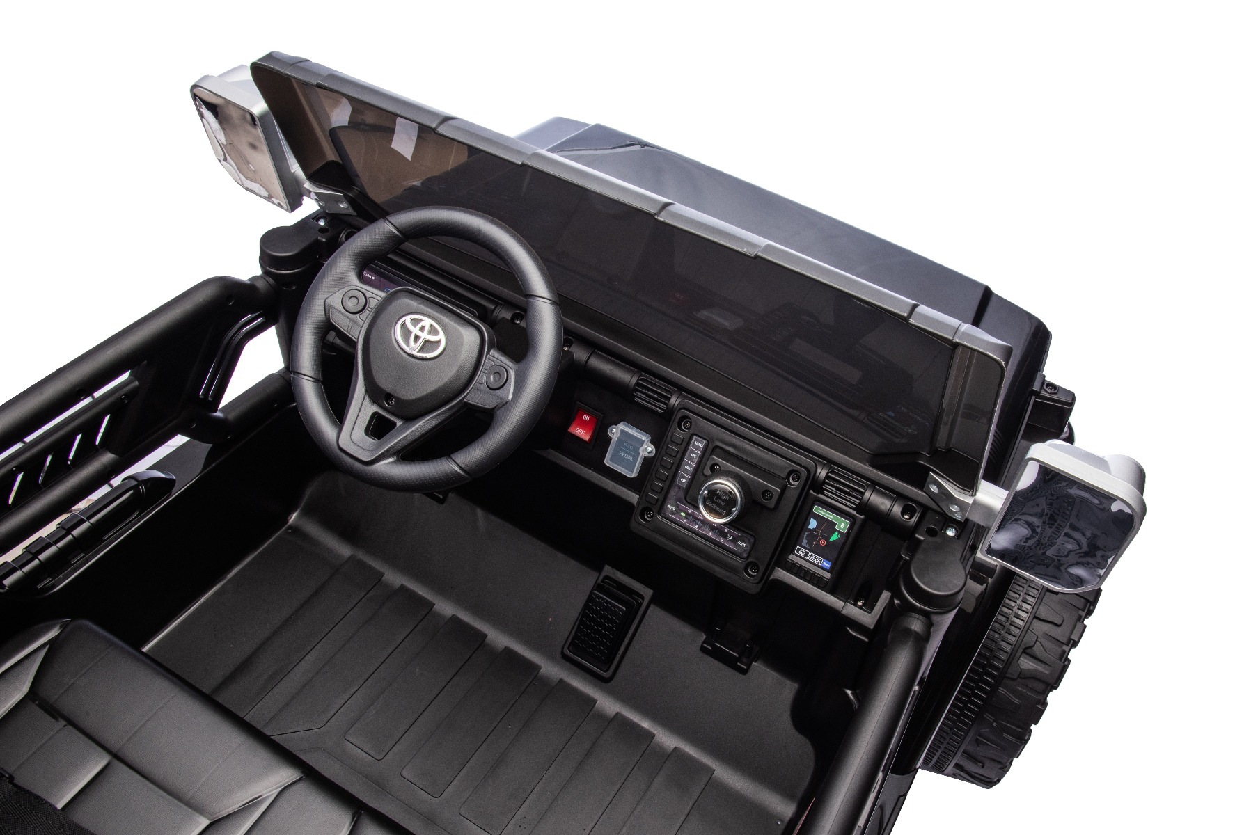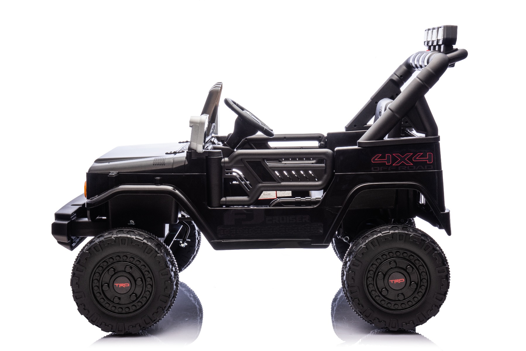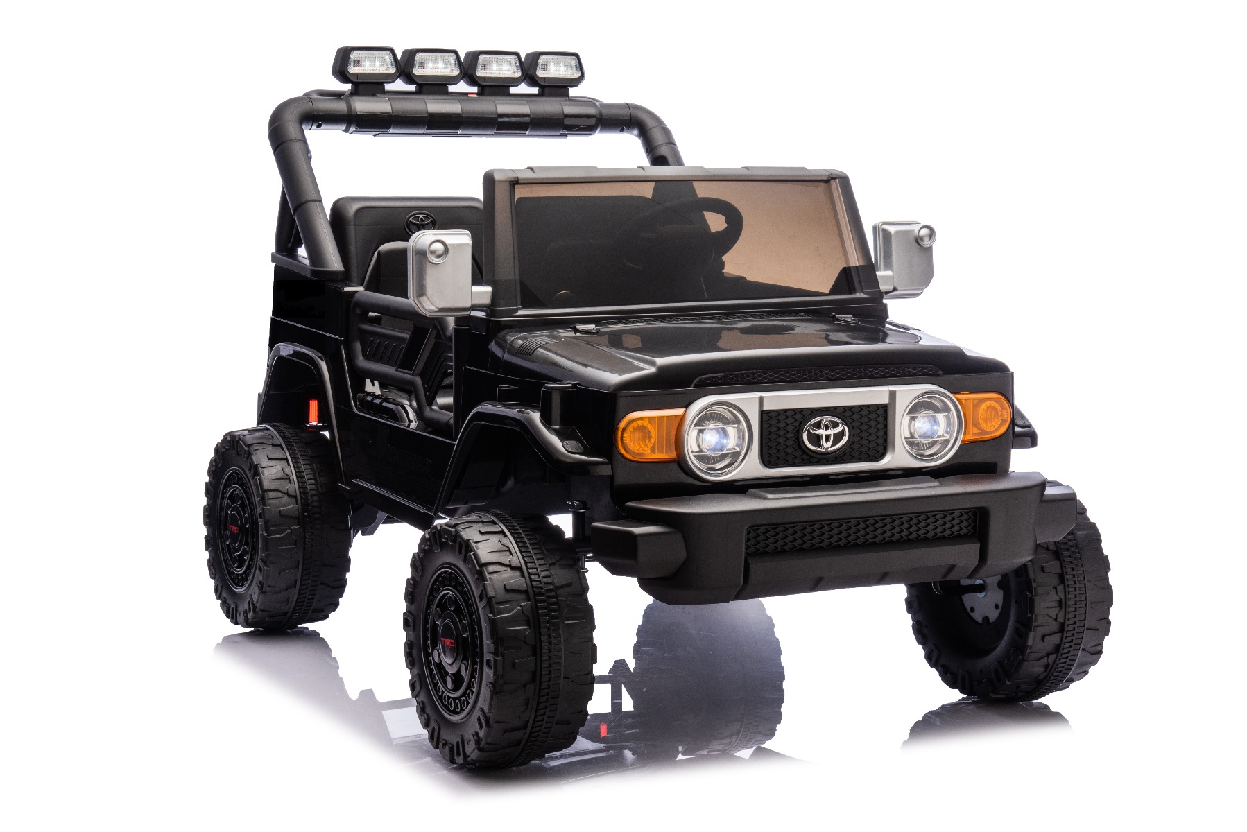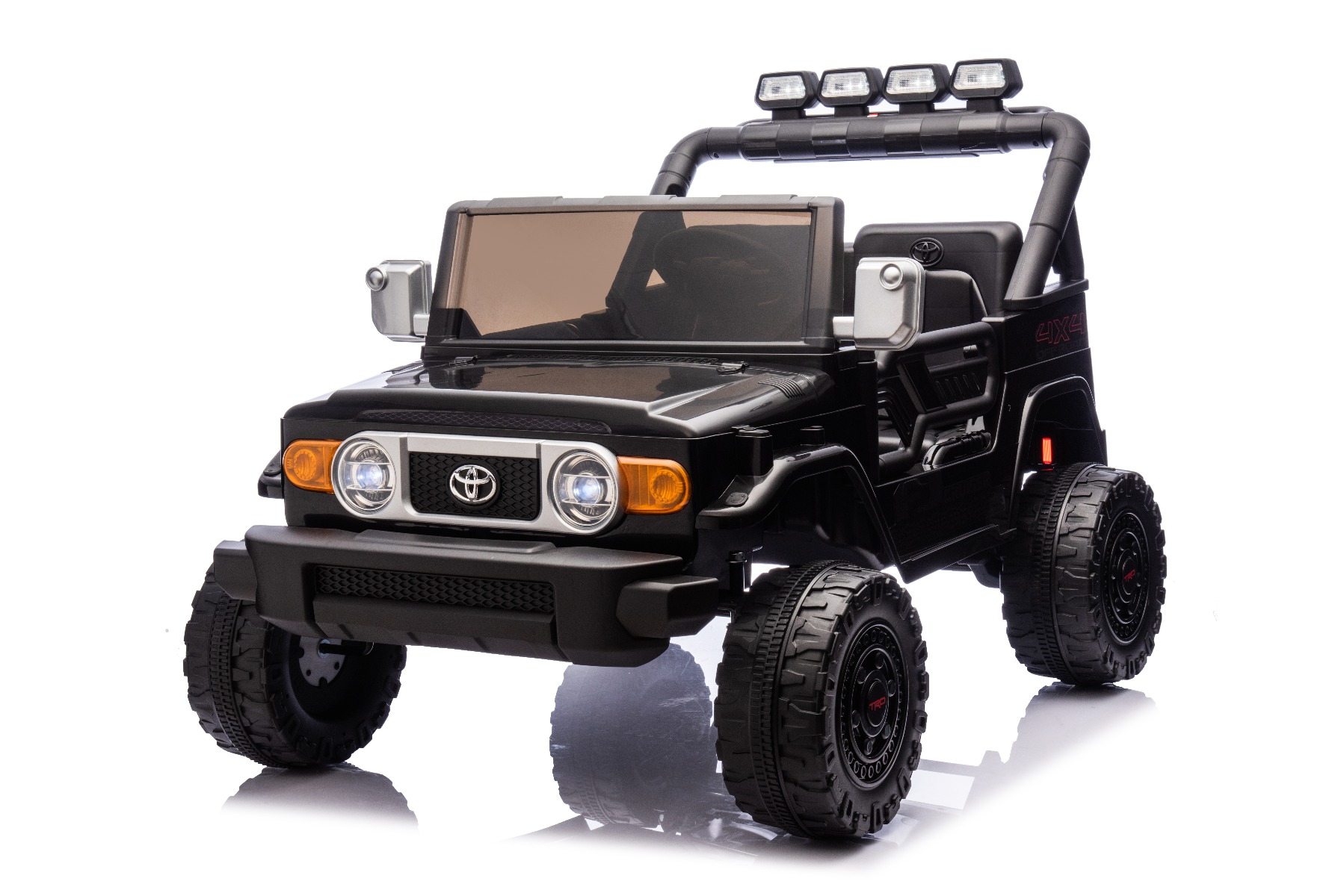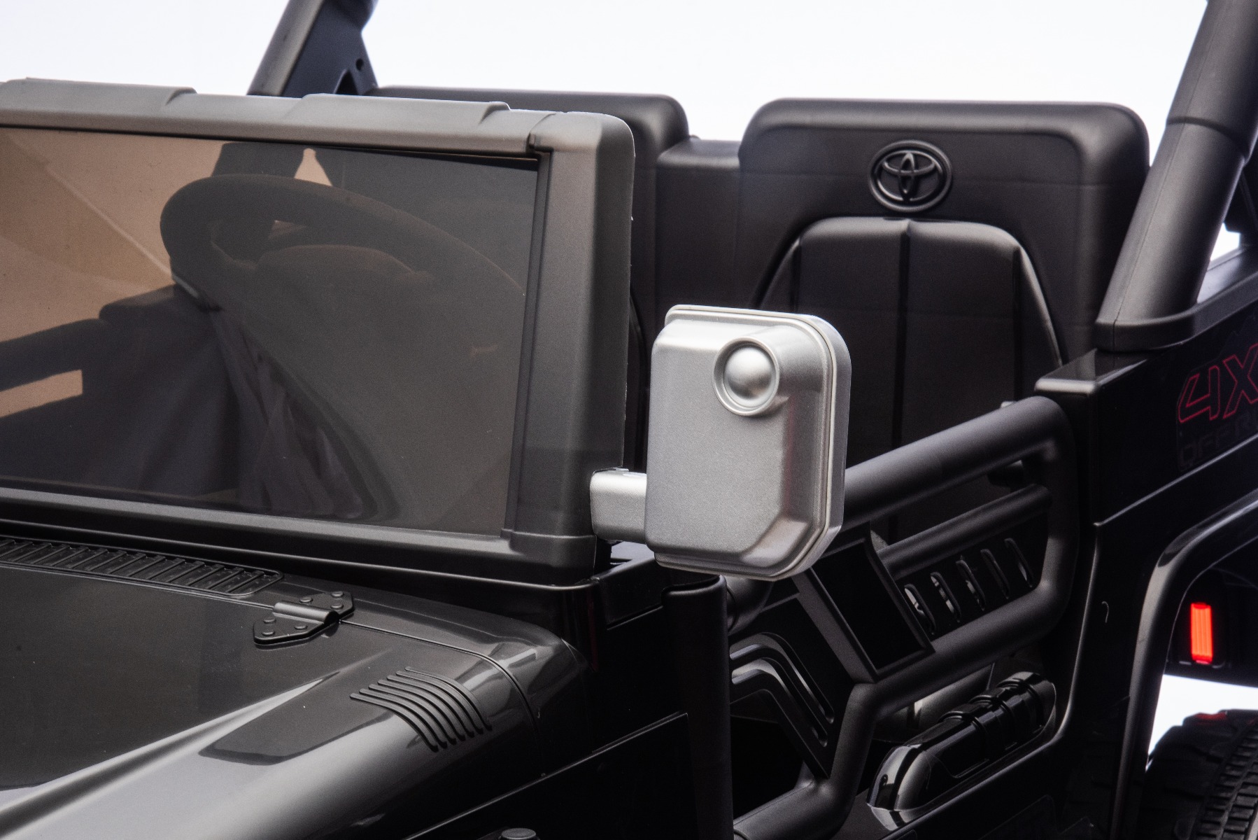 Mașinuță electrică de jucărie Toyota FJ Cruiser XXL cu tracțiune 4×4, autorizată (cu două locuri), negru, baterie litiu portabilă, șasiu înalt, două locuri, punte spate cu suspensie, telecomandă 2,4 GHz, player MP3 cu Bluetooth, lumini LED