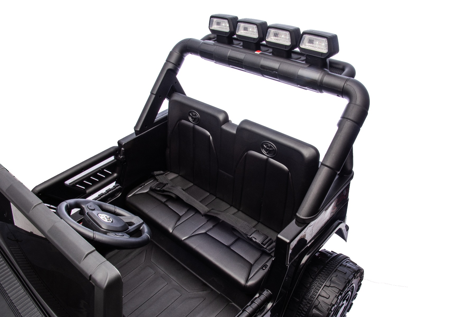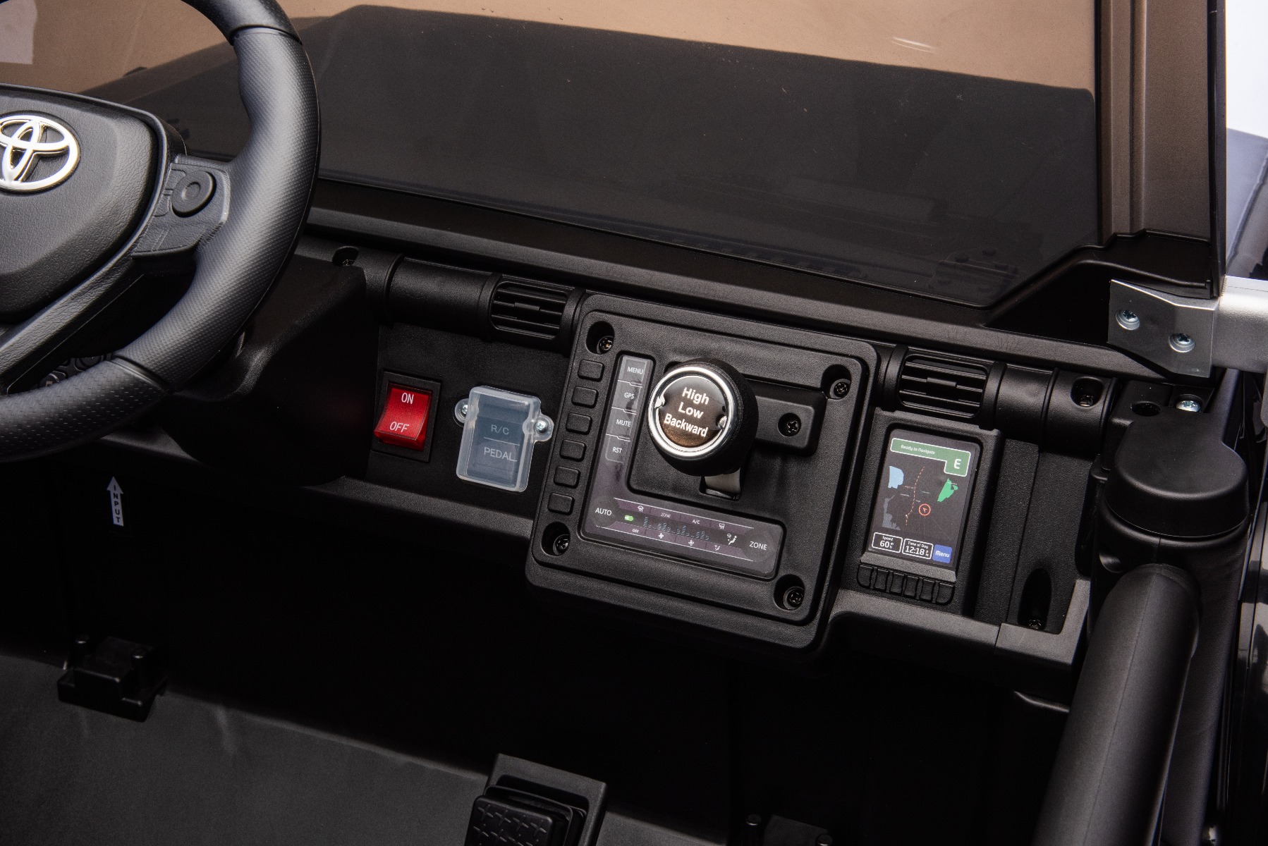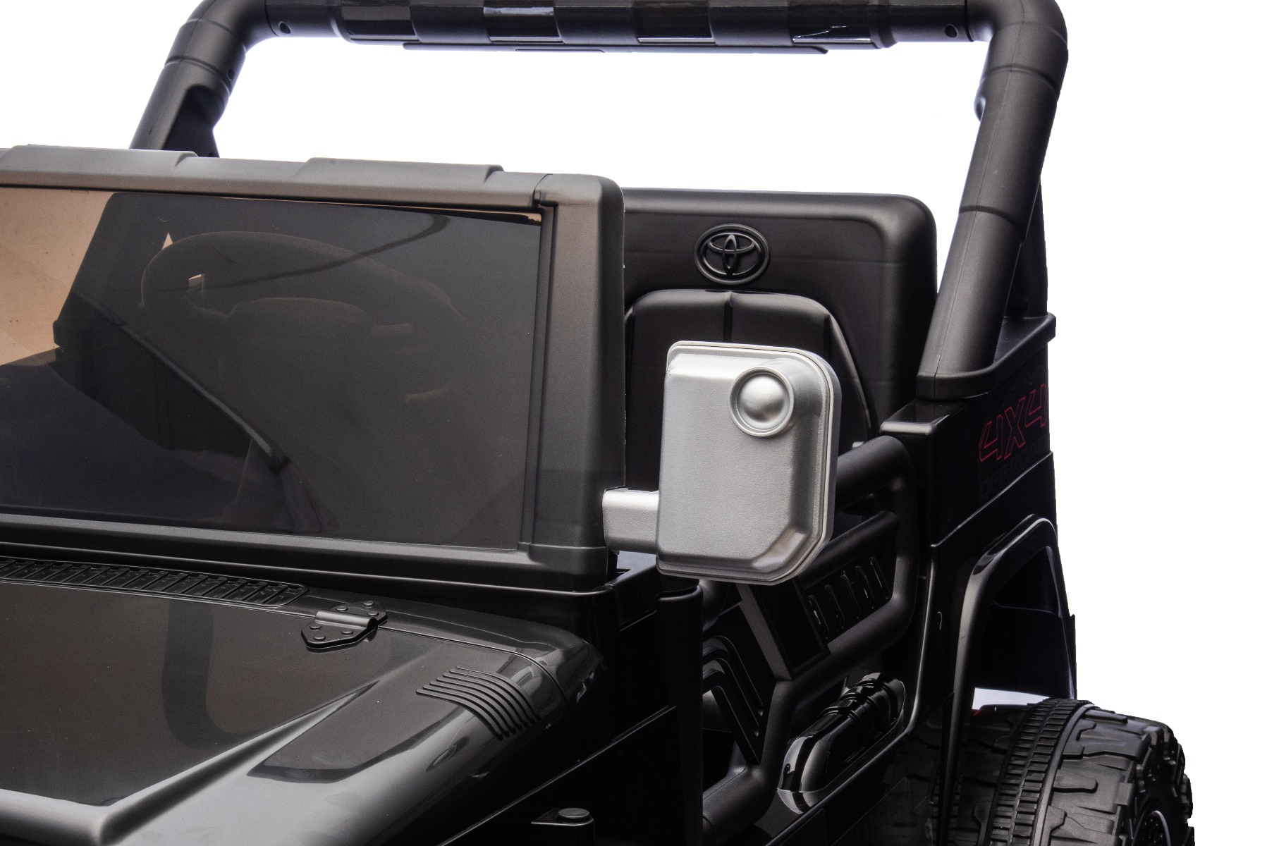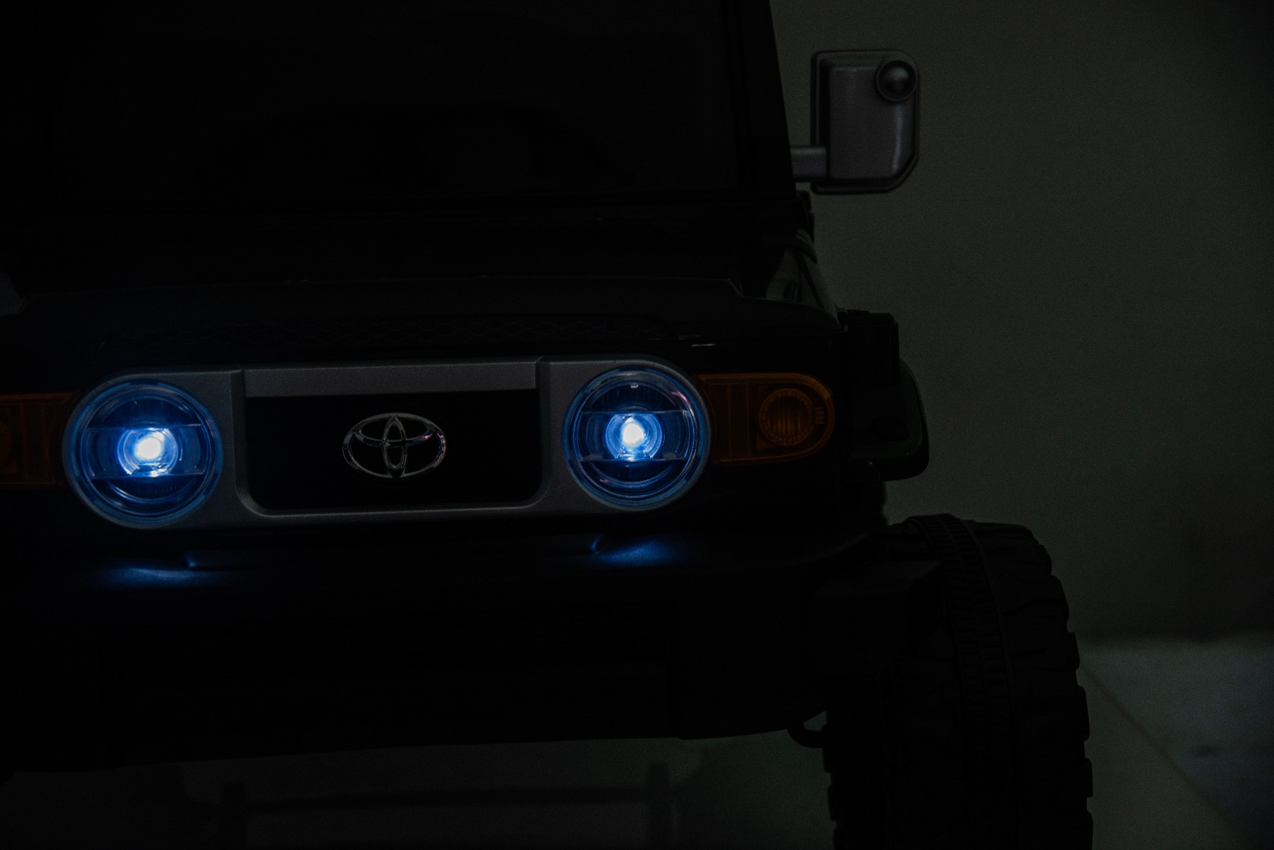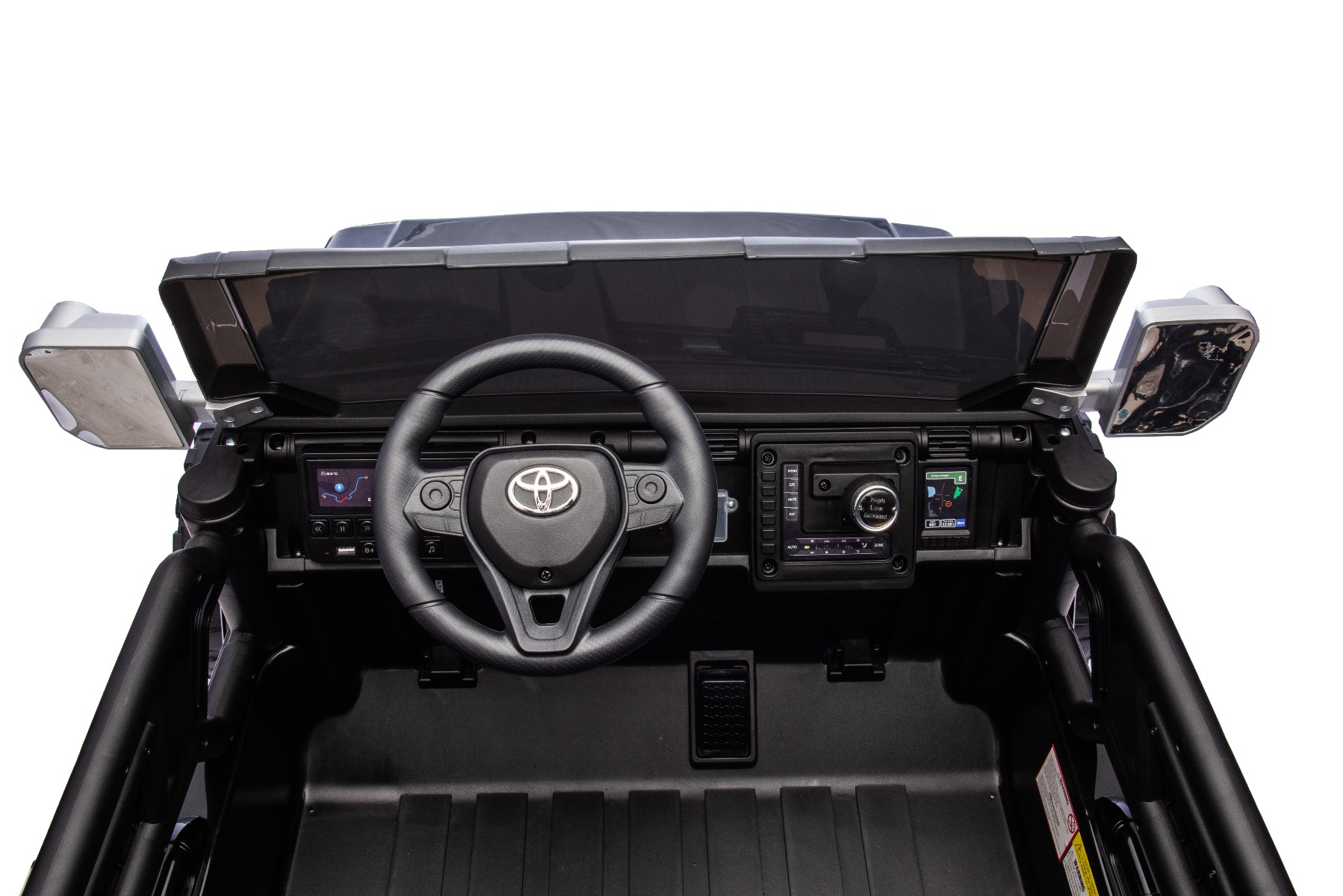 Mașinuță electrică de jucărie Toyota FJ Cruiser XXL cu tracțiune 4×4, autorizată (cu două locuri), negru, baterie litiu portabilă, șasiu înalt, două locuri, punte spate cu suspensie, telecomandă 2,4 GHz, player MP3 cu Bluetooth, lumini LED