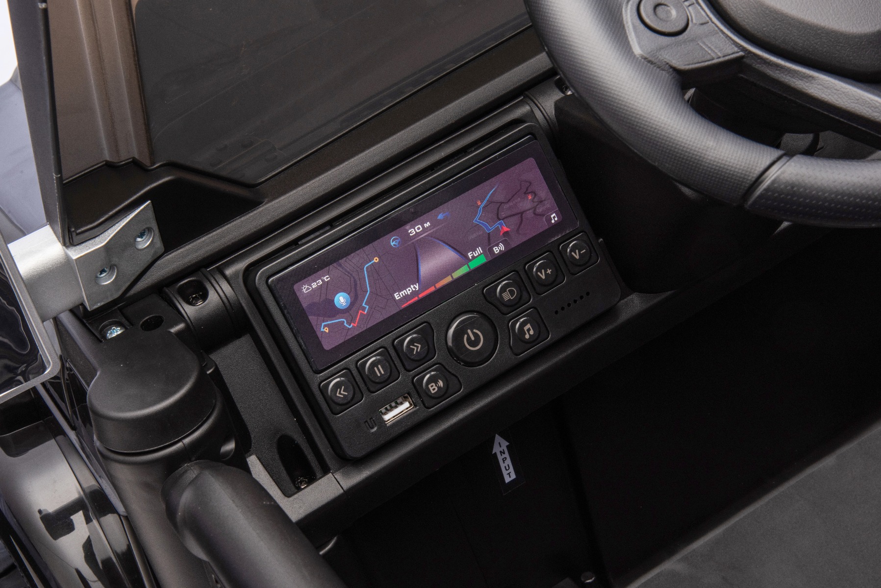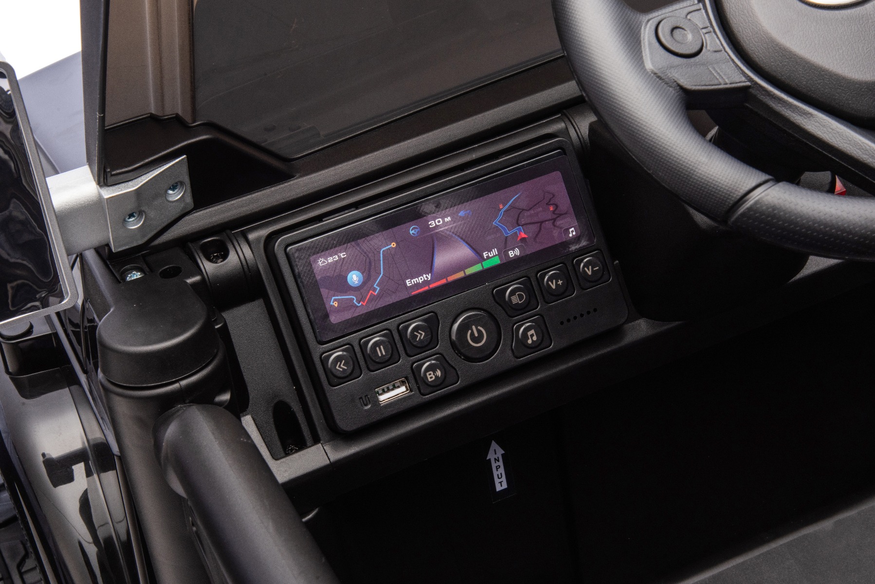 • Potrivit pentru doi copii • Ax spate cu suspensie • Baterie litiu • Propulsiune 4×4 cu motoare de 55W • Bluetooth pe player MP3